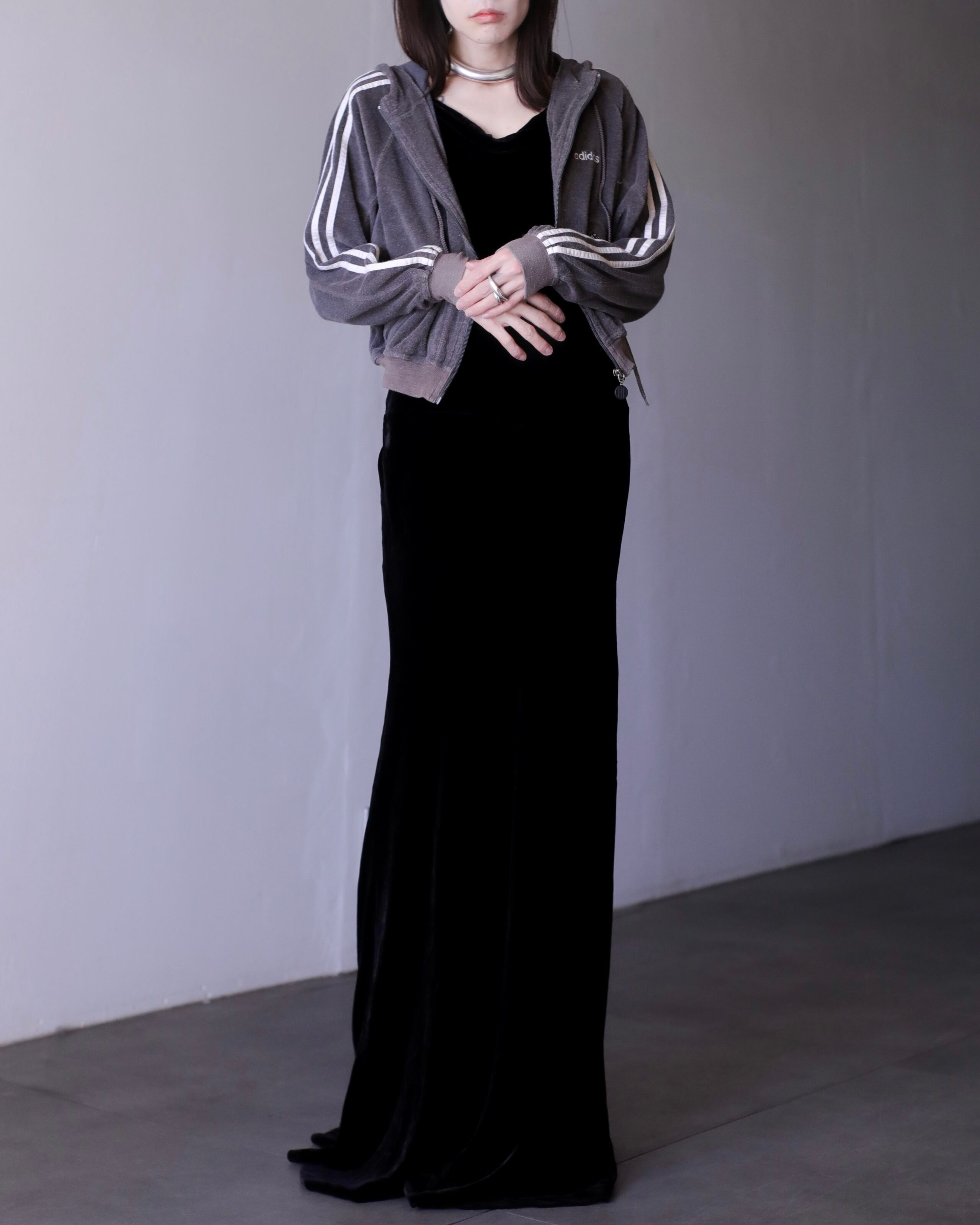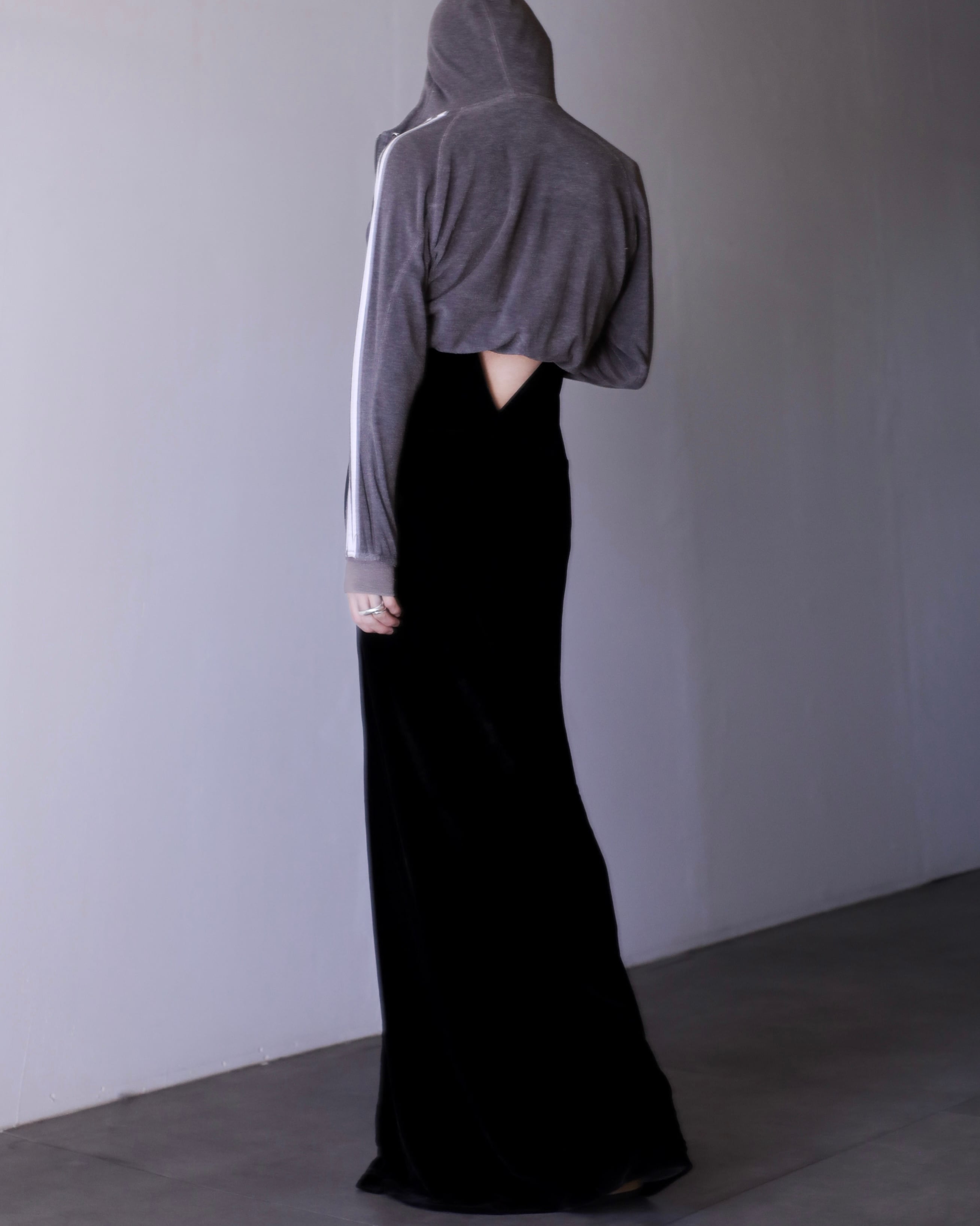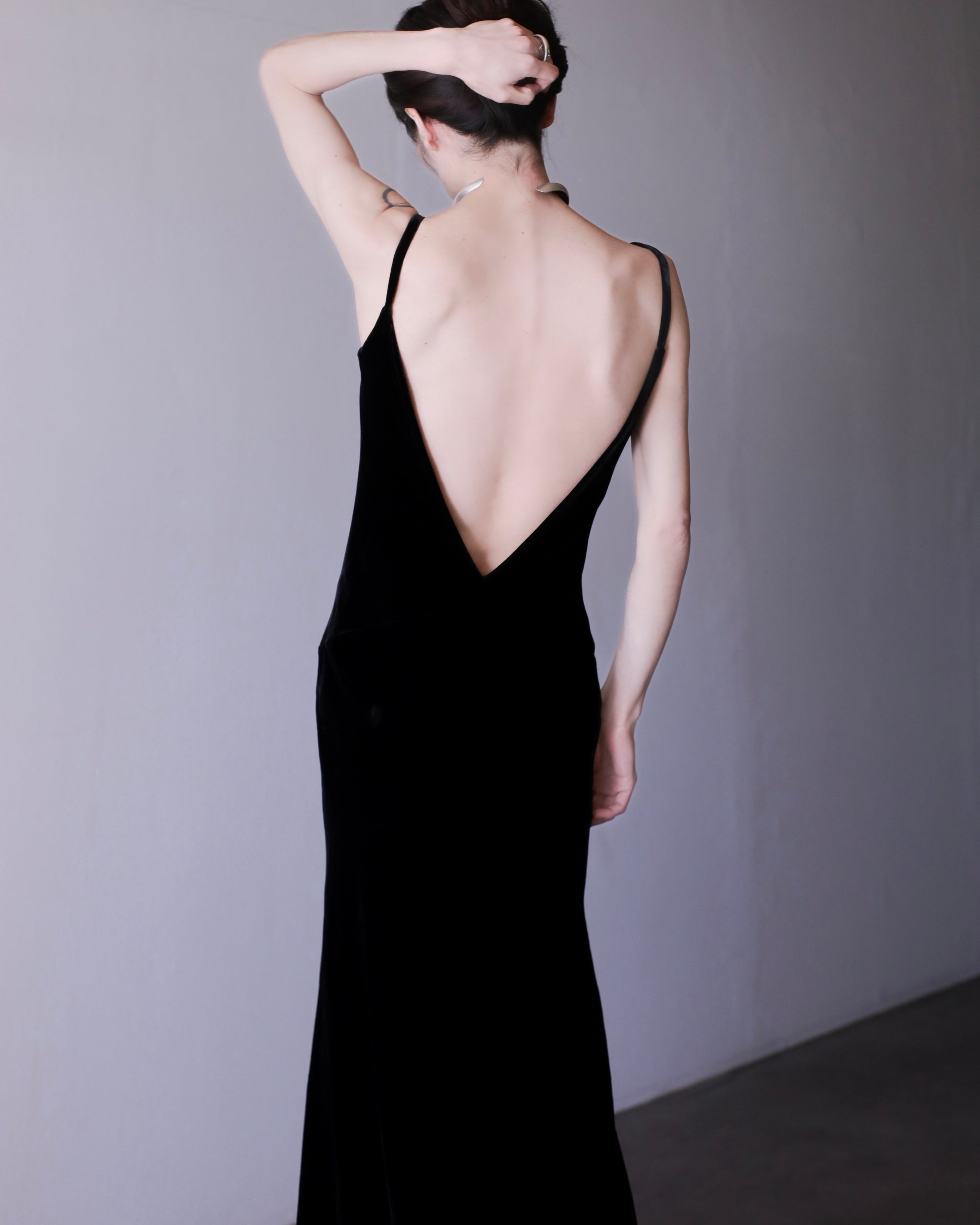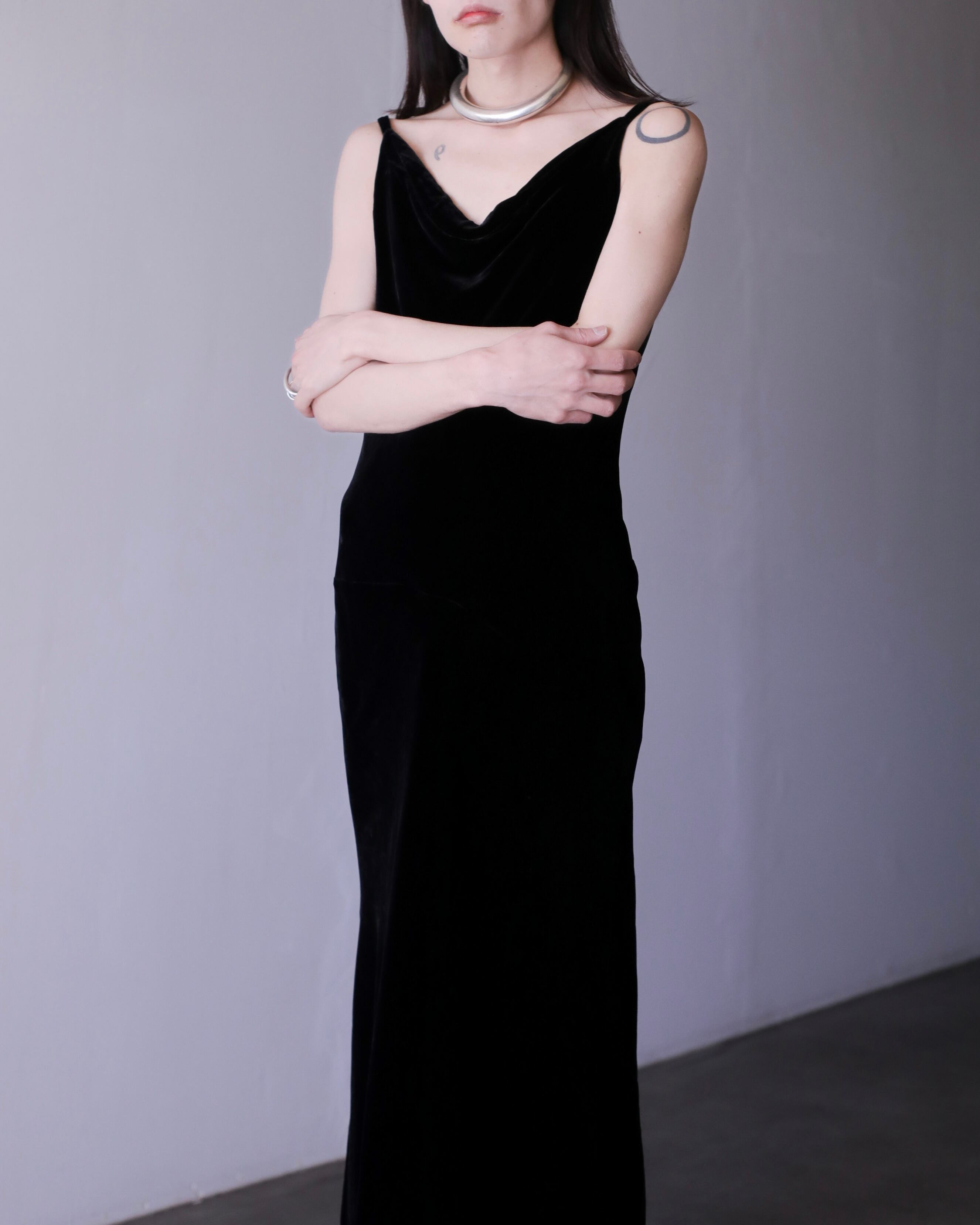 velours "senaka paccaan" deep V maxi length dress