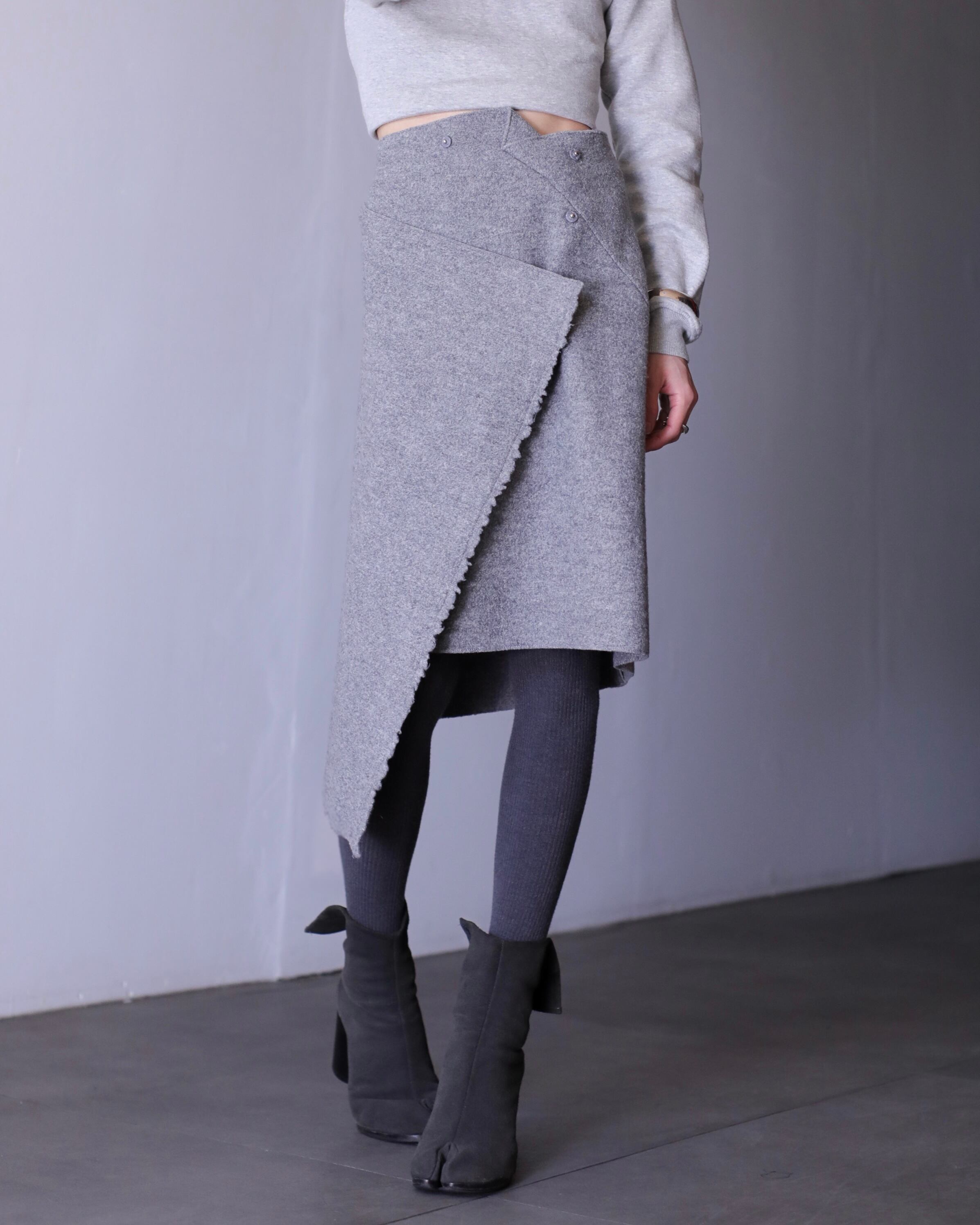 CÉLINE by Phoebe Philo "kirippanasi" wrap design brushed wool skirt