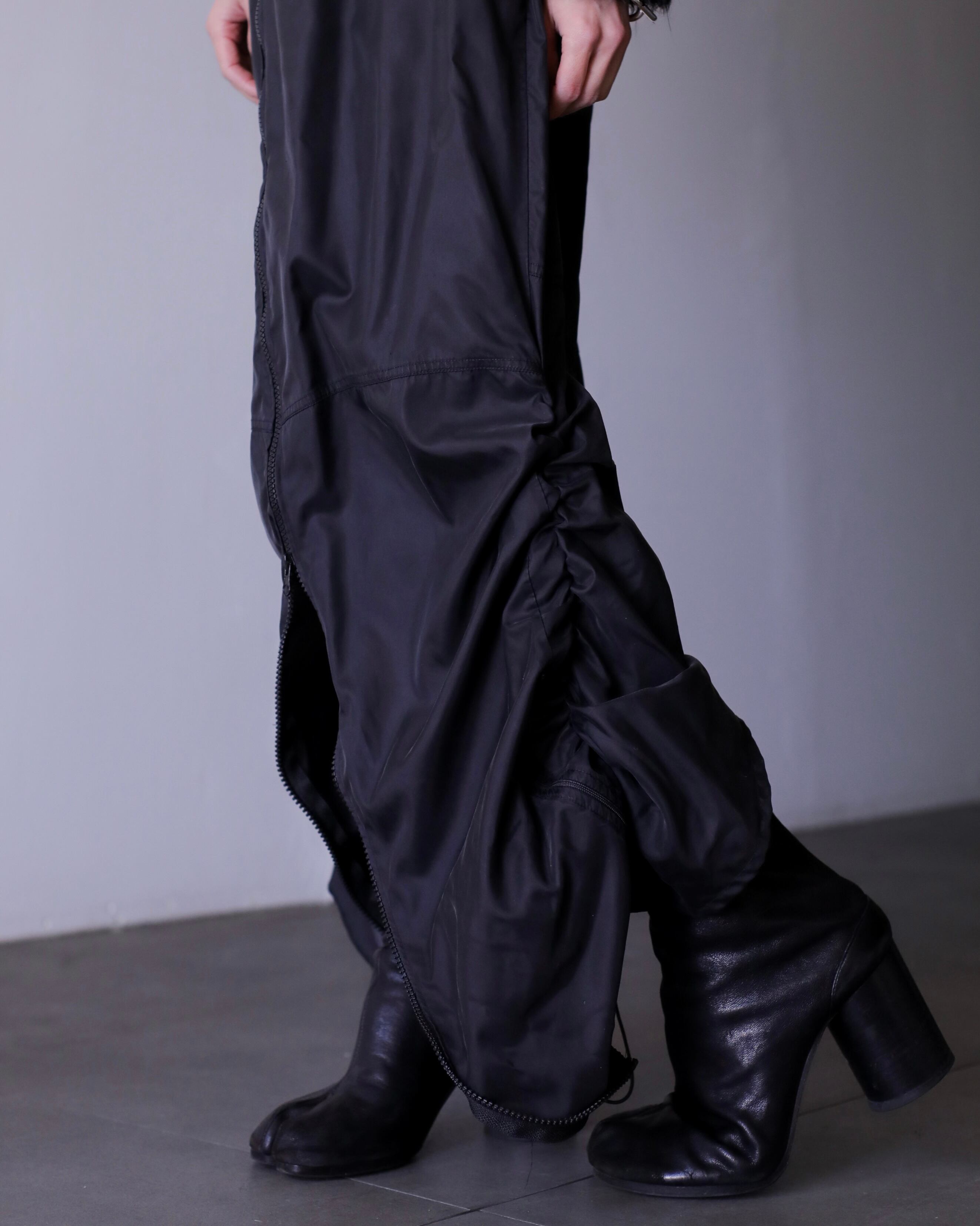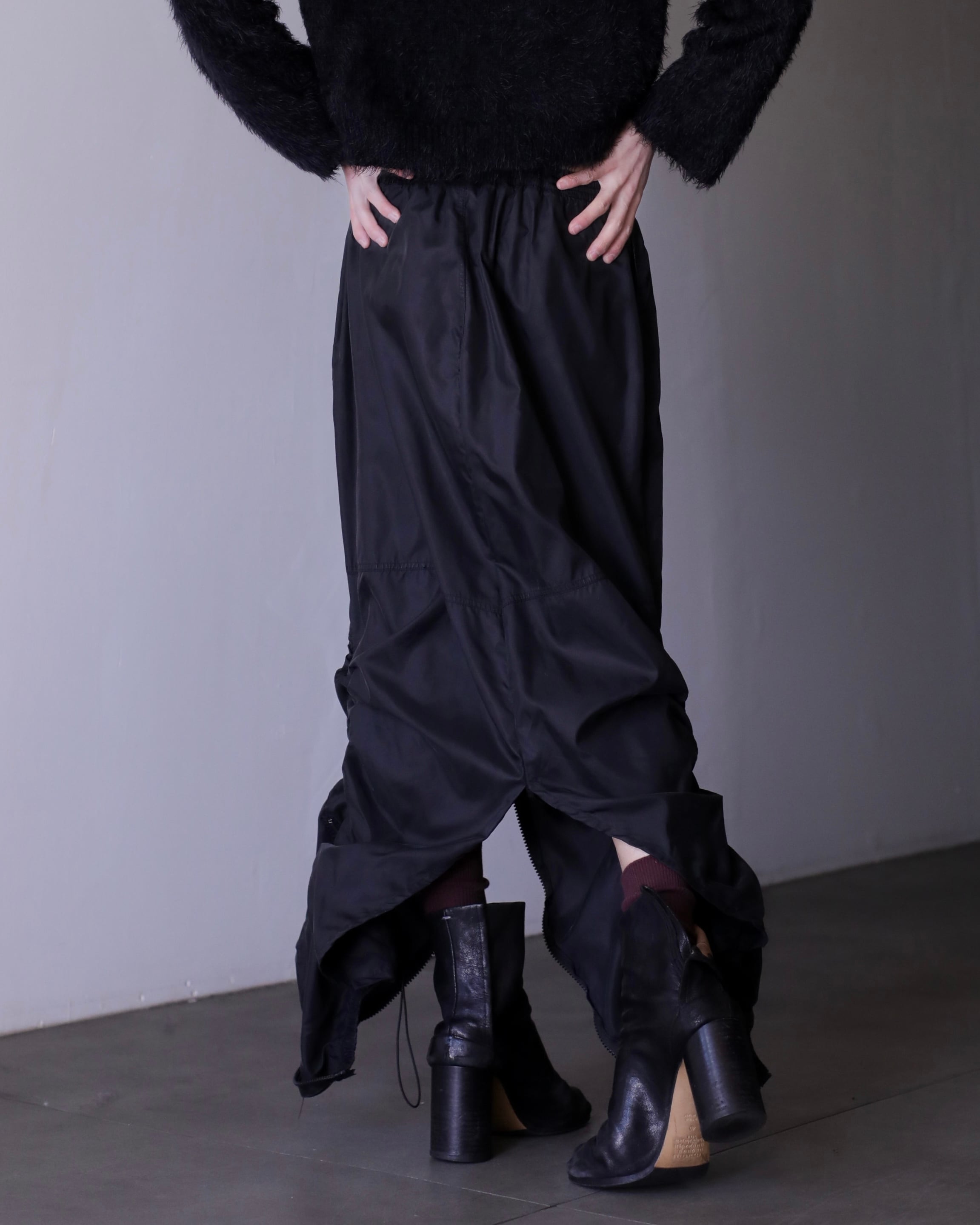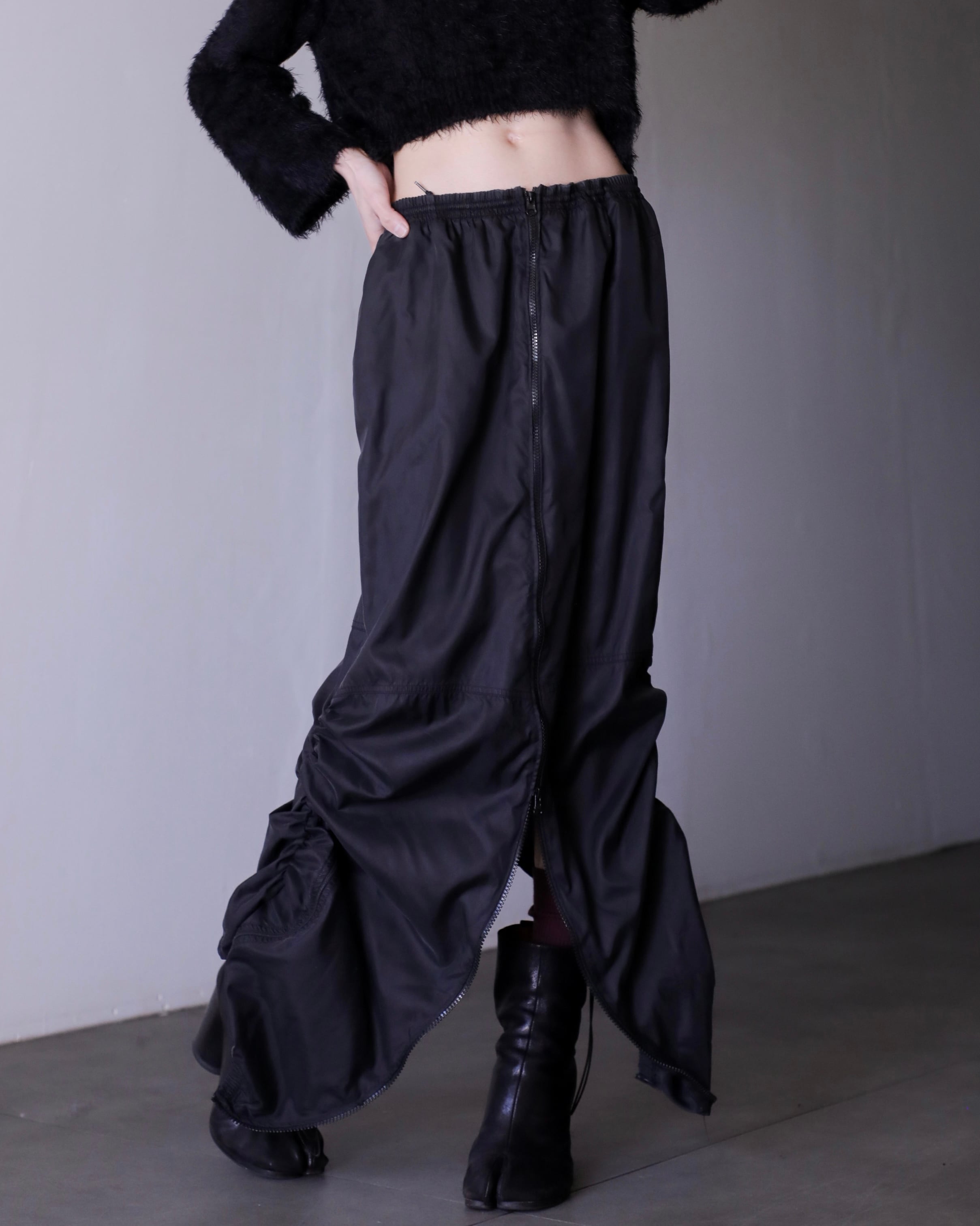 1990s NIKE nylon tech drawstring design center zip maxi skirt