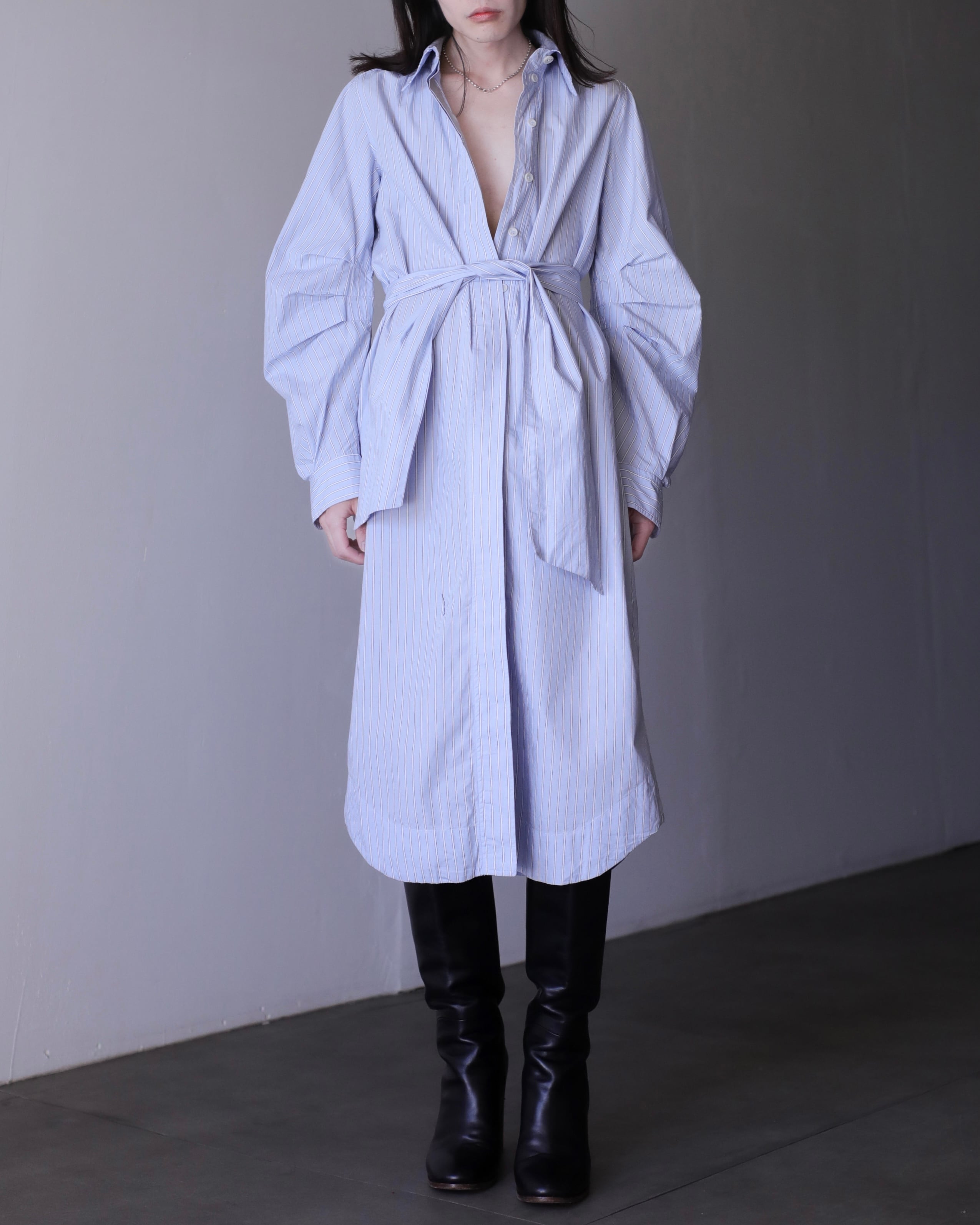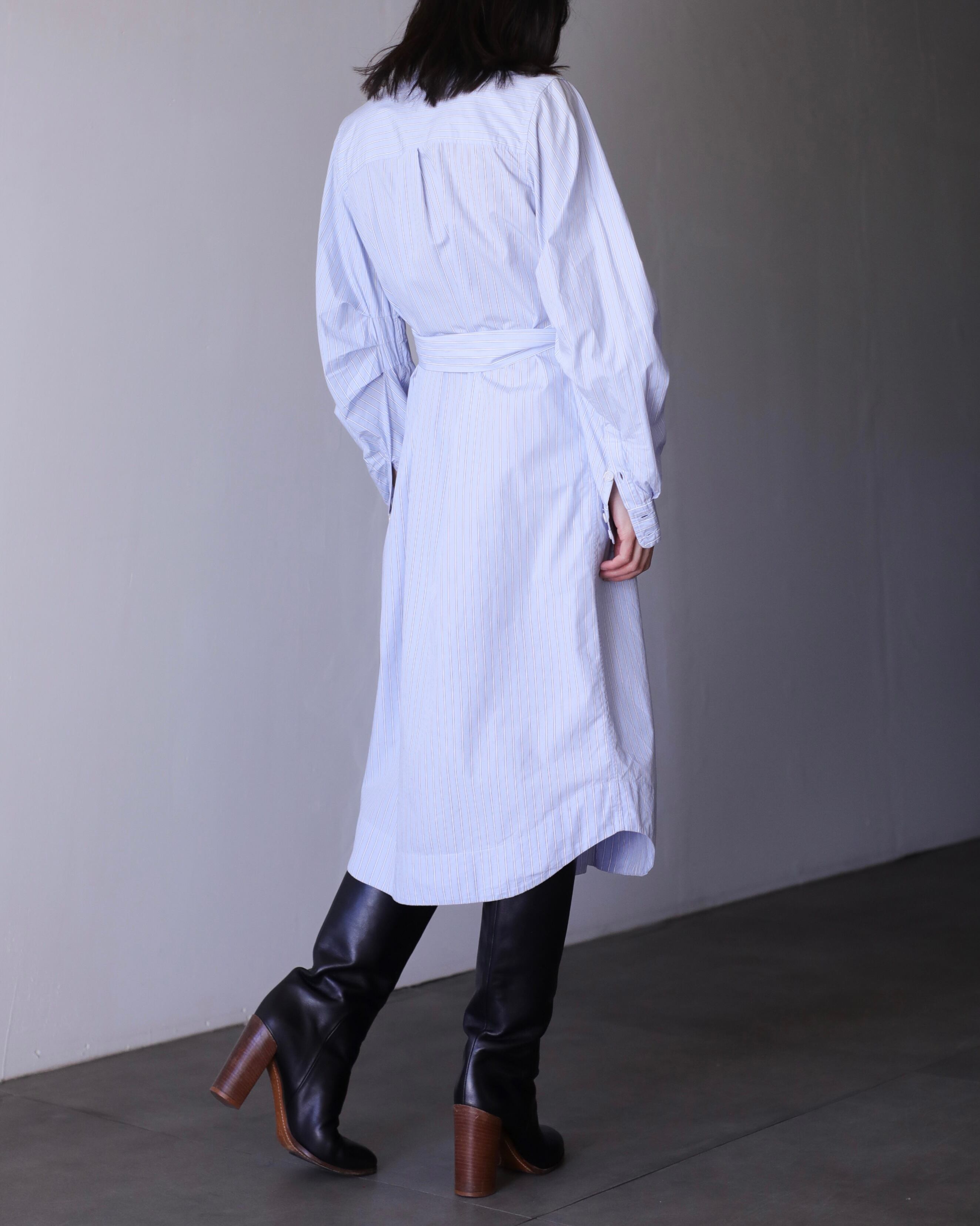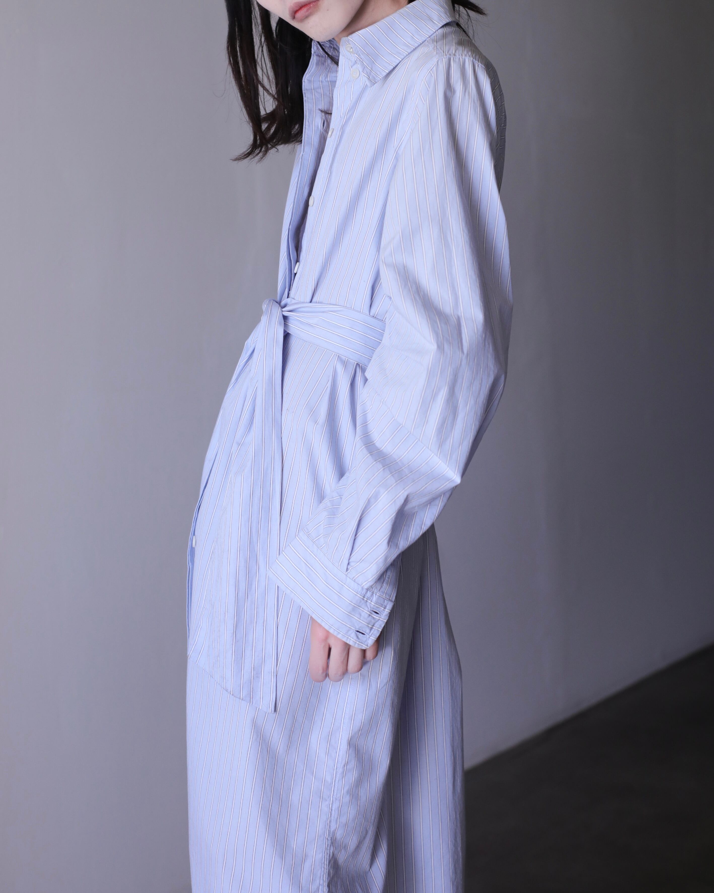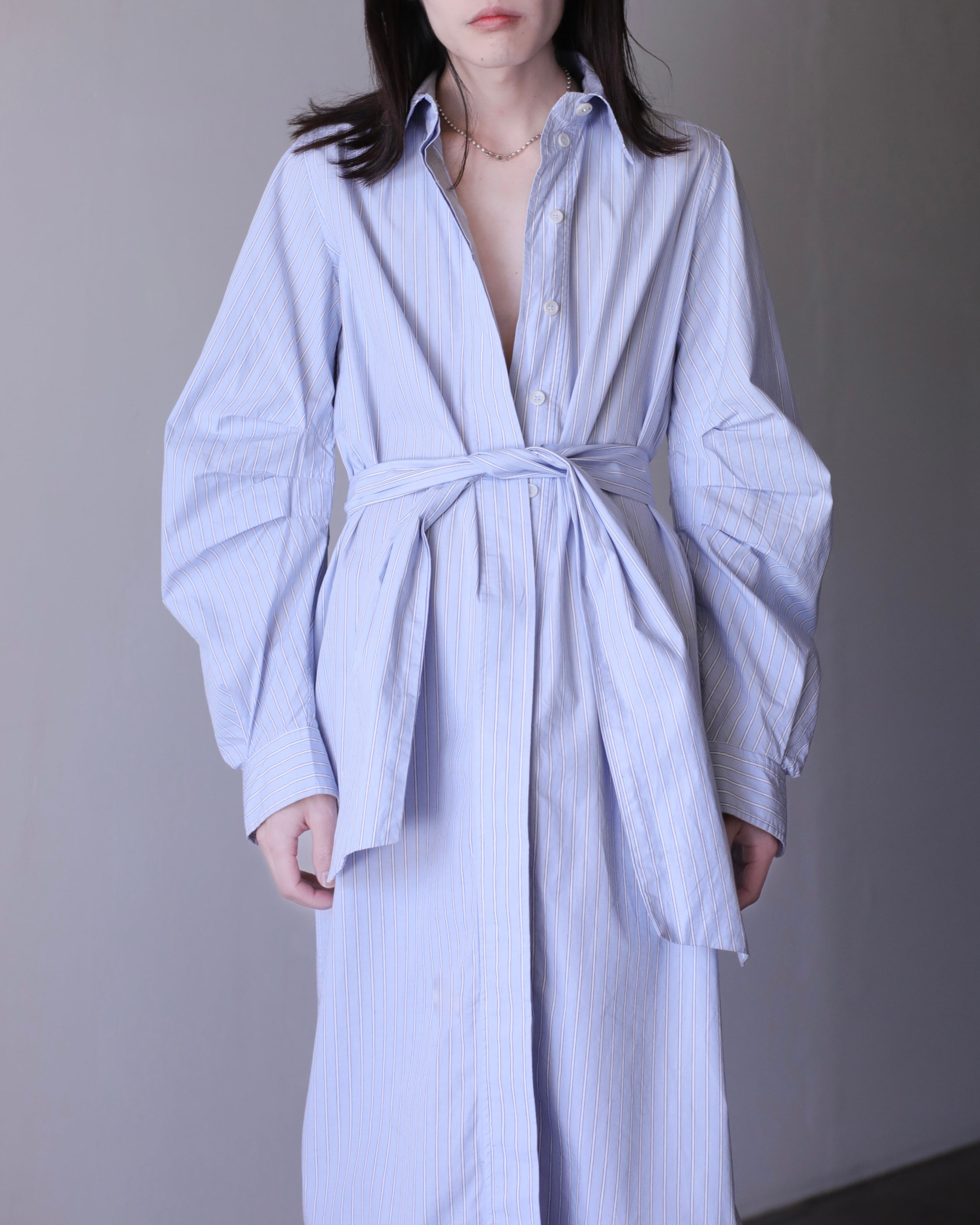 GANNI stripe "3D sode" belted design fly front long shirt dress