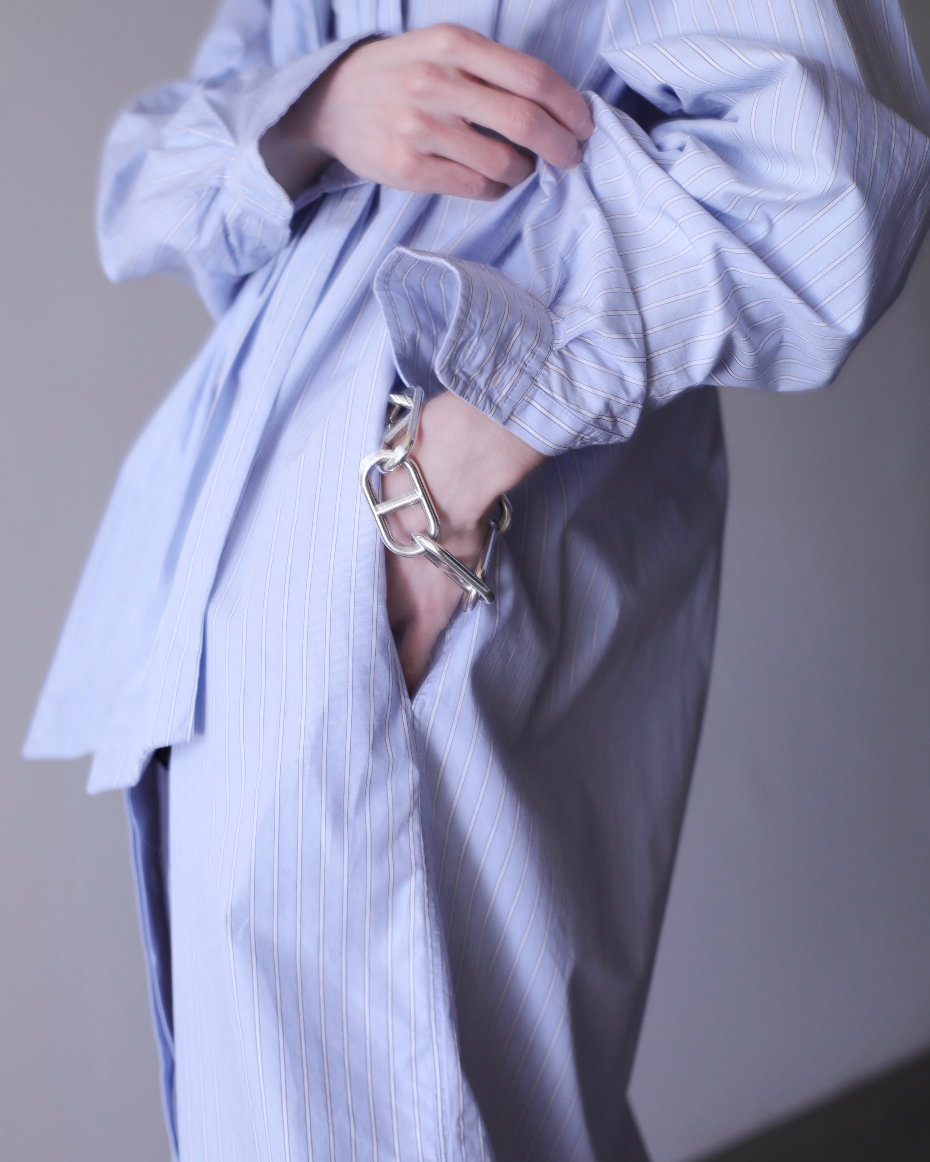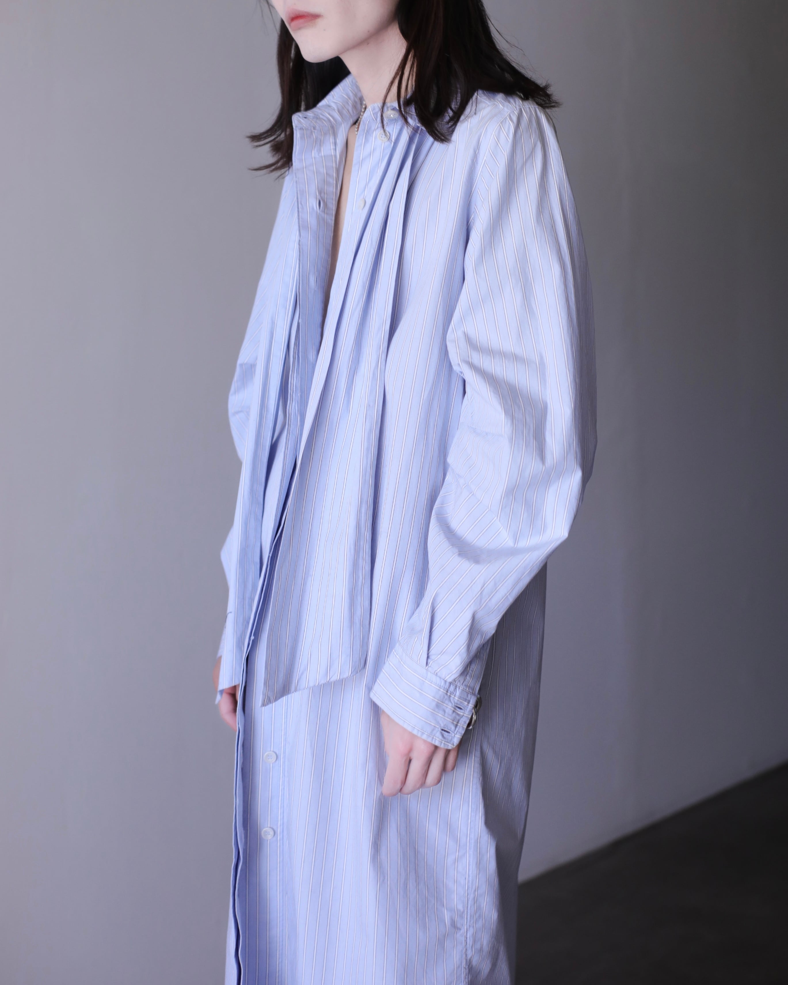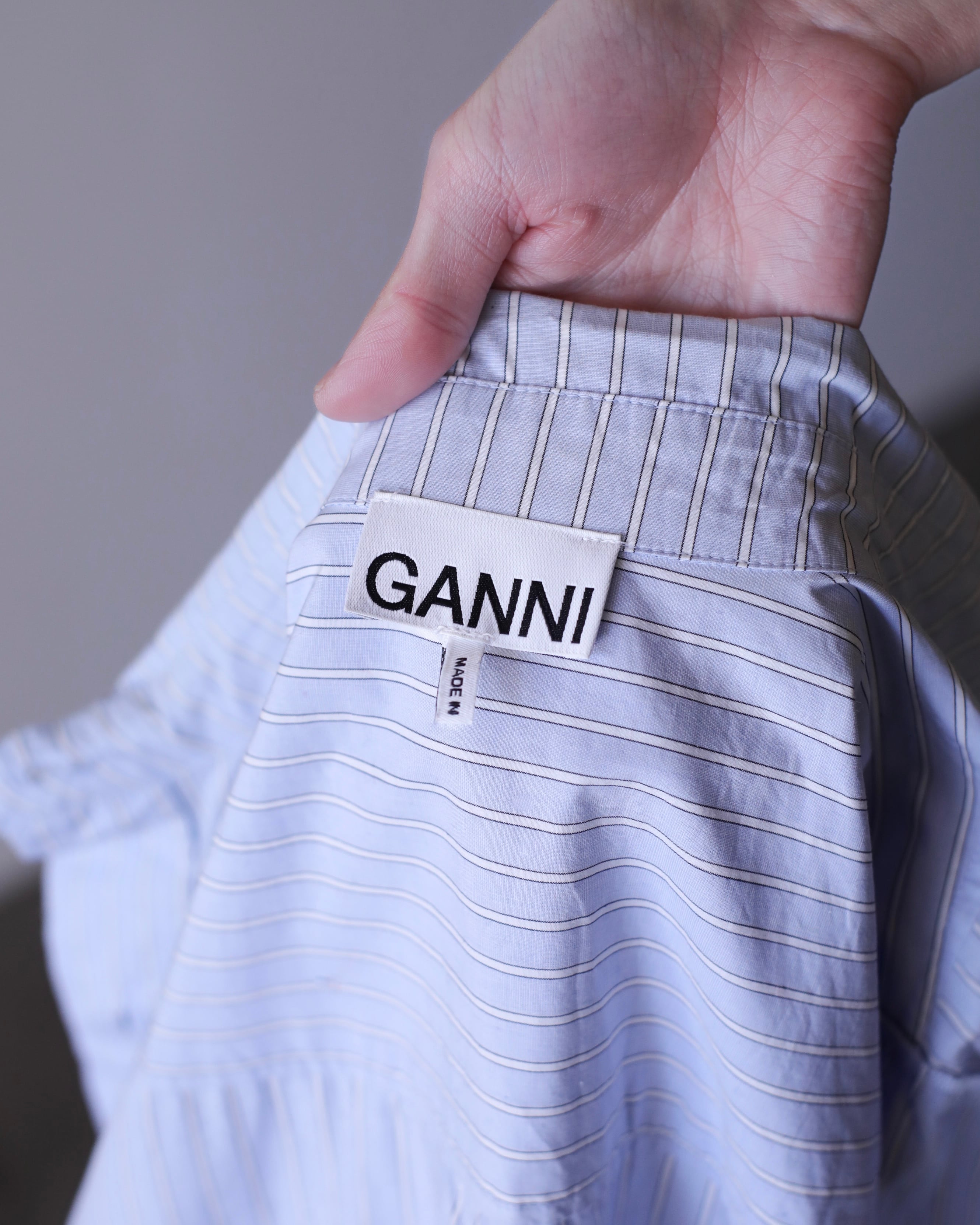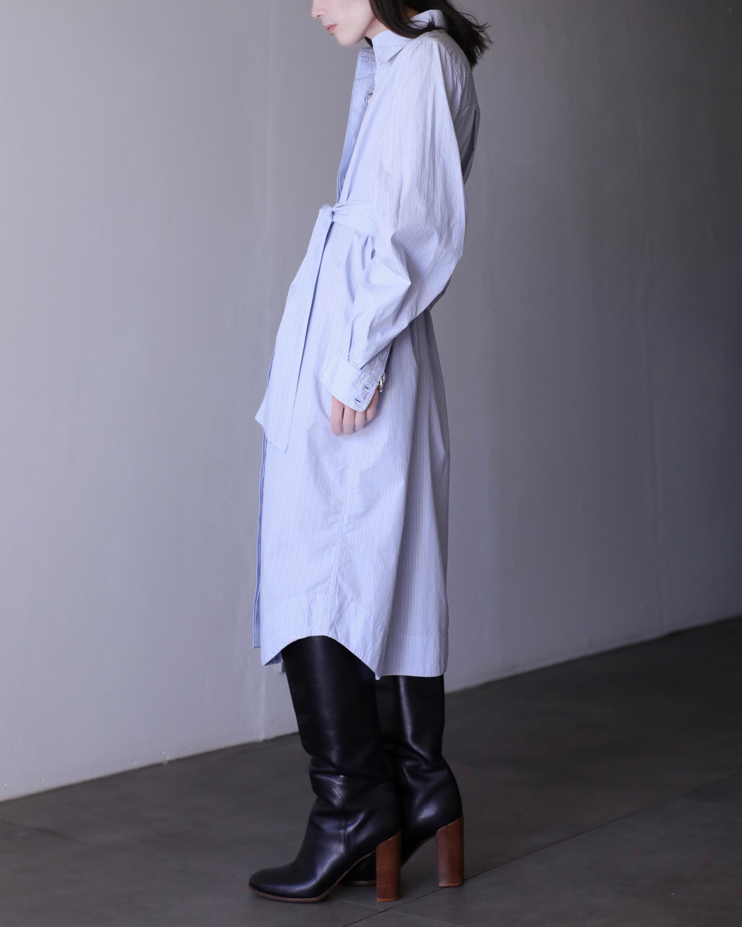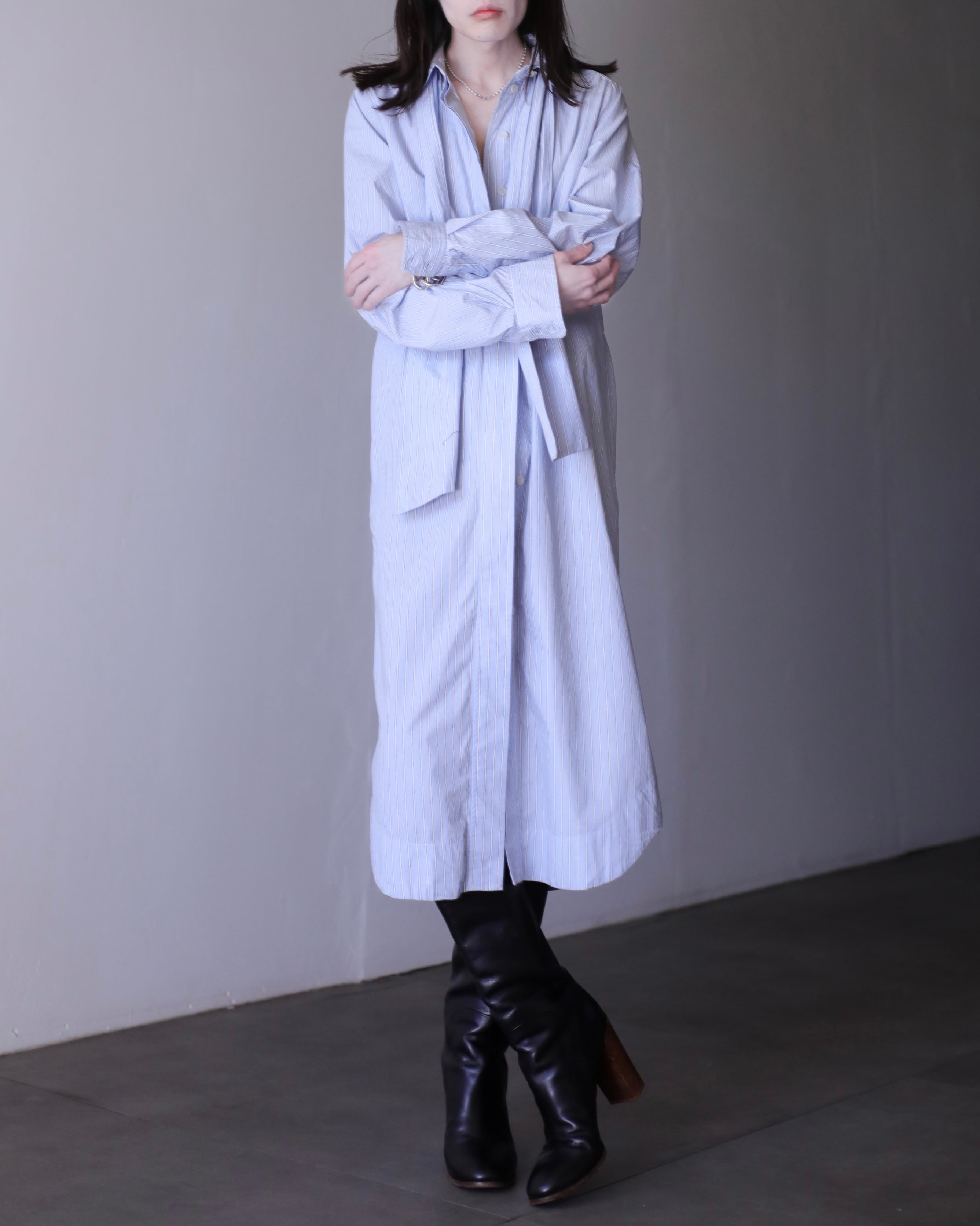 GANNI stripe "3D sode" belted design fly front long shirt dress