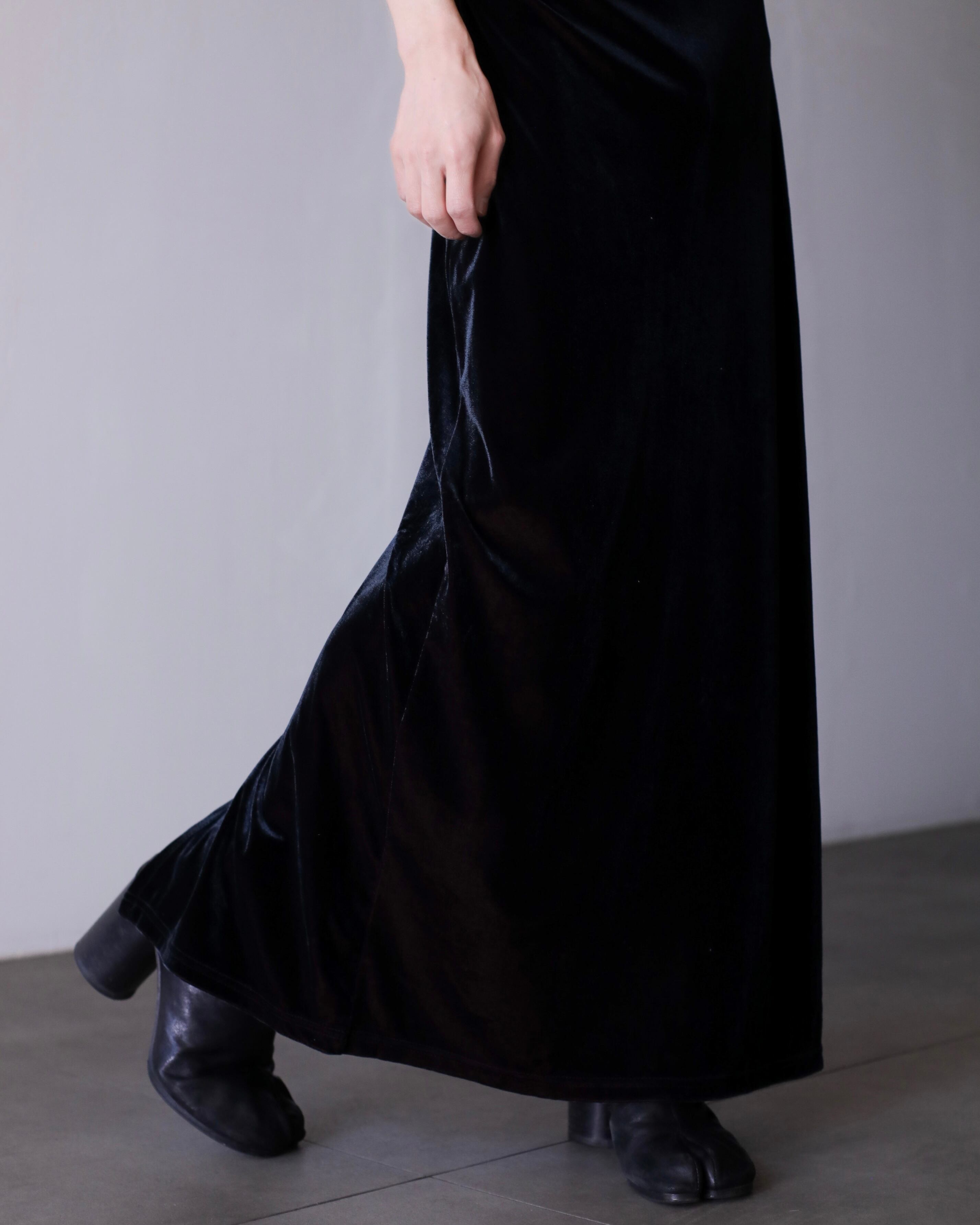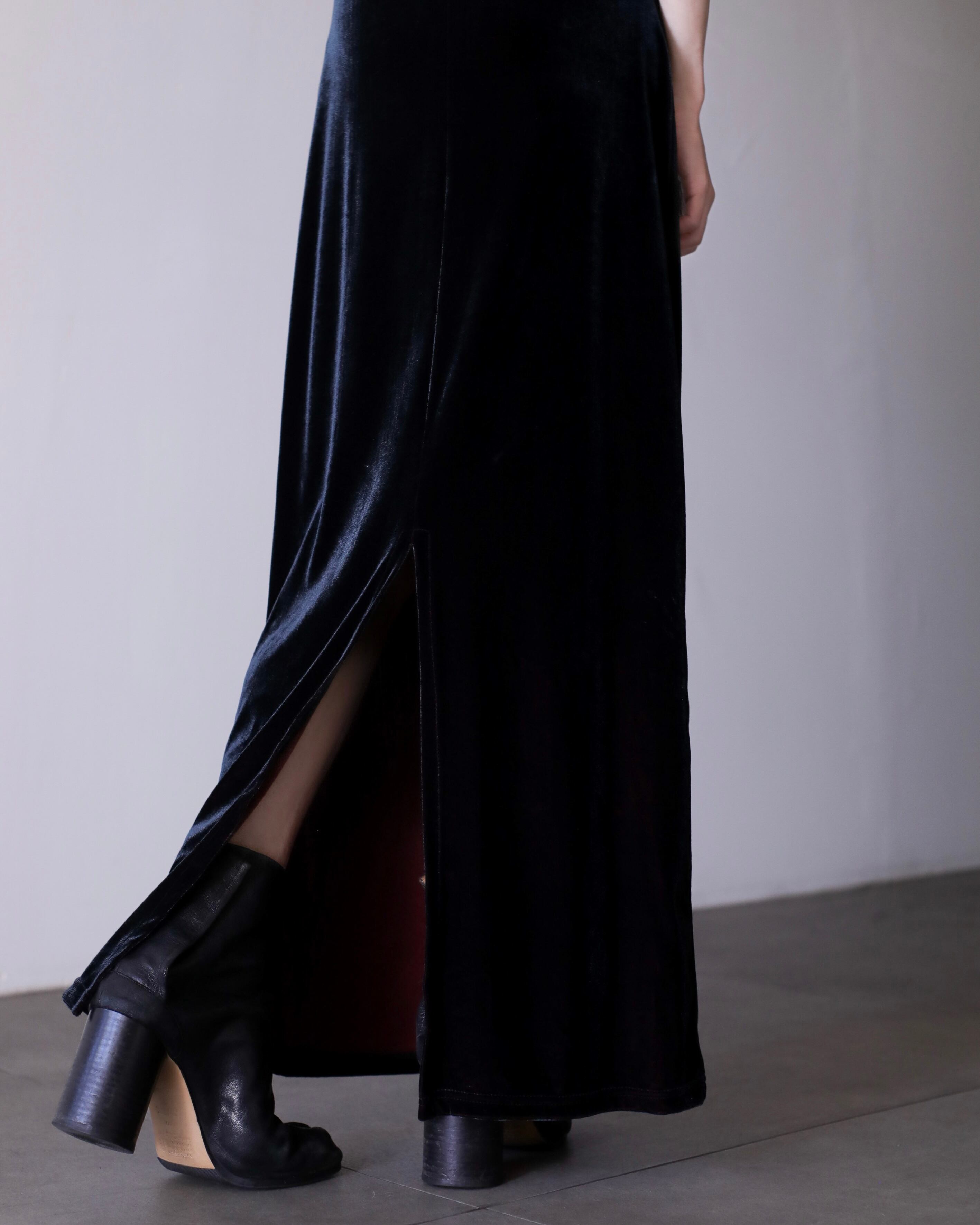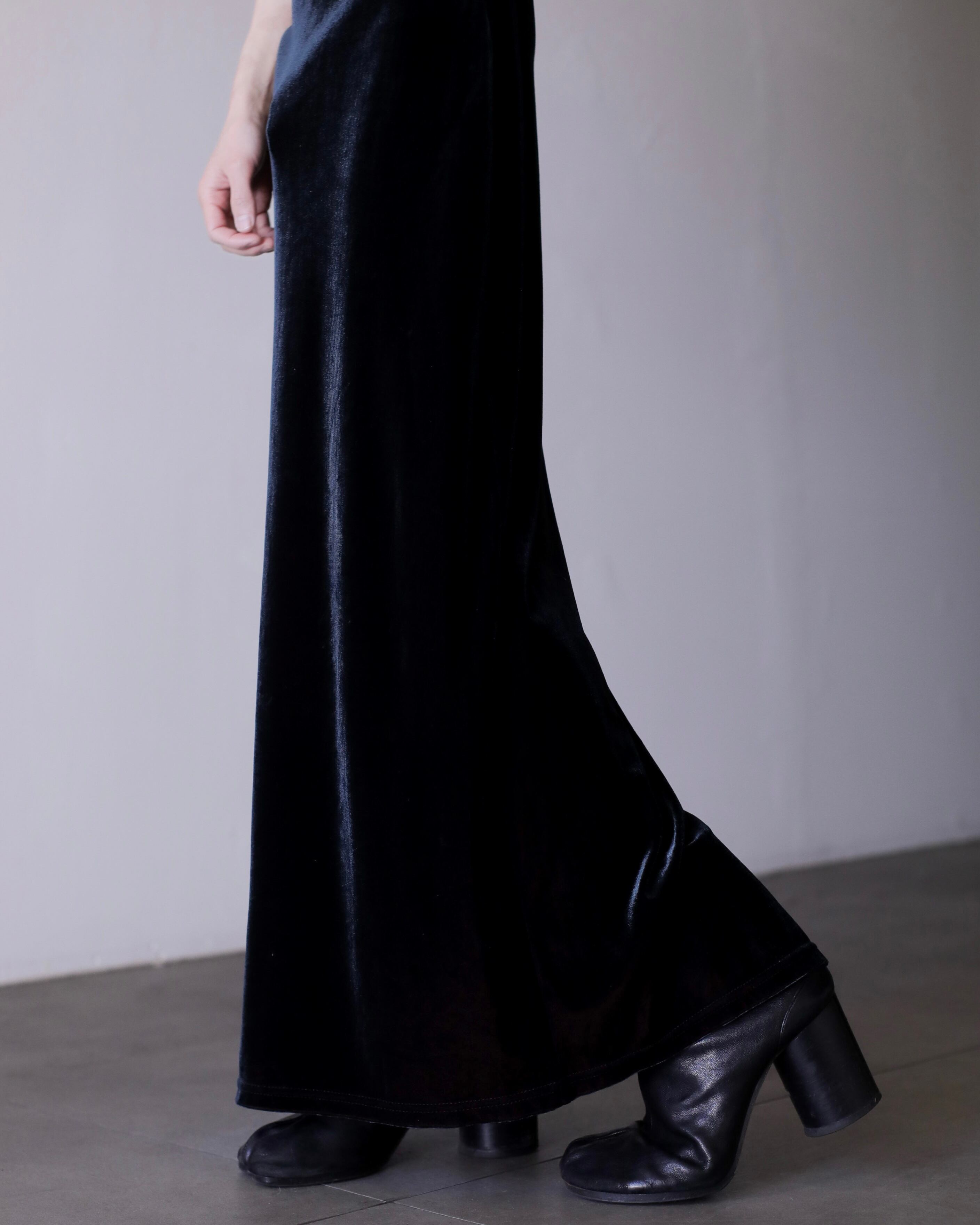 1990s tamamushi black velours maxi length dress one piece Made In France