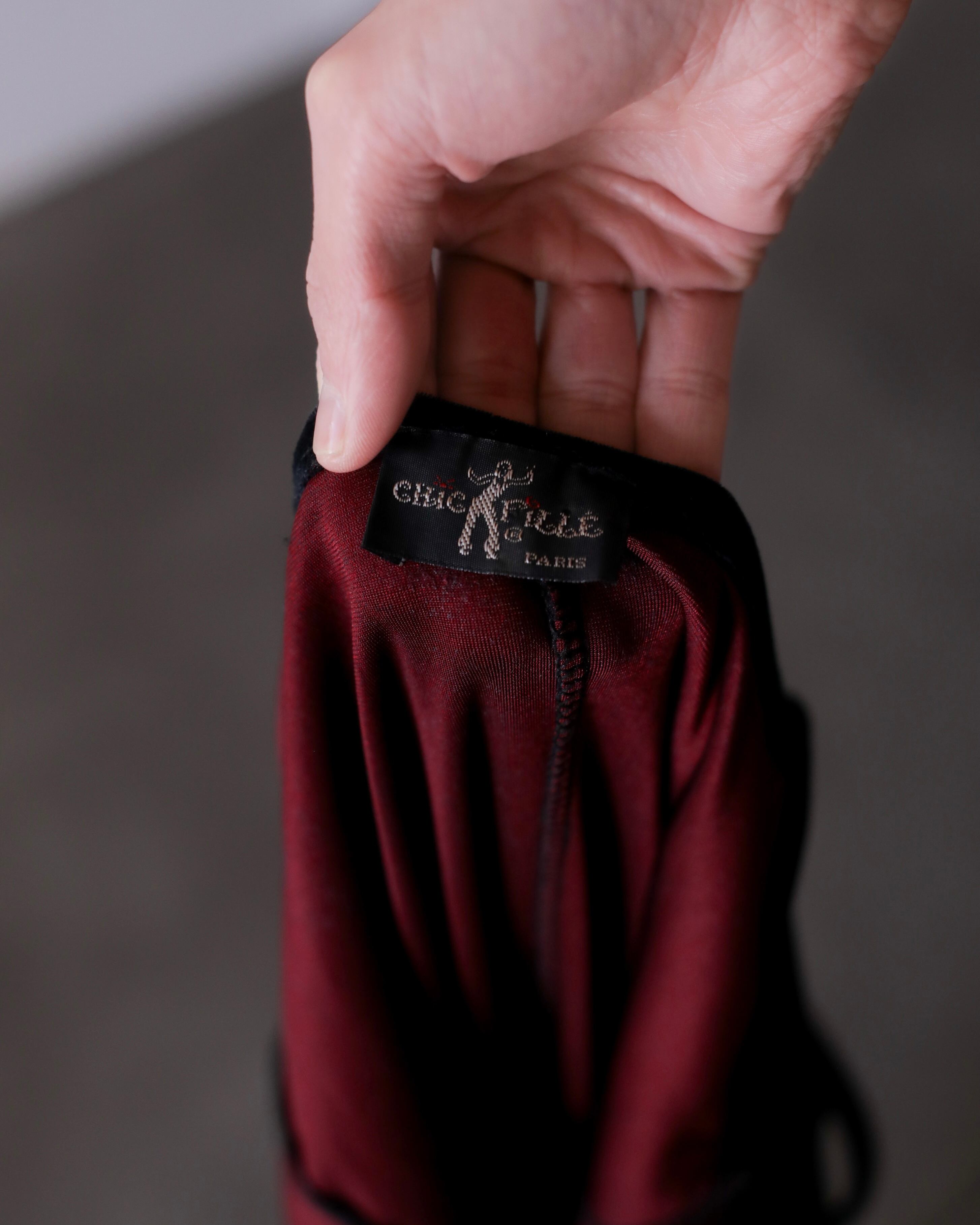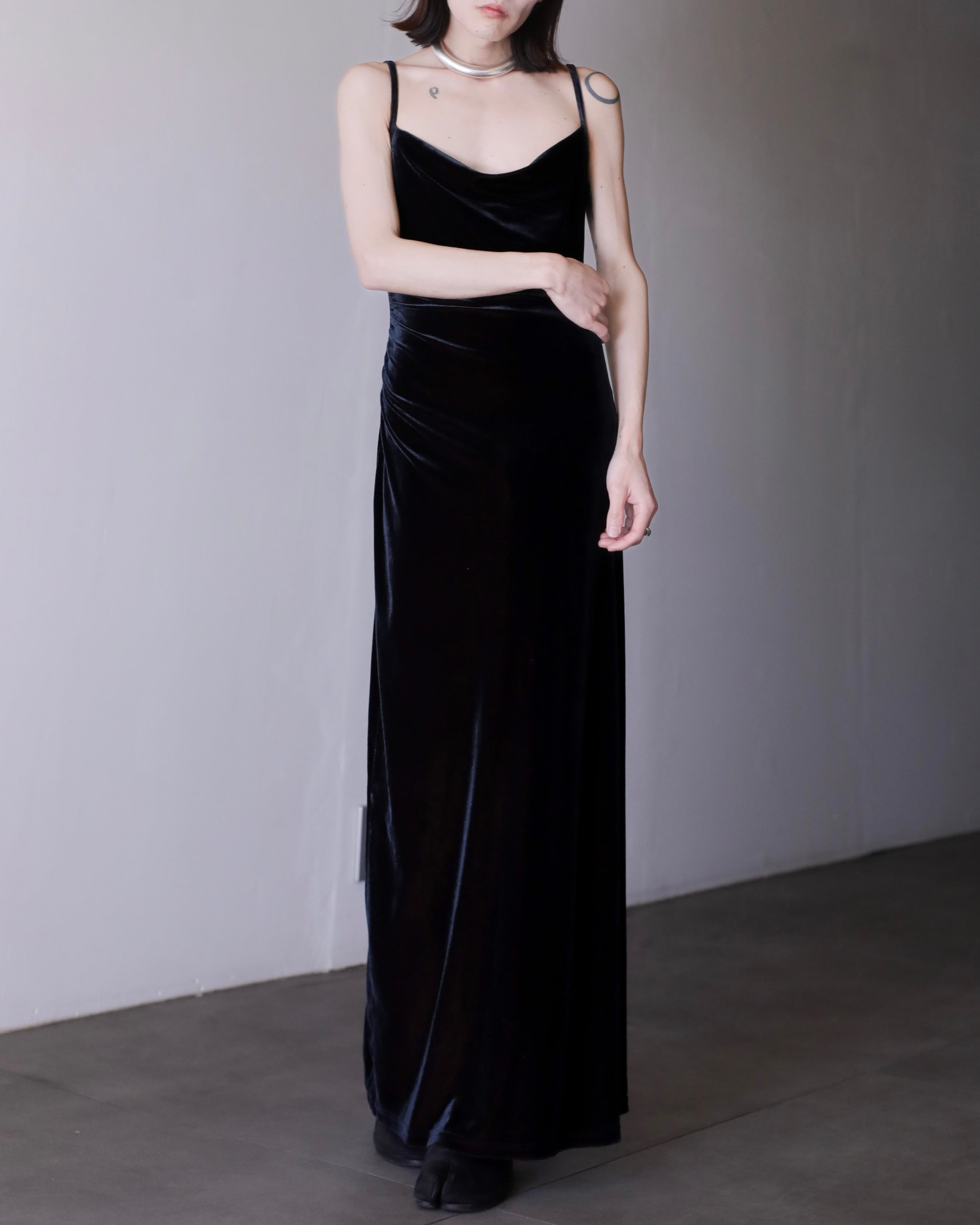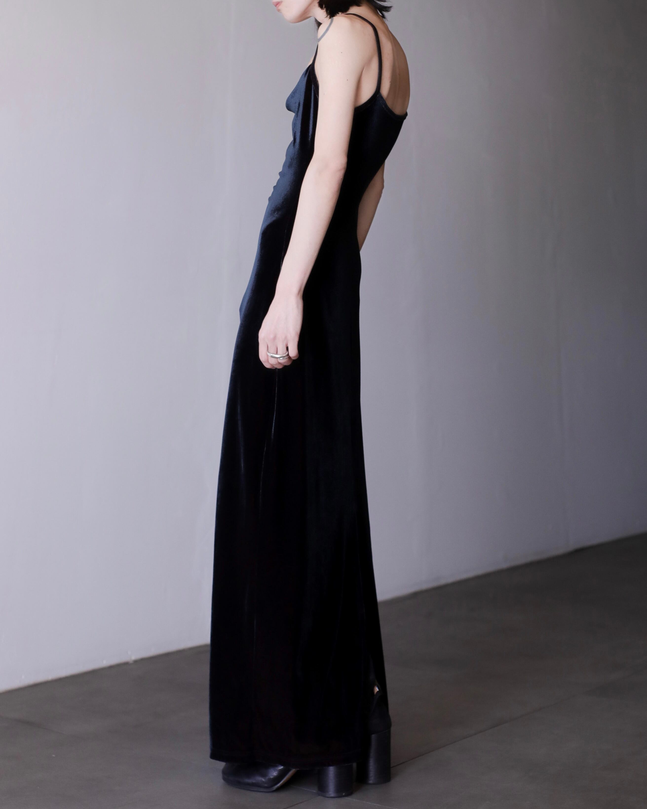 1990s tamamushi black velours maxi length dress one piece Made In France