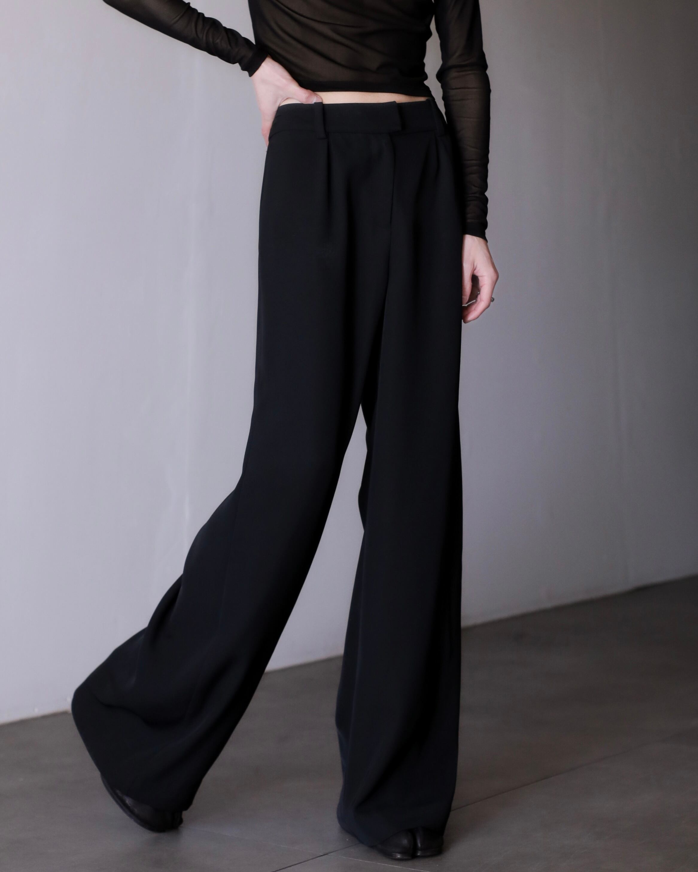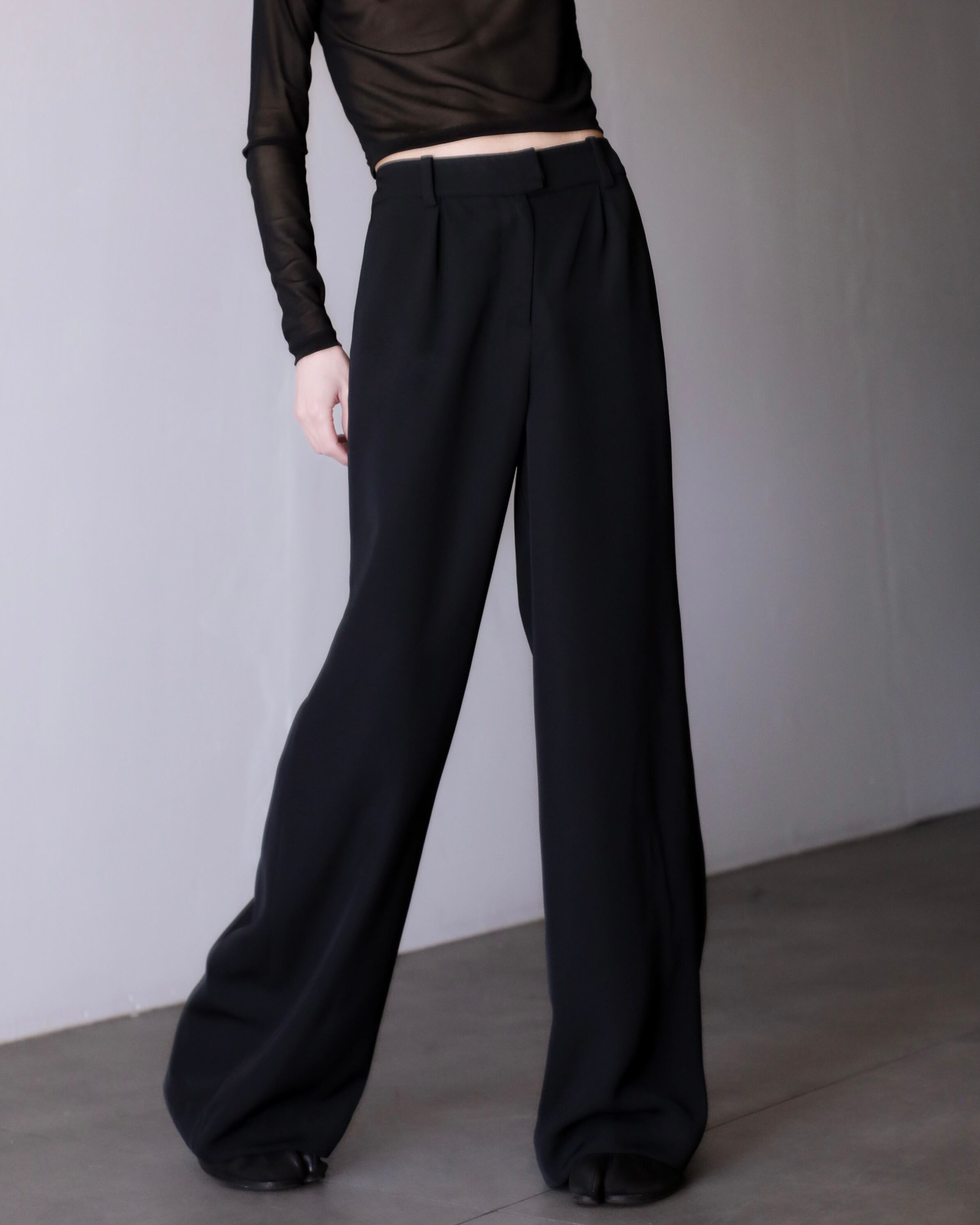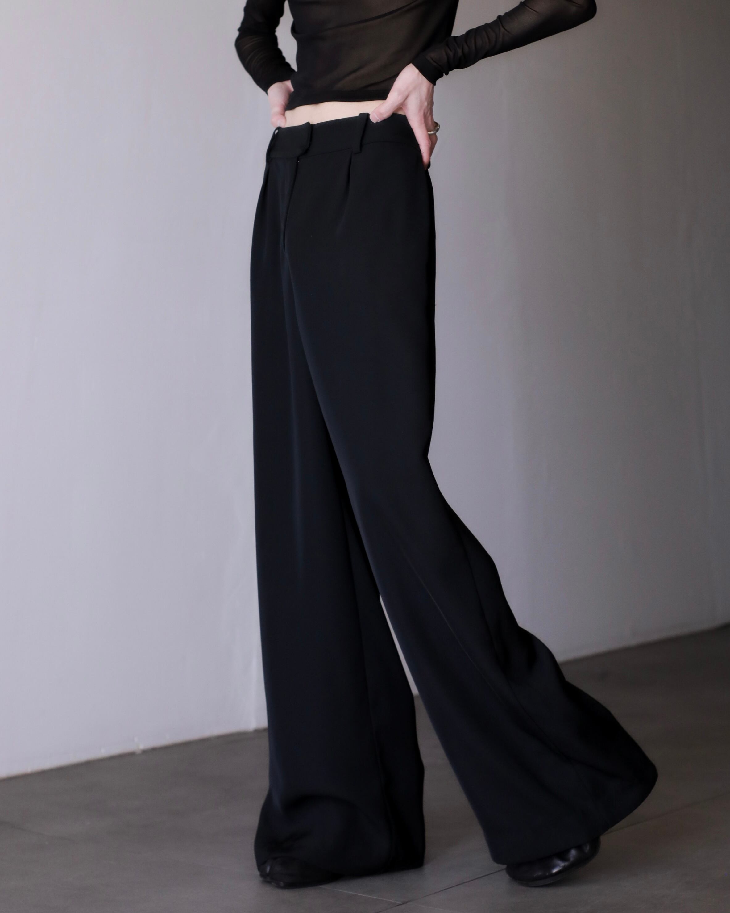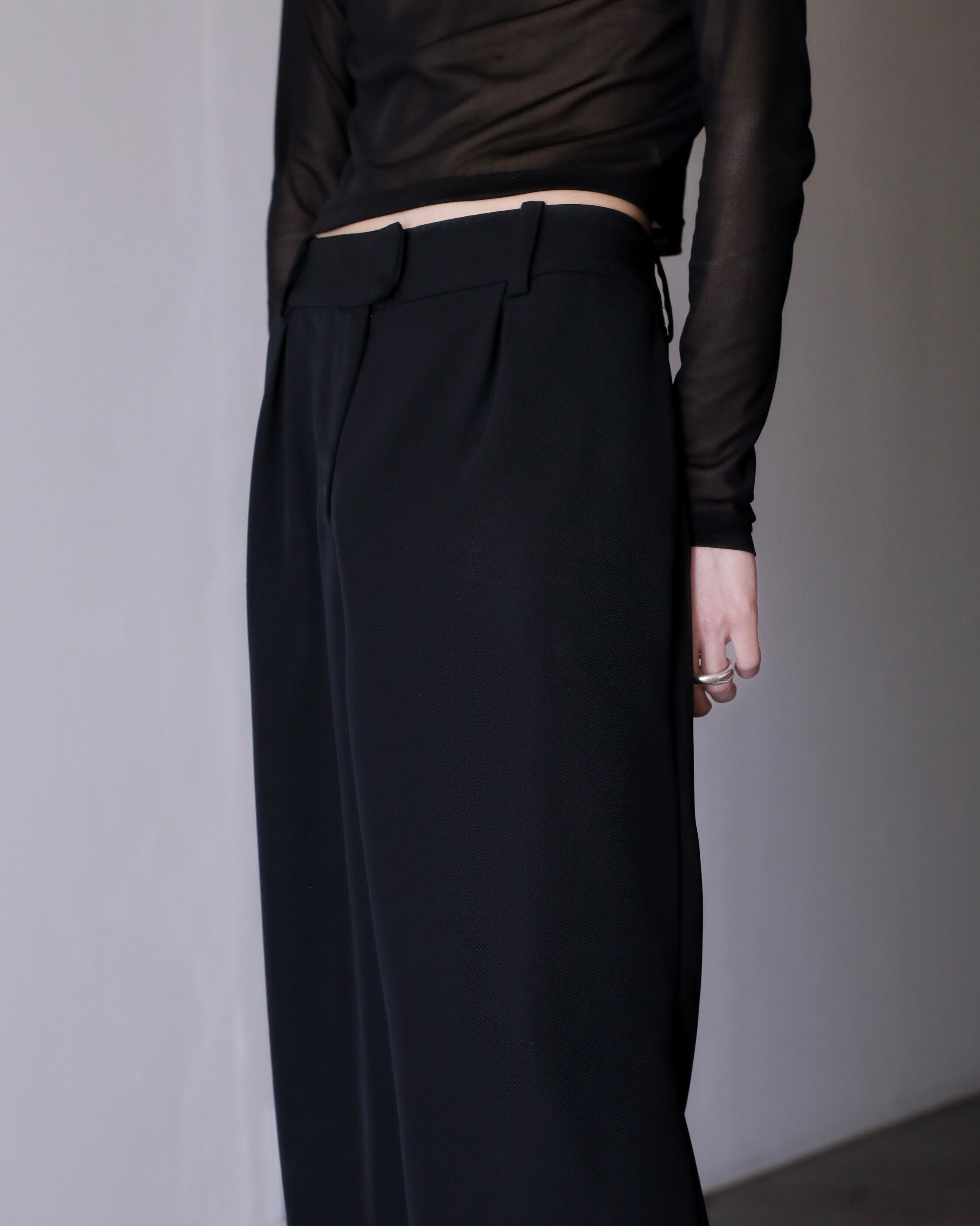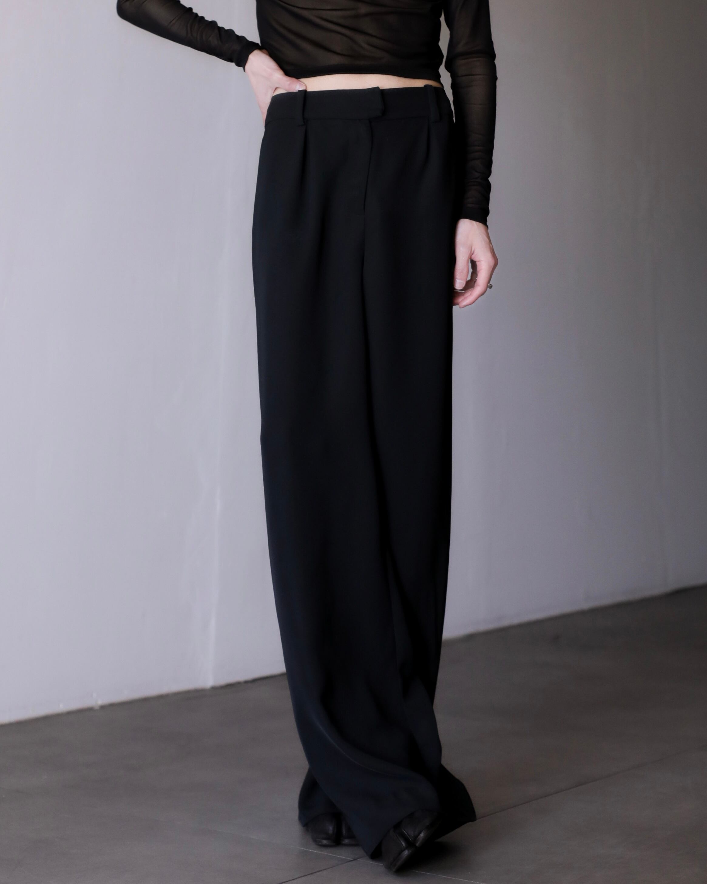 hi-waist tuck design wide straight slacks toromi fabric