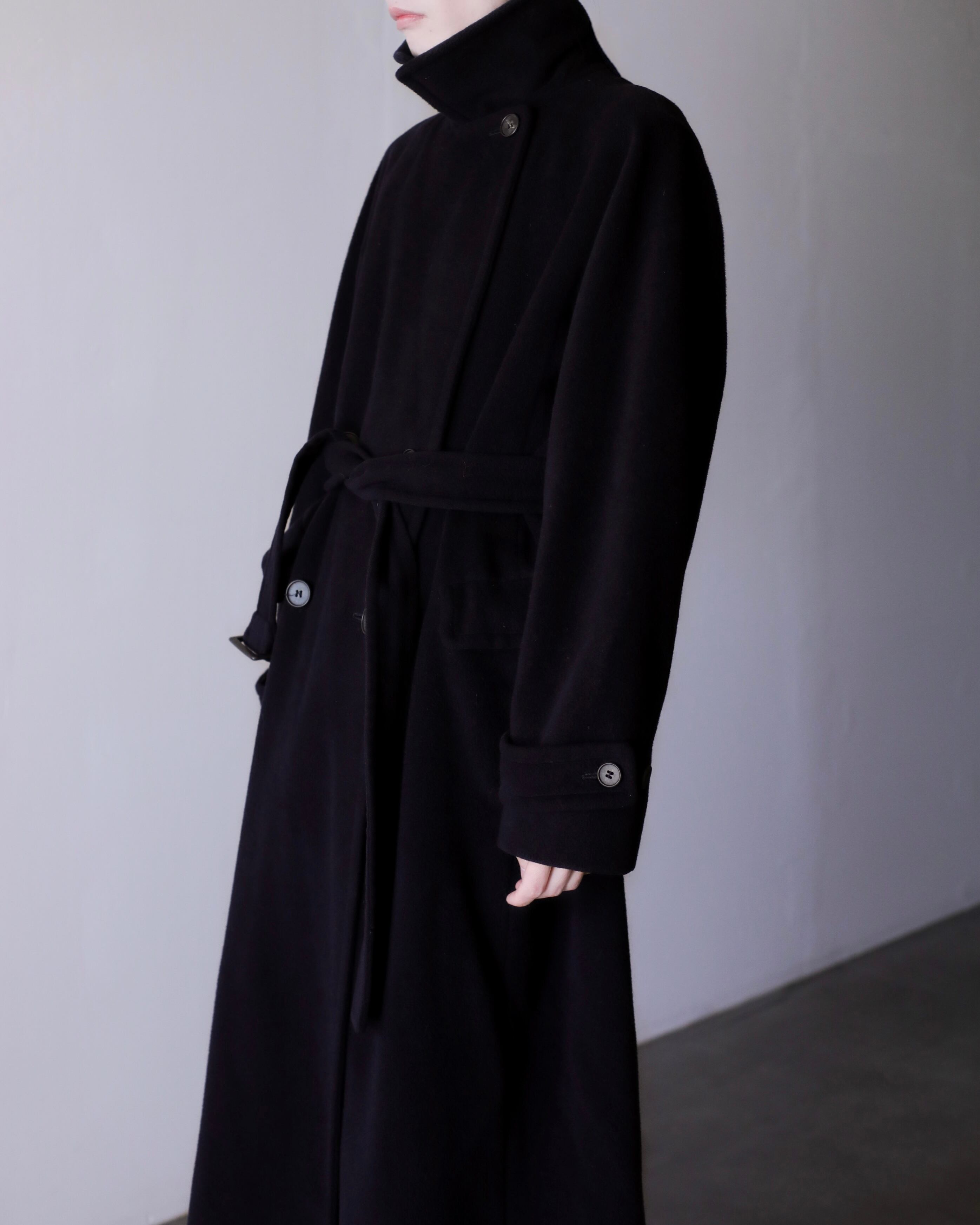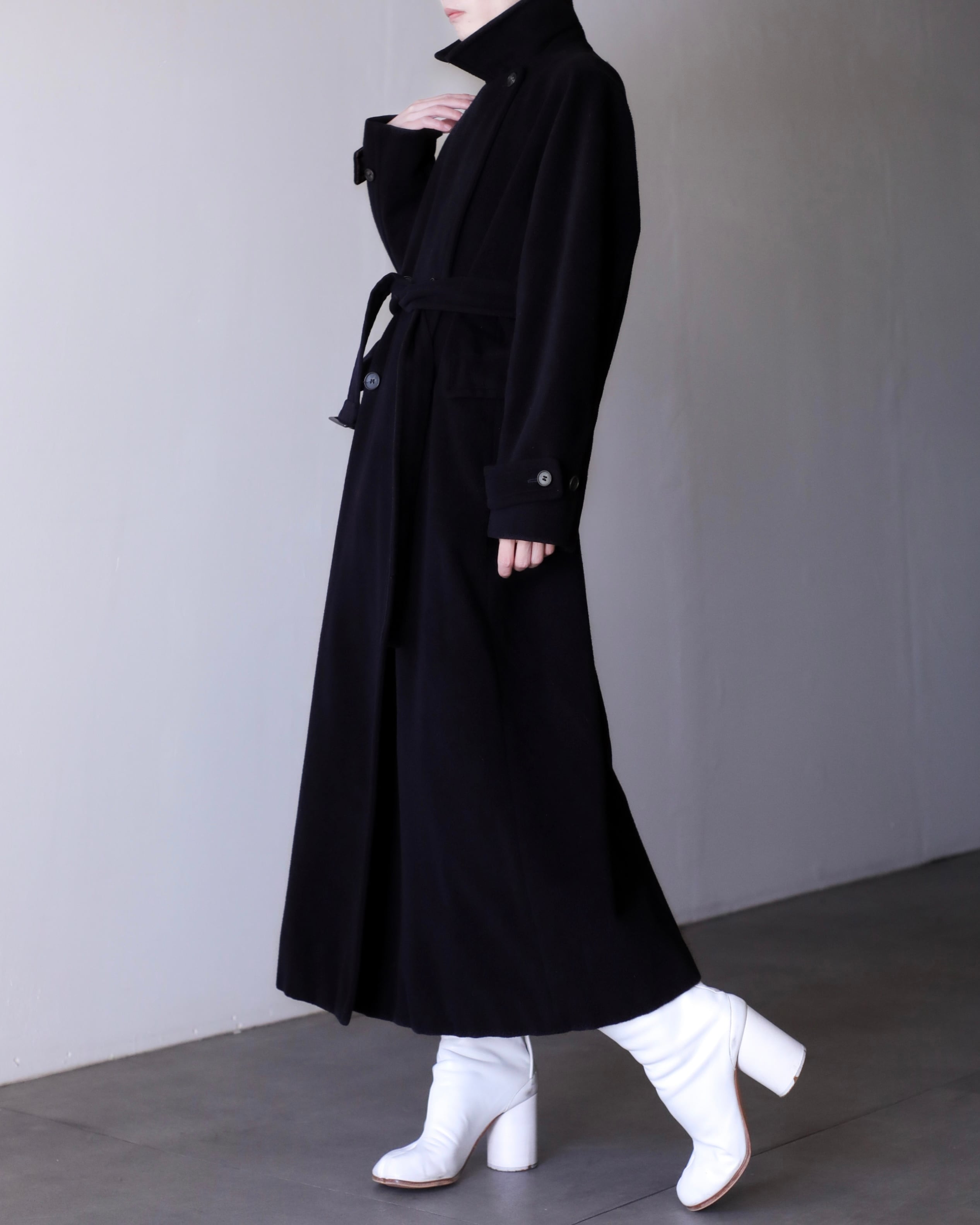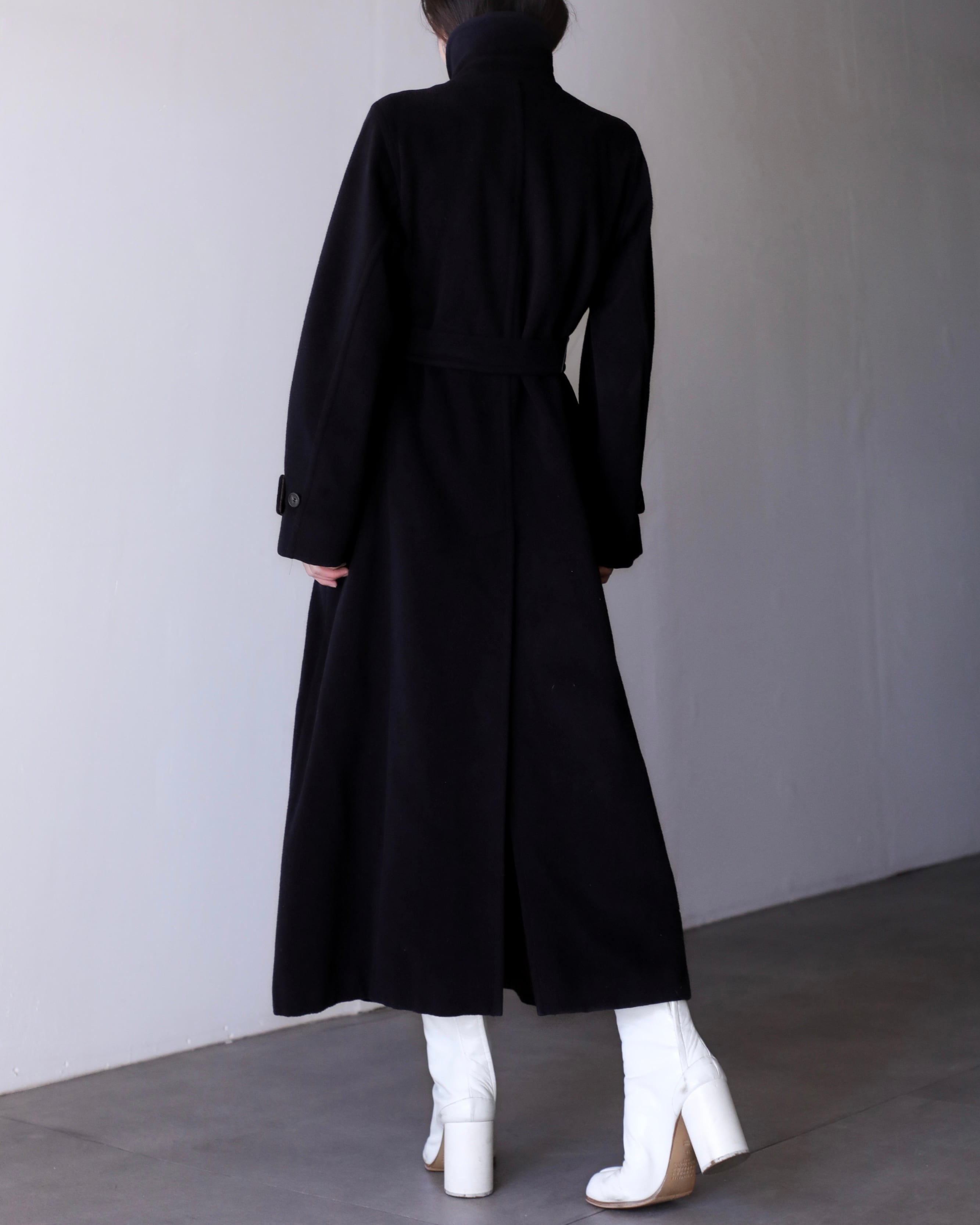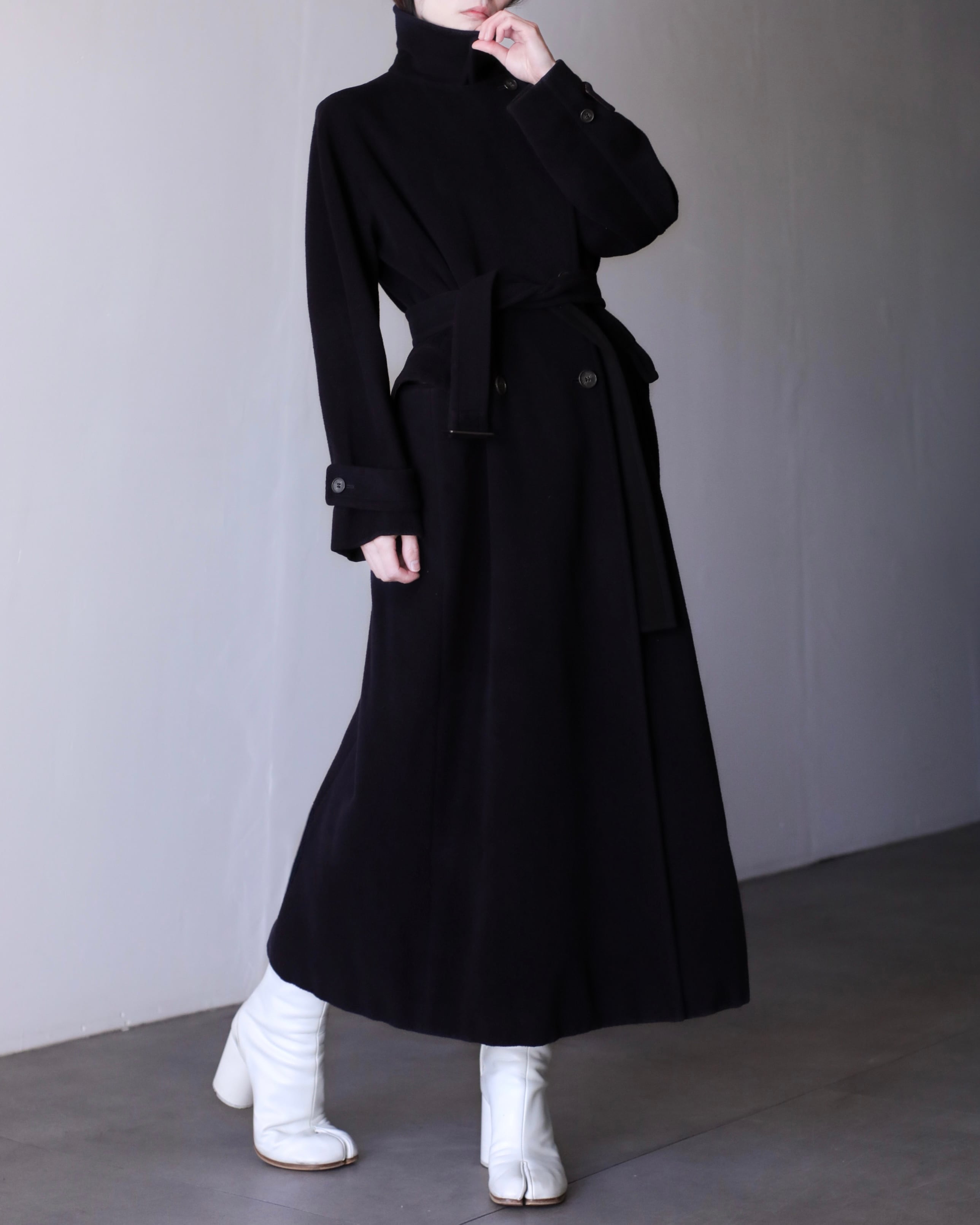 1990s Max Mara cashmere mix stand collar belted design maxi coat made in Italy