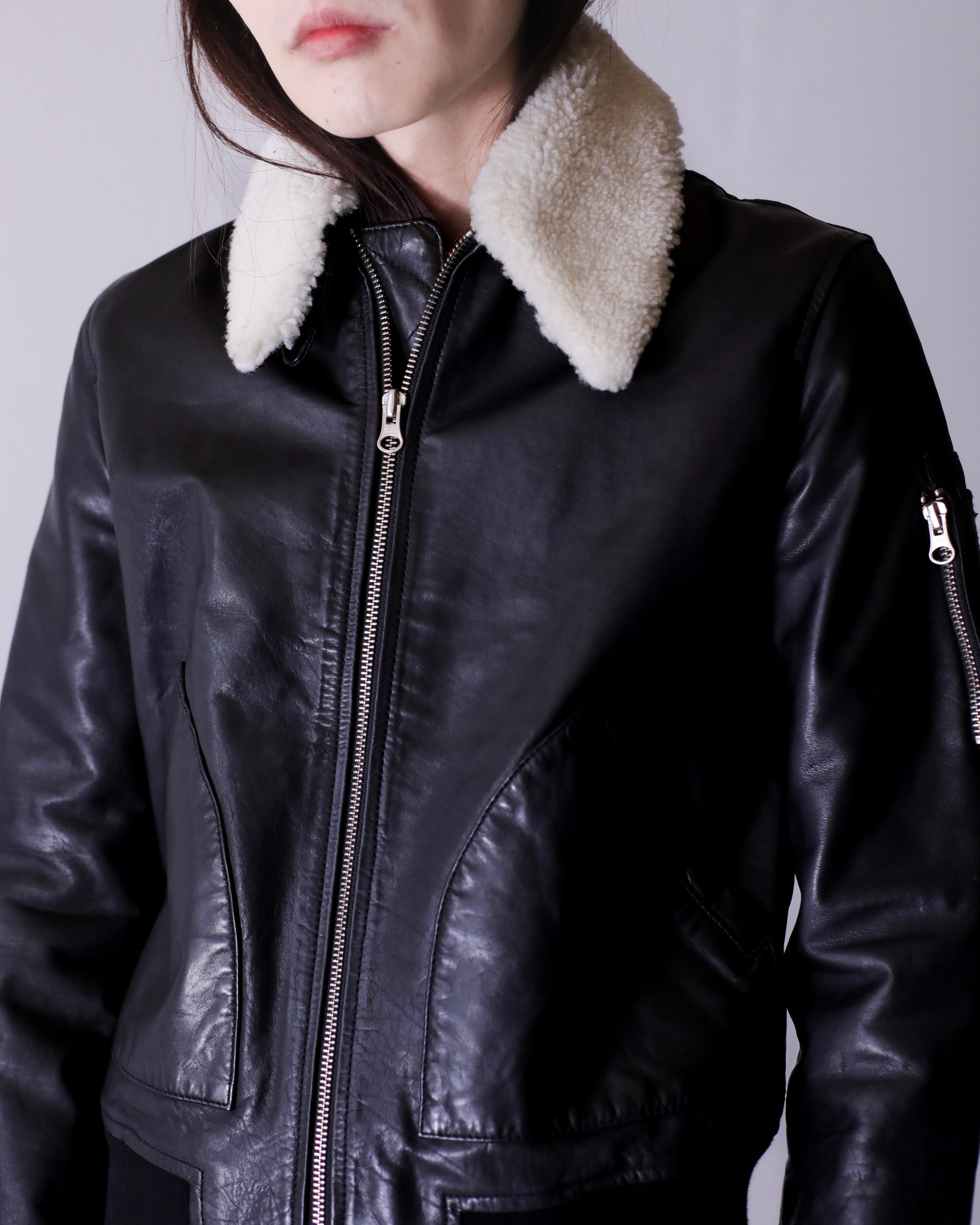 MM⑥ Maison Margiela leather bomber jacket fur switching