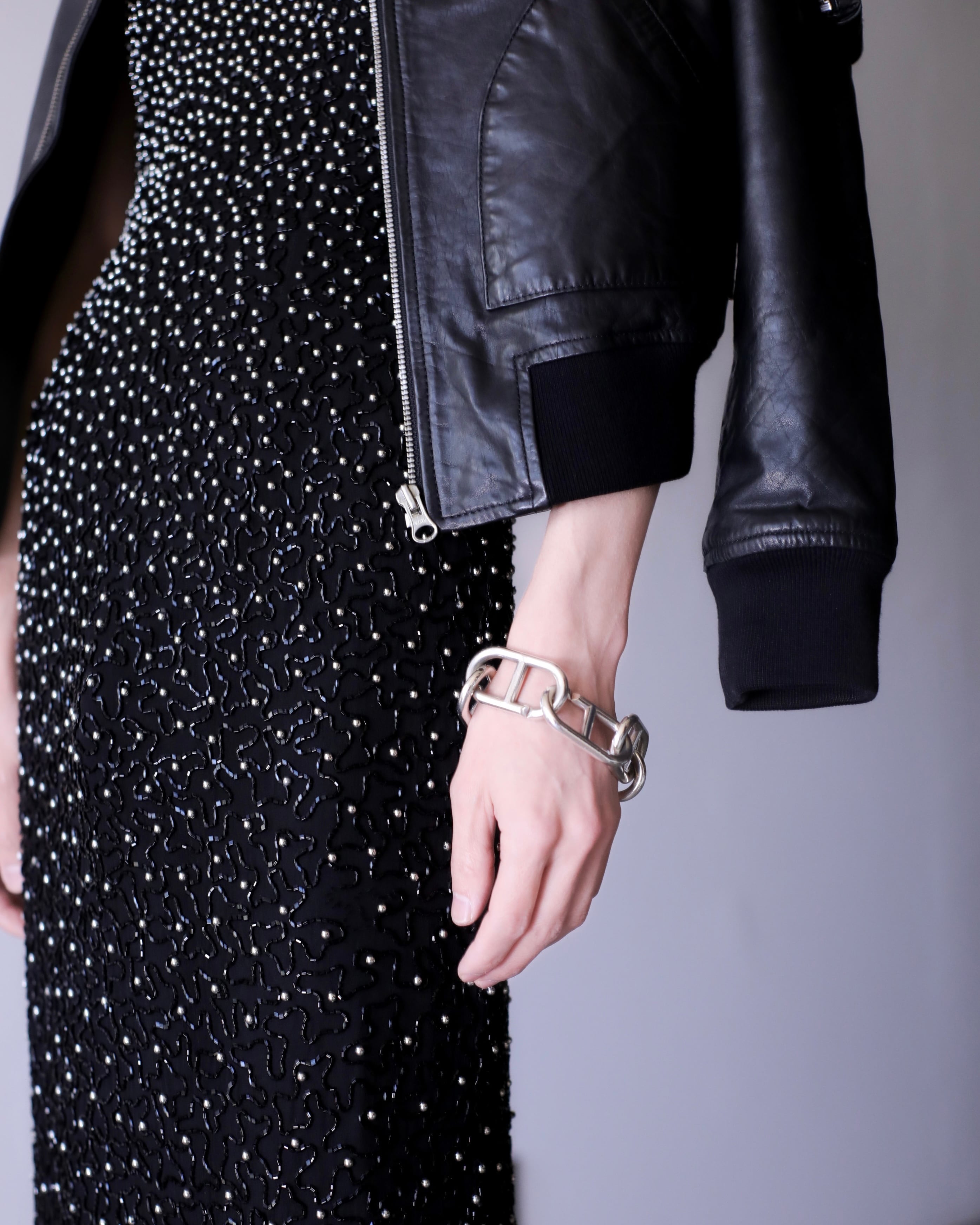 無機質な印象のレザーに