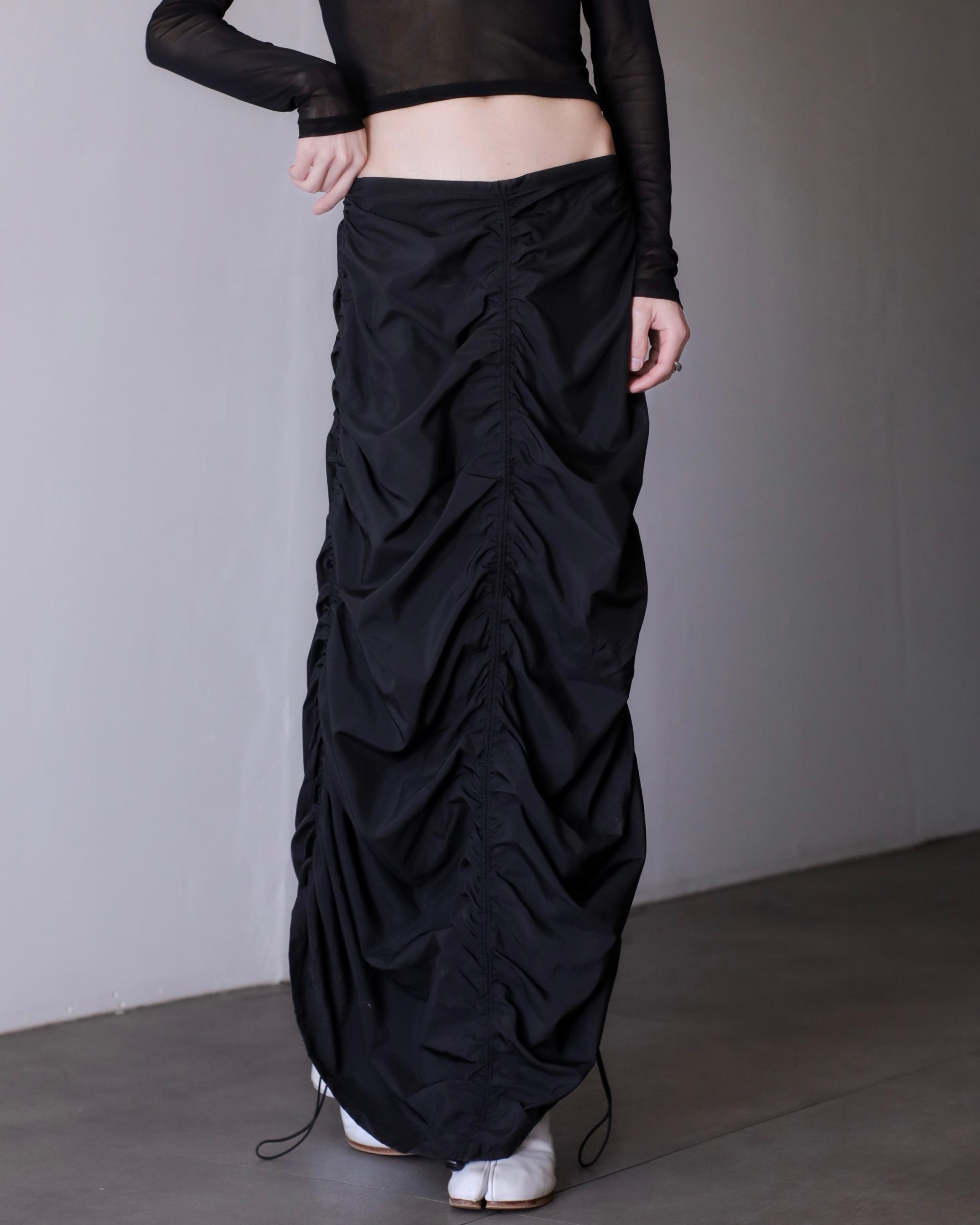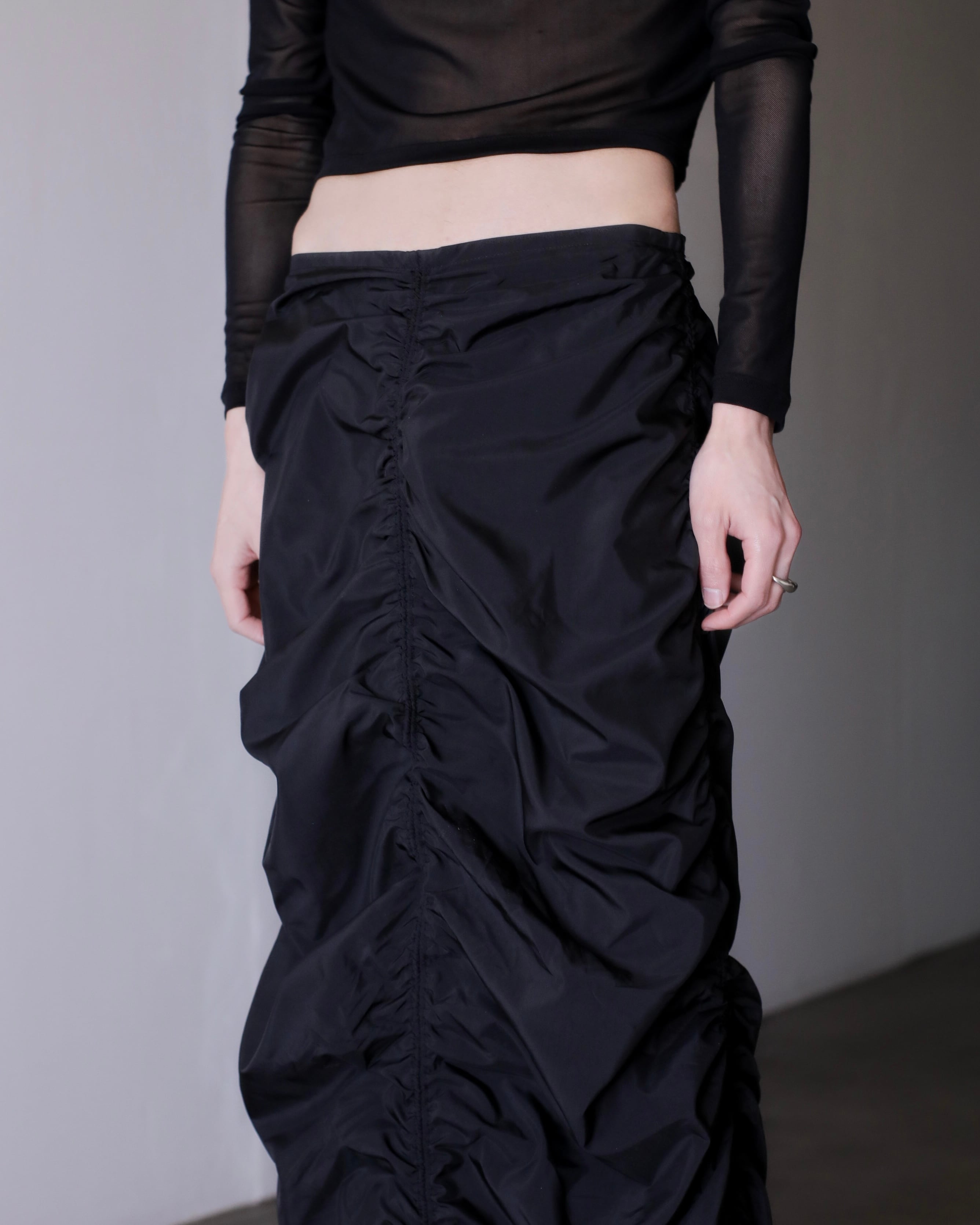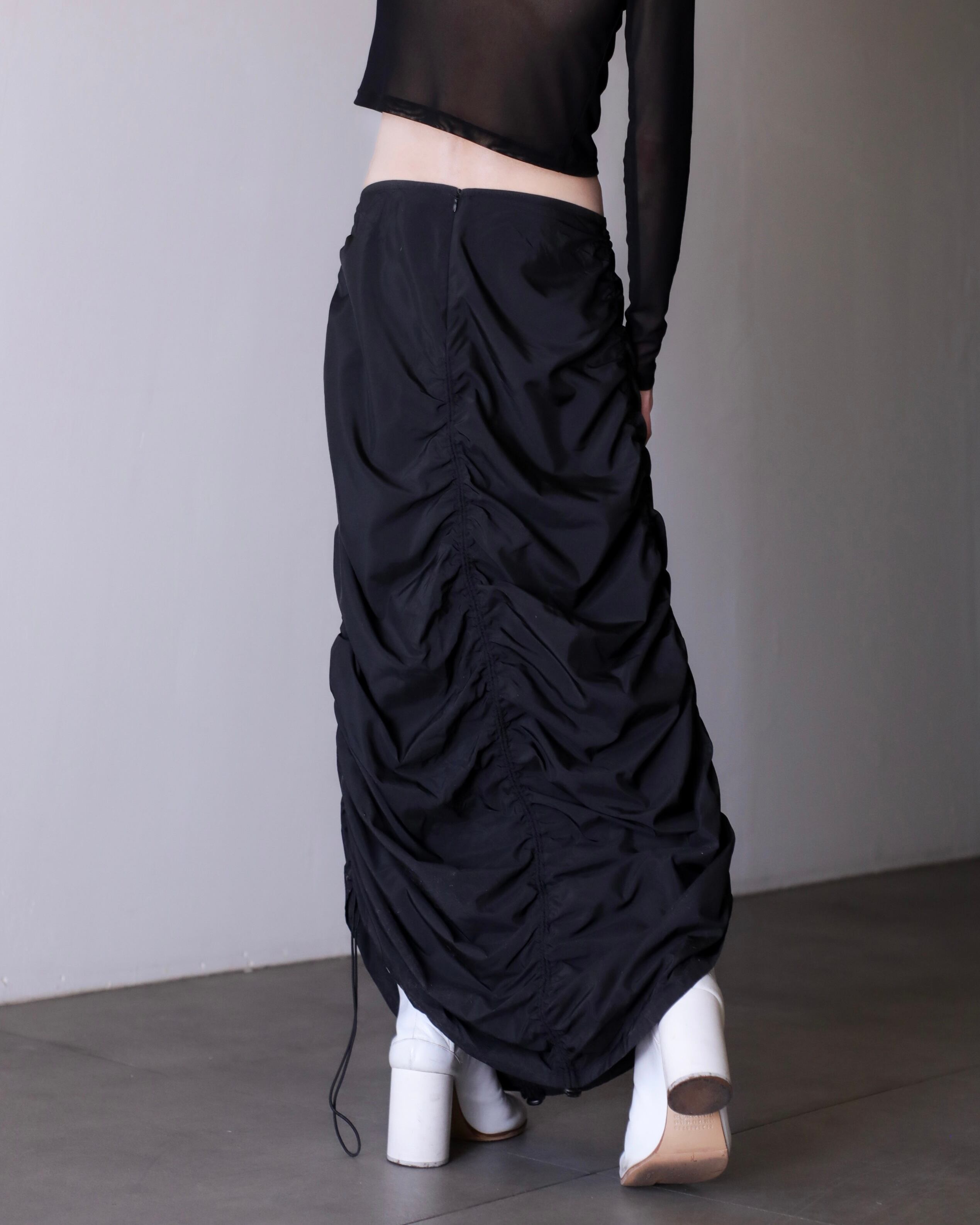 deadstock euro tech shirring draw design maxi skirt