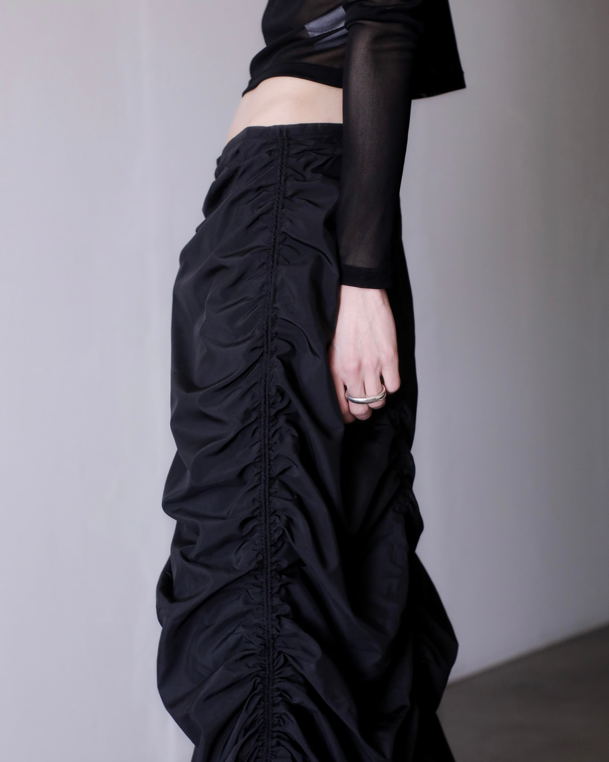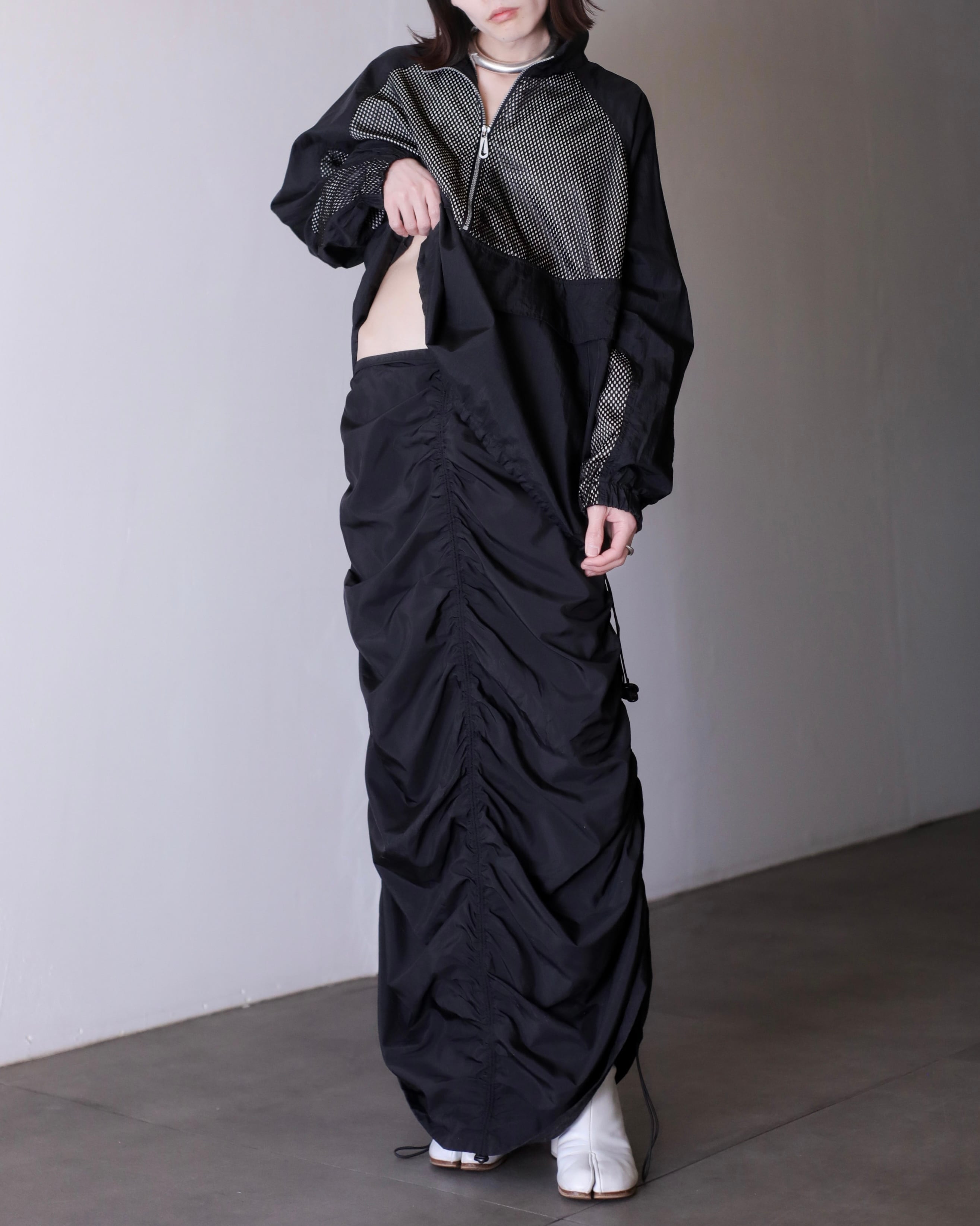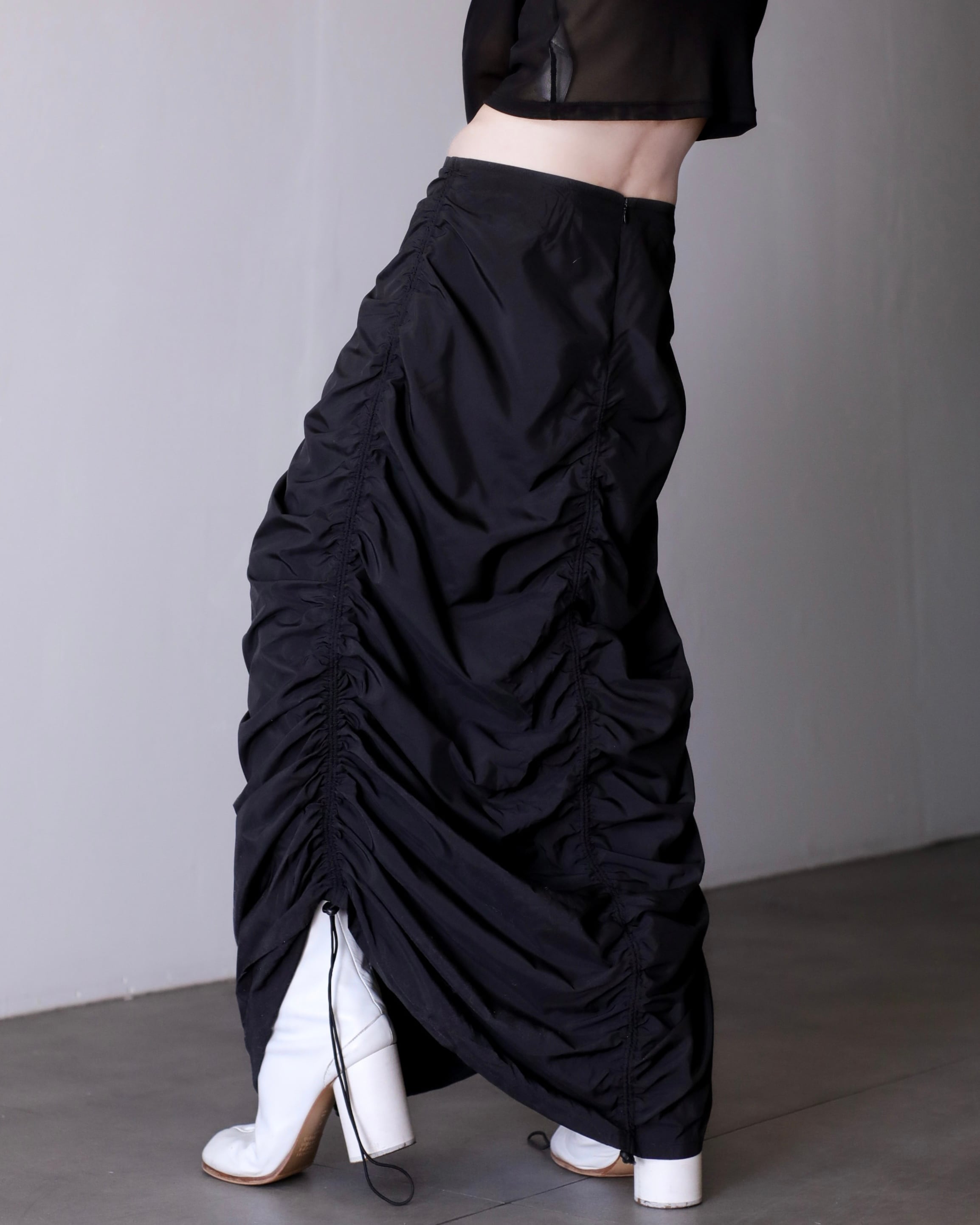 deadstock euro tech shirring draw design maxi skirt