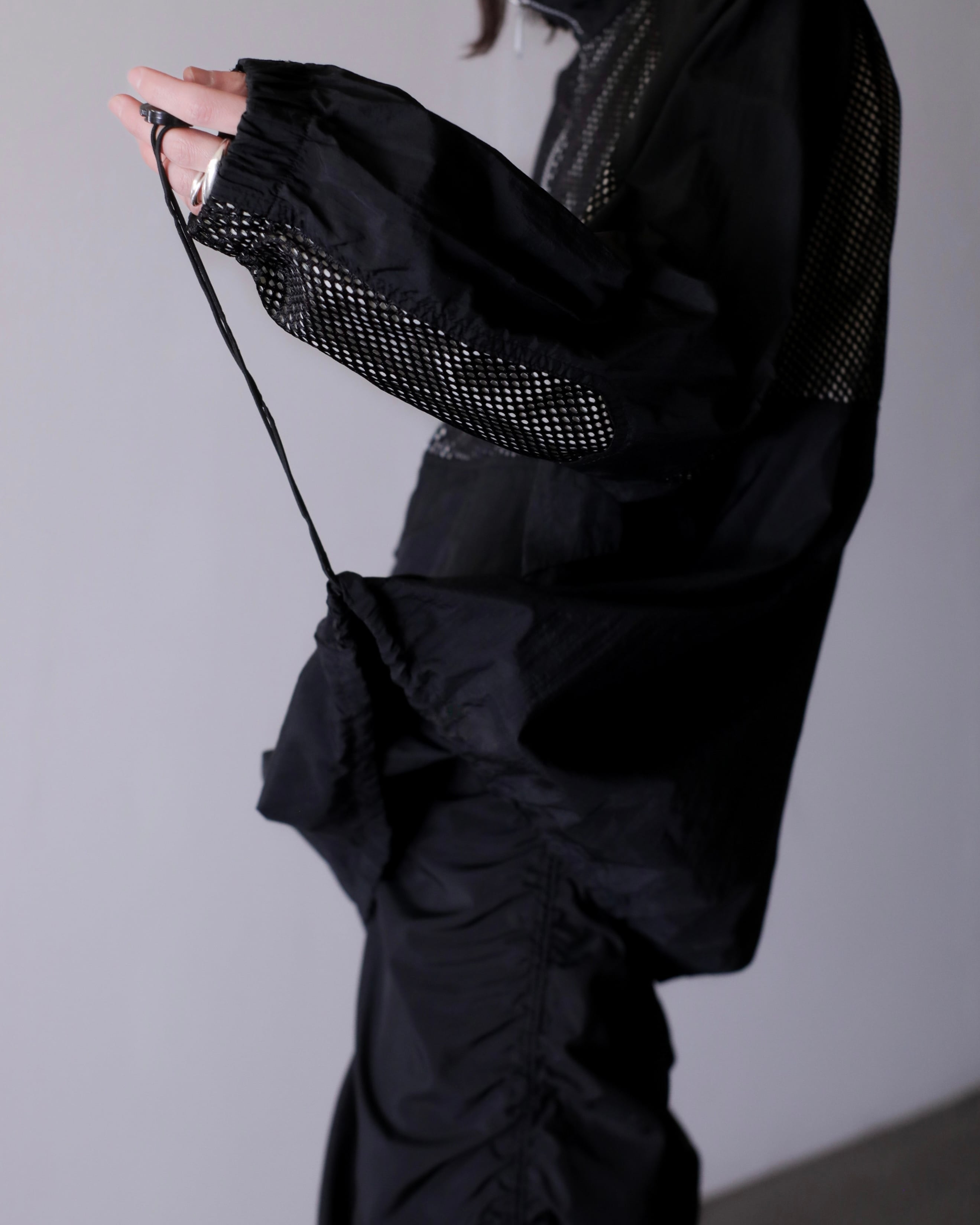 オーバーなシルエットに裾ドローの絞れるタイプで