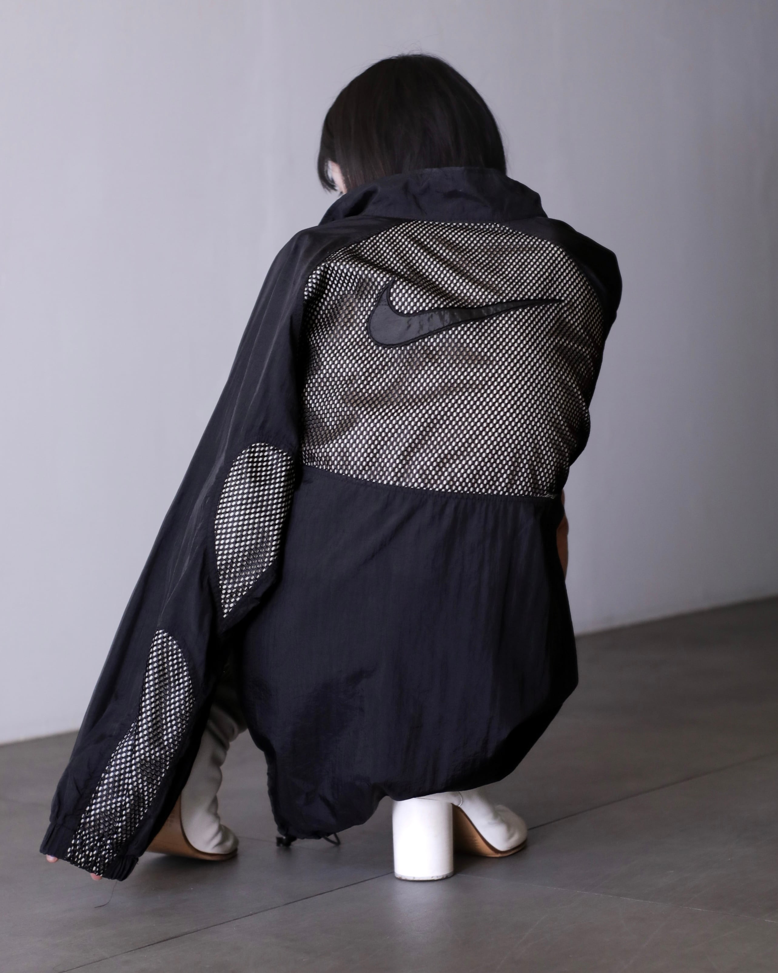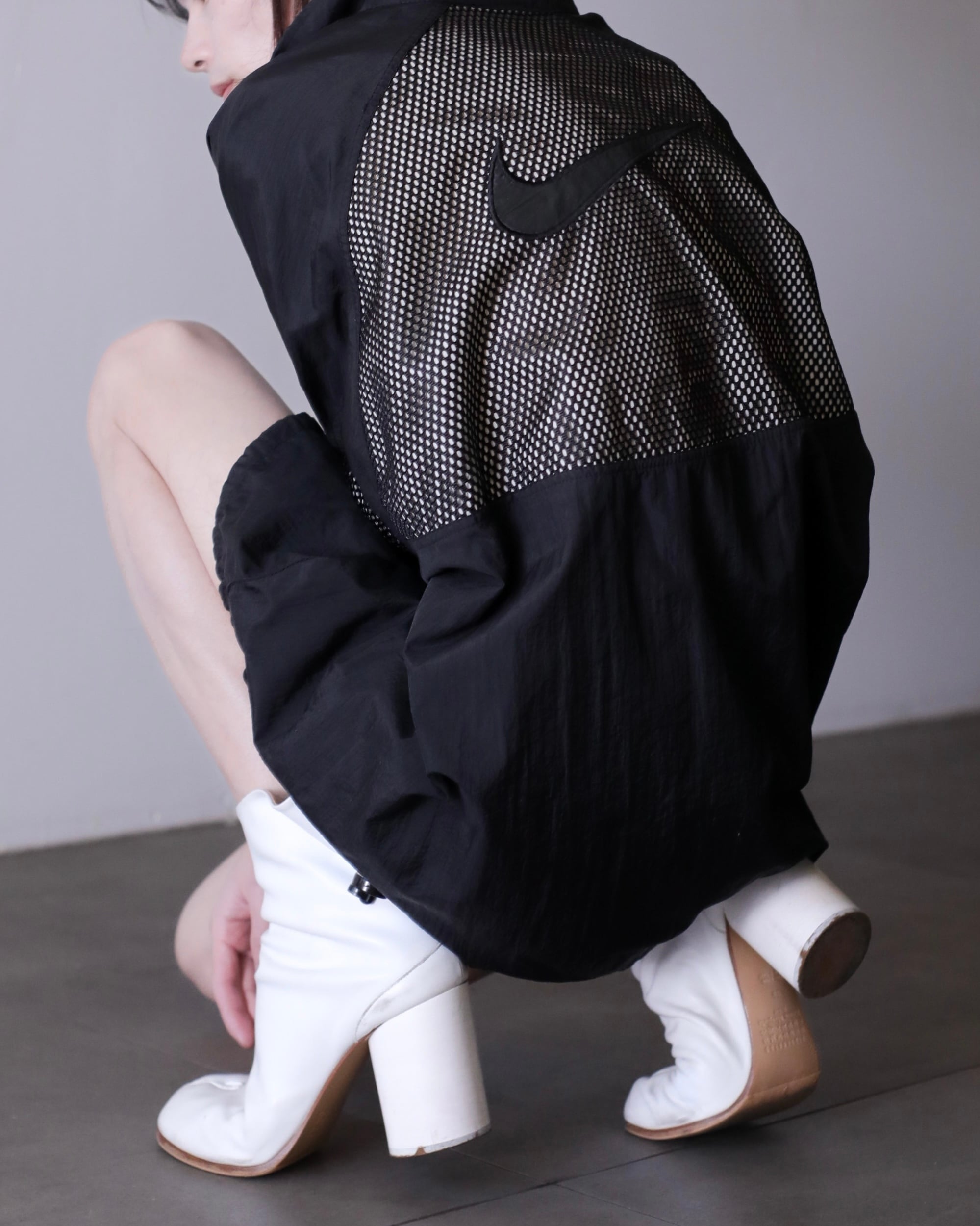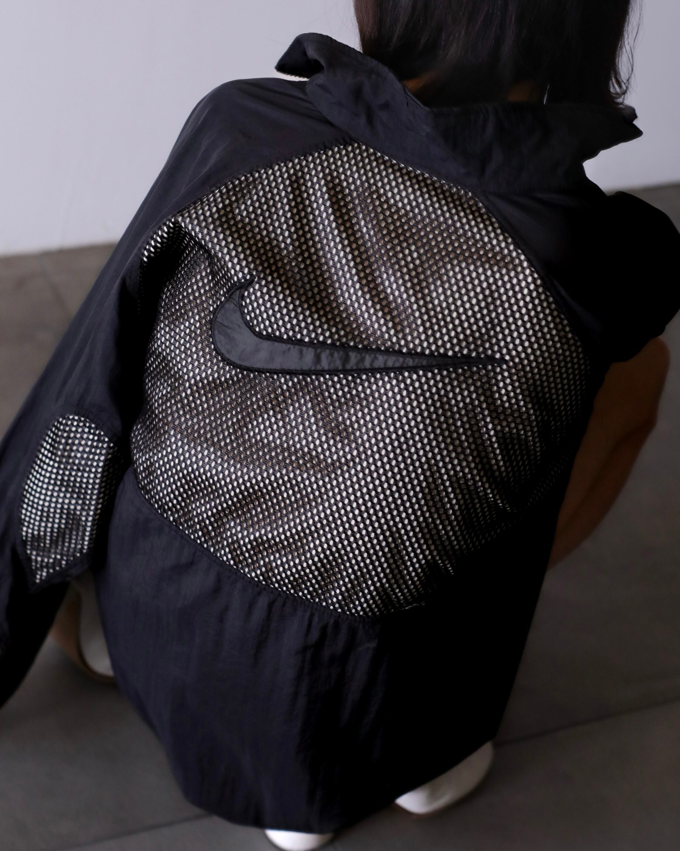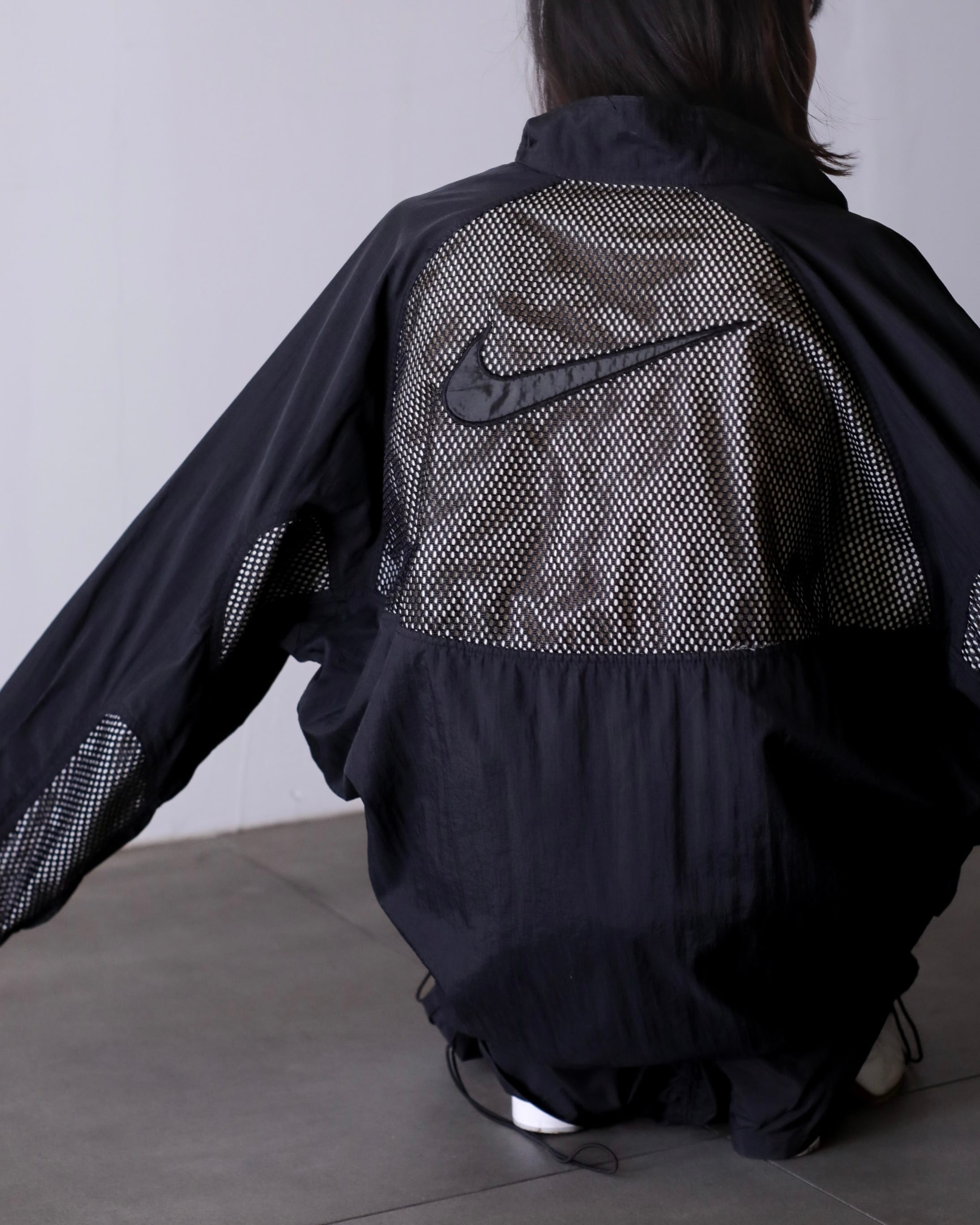 1990s NIKE big swoosh mesh layered design nylon half zip anorak top