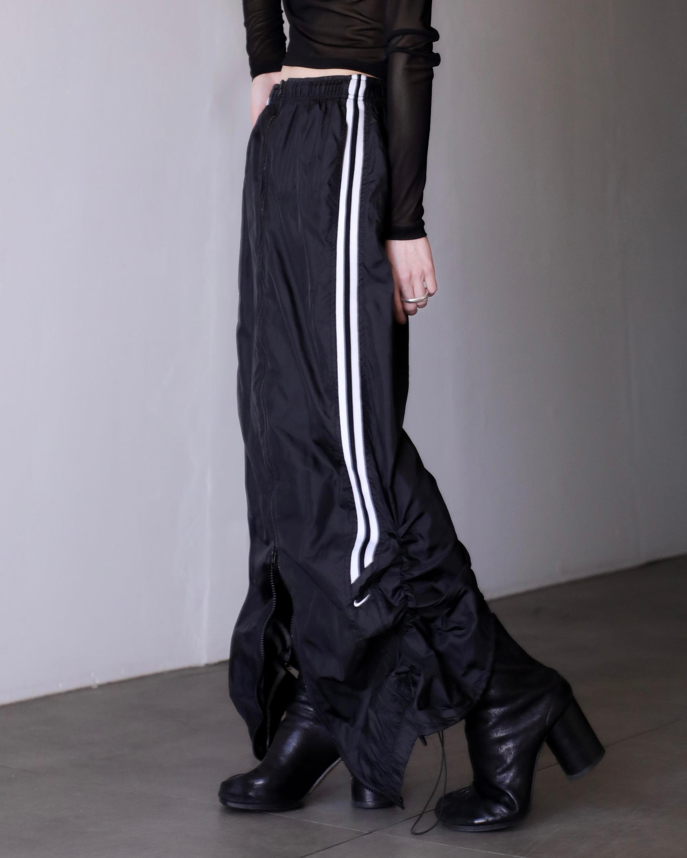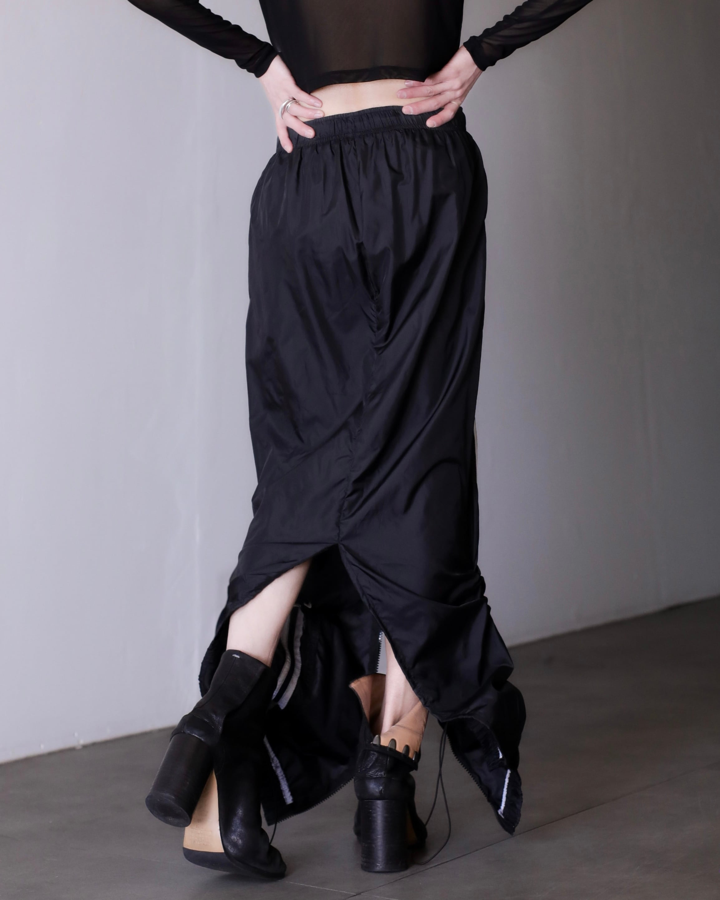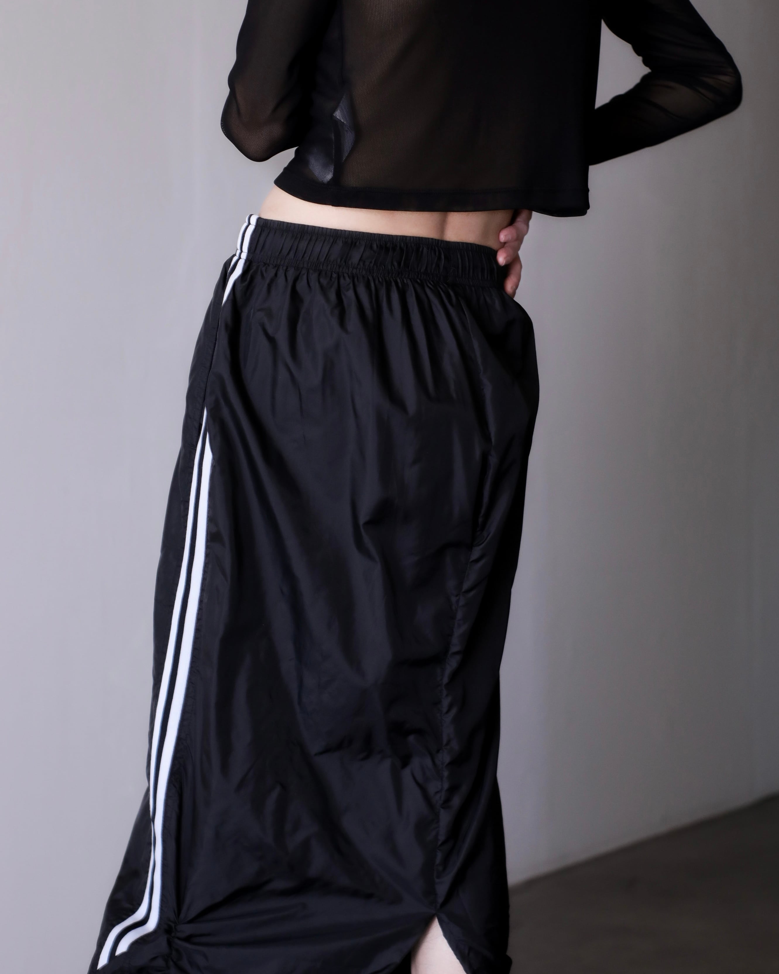 1990s NIKE nylon tech drawstring design center zip maxi skirt