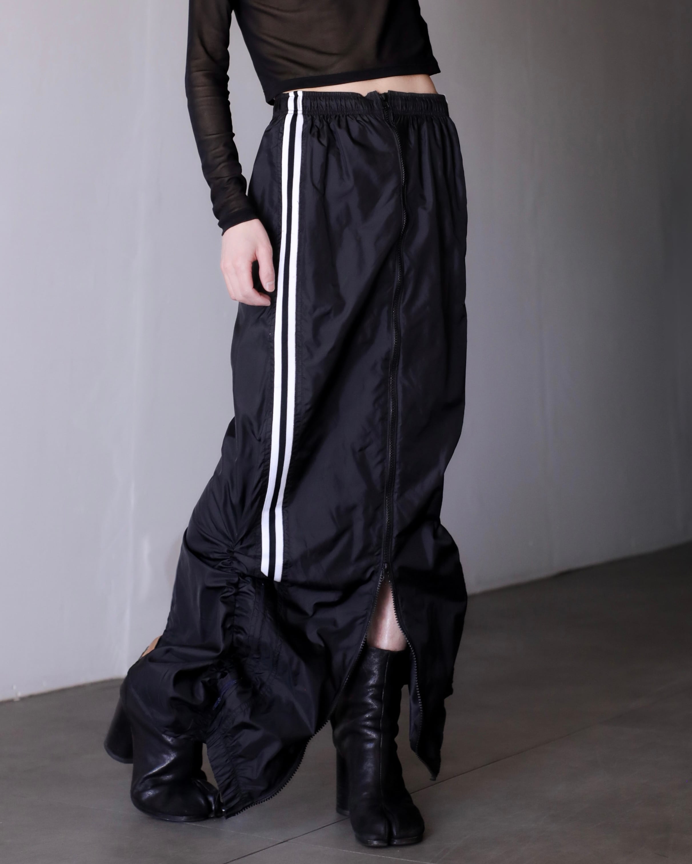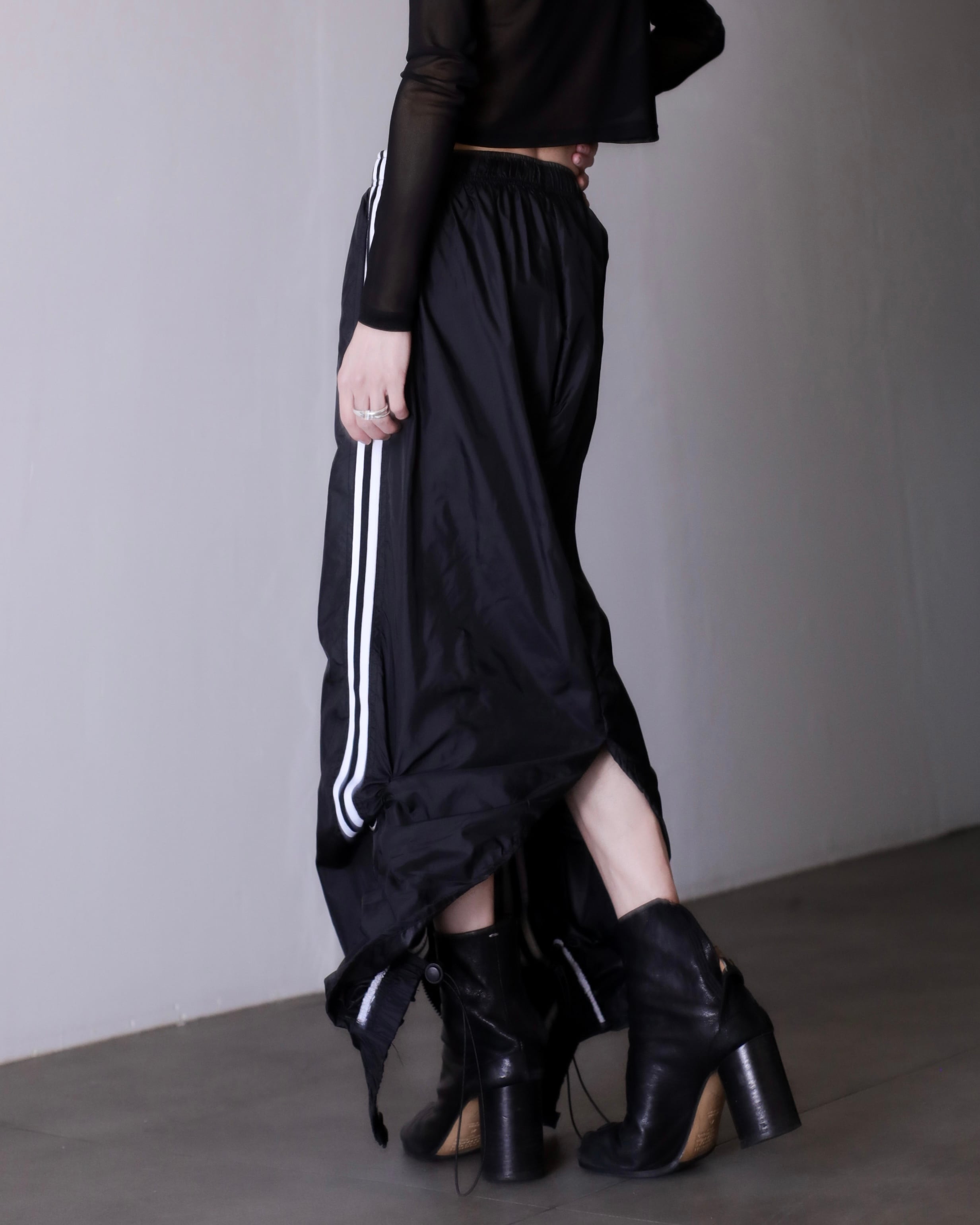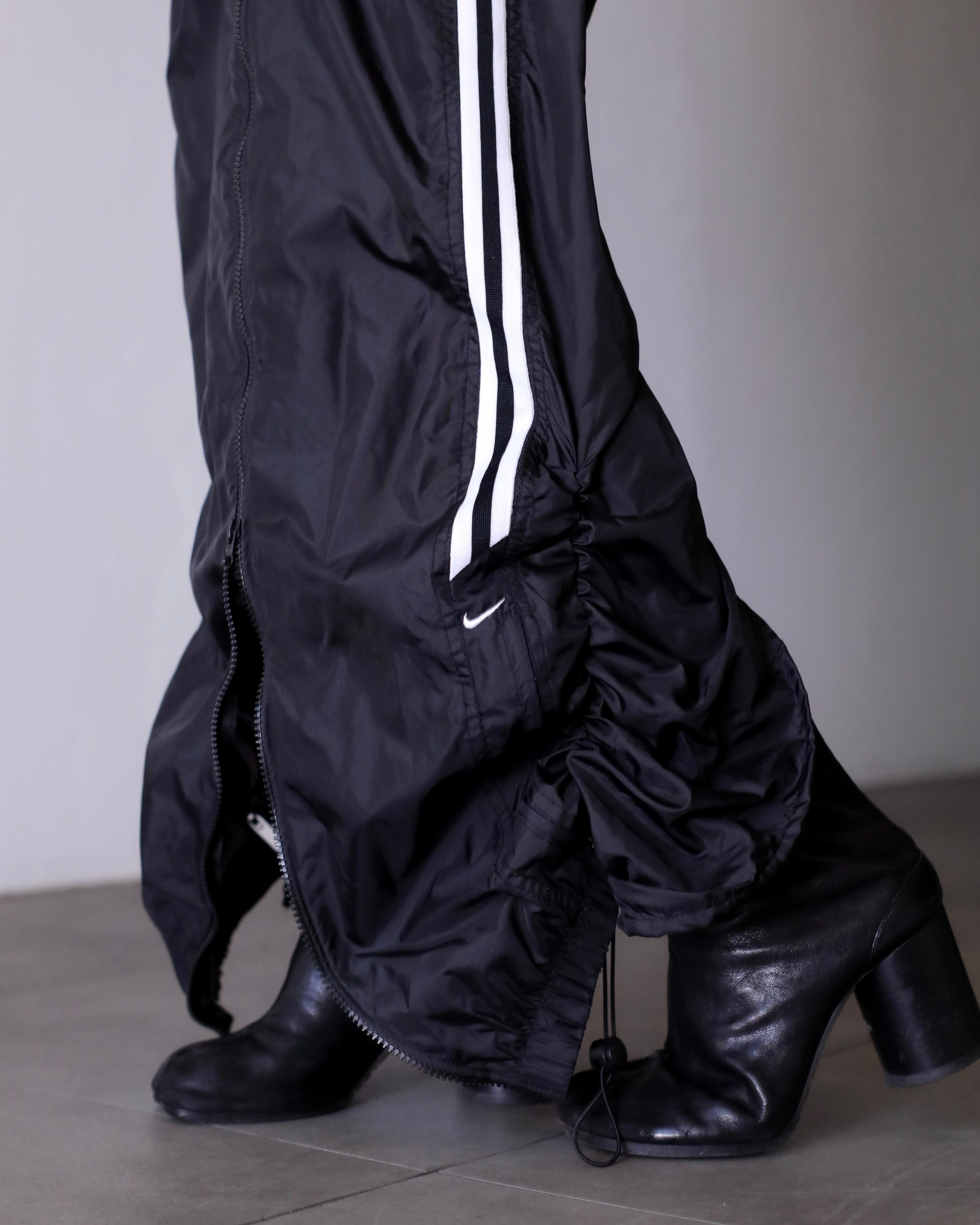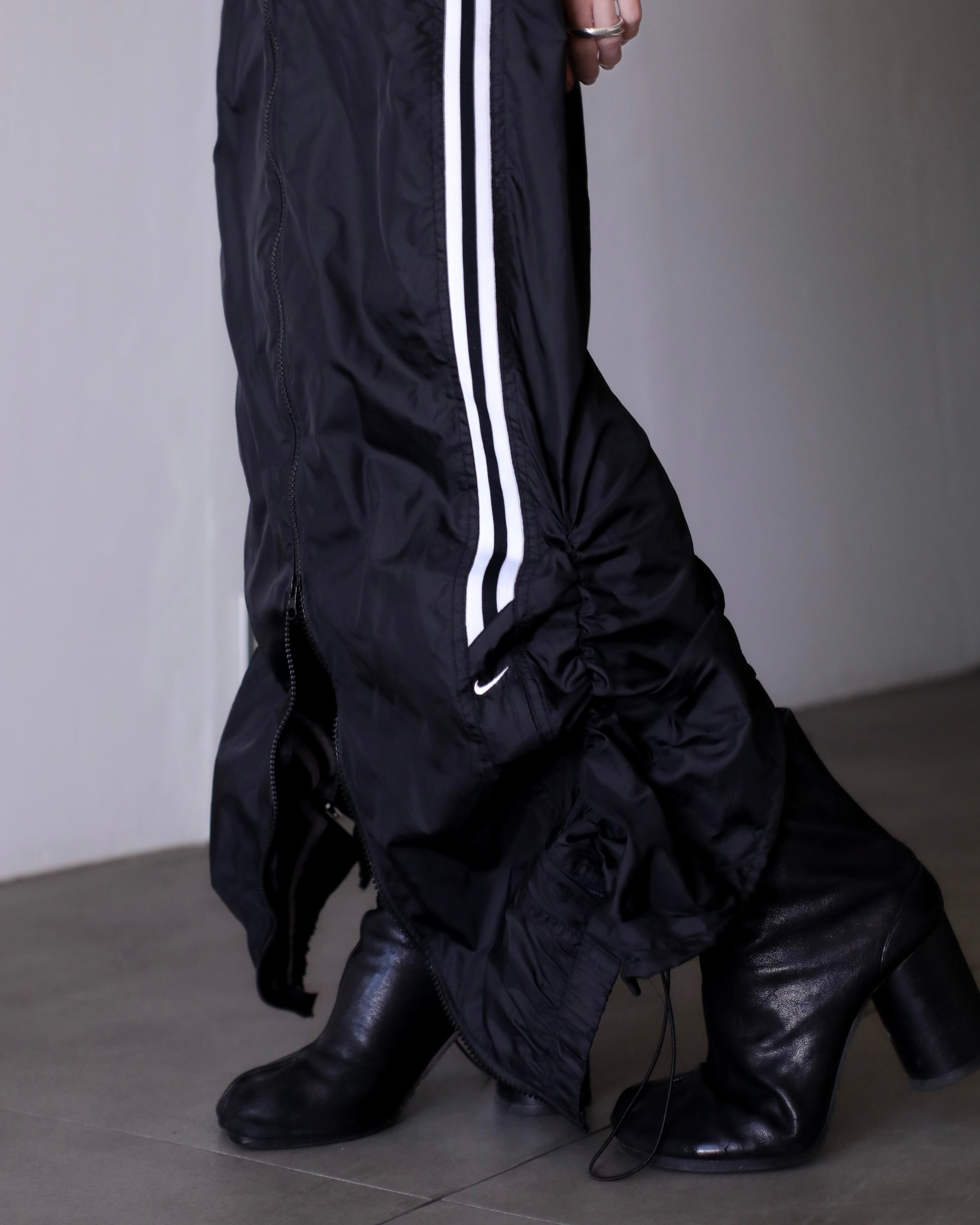 1990s NIKE nylon tech drawstring design center zip maxi skirt