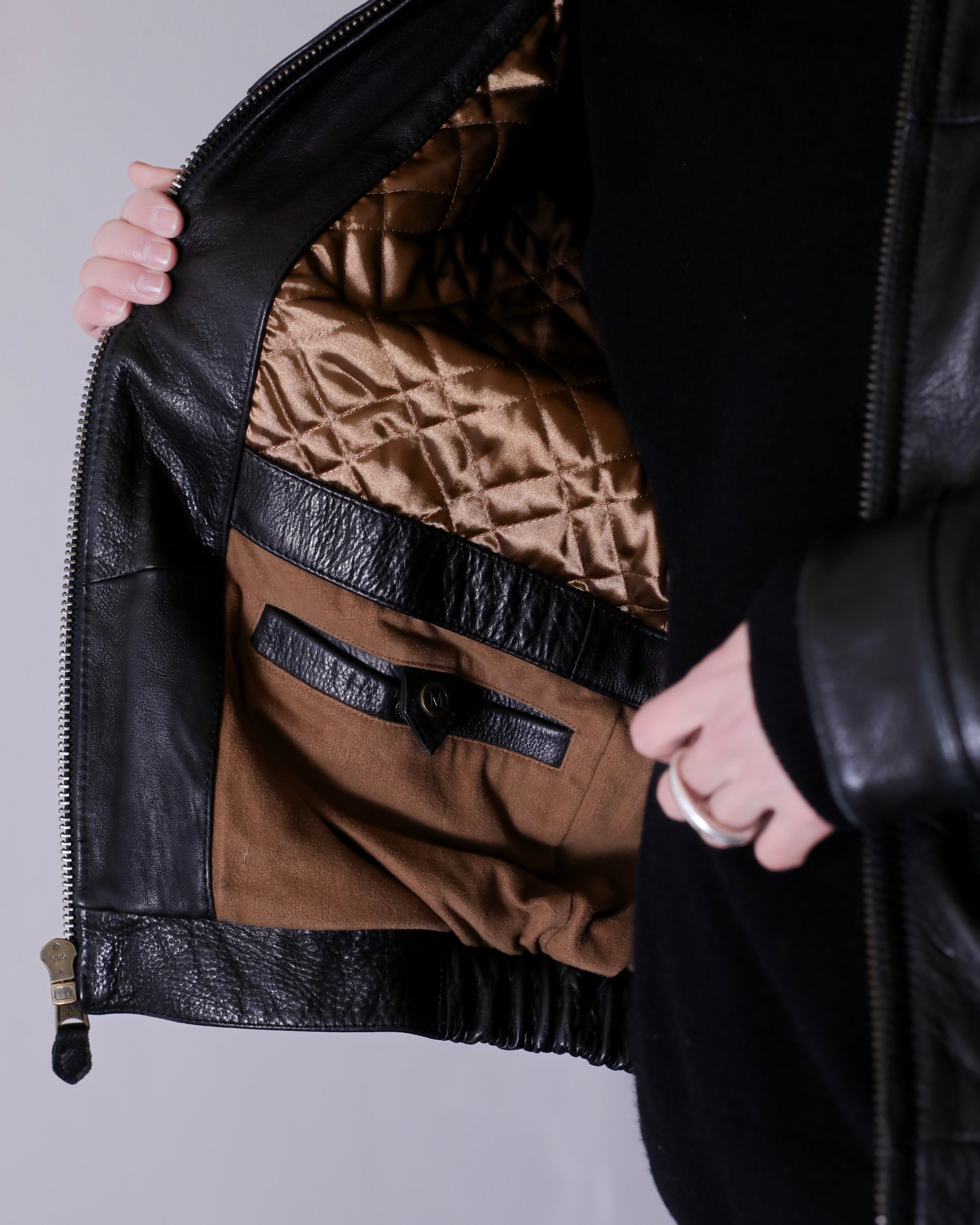 1990s nameraka leather bomber jacket "sibo sibo" oversized