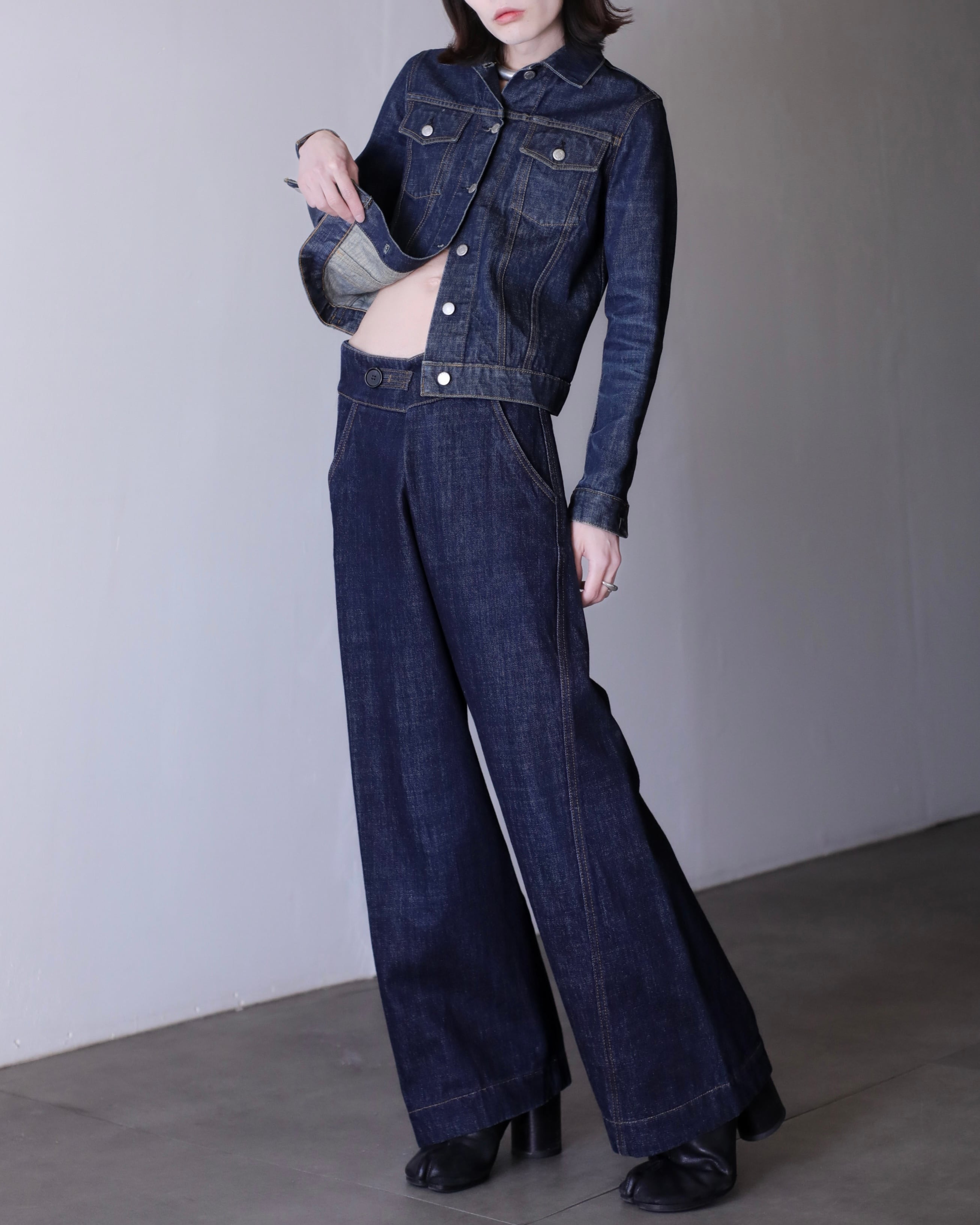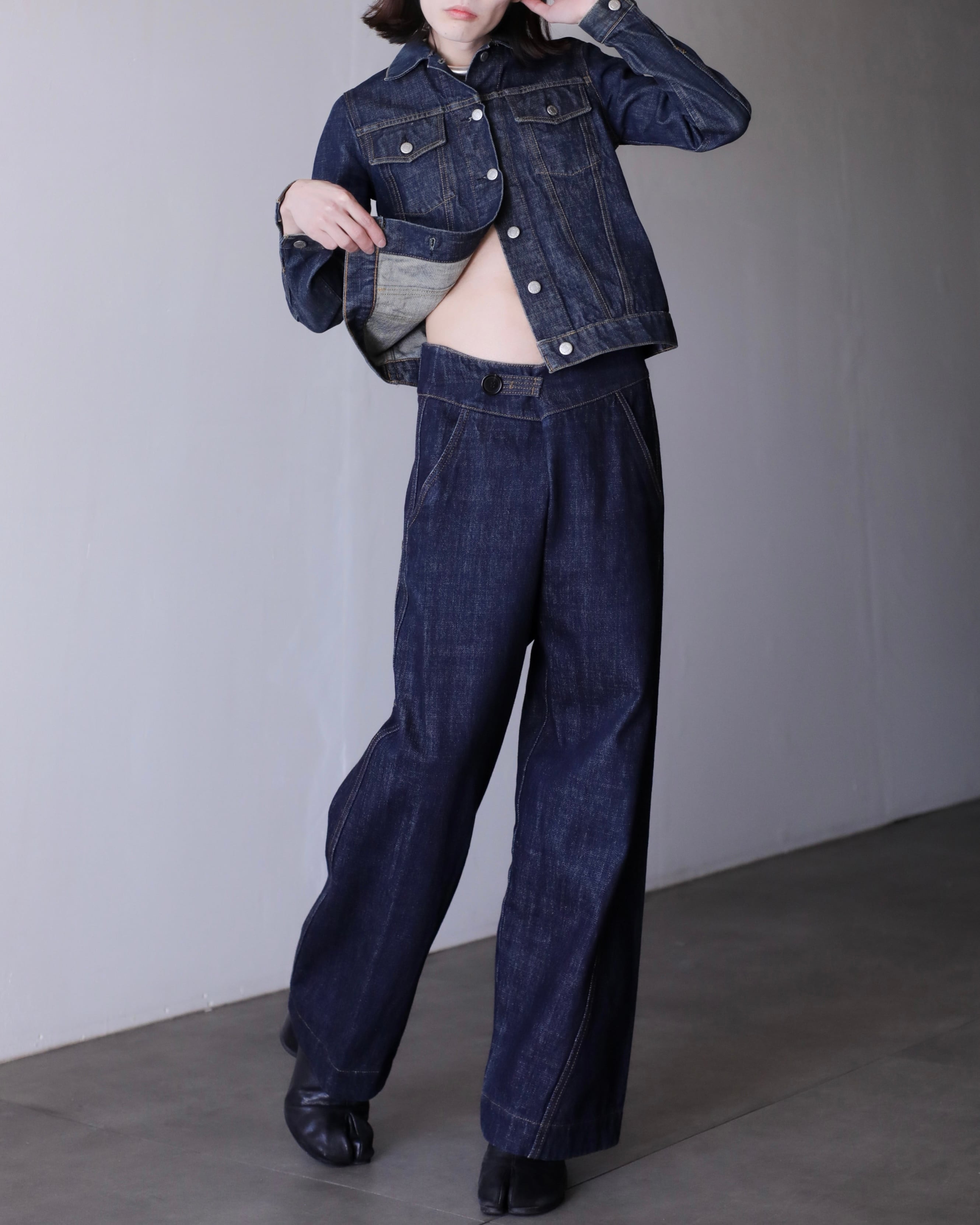 今気分なコンパクトなシルエットに無骨なデニムファブリック。全体的な印象としては品があるなあ〜という感想で