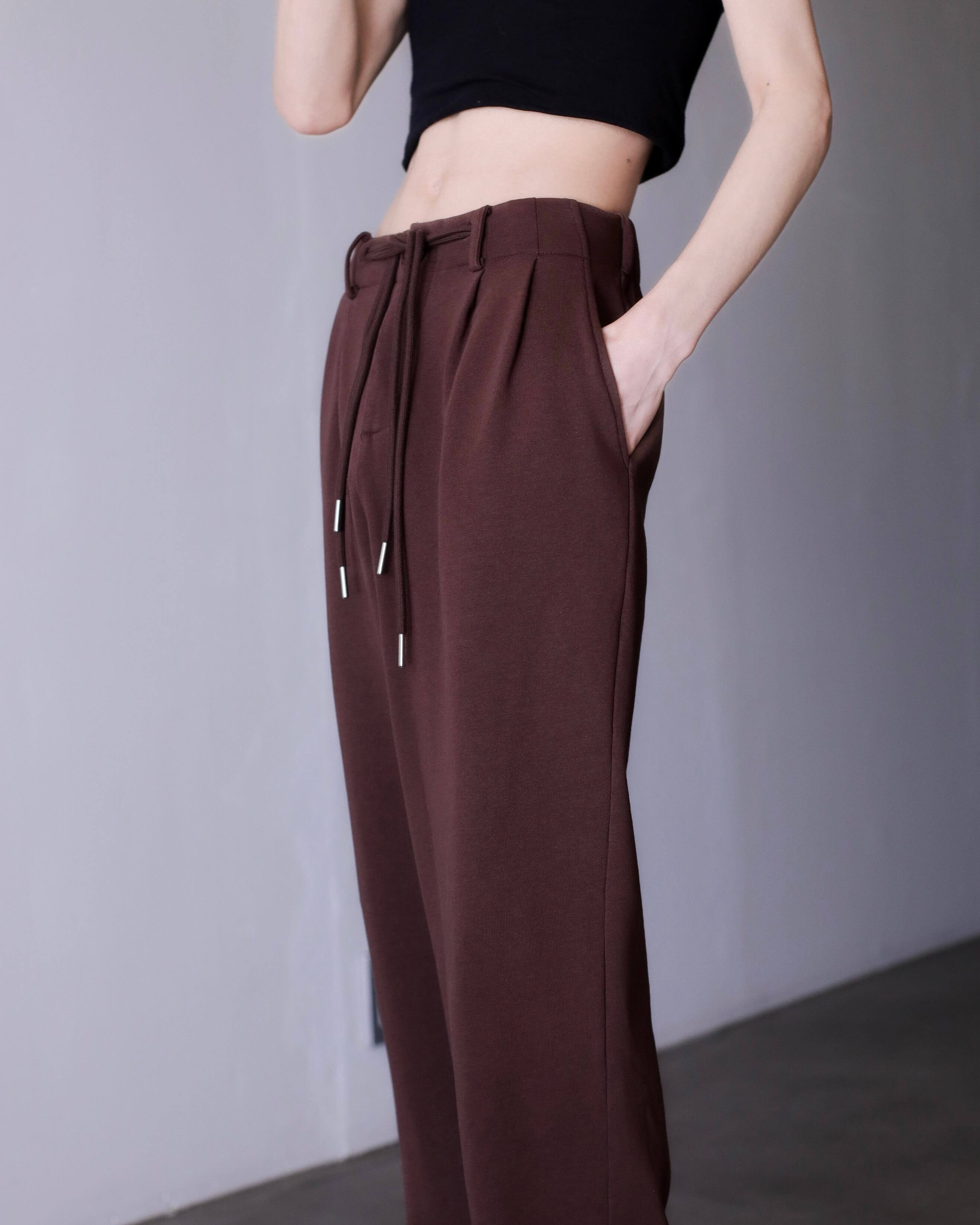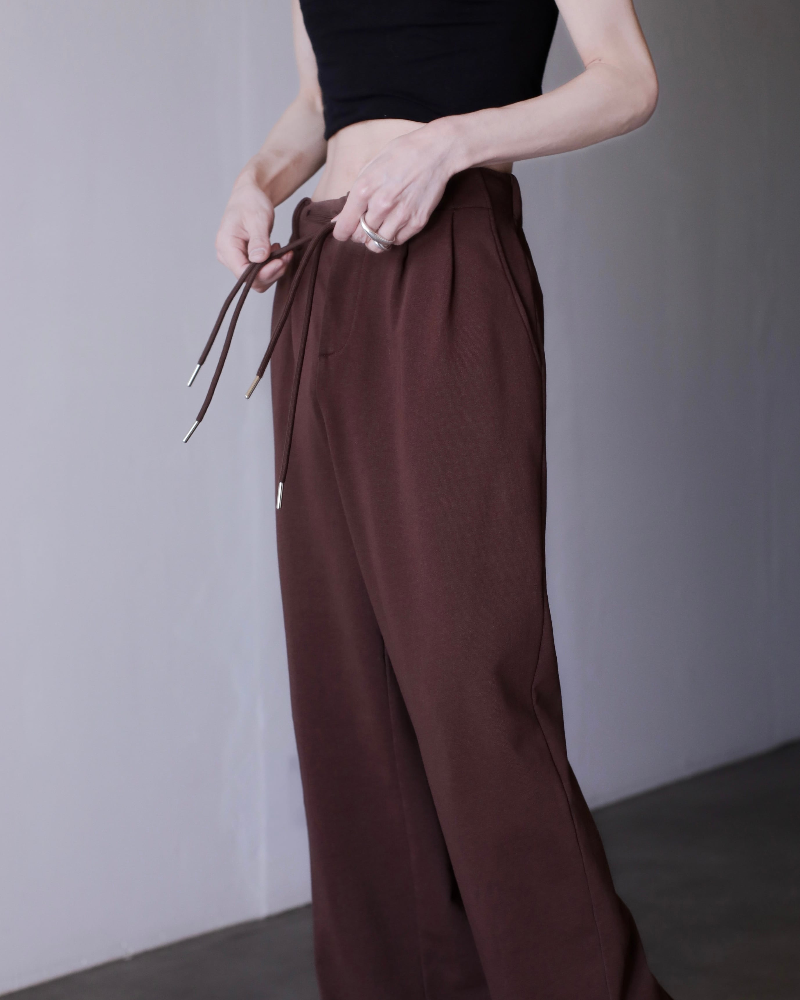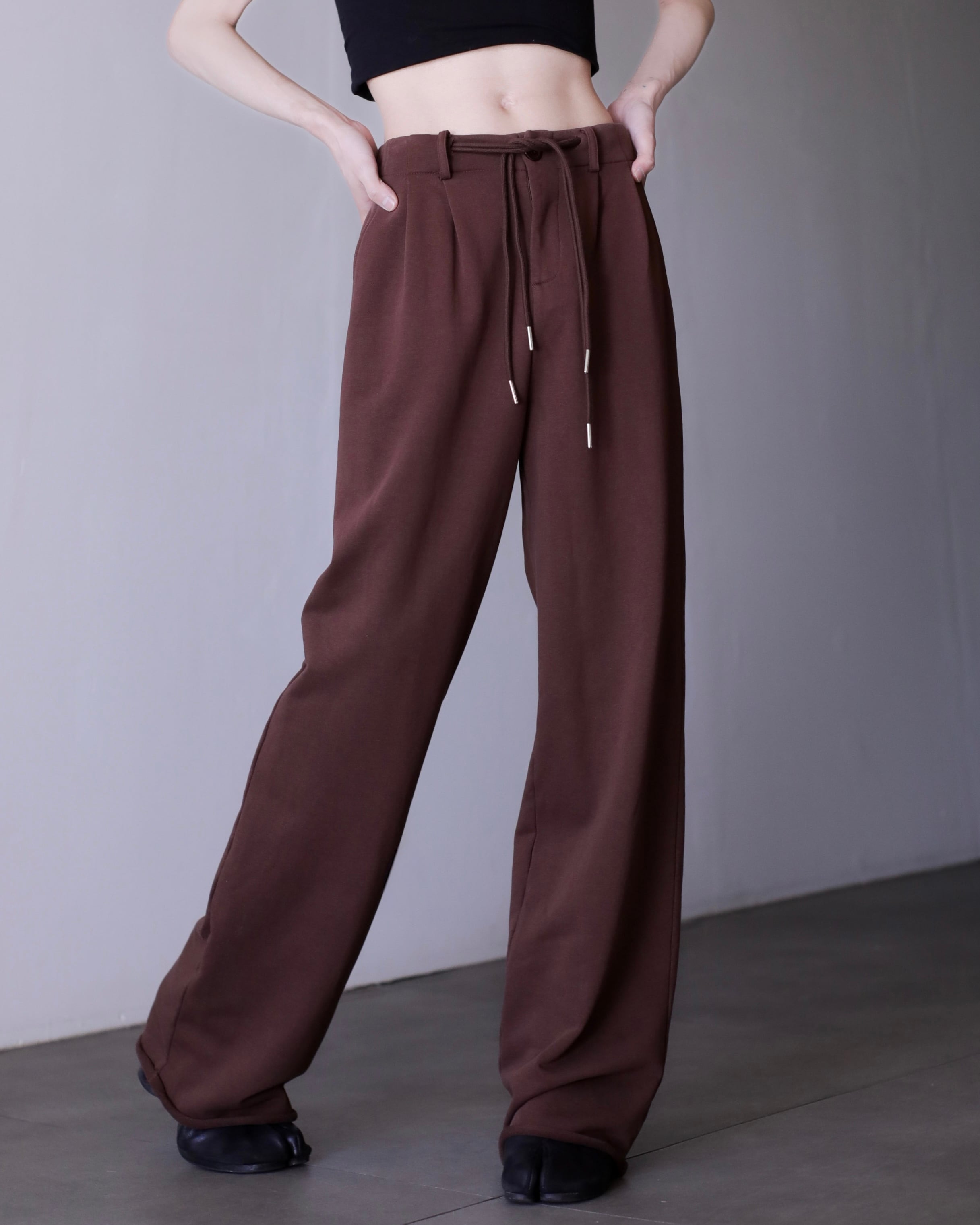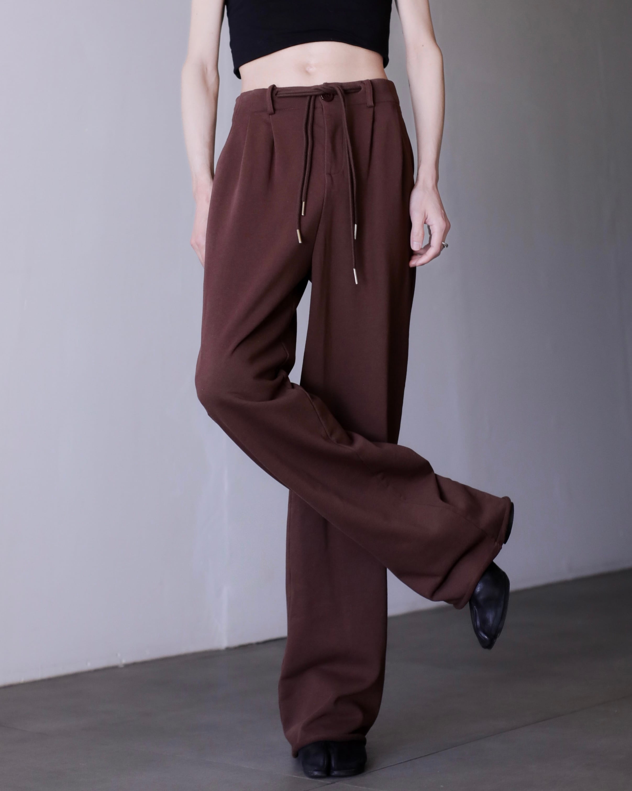 hi-waist tuck design sweat fabric wide straight slacks
