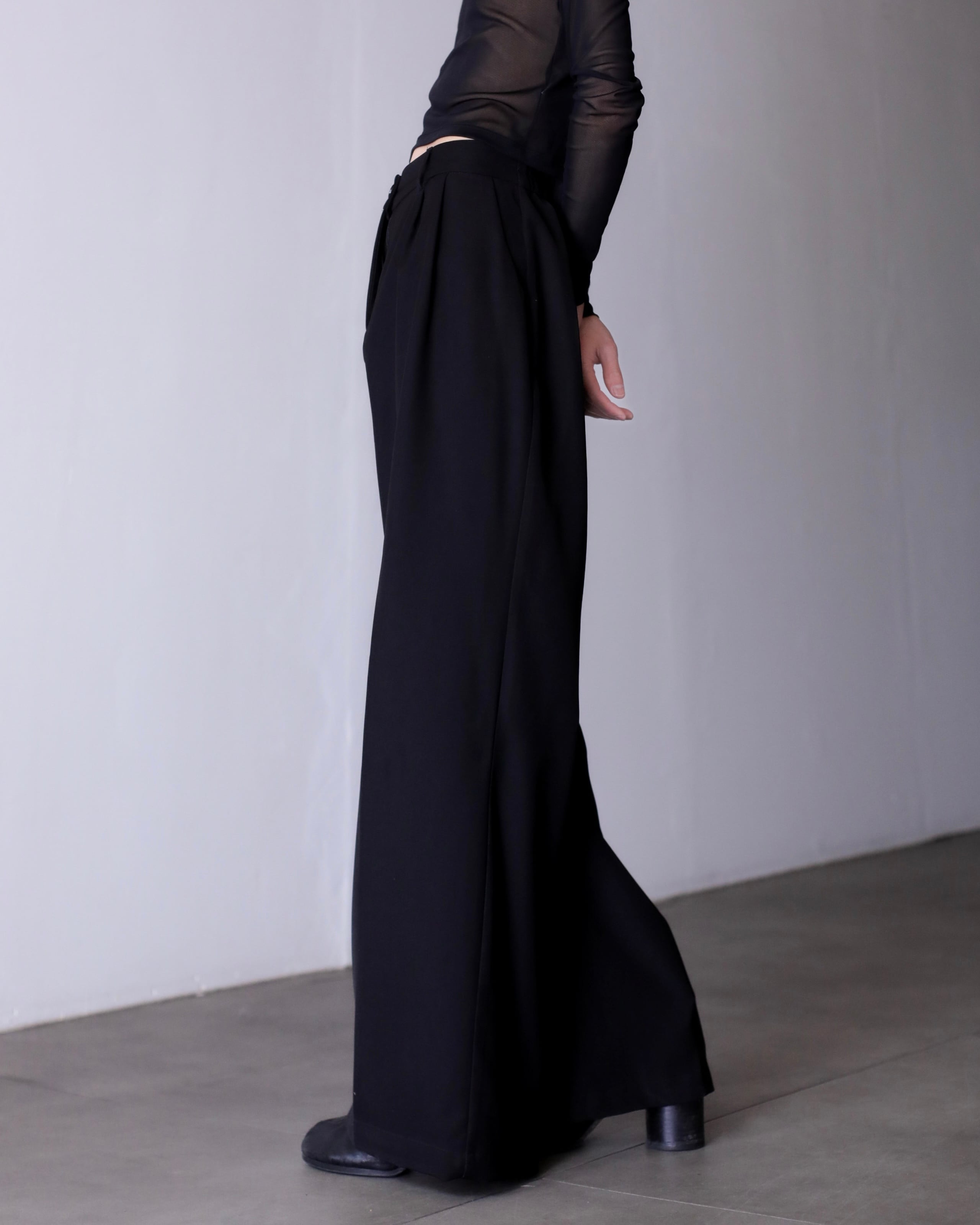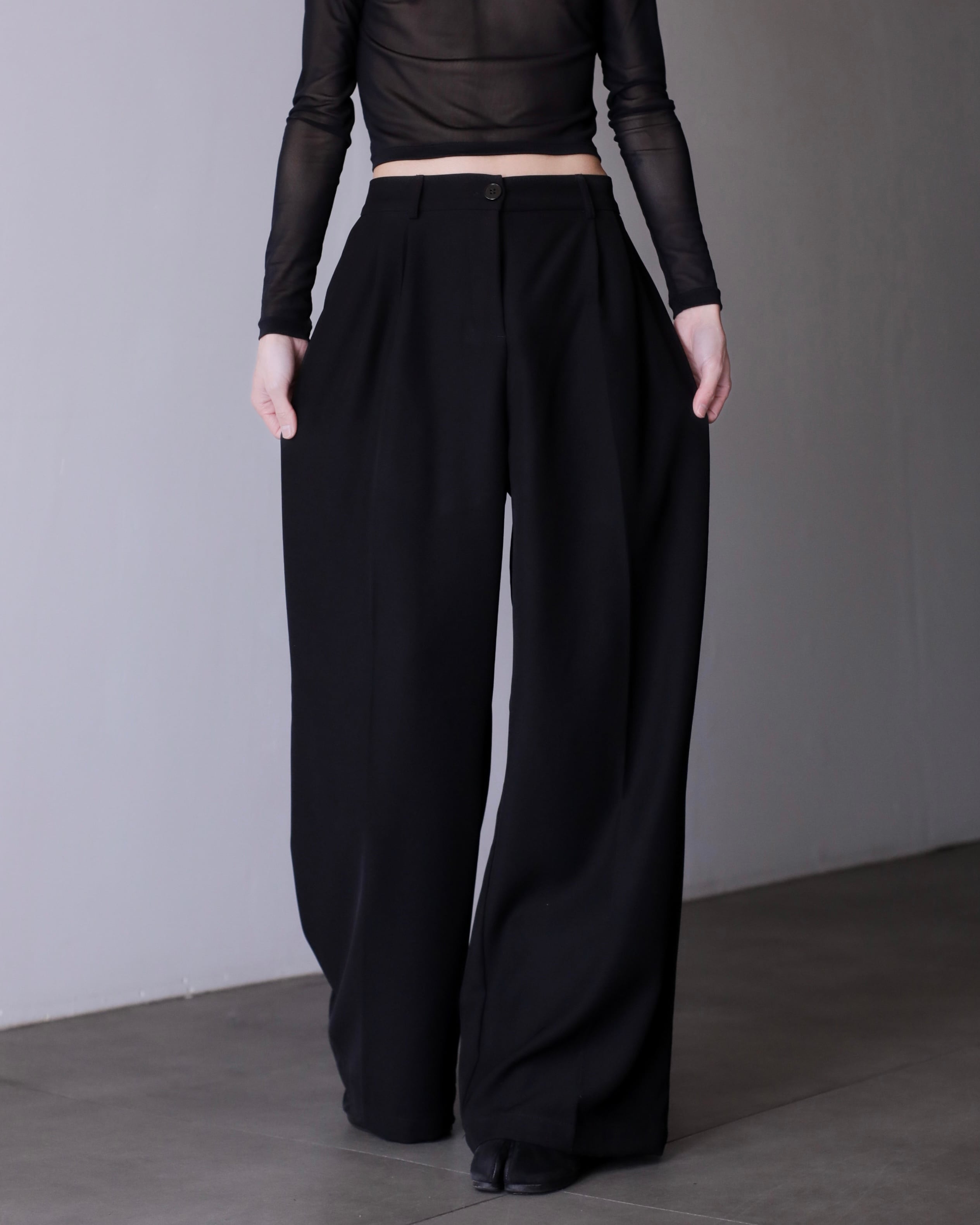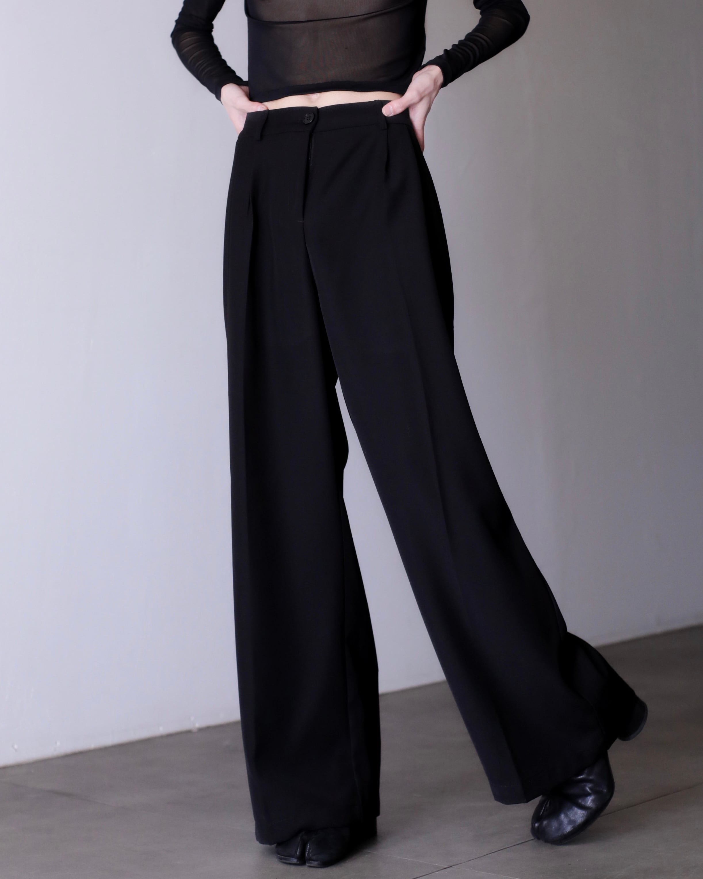 hi-waist tuck design wide straight slacks toromi fabric