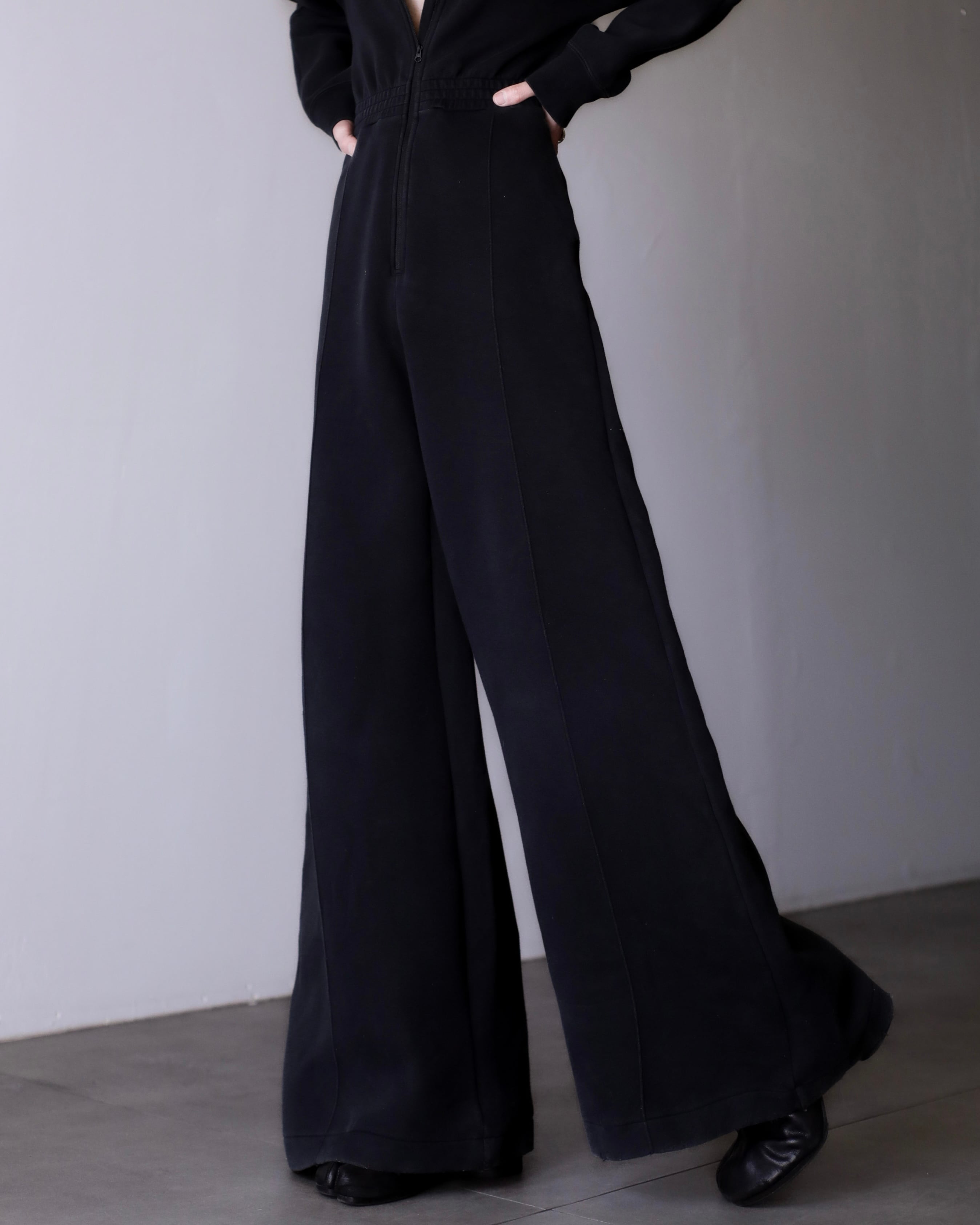 ドカンとした裾にボリュームのあるワイドバギーシルエット。