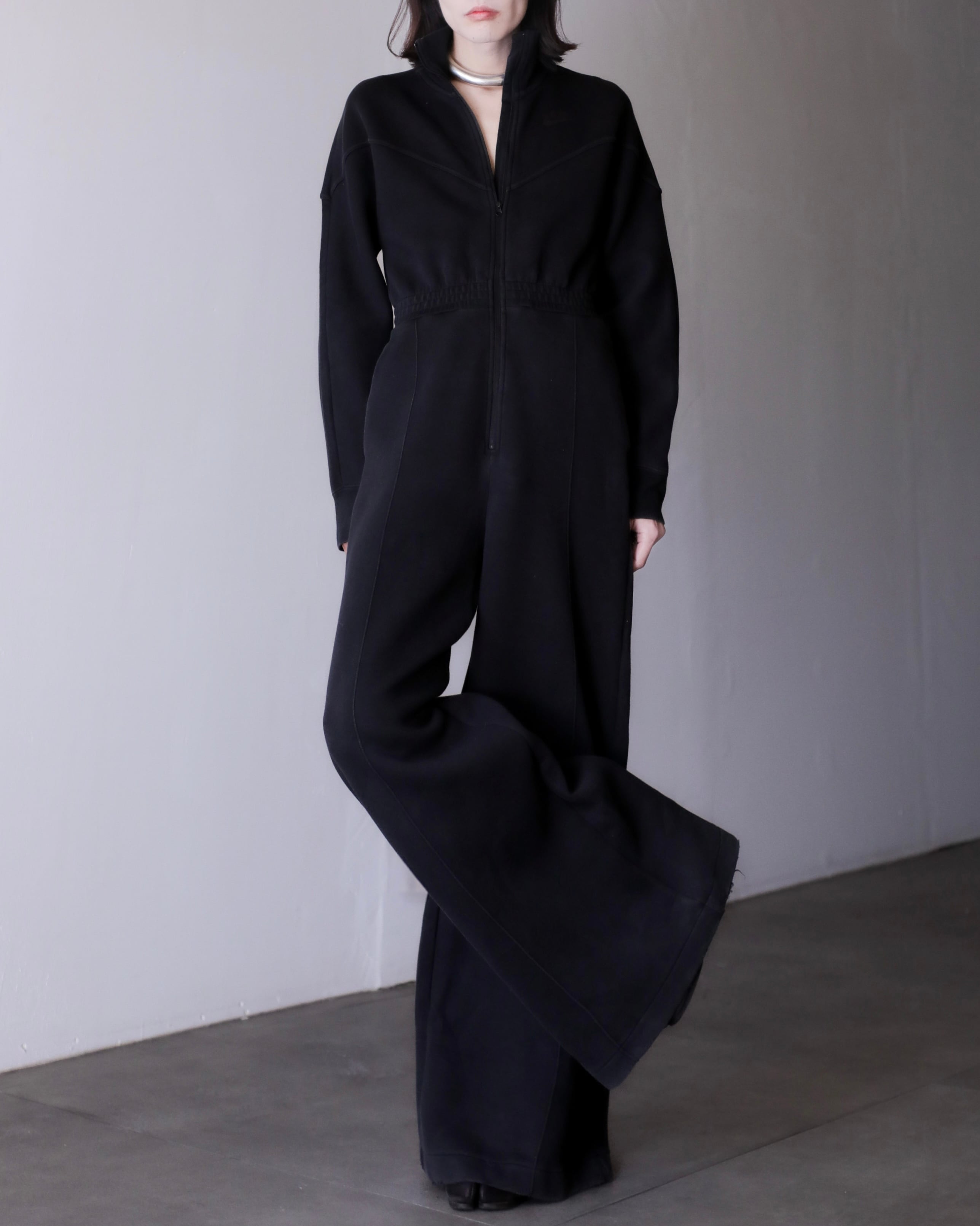 NIKE jumpsuit volume wide baggy silhouette sweat fabric hi-neck design