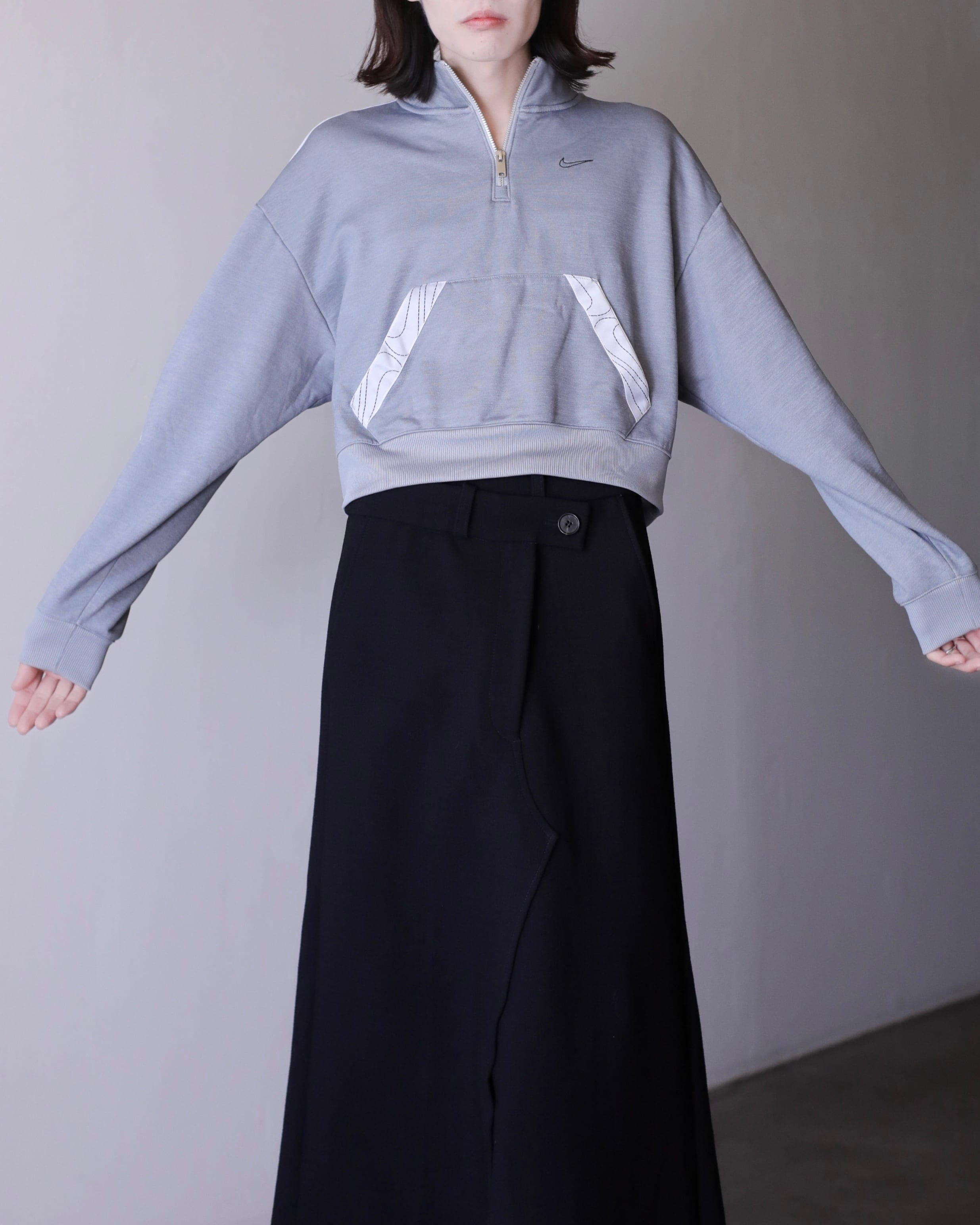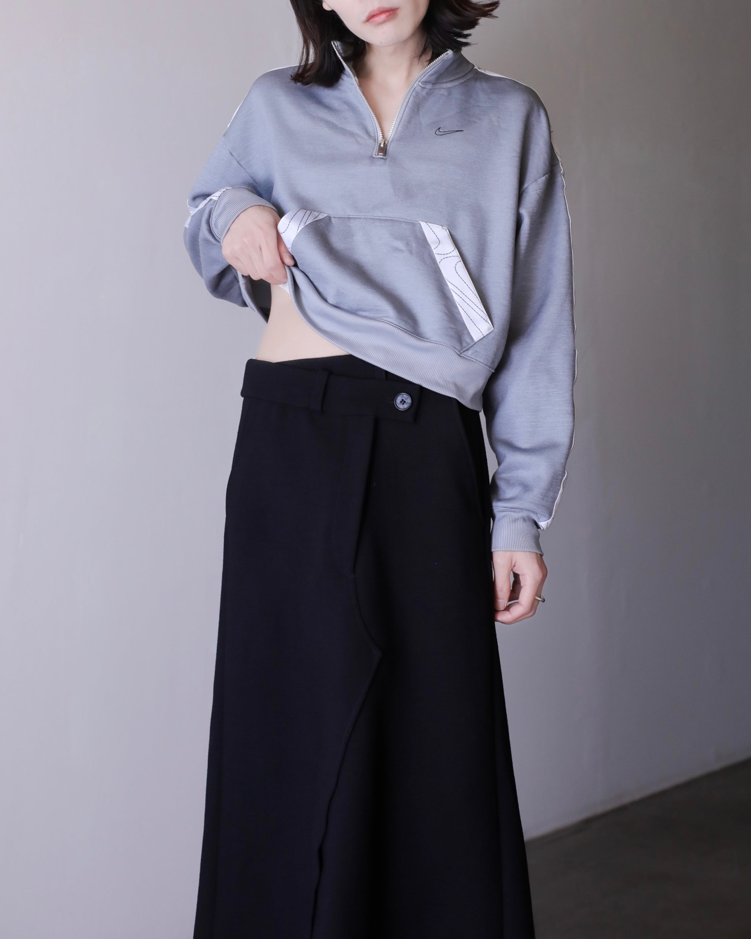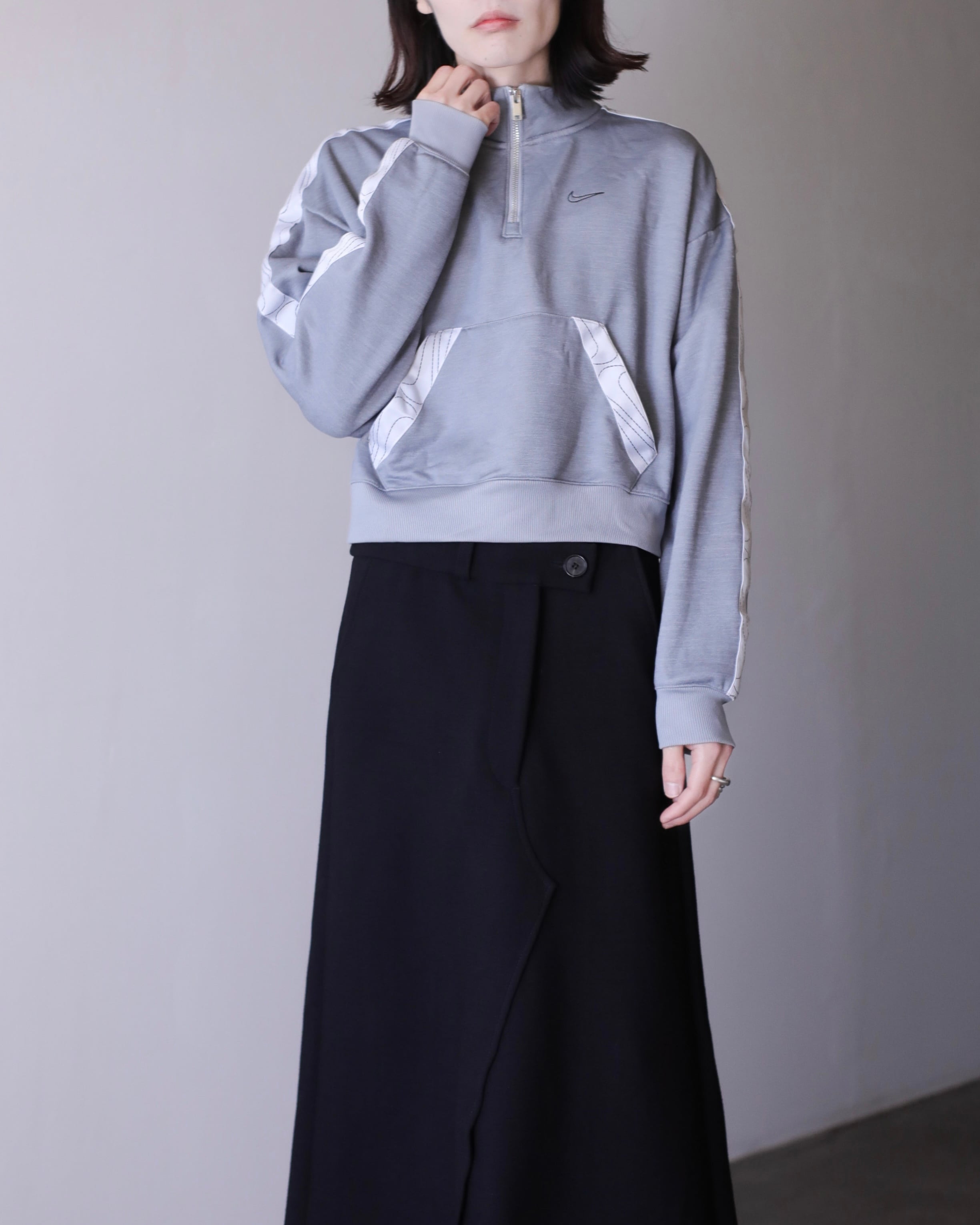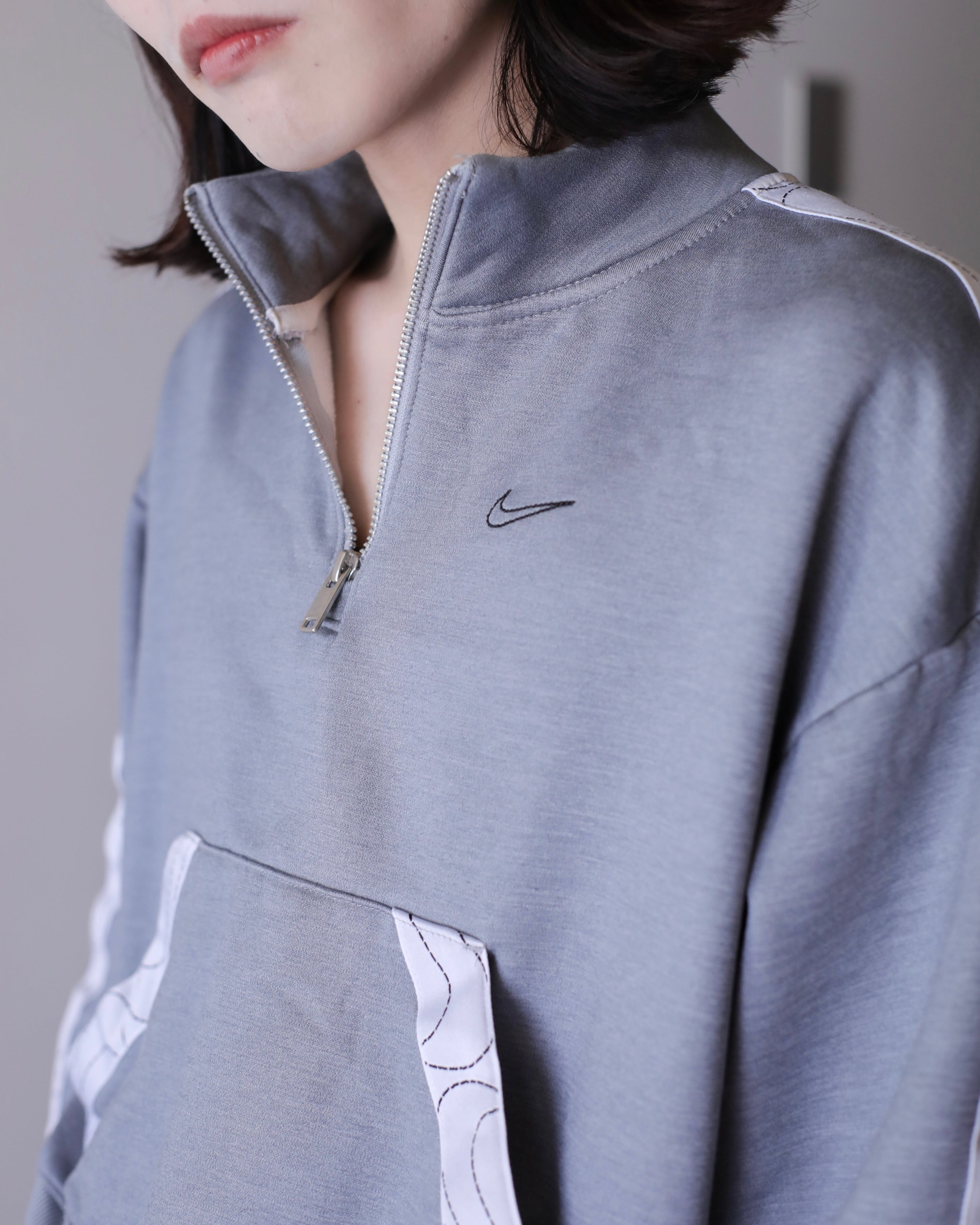 NIKE arm swoosh line design soft bonding half zip hi-neck design top