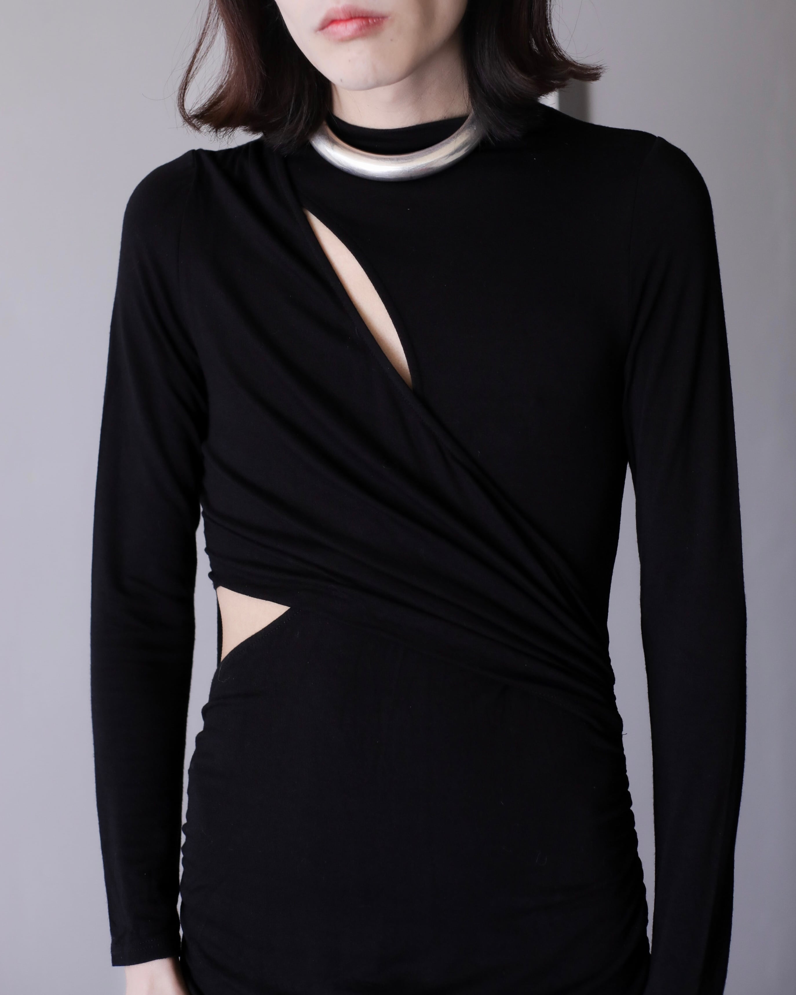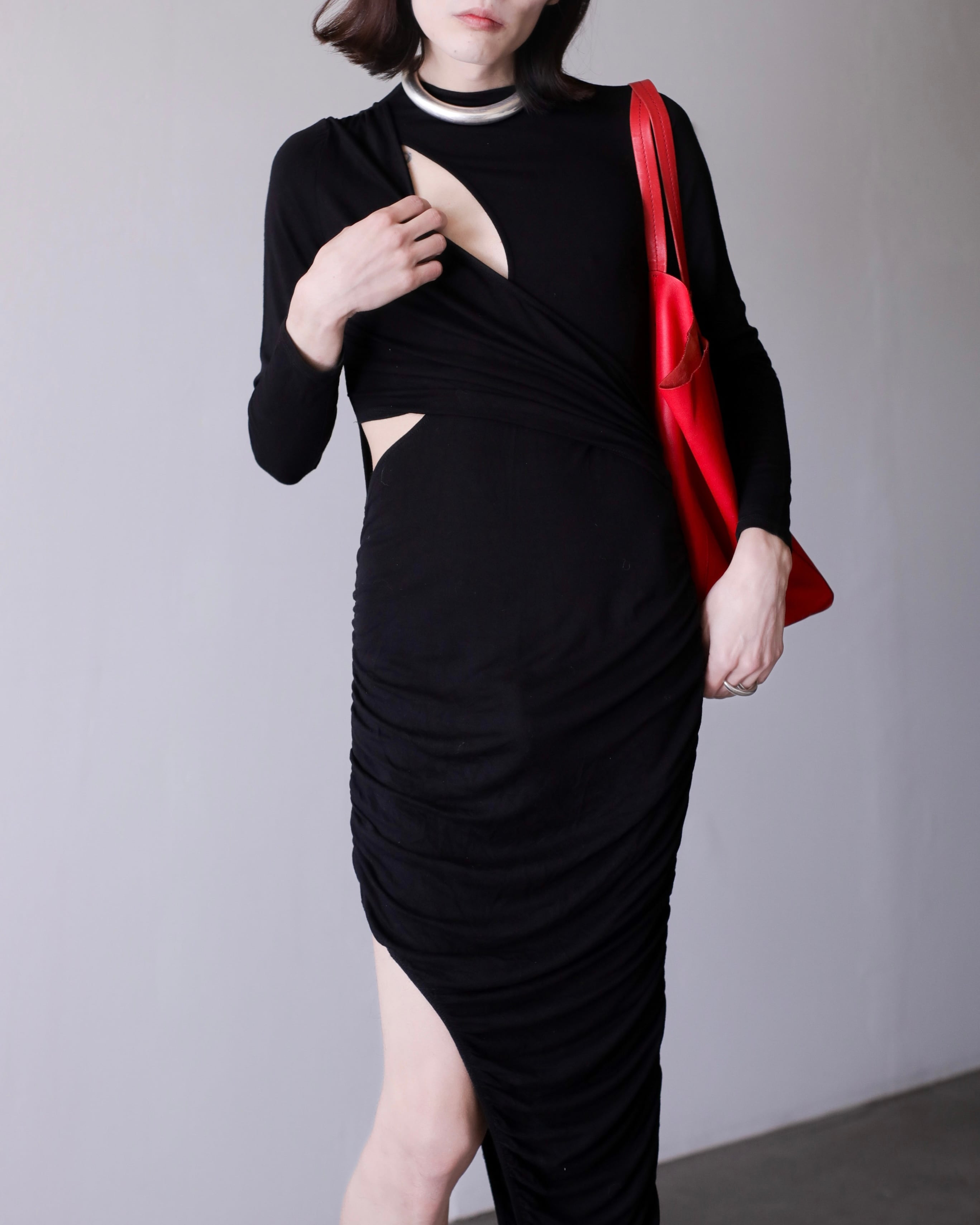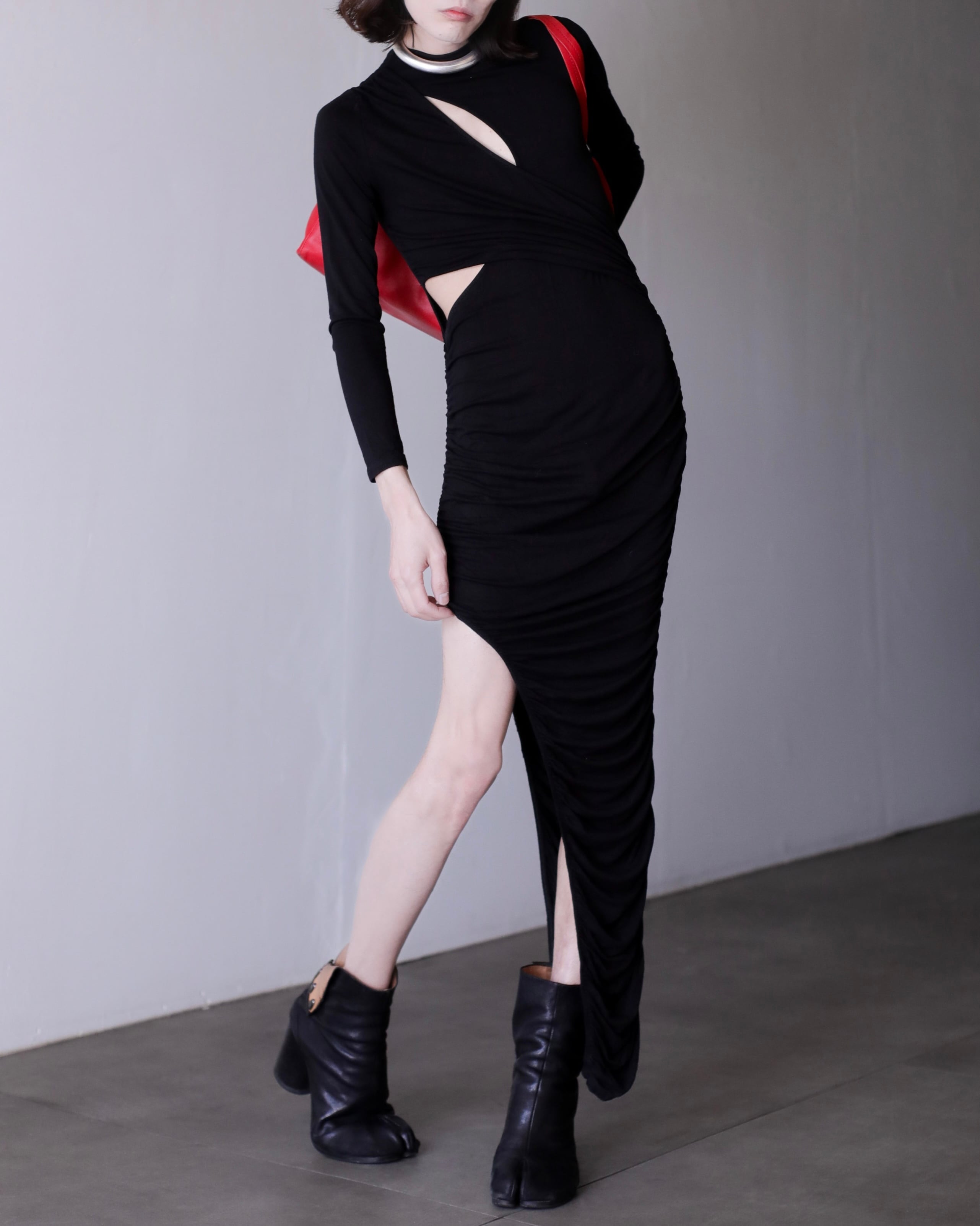 1980s cut out design asymmetry shirring hi-gauge maxi length dress Made In USA