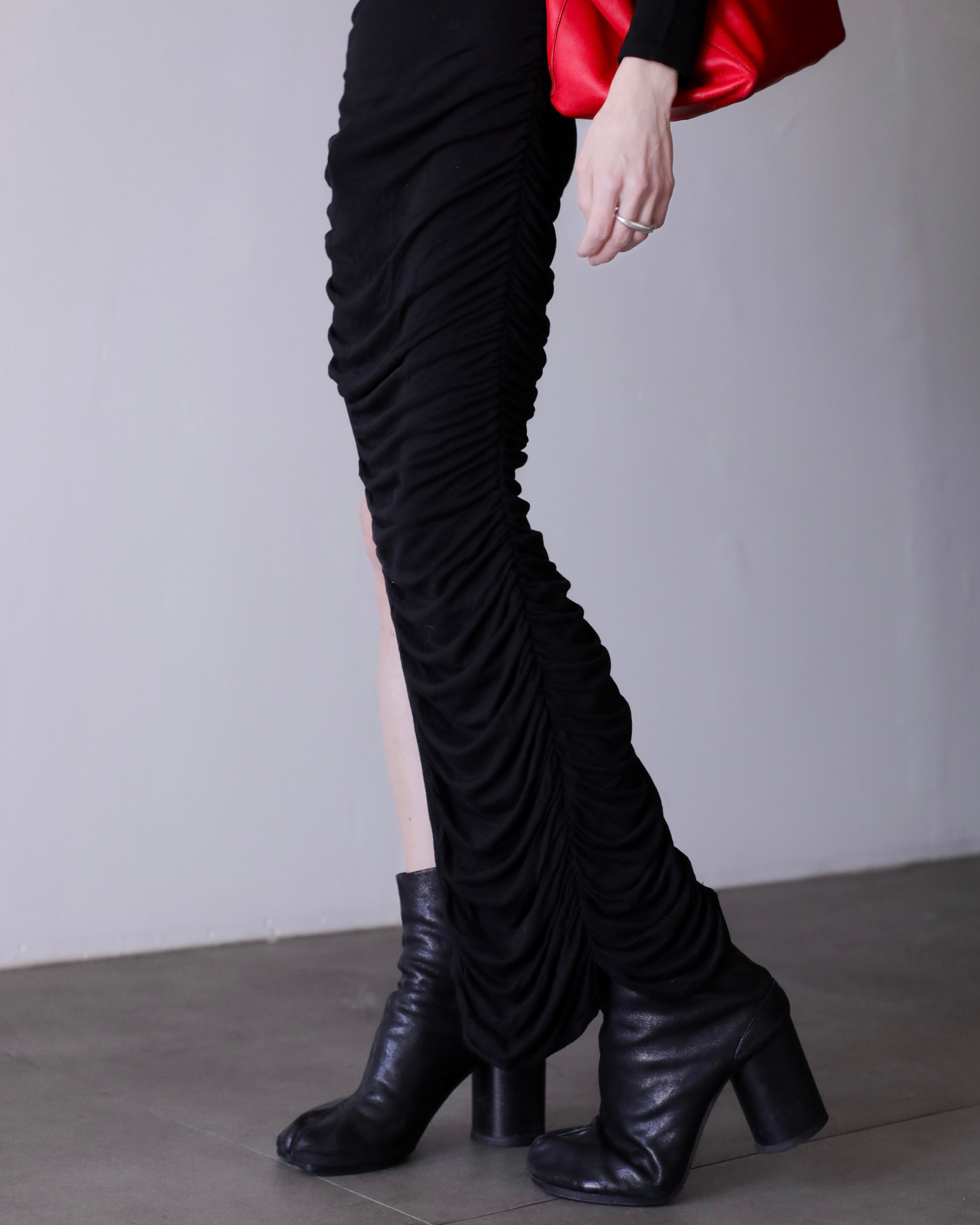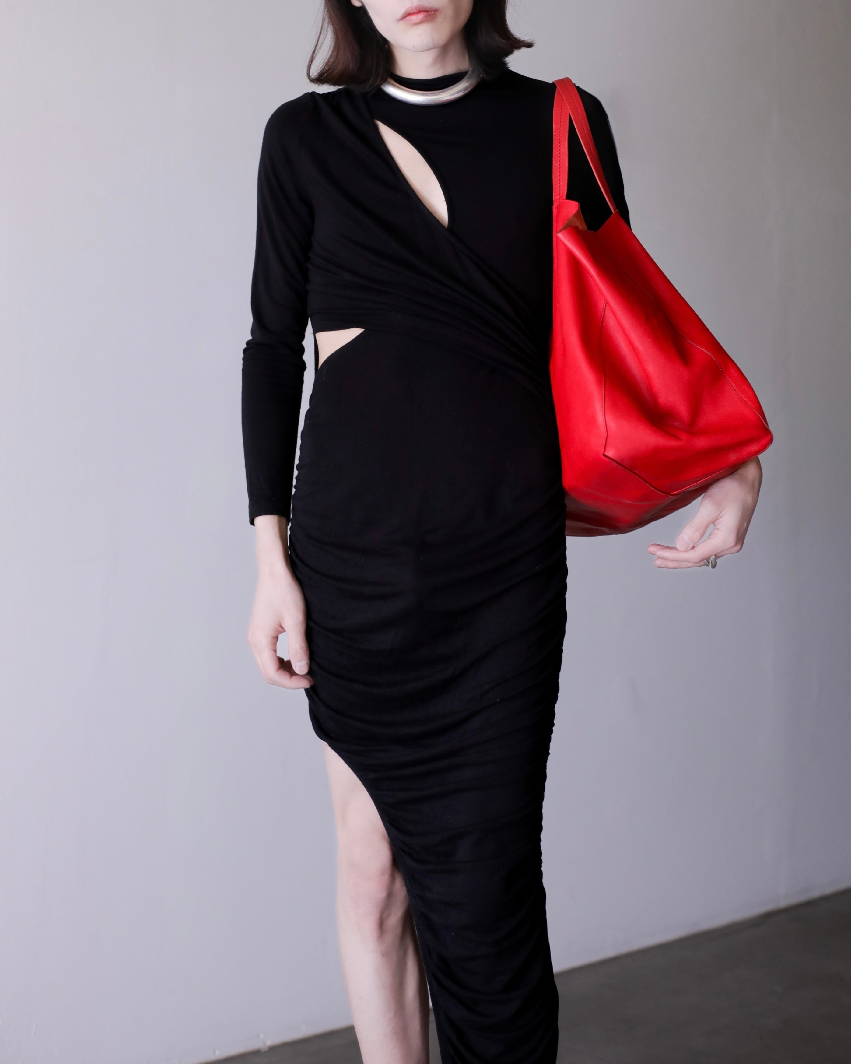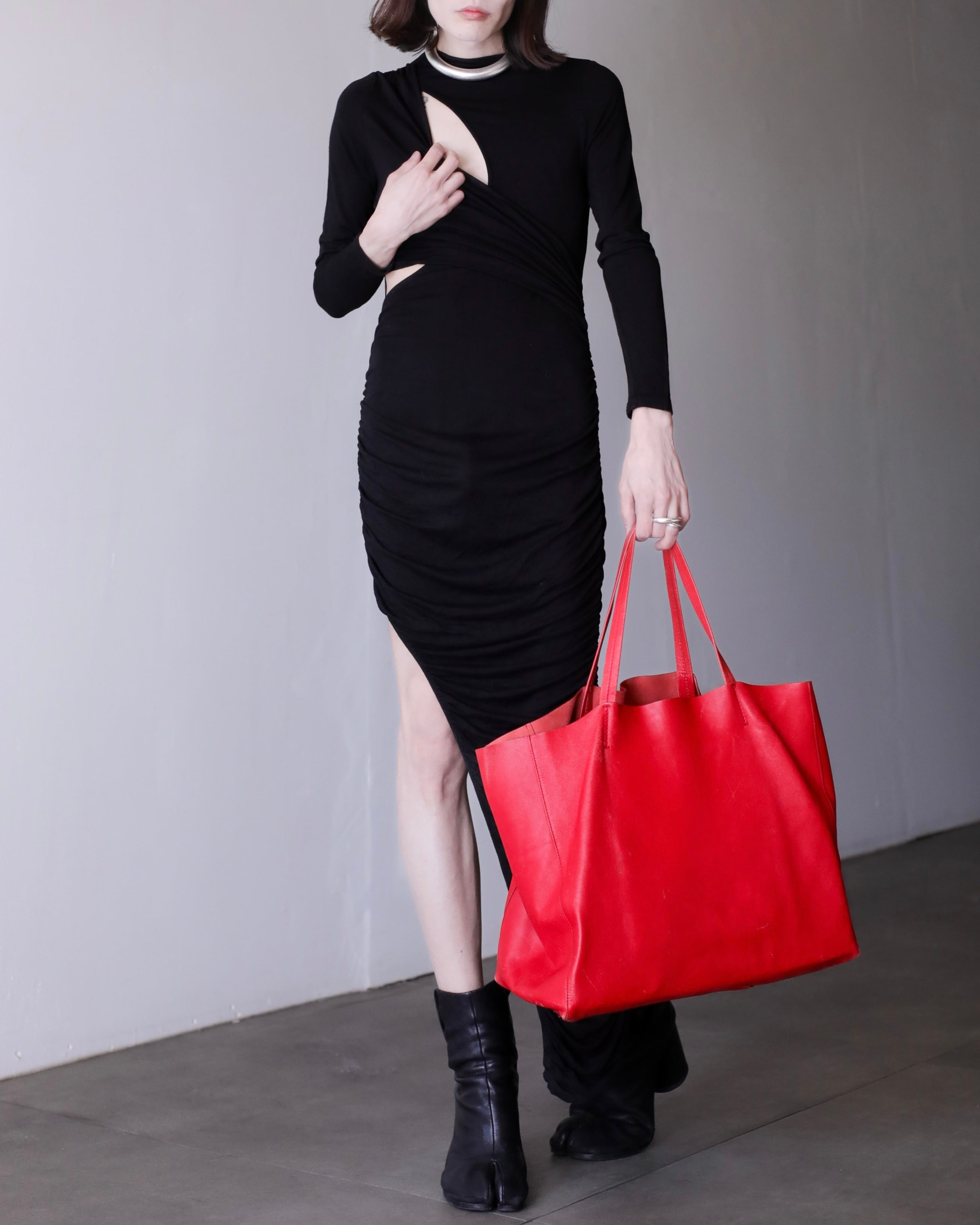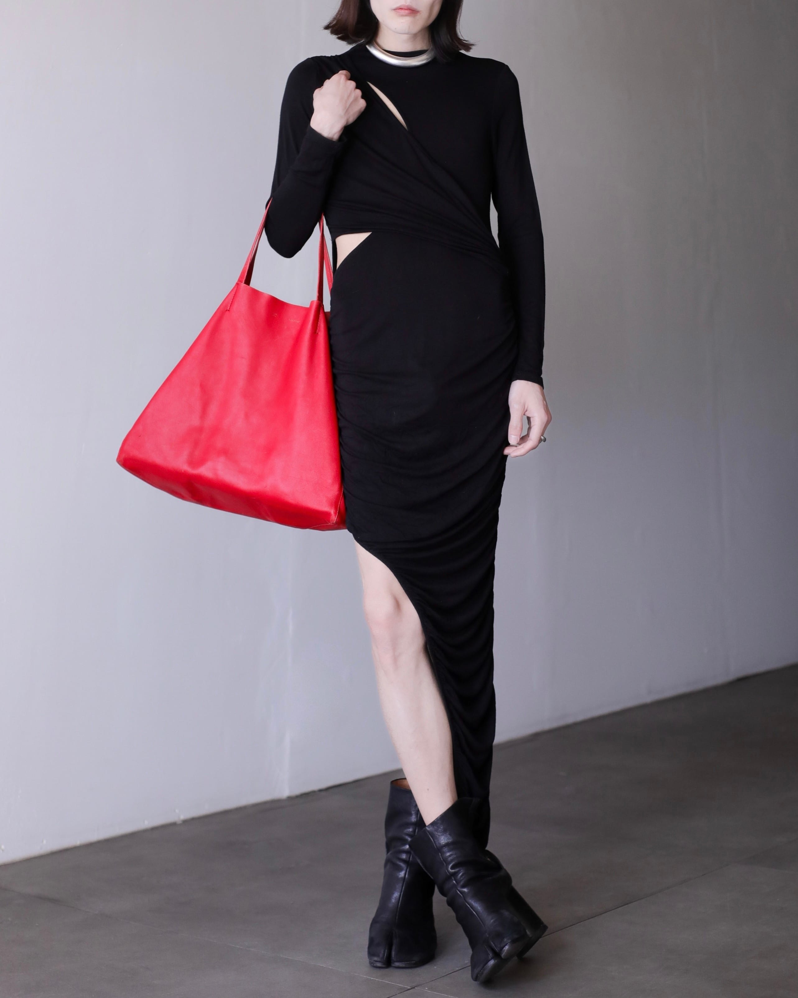 1980s cut out design asymmetry shirring hi-gauge maxi length dress Made In USA