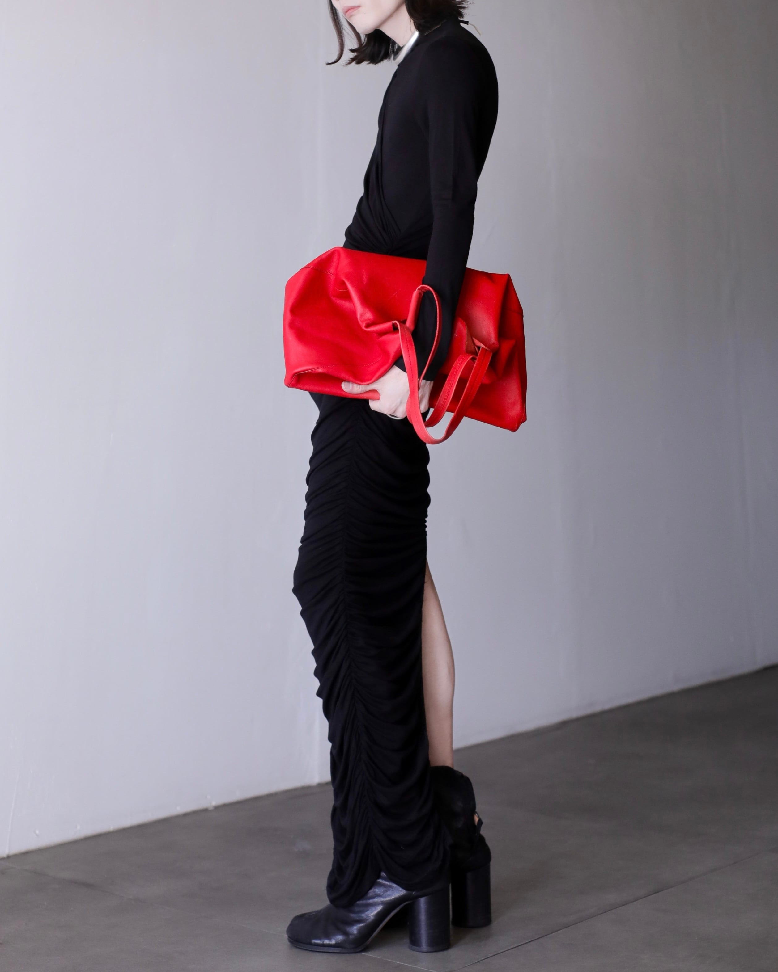 モードなハイゲージニットファブリックもこのデザインと相性抜群。