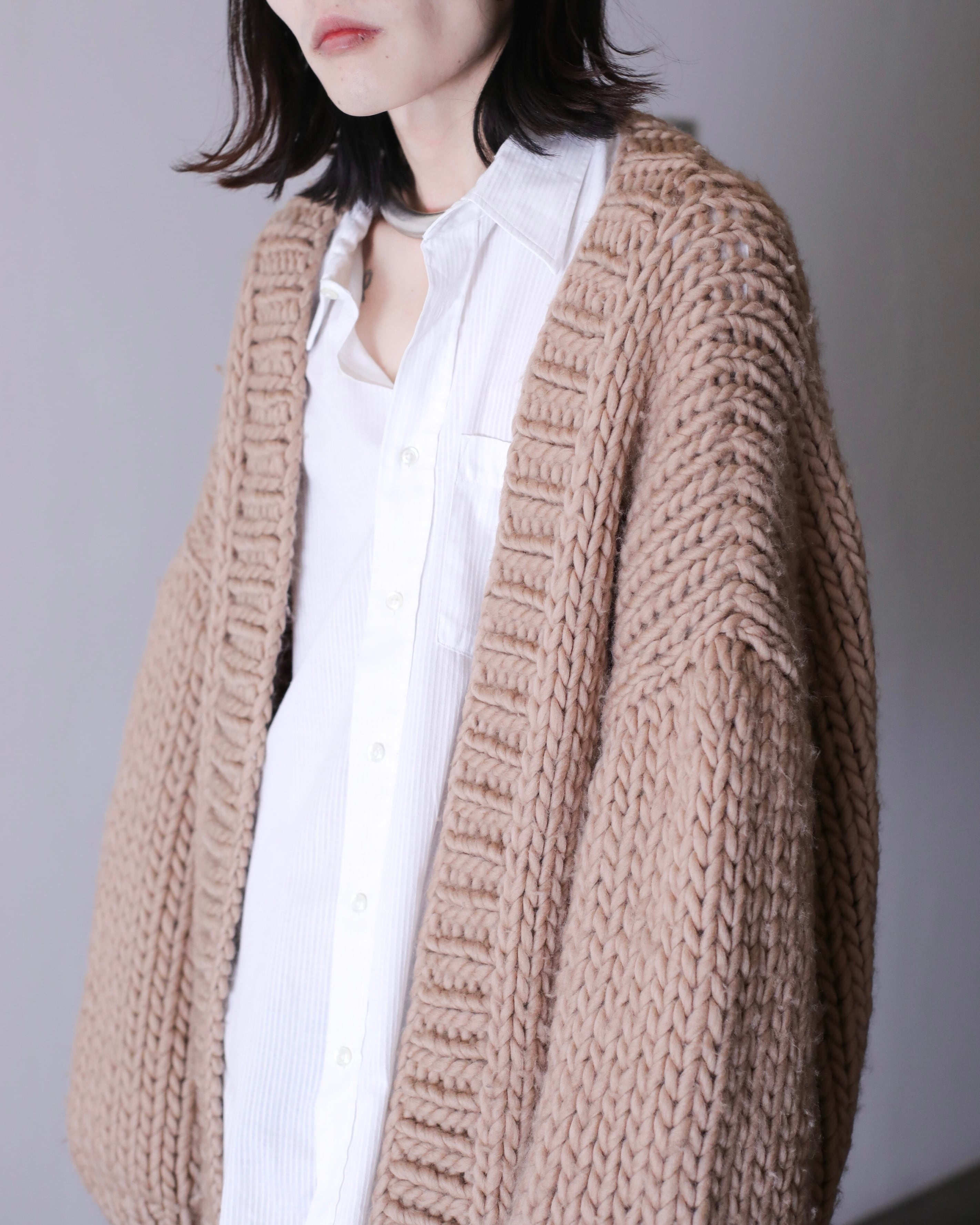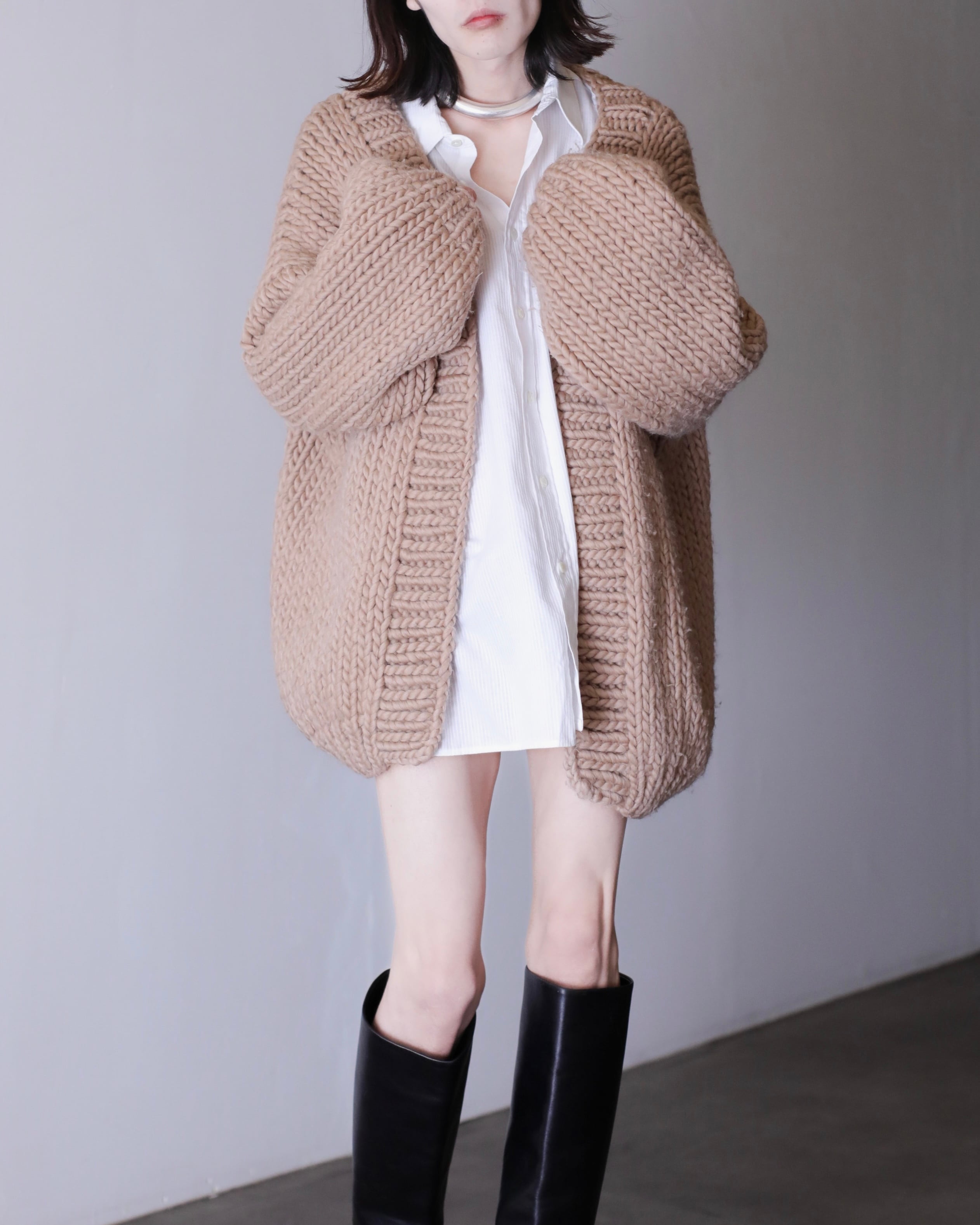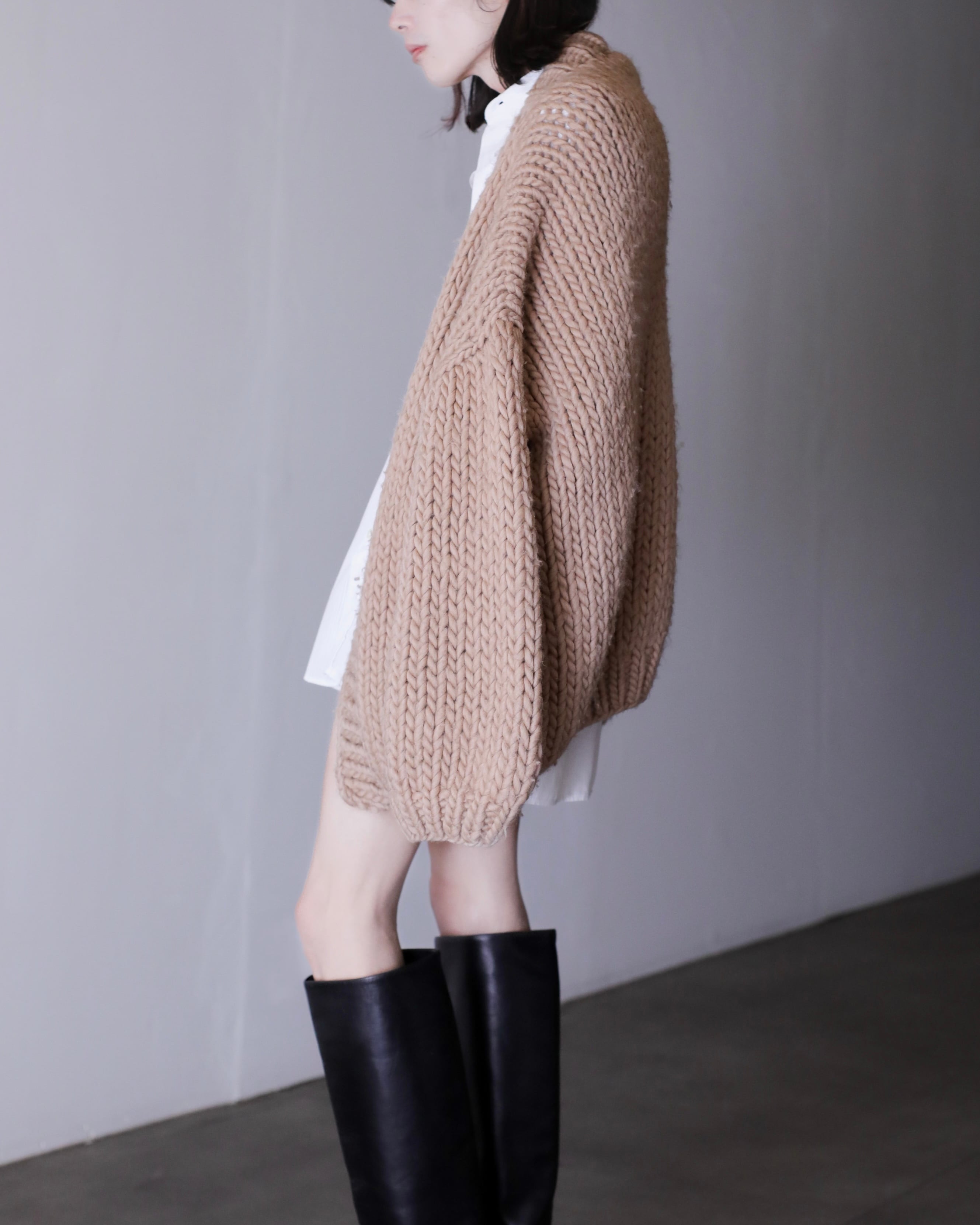 super chunky knit "gokubuto arm" design over silhouette cardigan