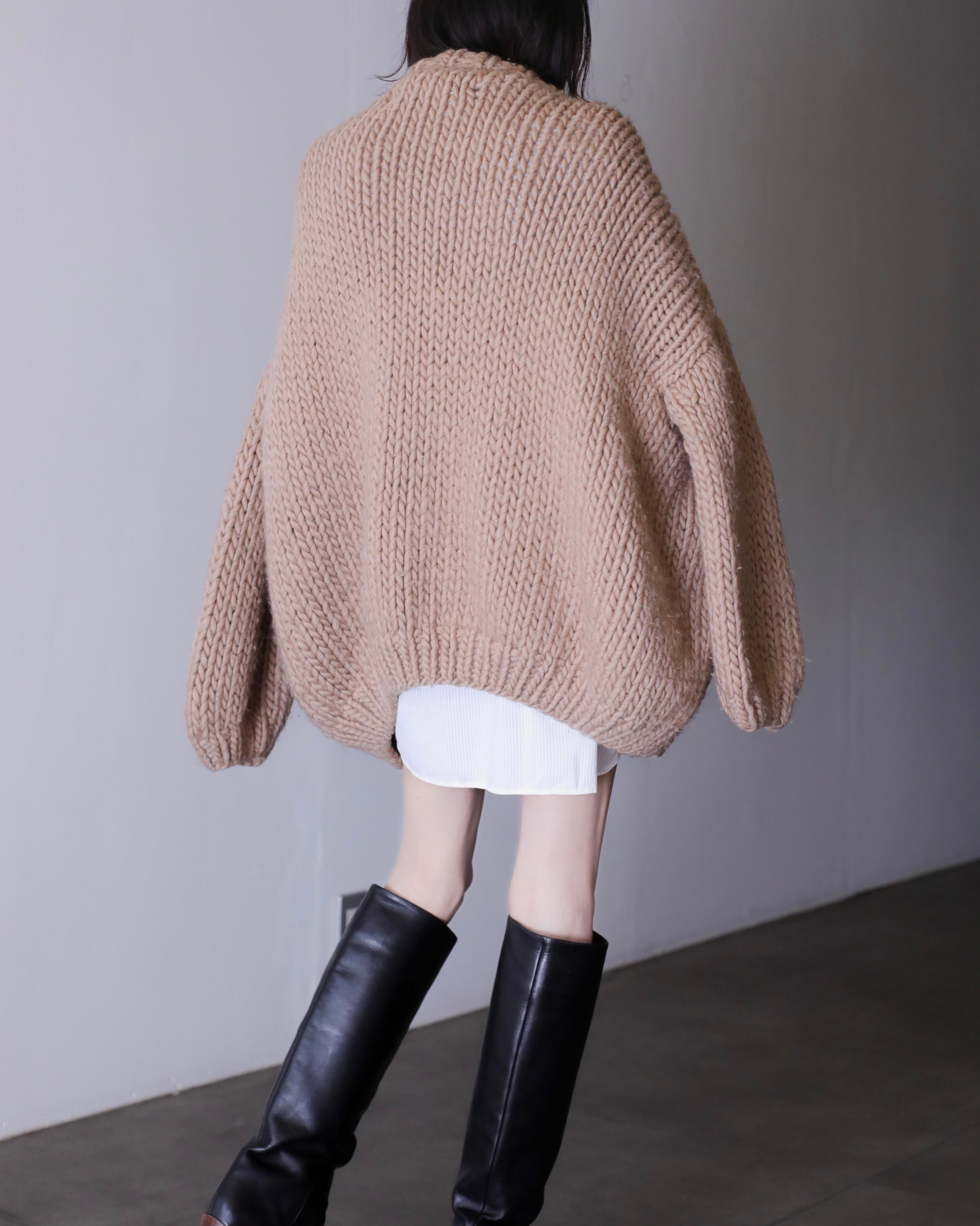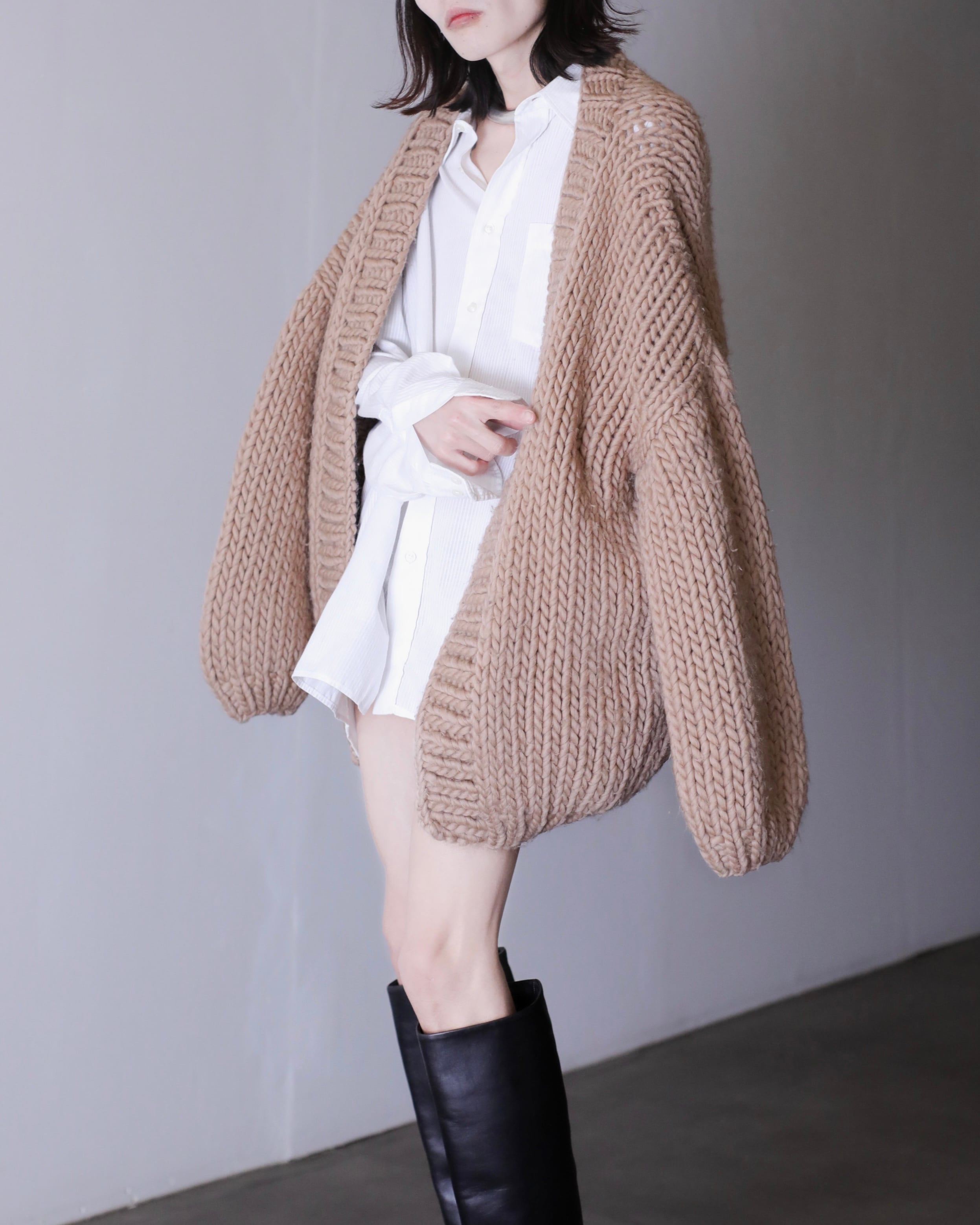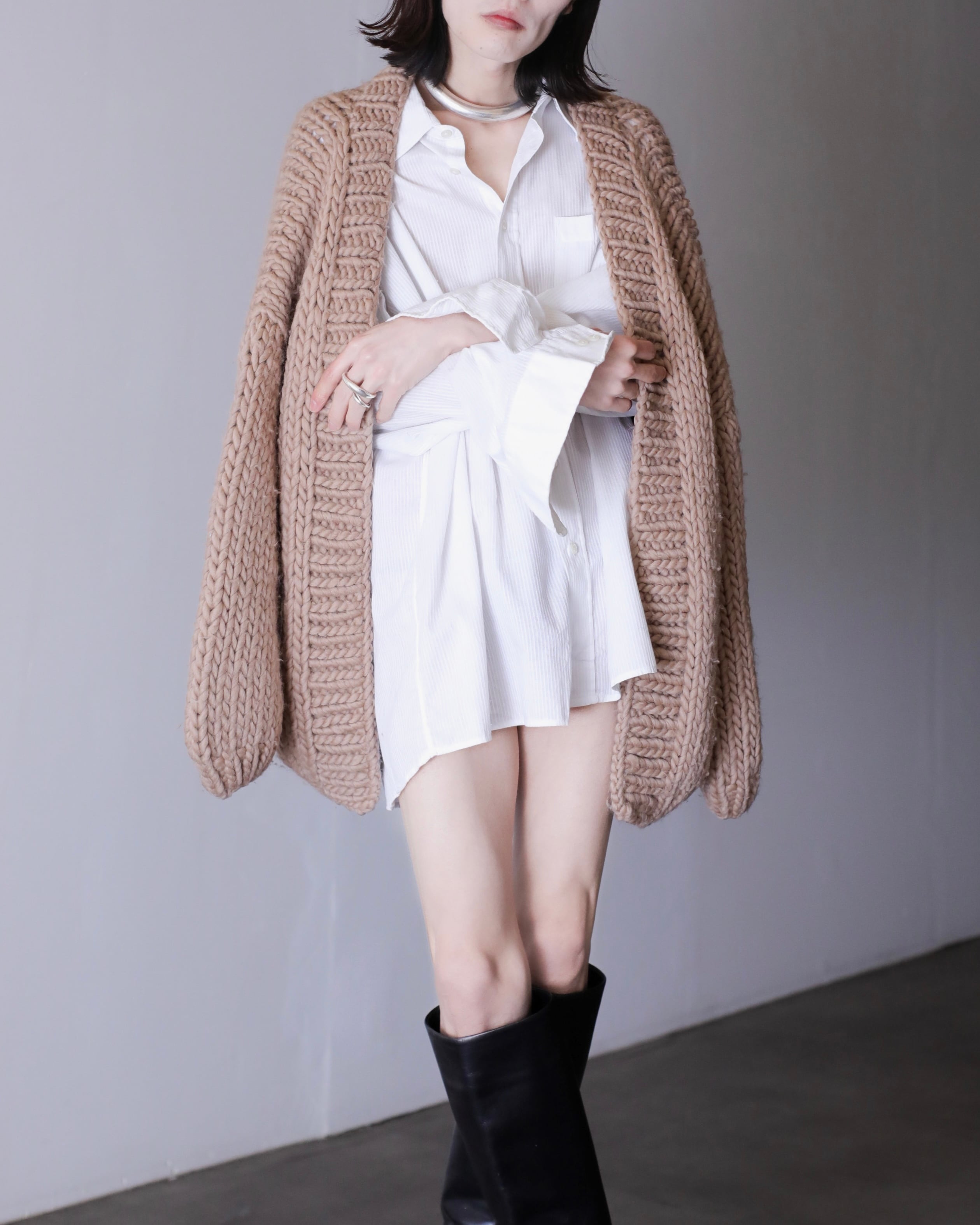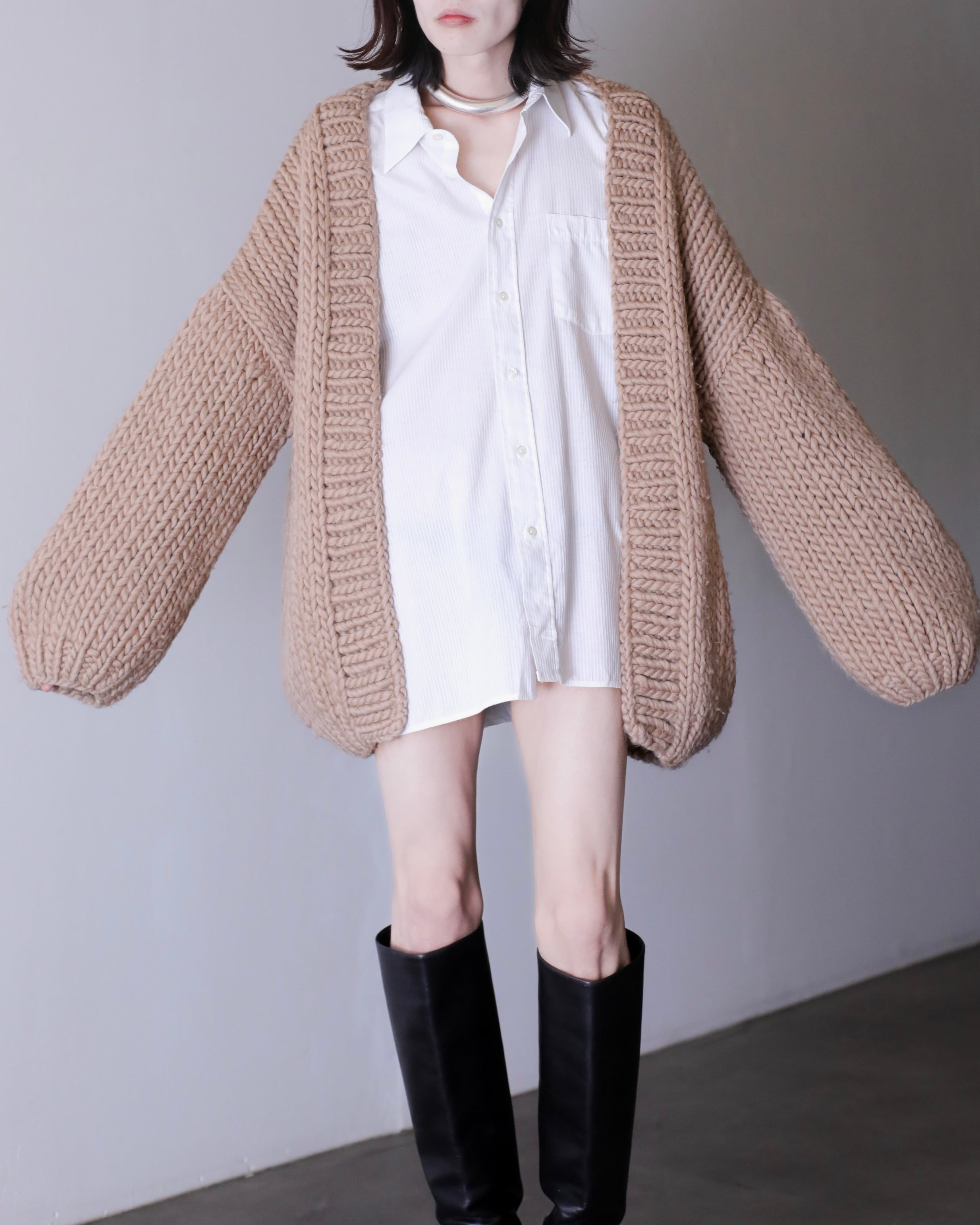super chunky knit "gokubuto arm" design over silhouette cardigan