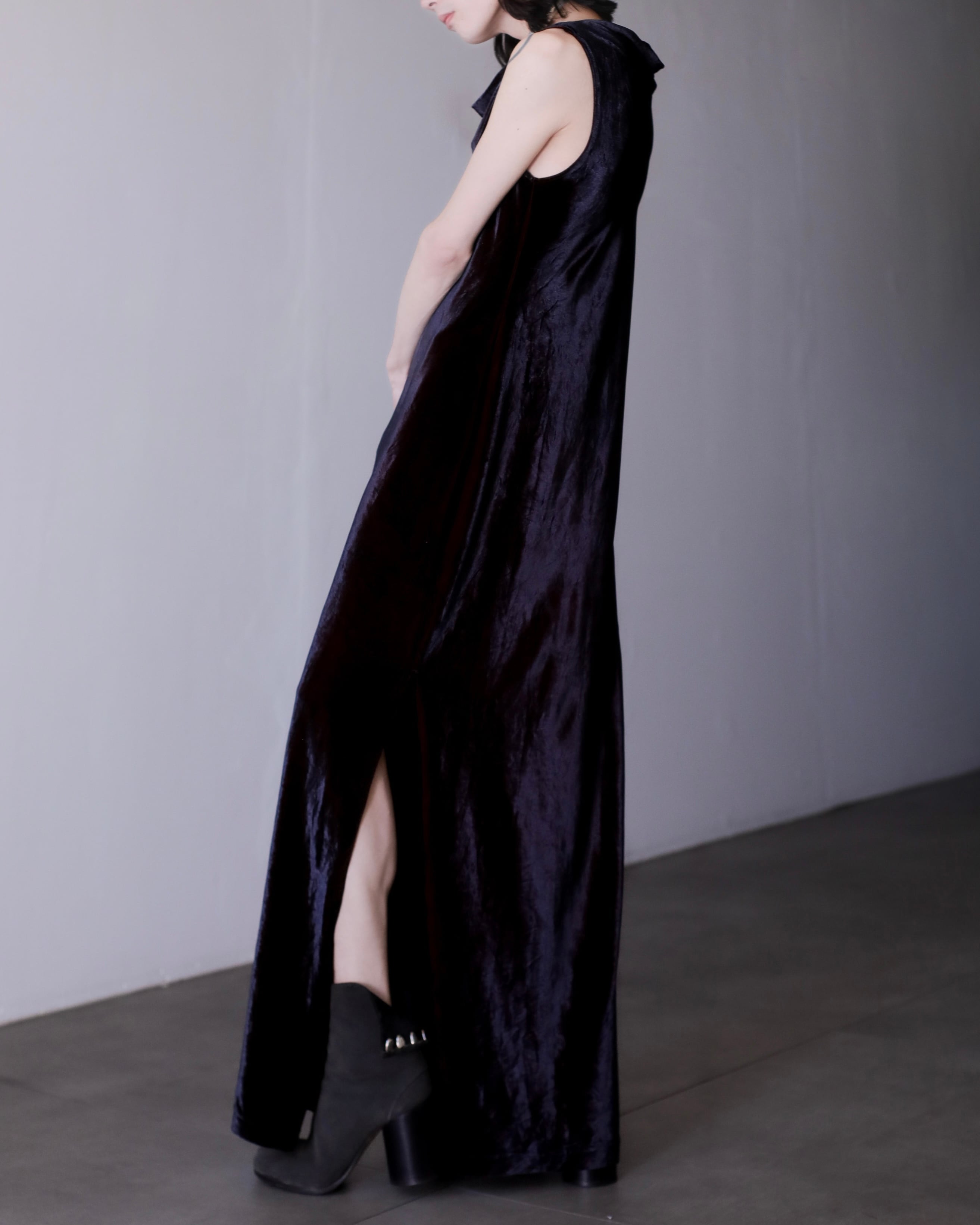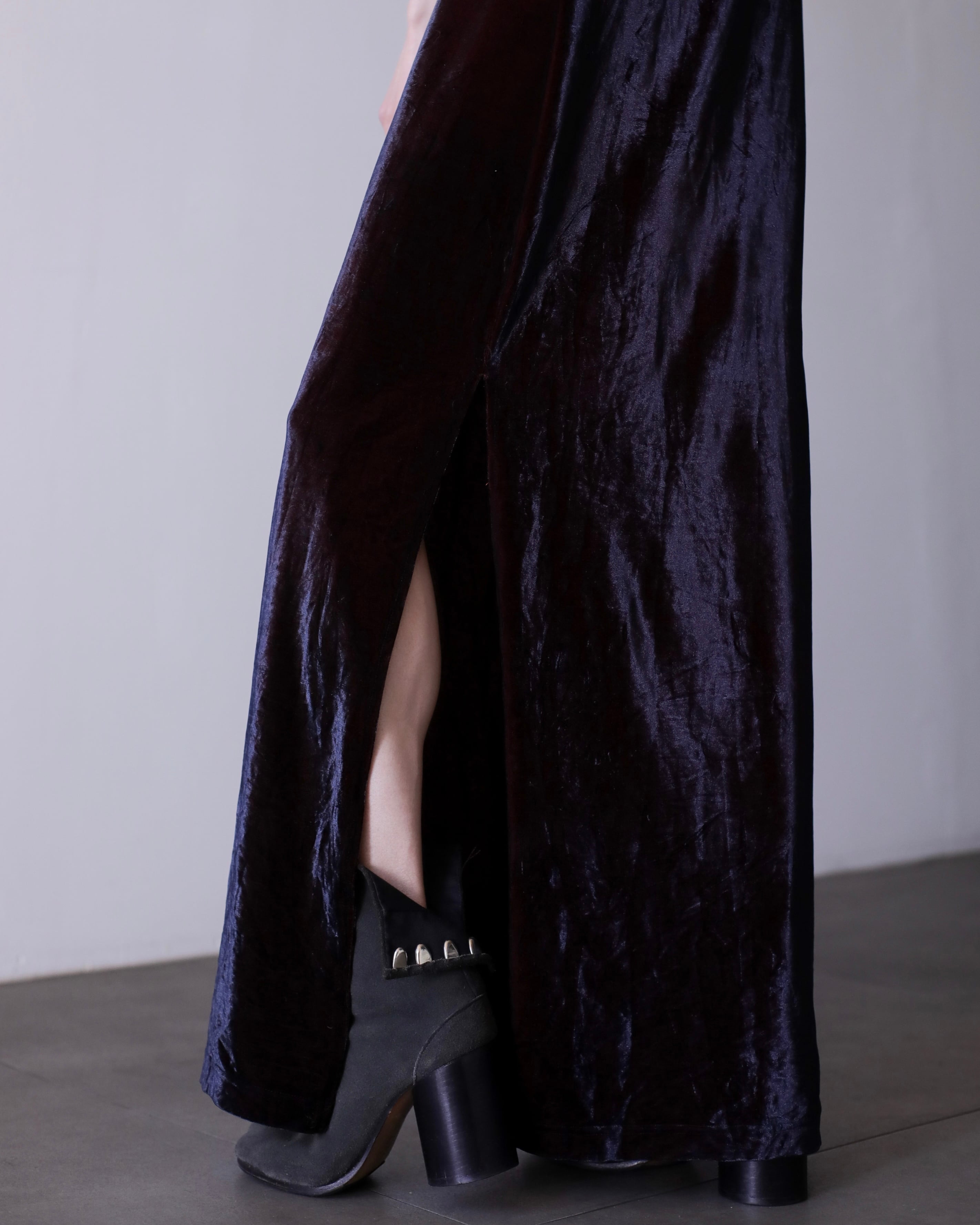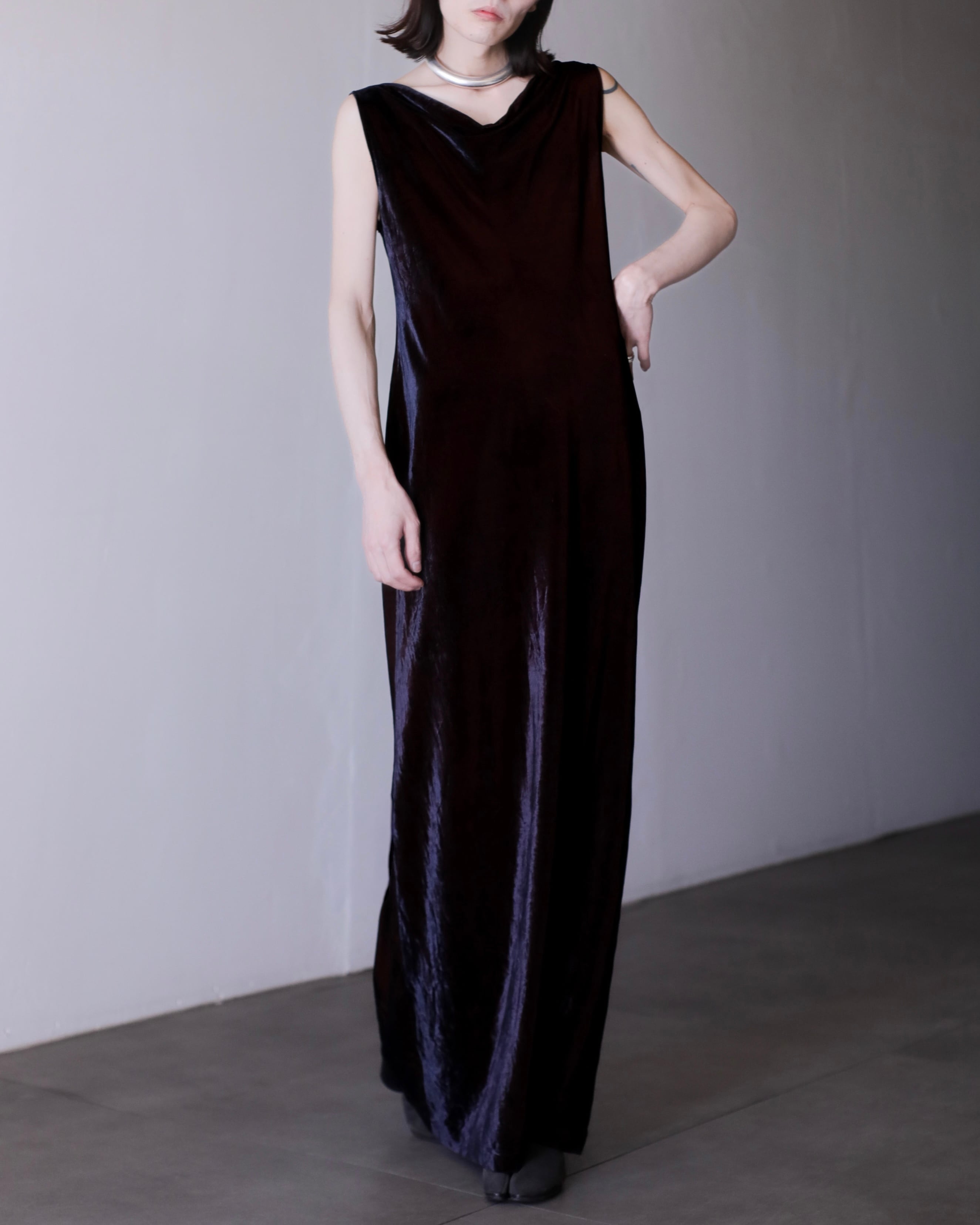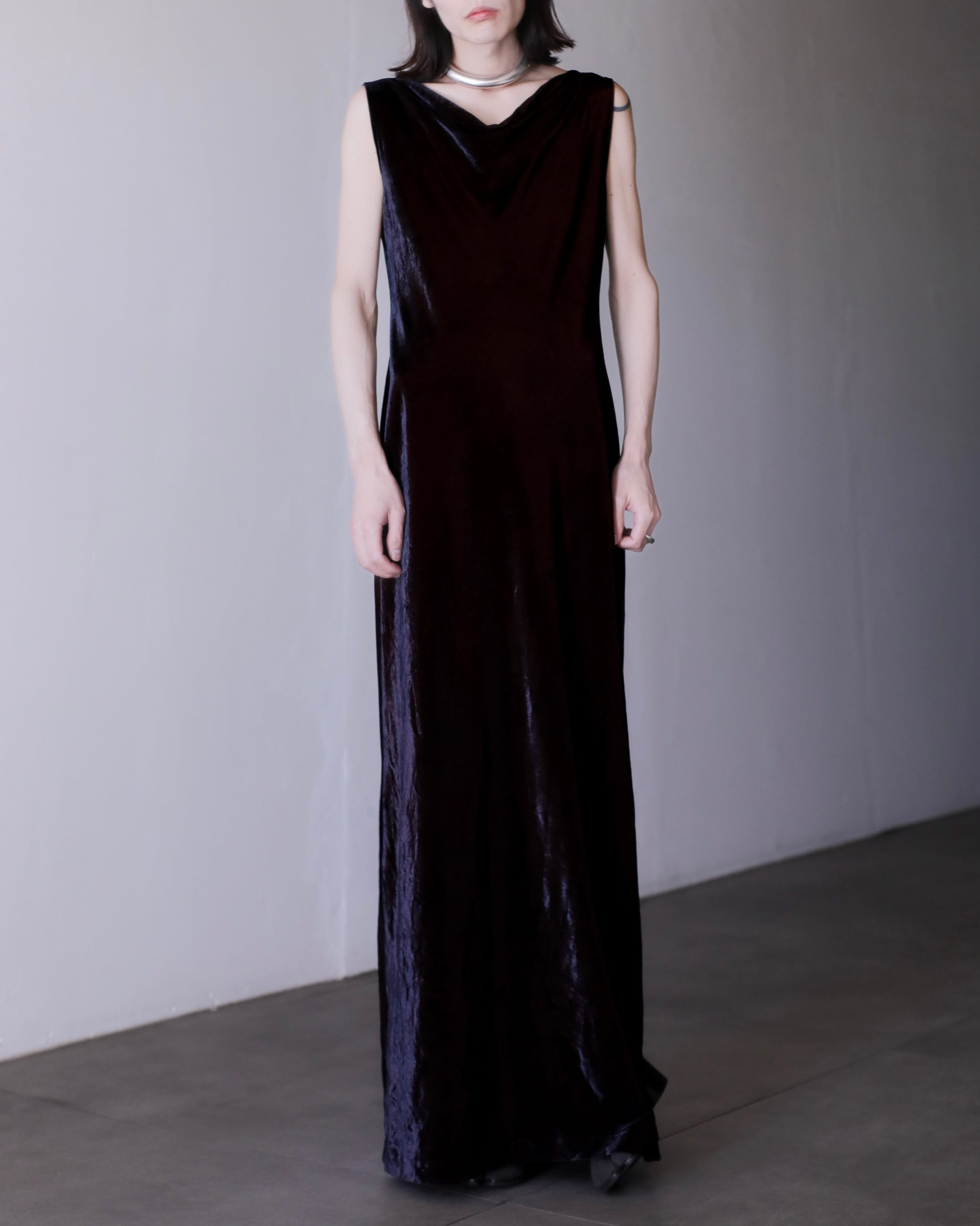 1990s tamamushi velours "mocha mocha" neck maxi length dress