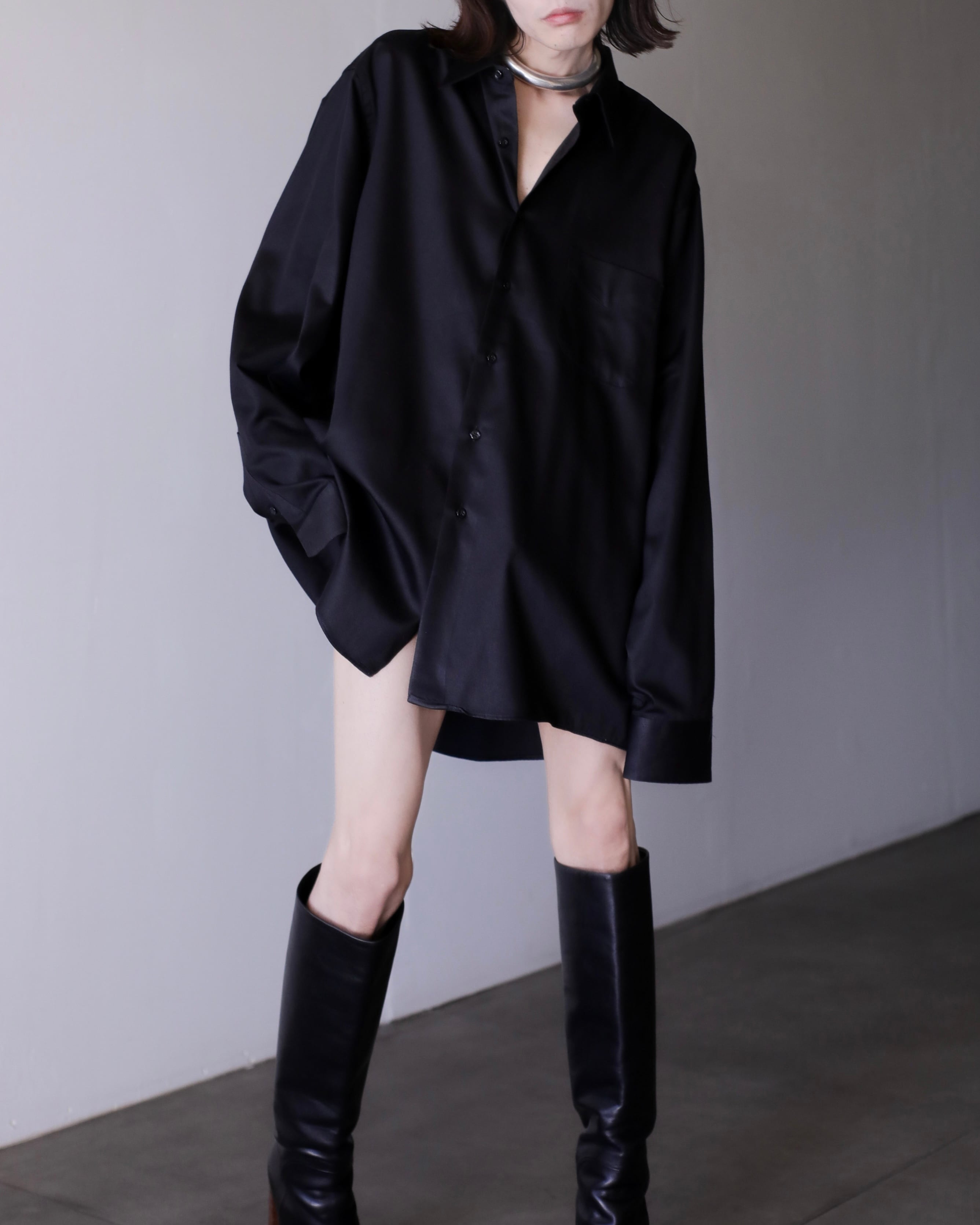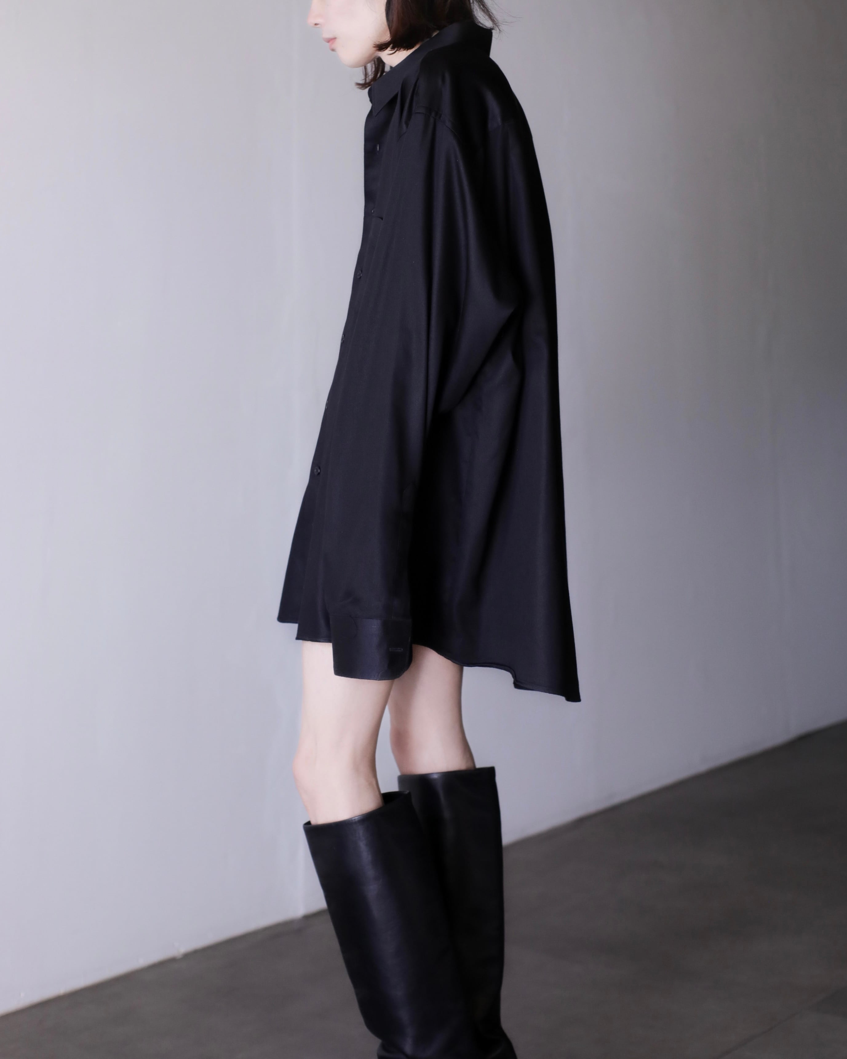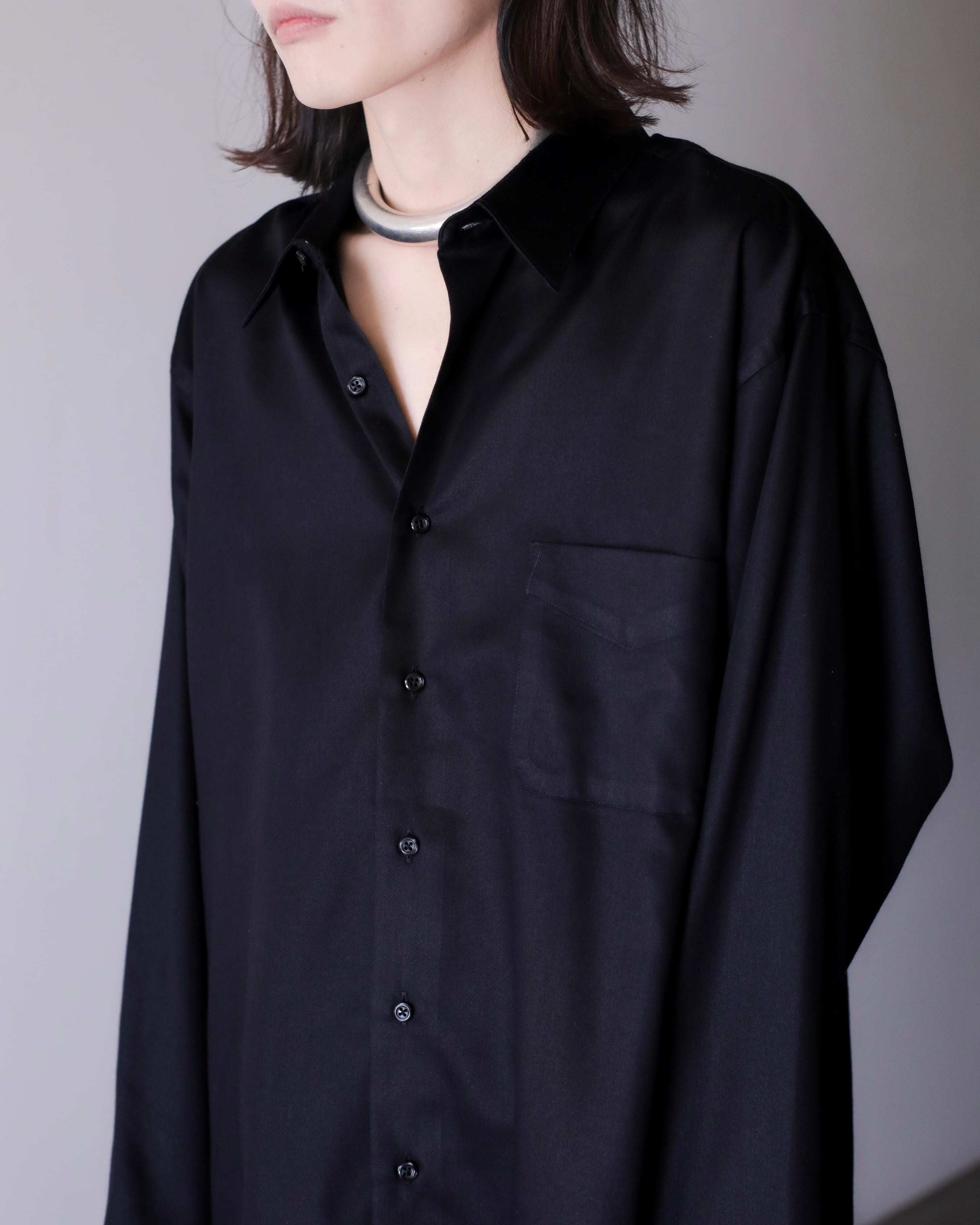 1990s~ cotton satin black color dress shirt oversized