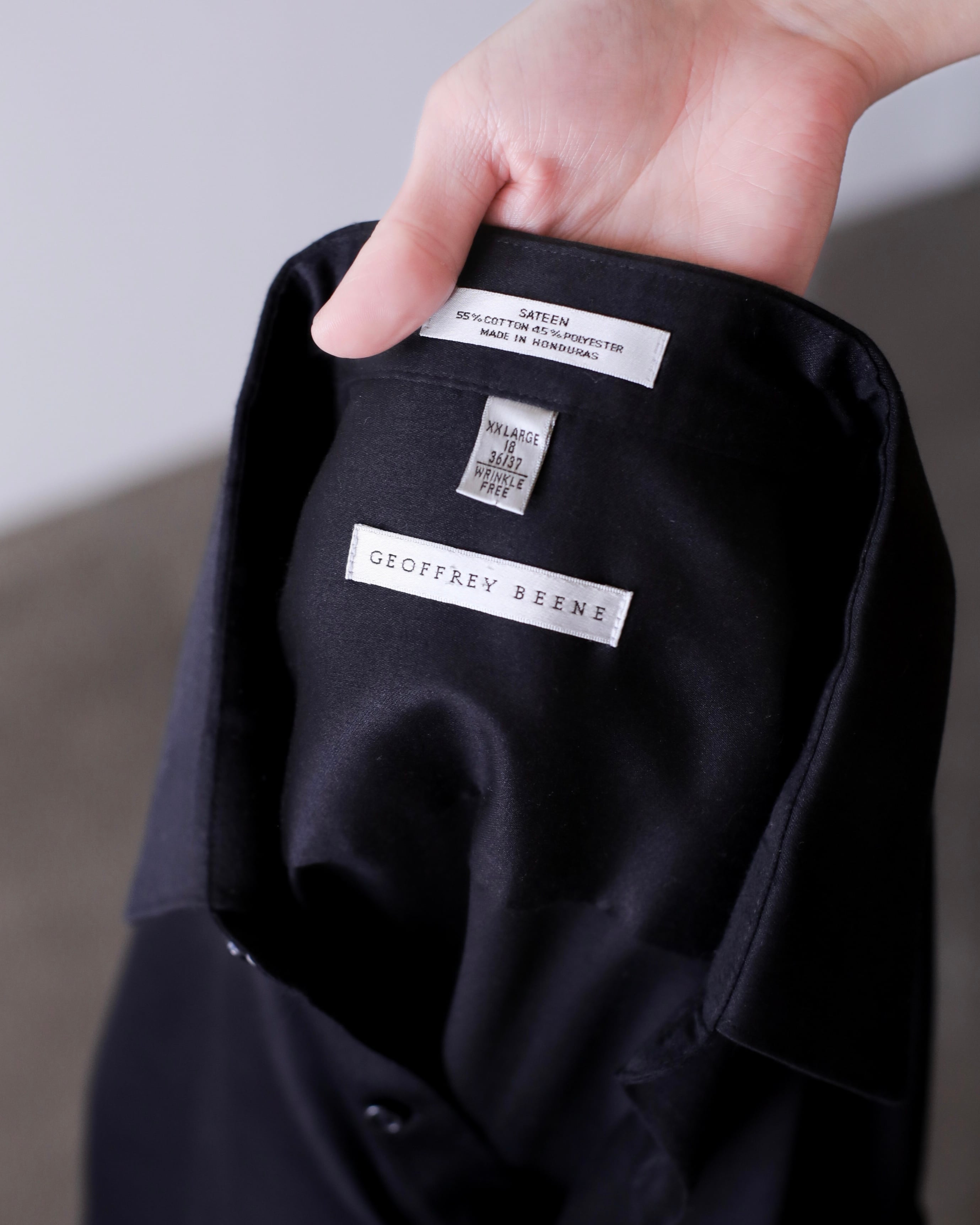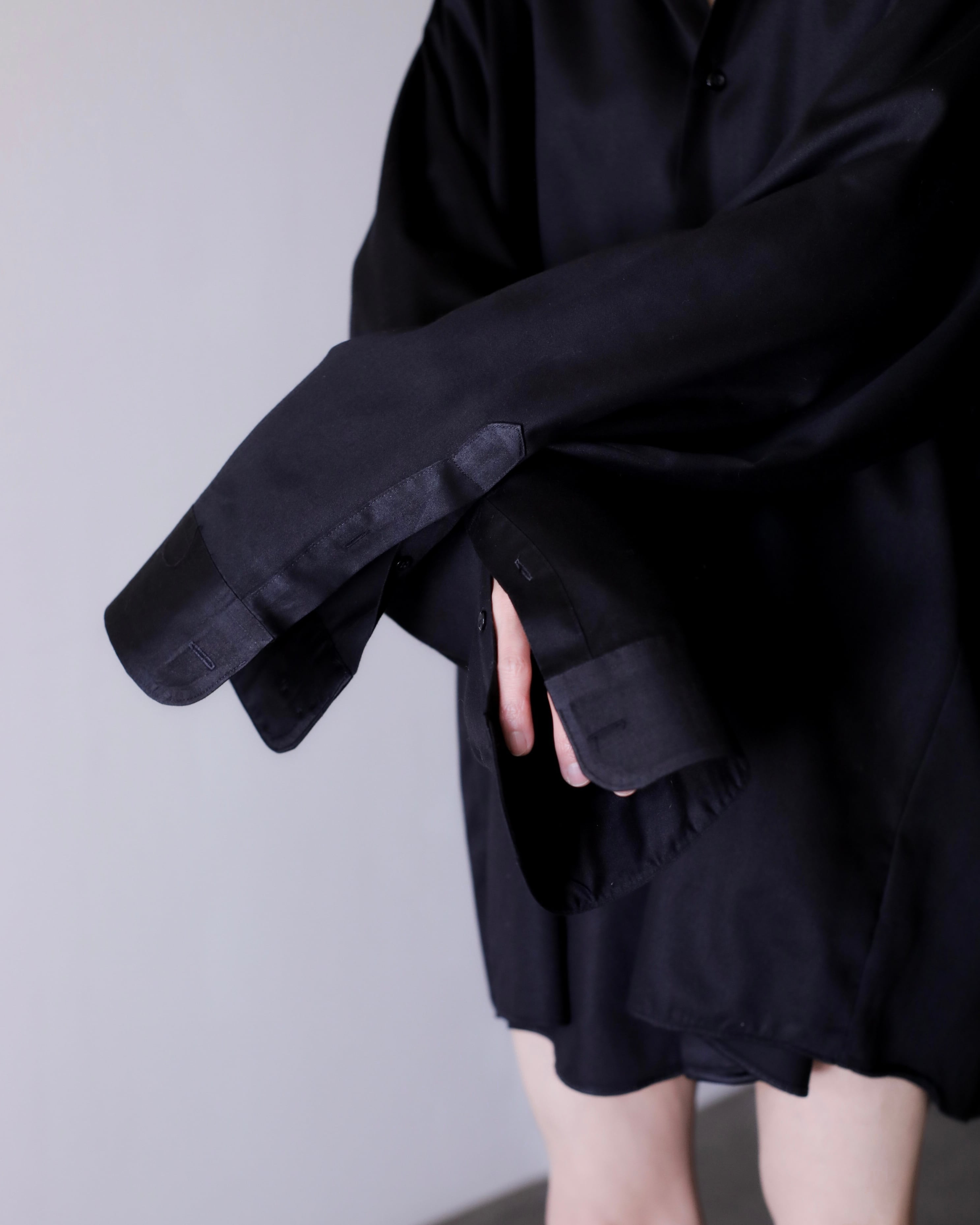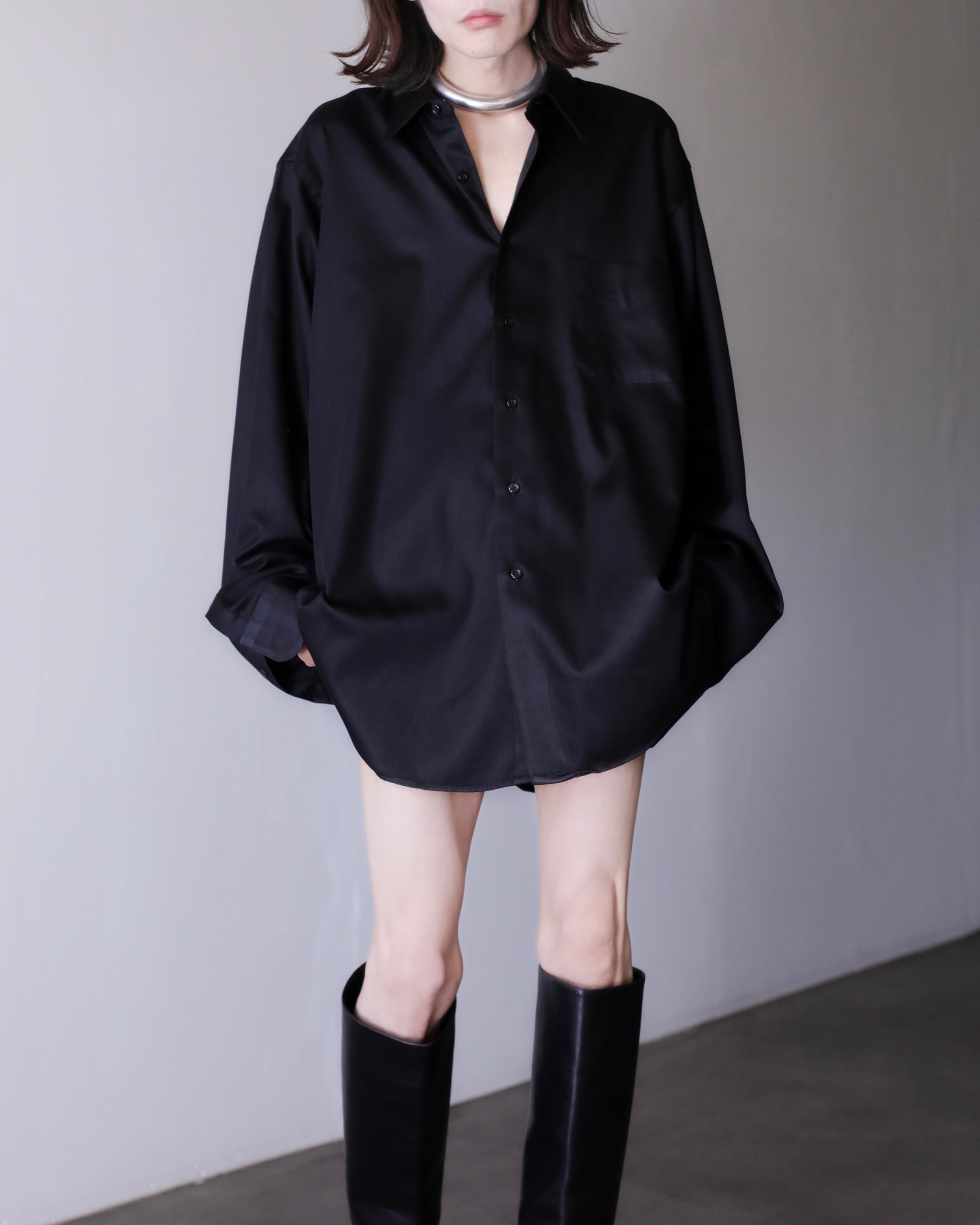 1990s~ cotton satin black color dress shirt oversized