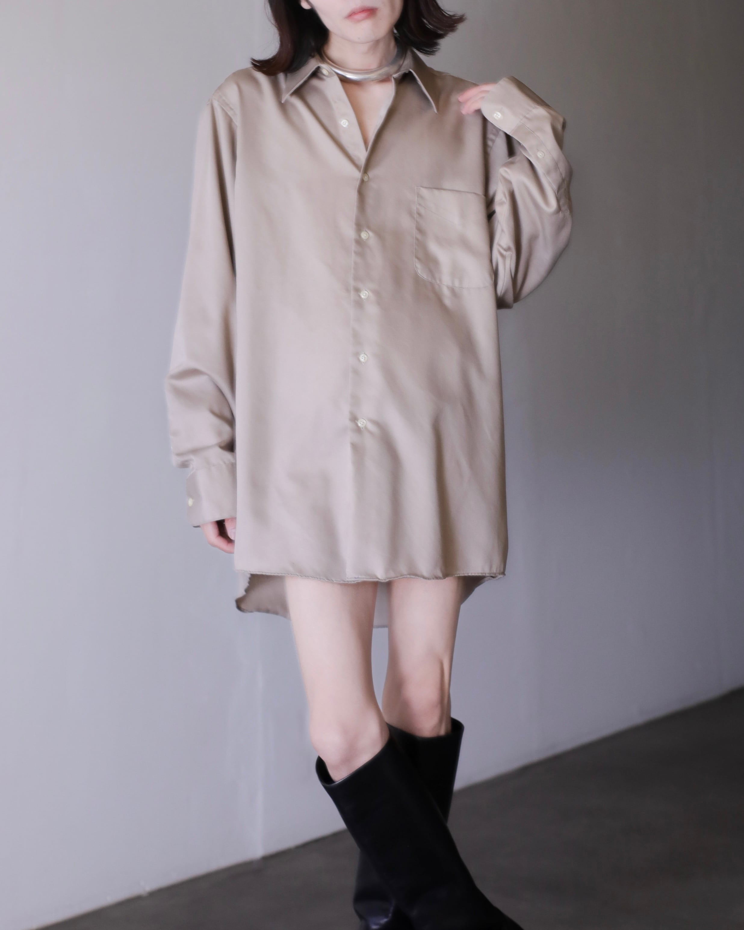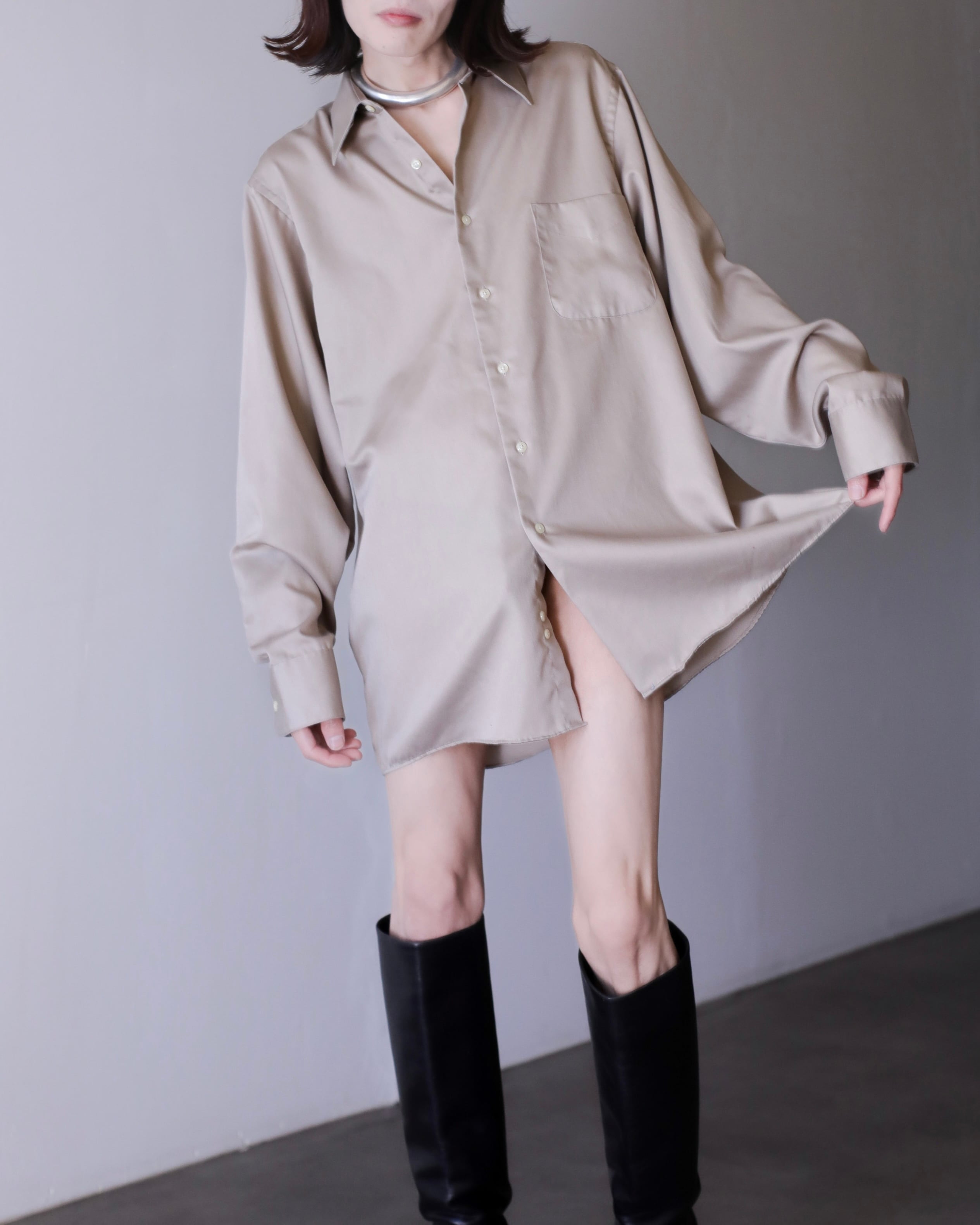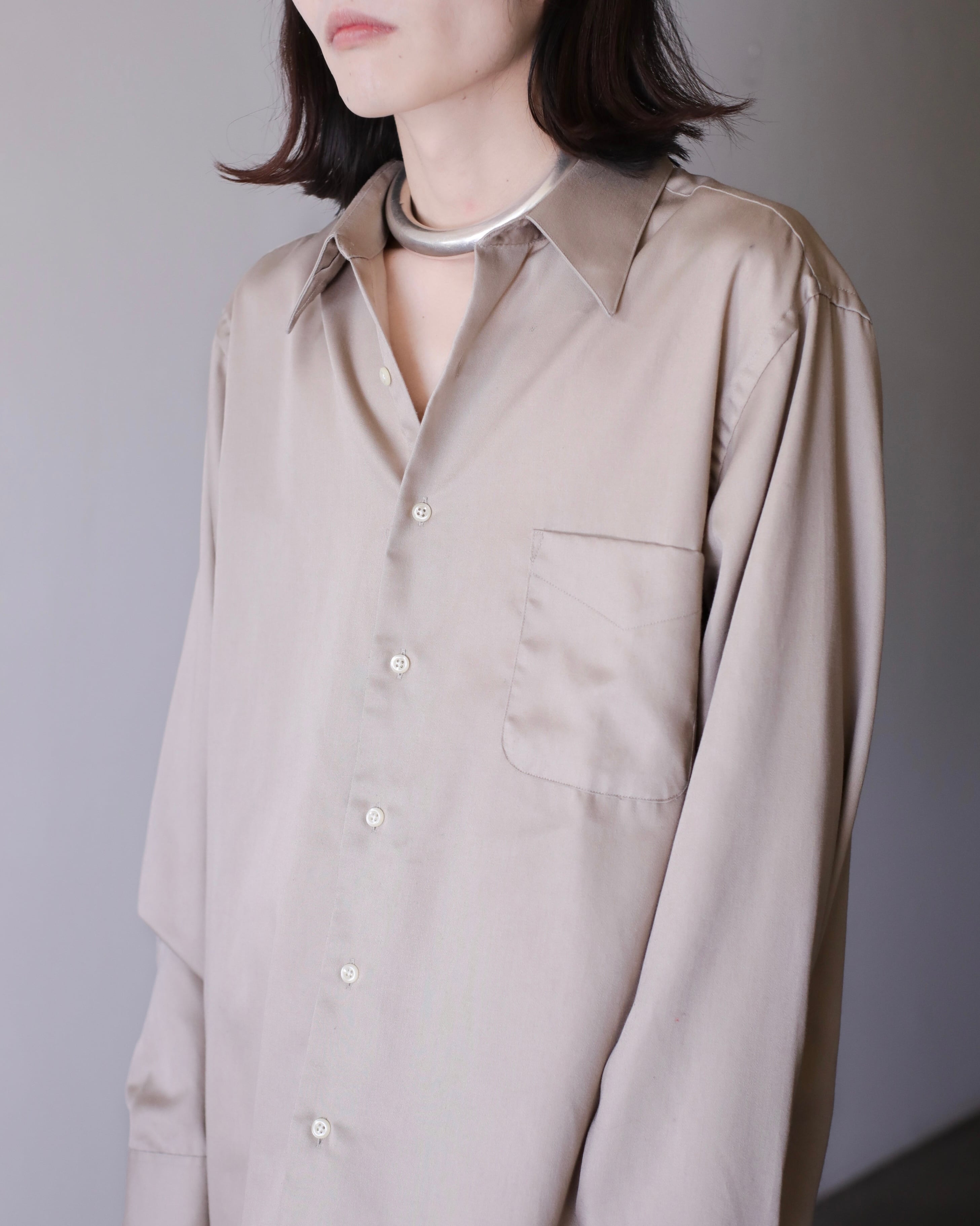 1990s~ cotton satin ecru gray color dress shirt over sized