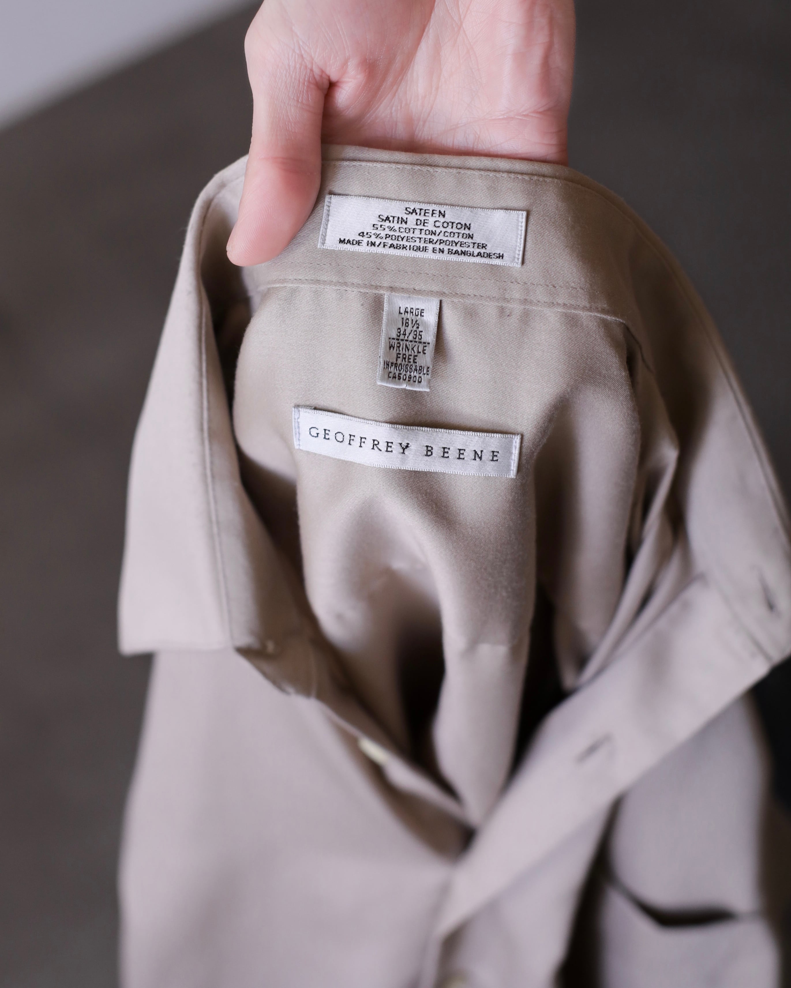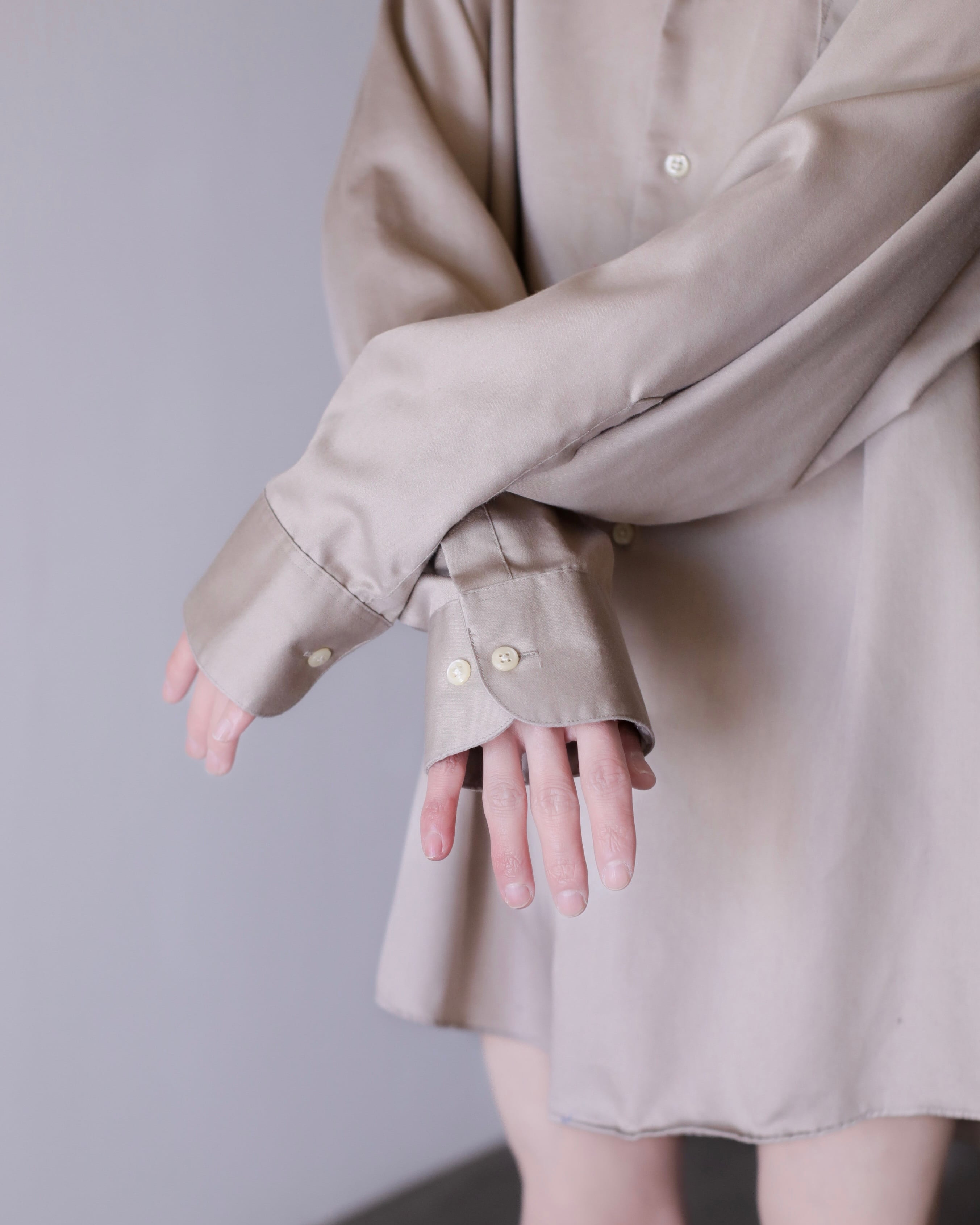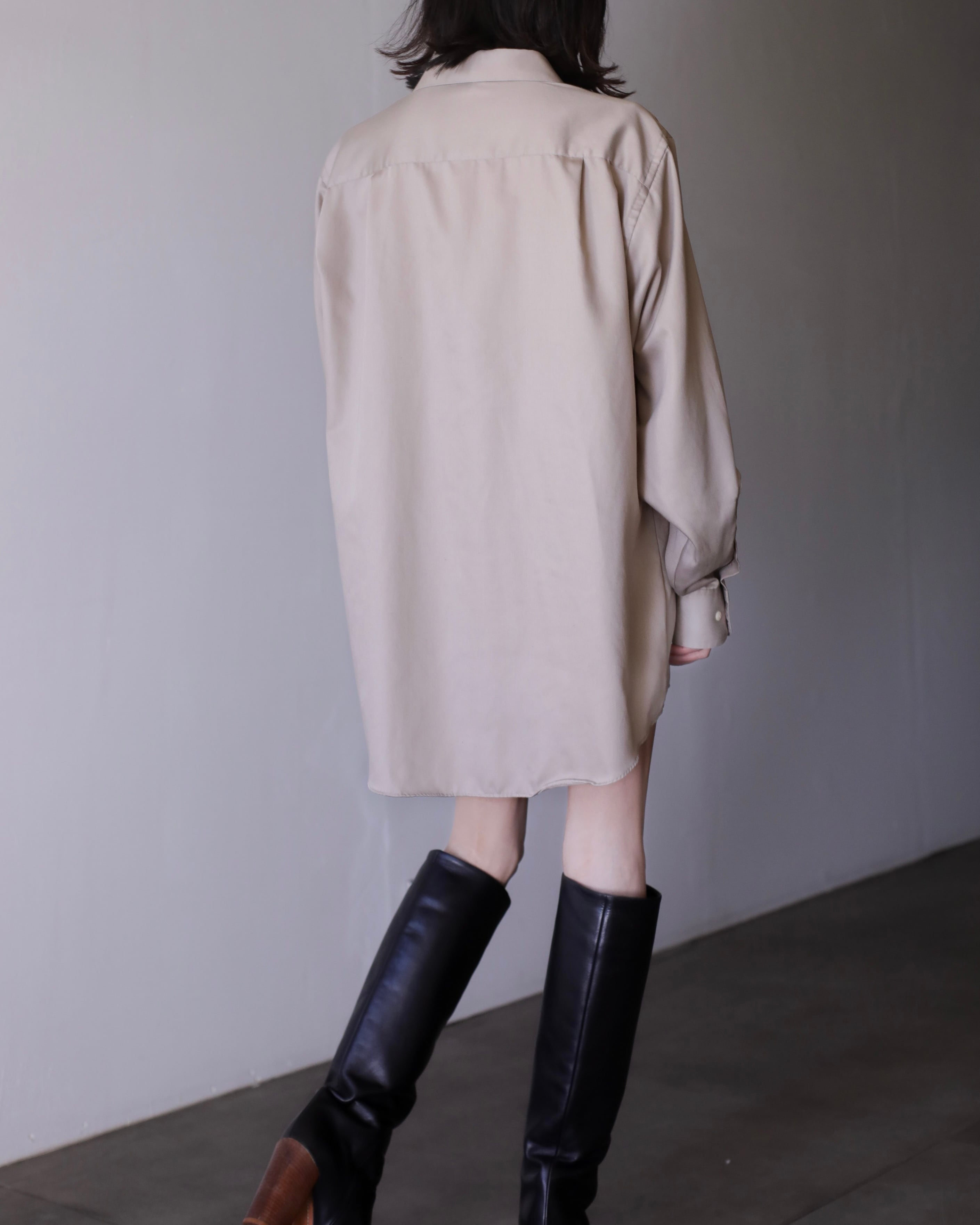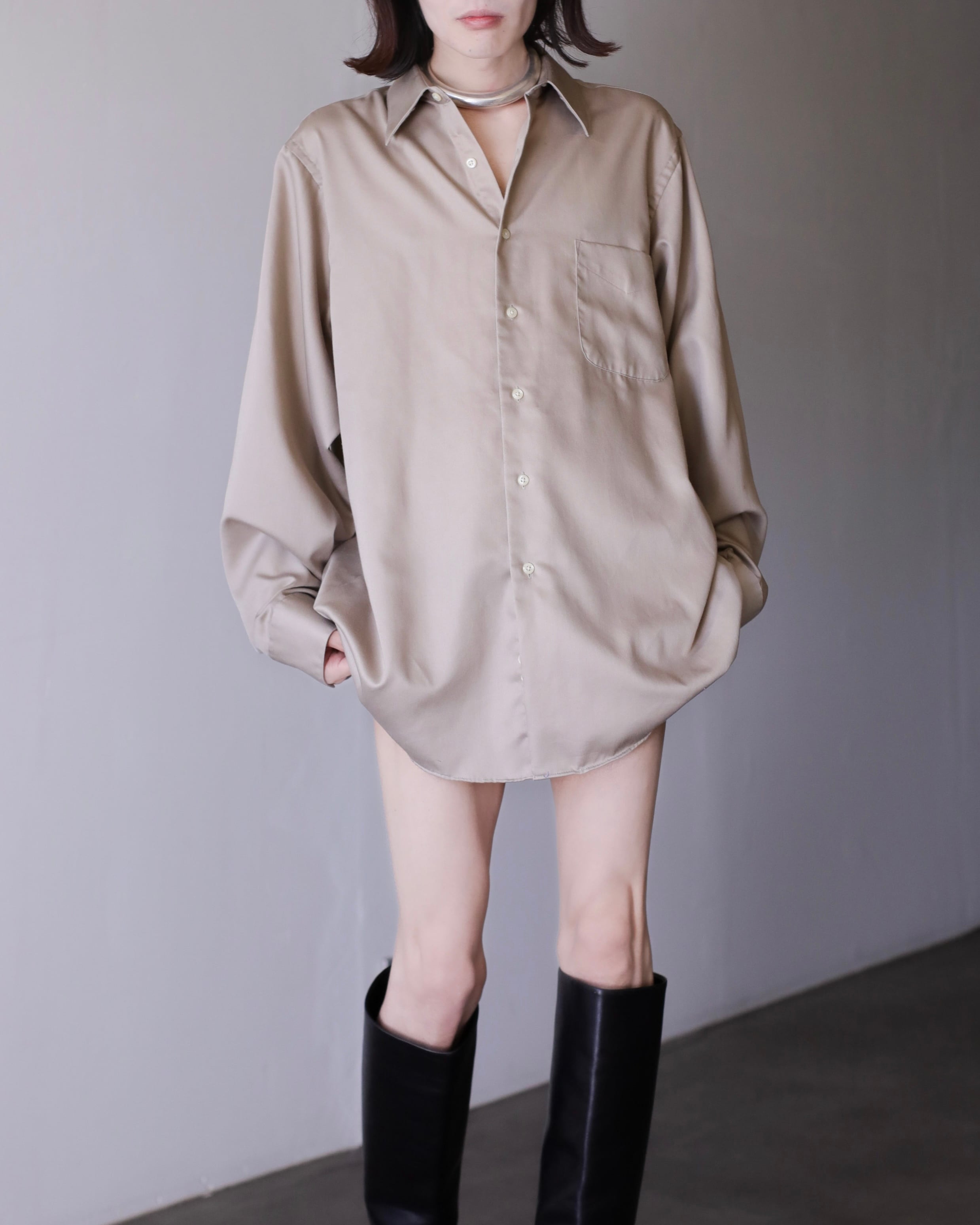 1990s~ cotton satin ecru gray color dress shirt over sized
