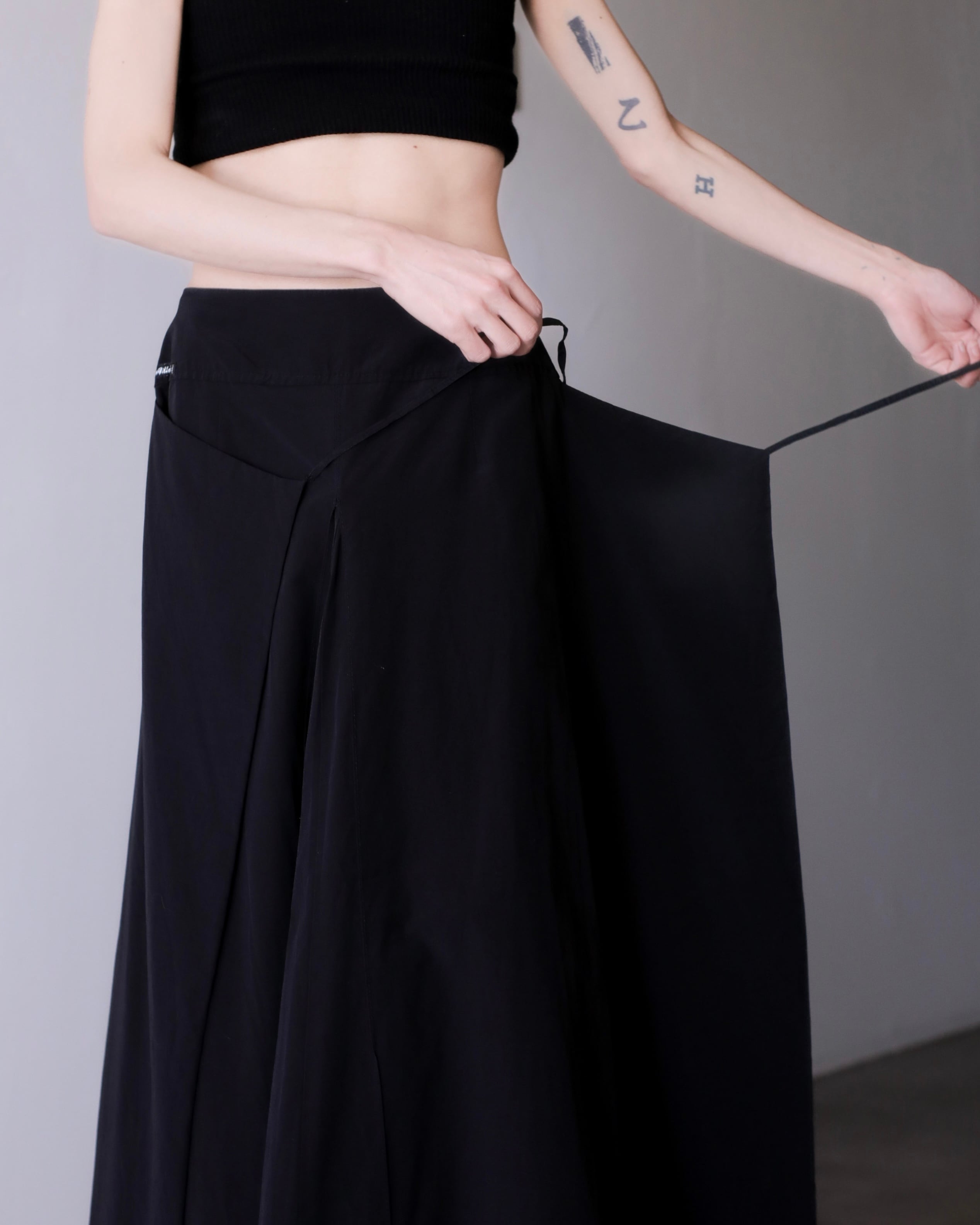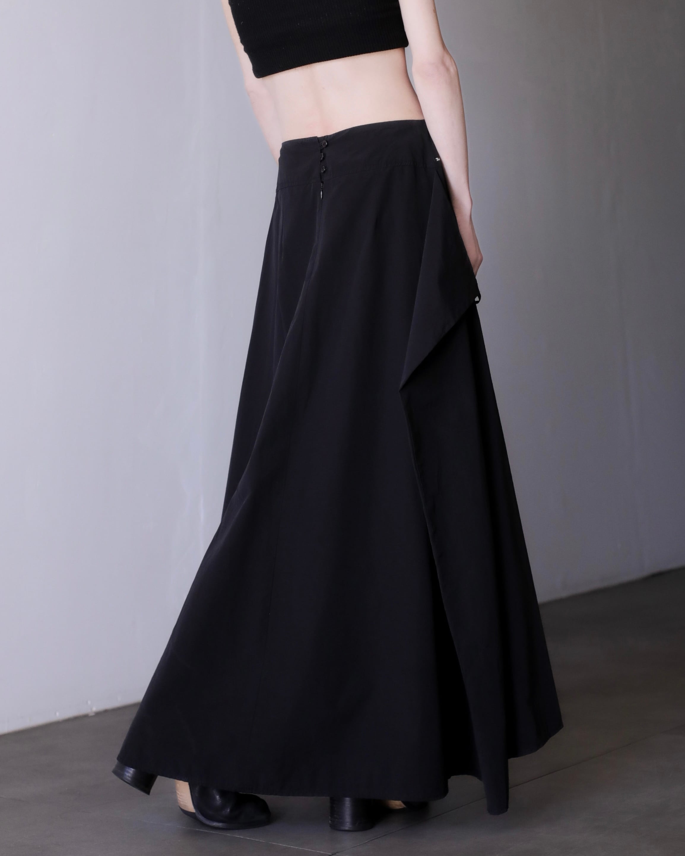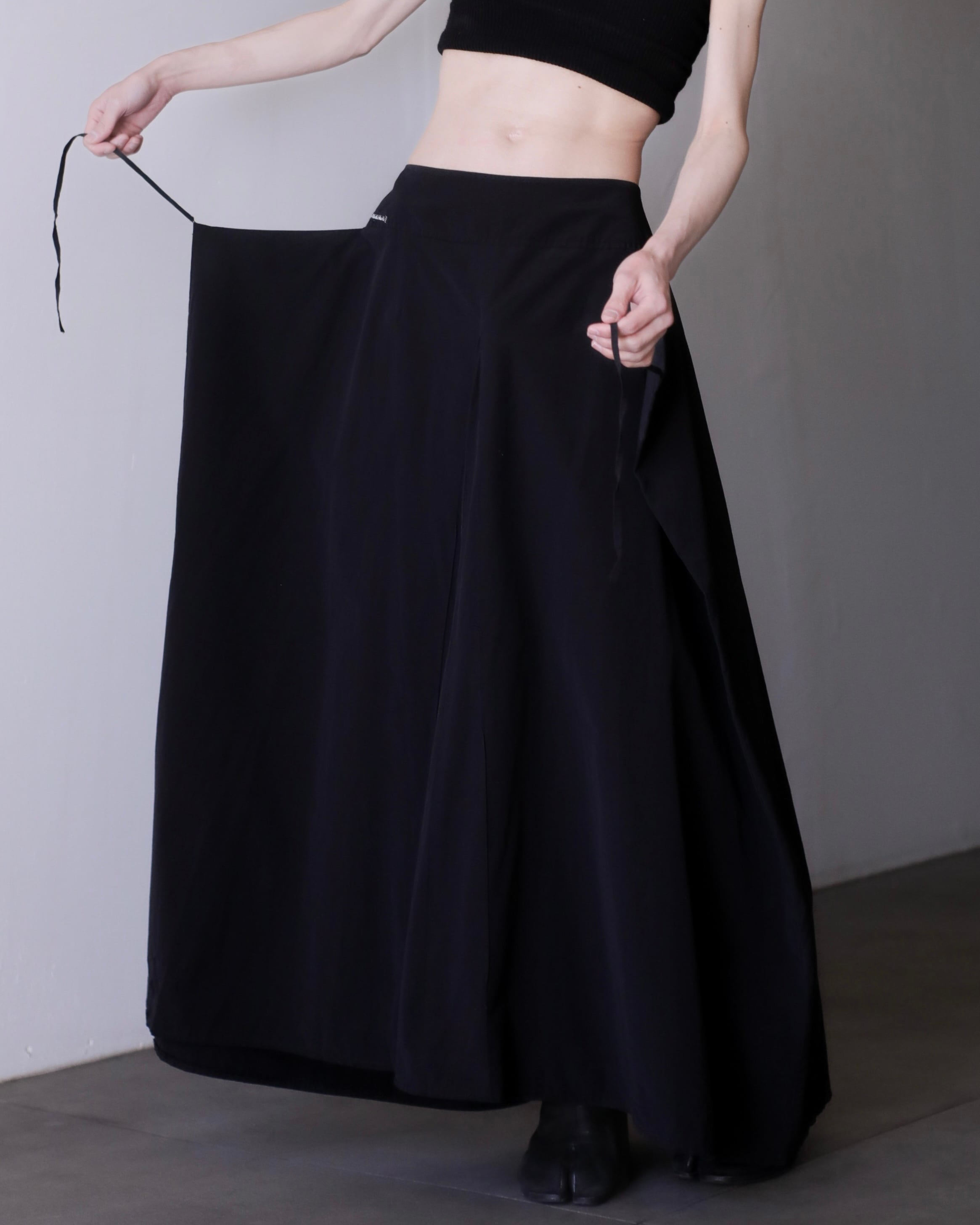 1980s~ "ika" nylon wrap design inverted pleats maxi skirt Made In France