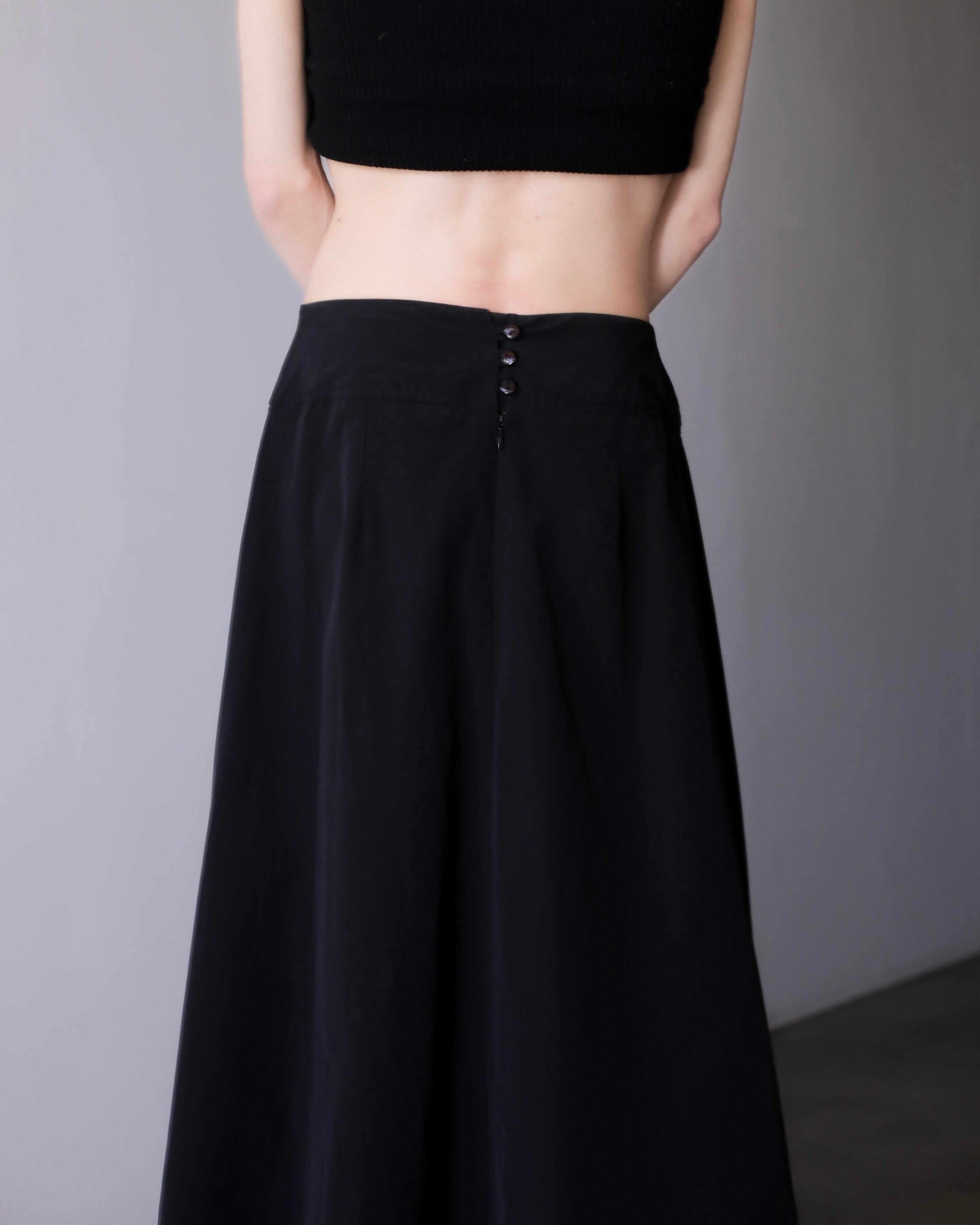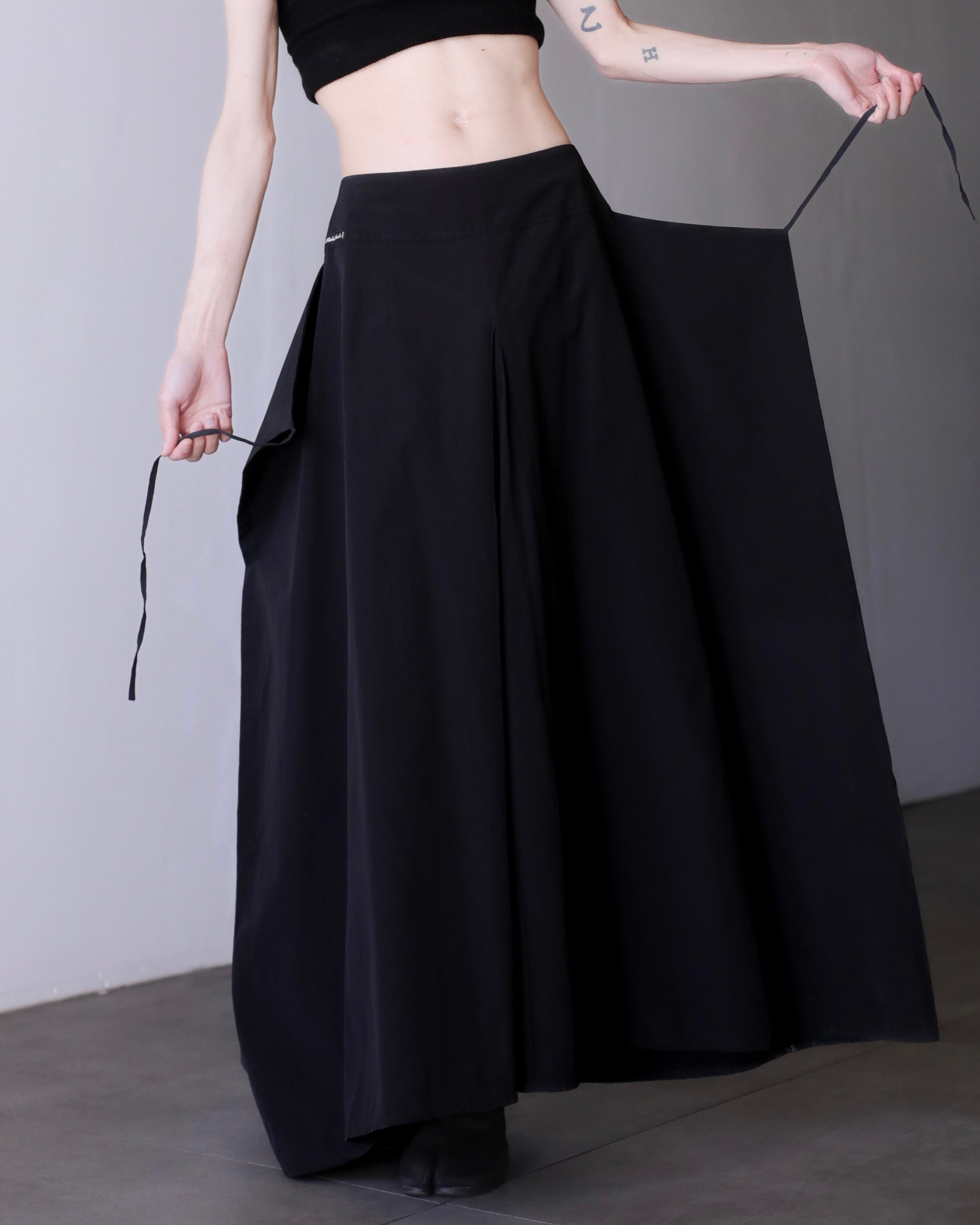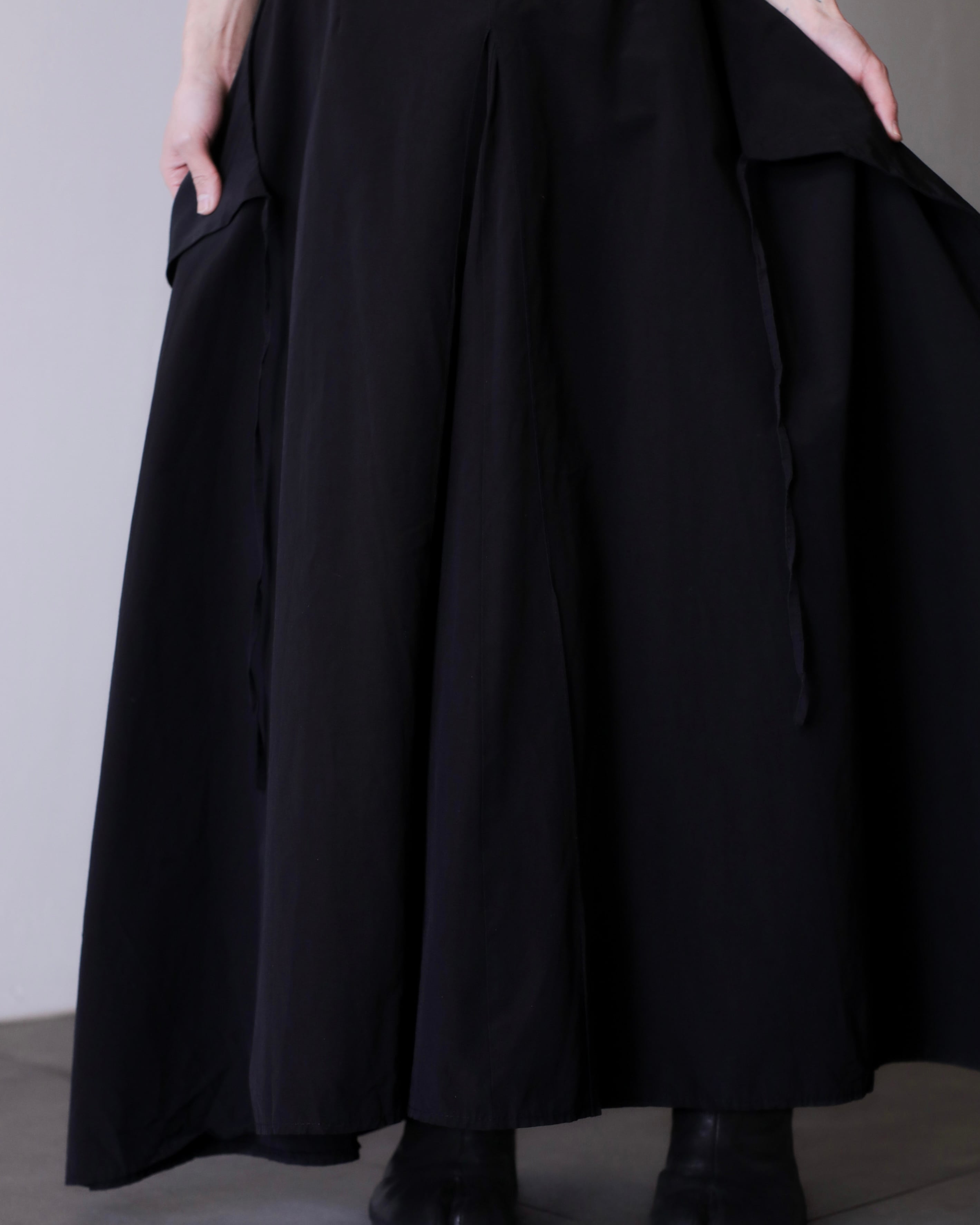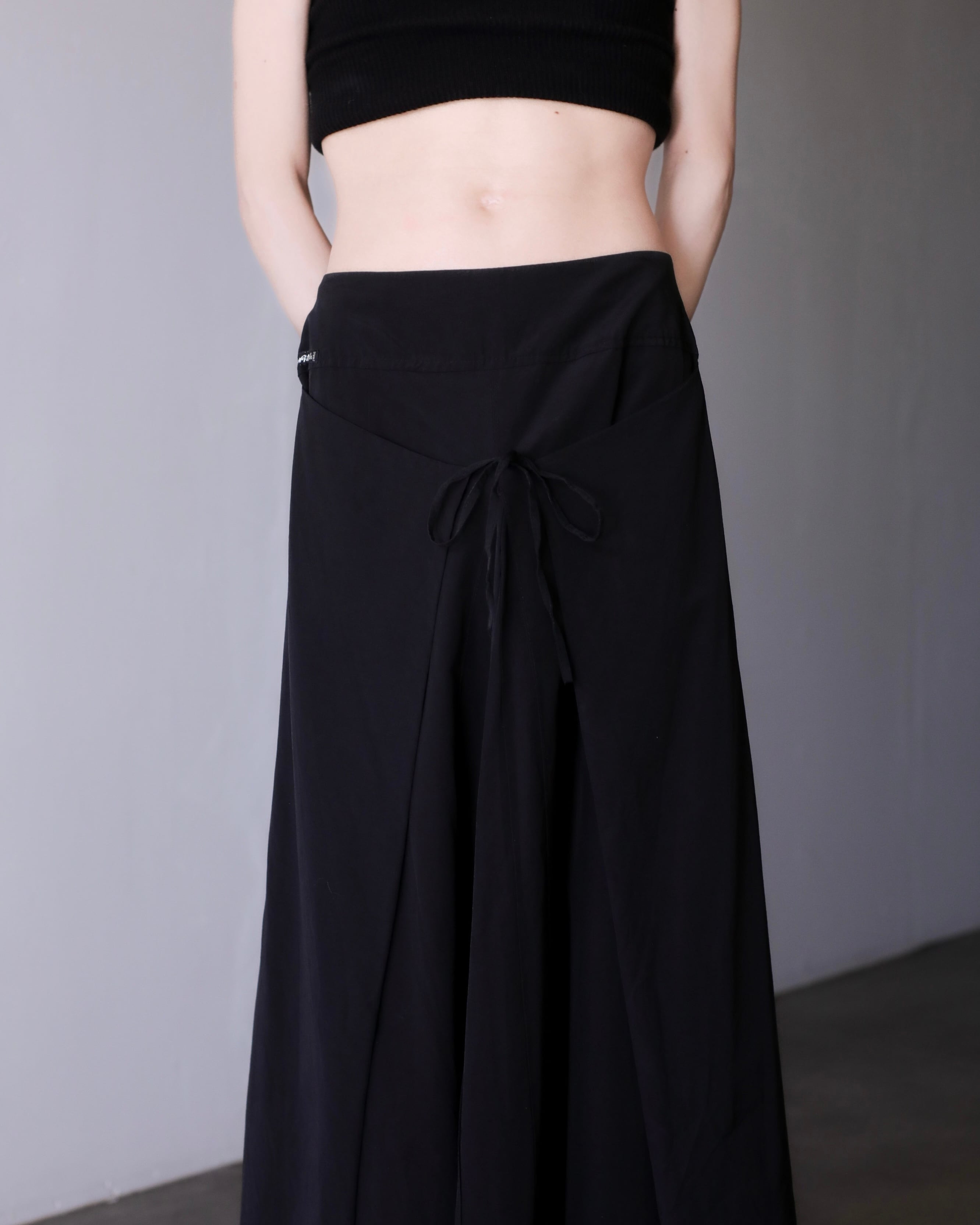 1980s~ "ika" nylon wrap design inverted pleats maxi skirt Made In France