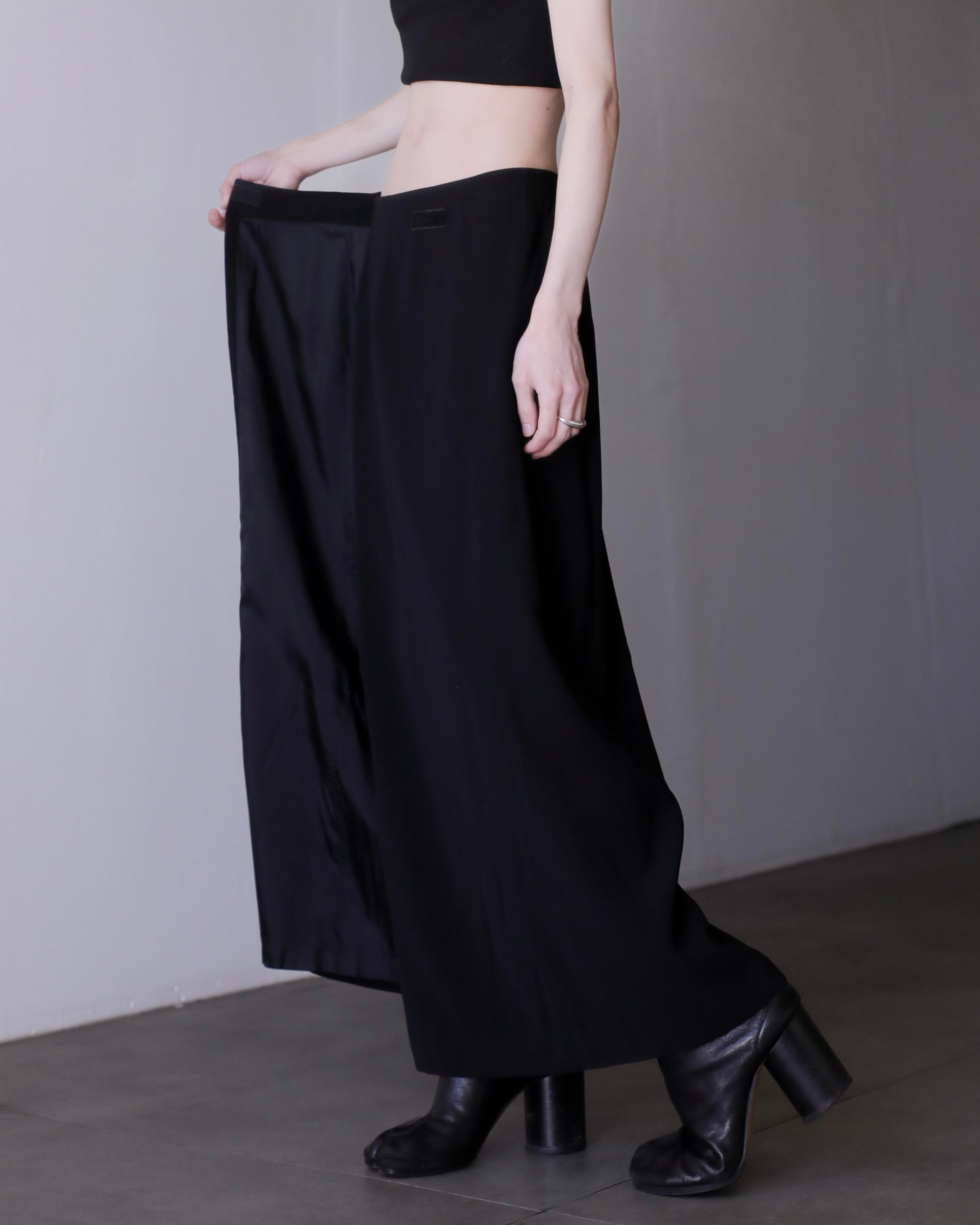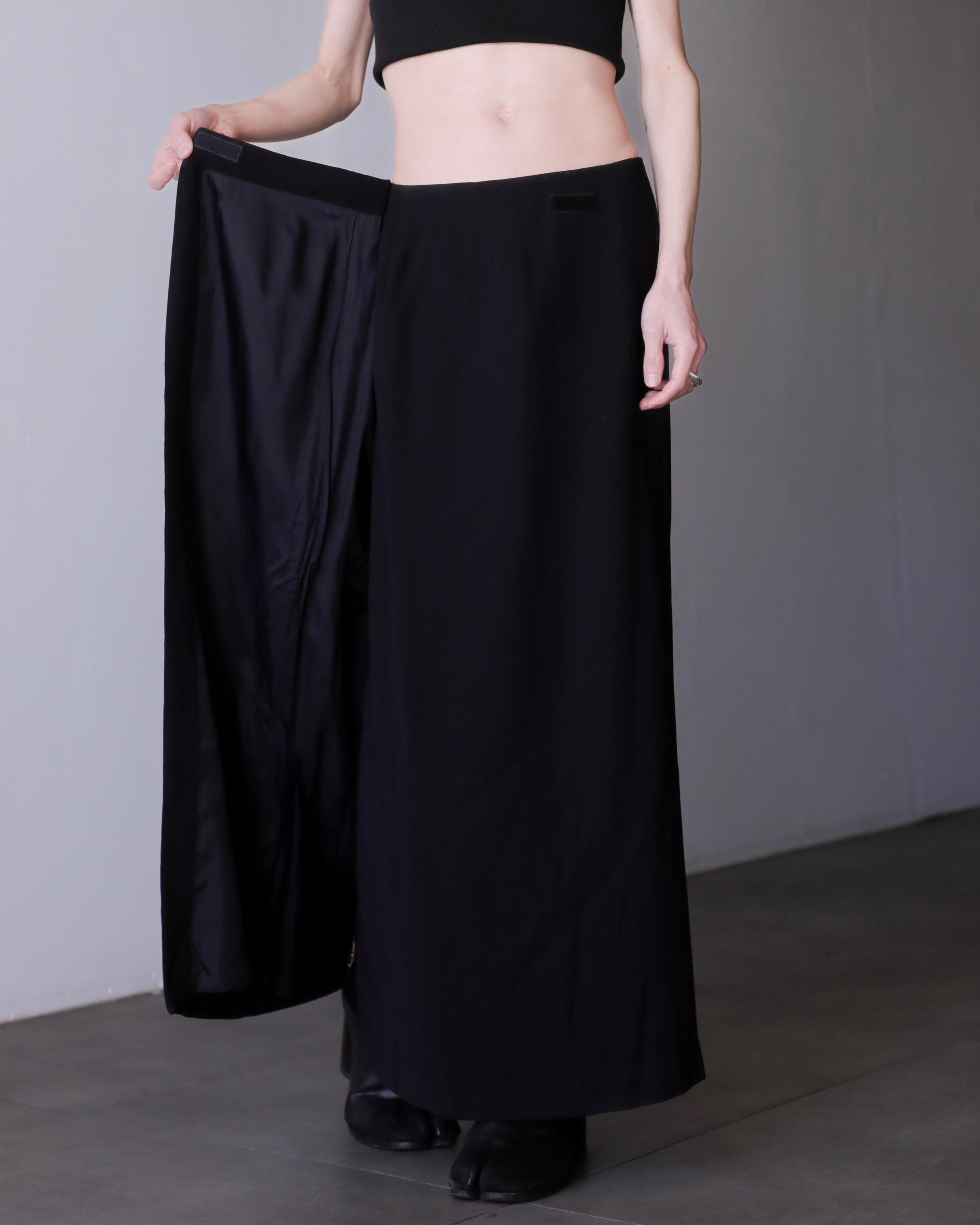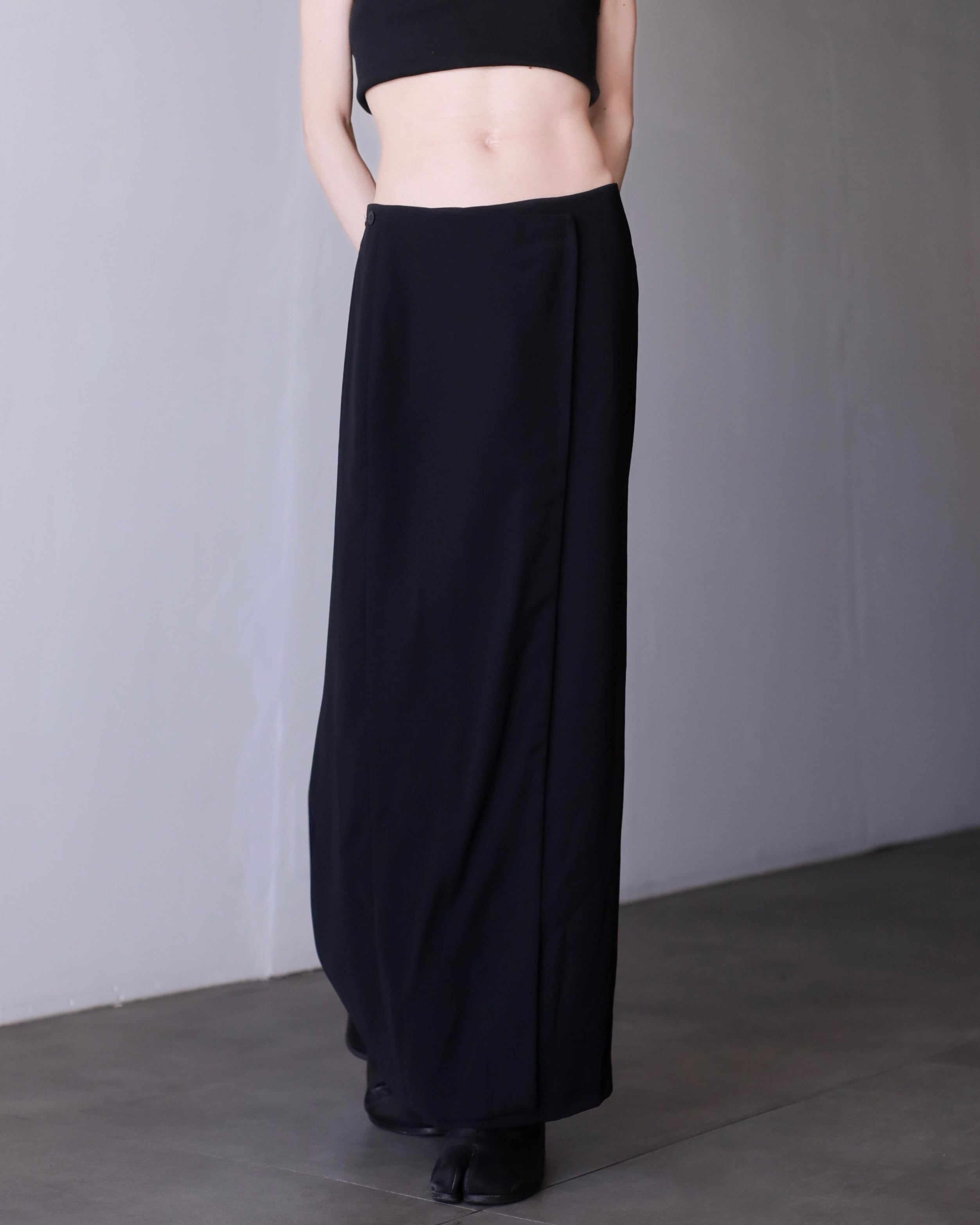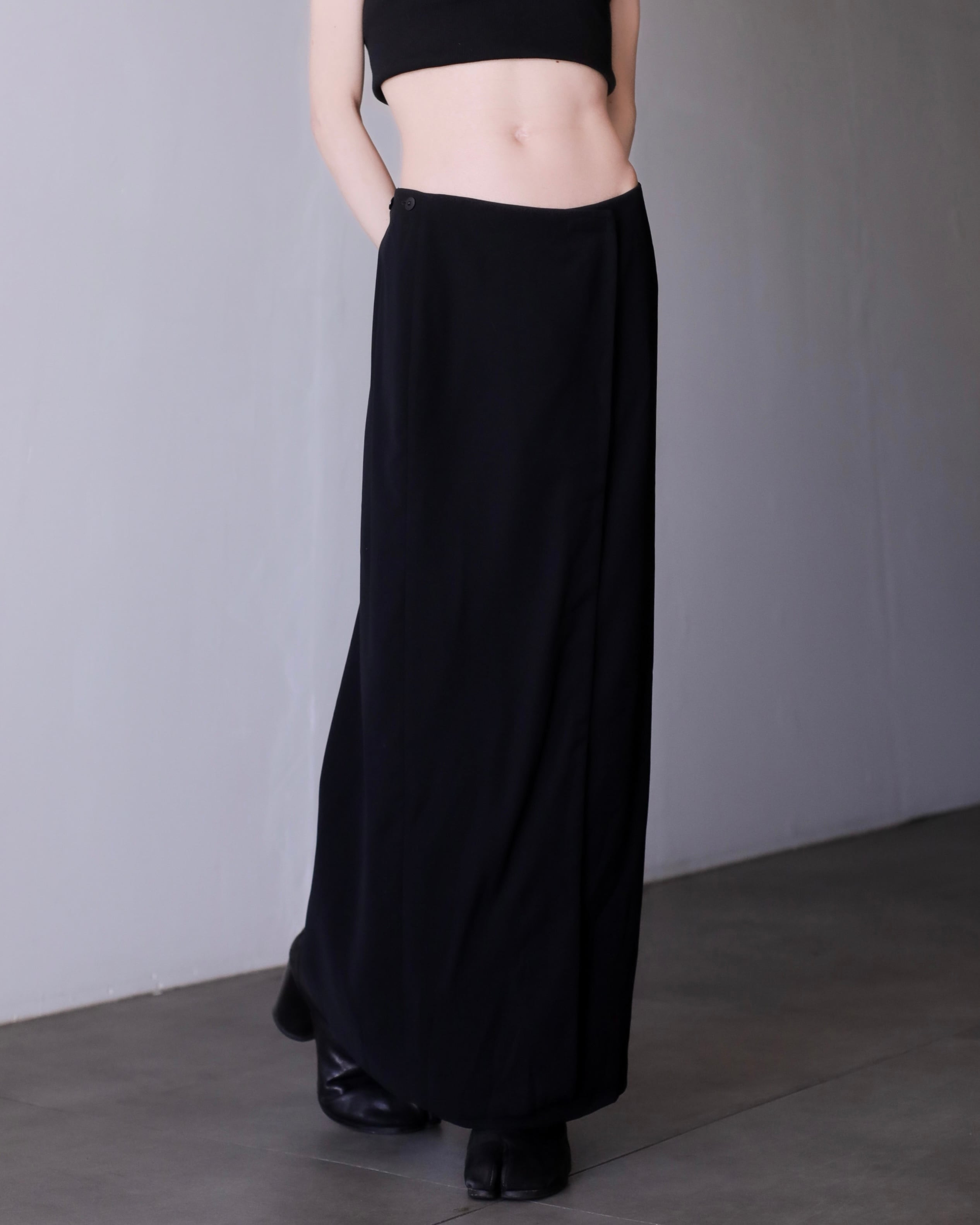 1990s wrap trousers design maxi length skirt Made In France