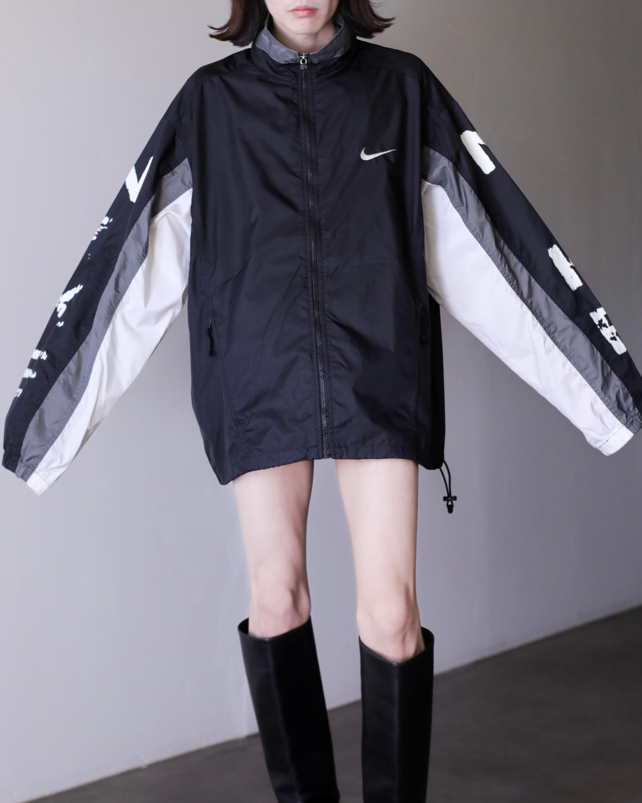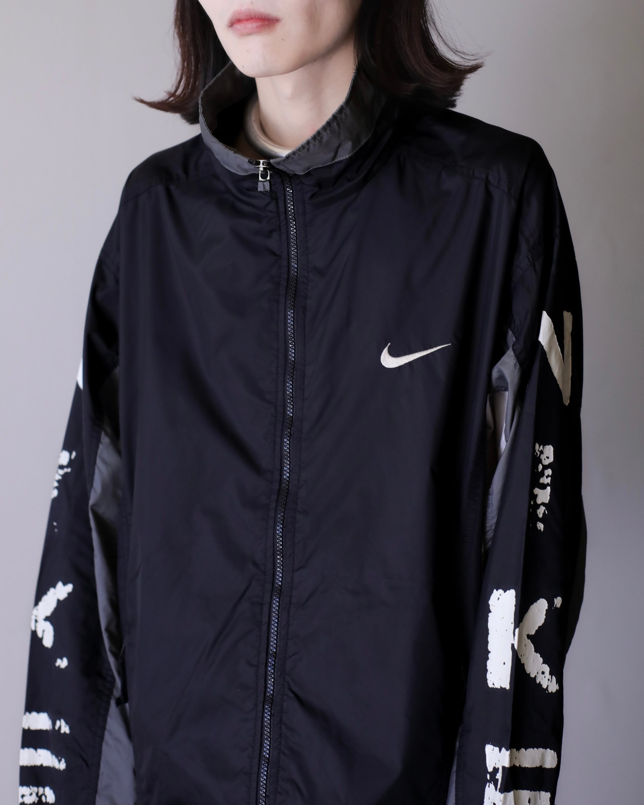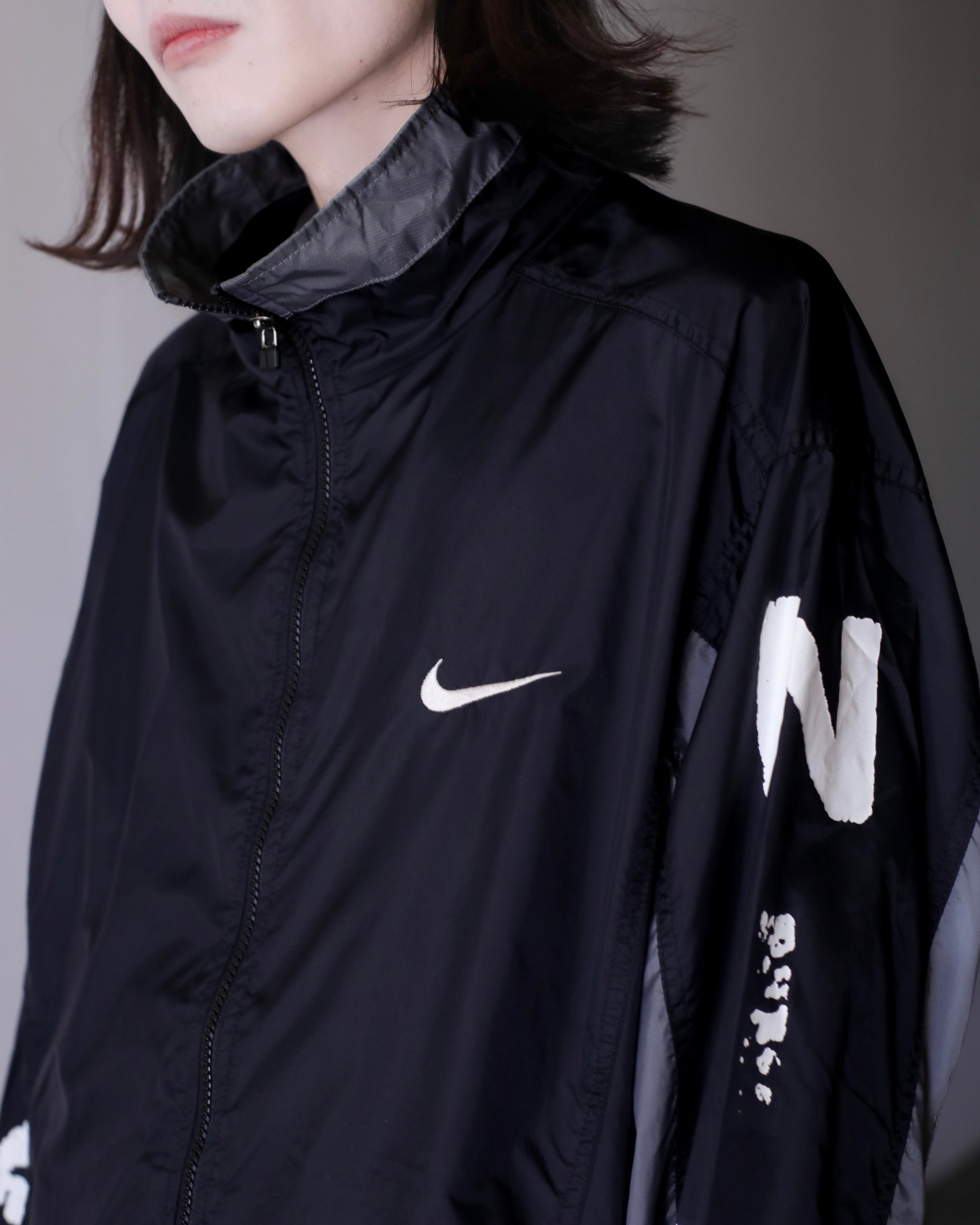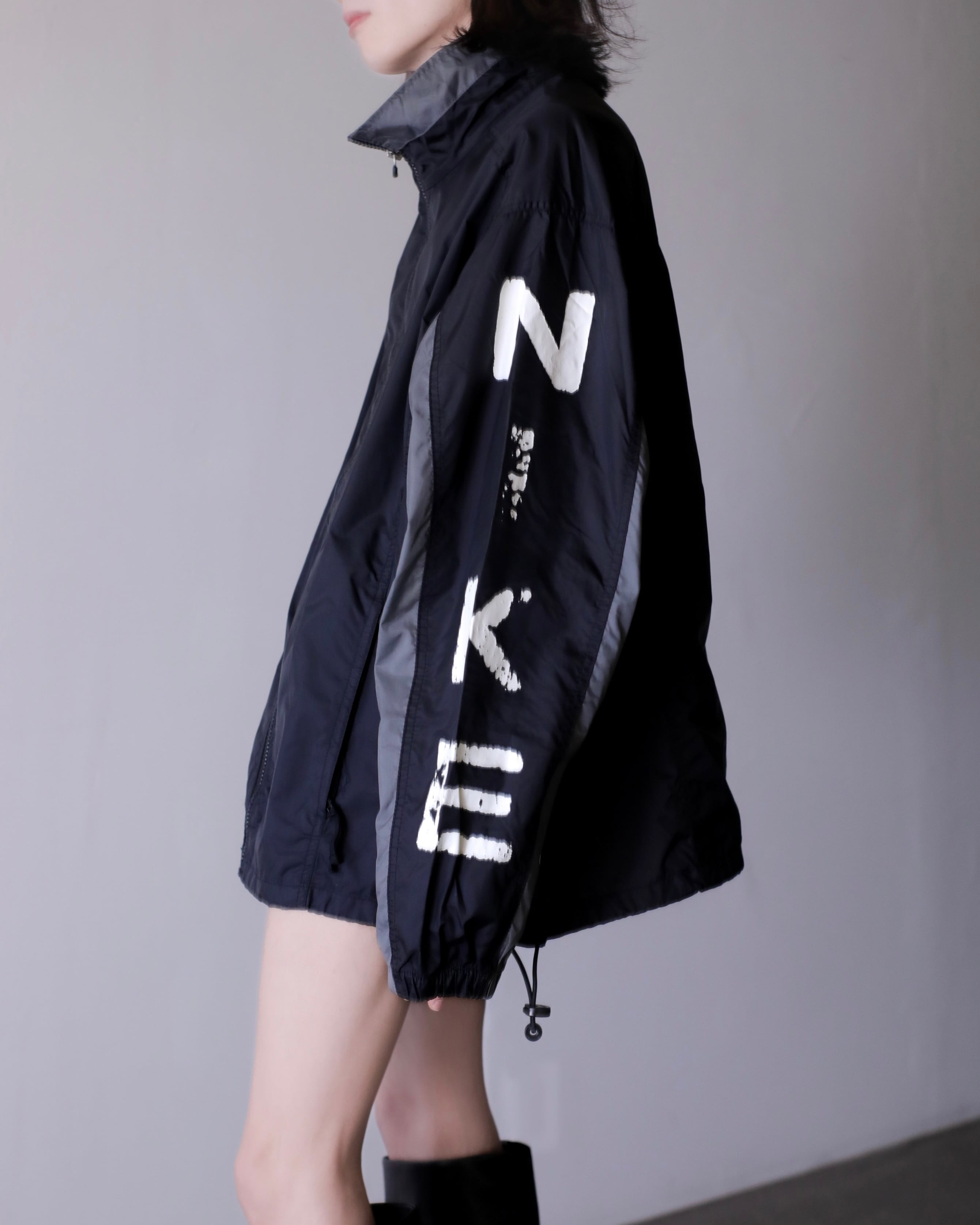 1990s NIKE "kasu kasu N I K E" hi-neck nylon jacket over silhouette