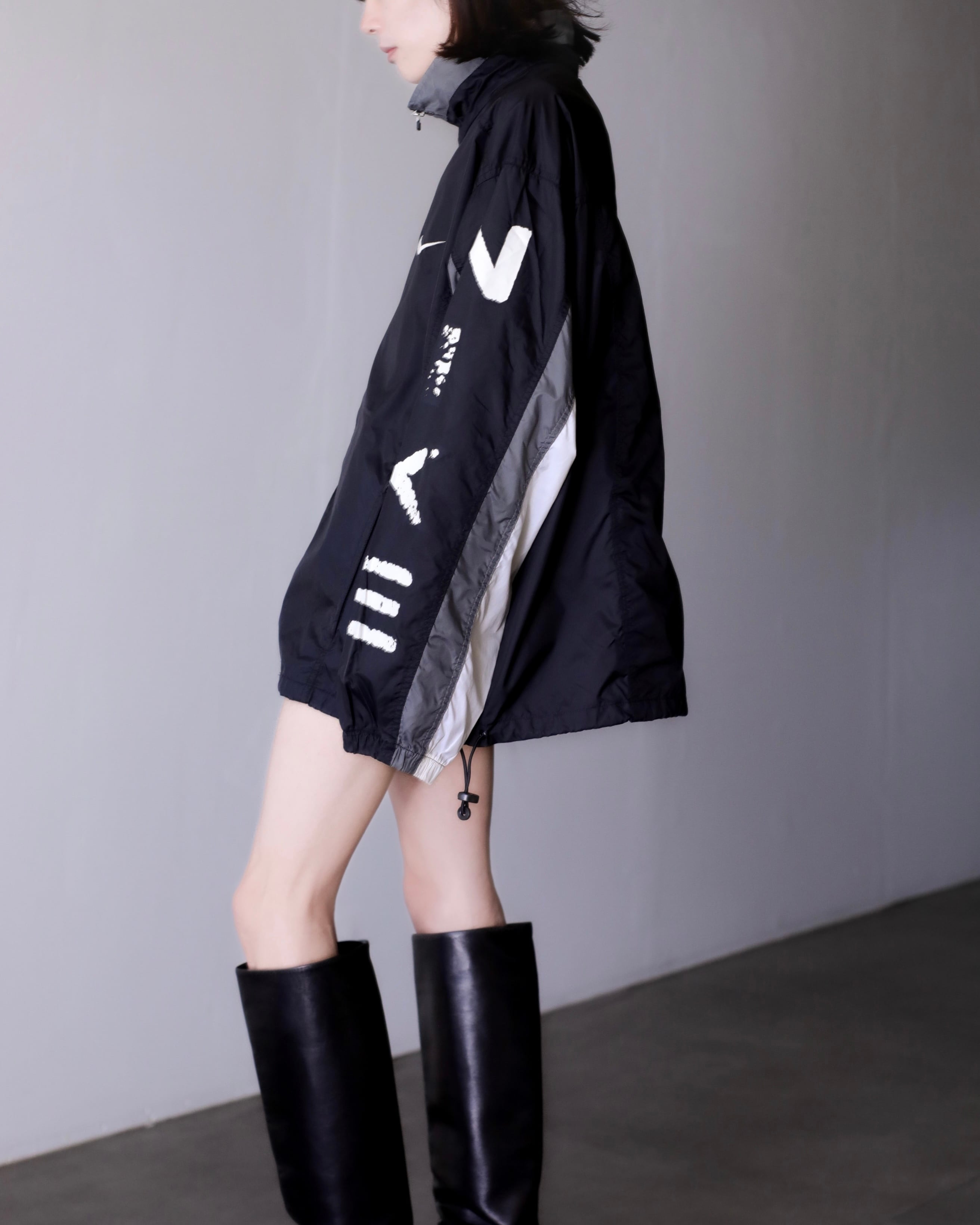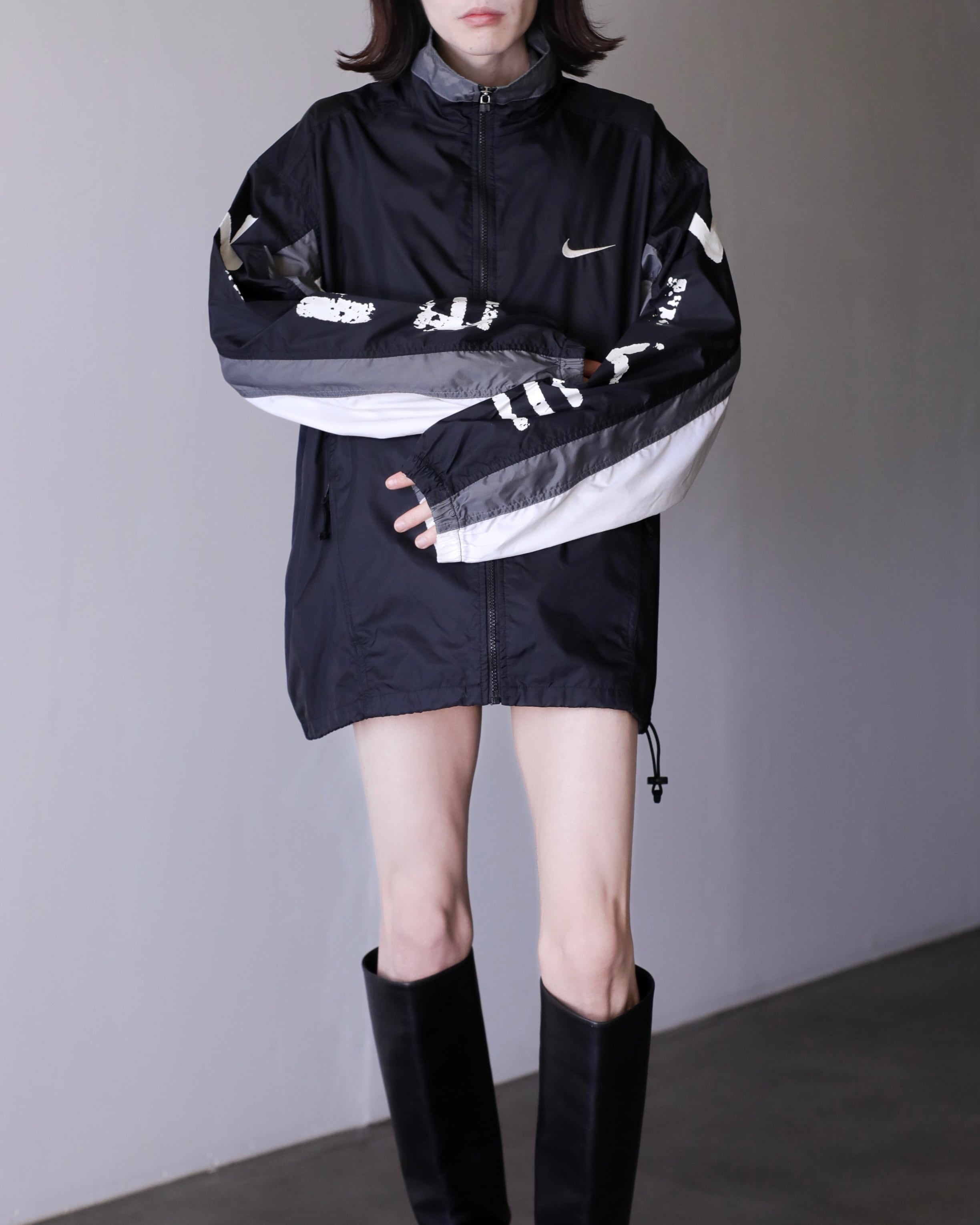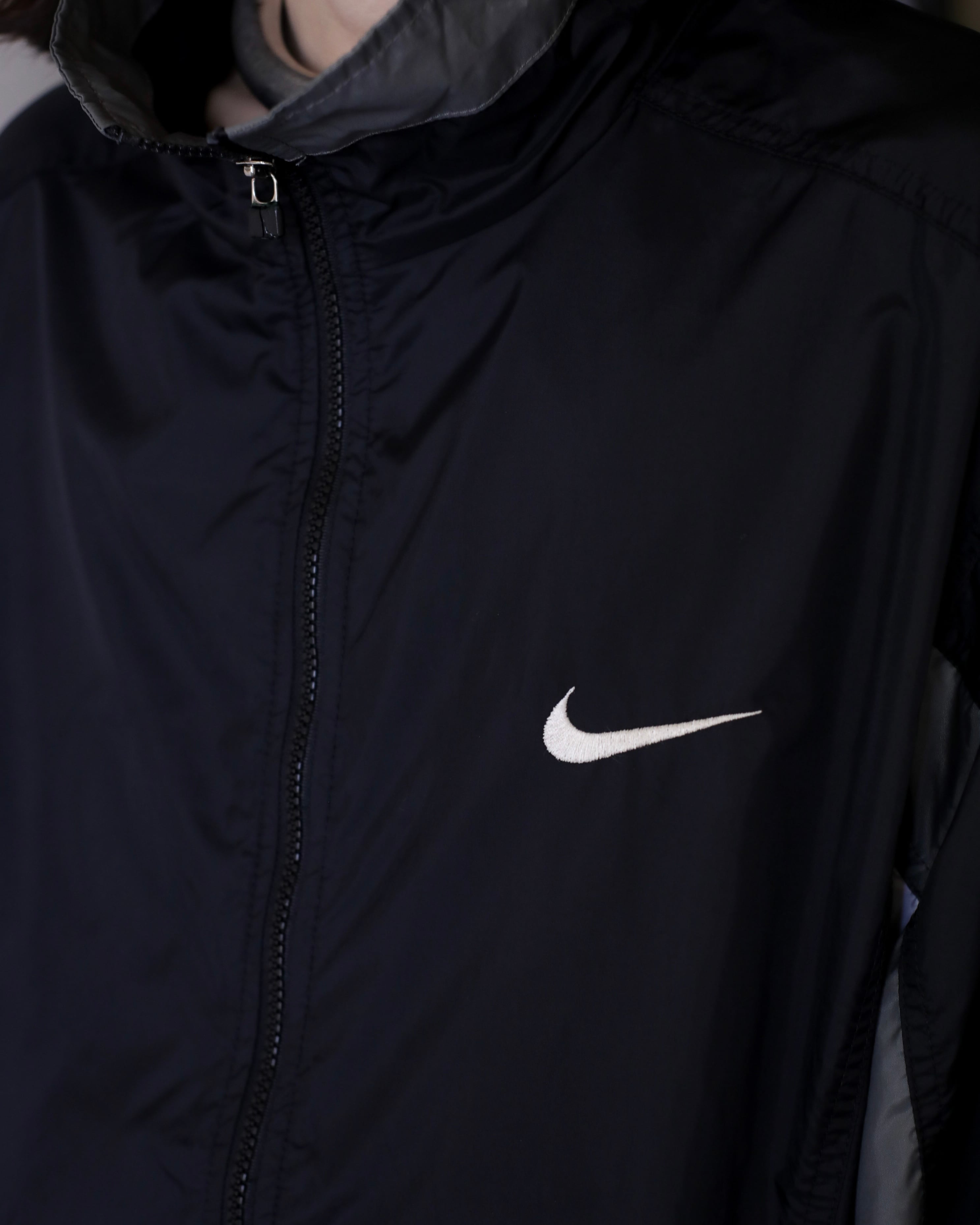 1990s NIKE "kasu kasu N I K E" hi-neck nylon jacket over silhouette