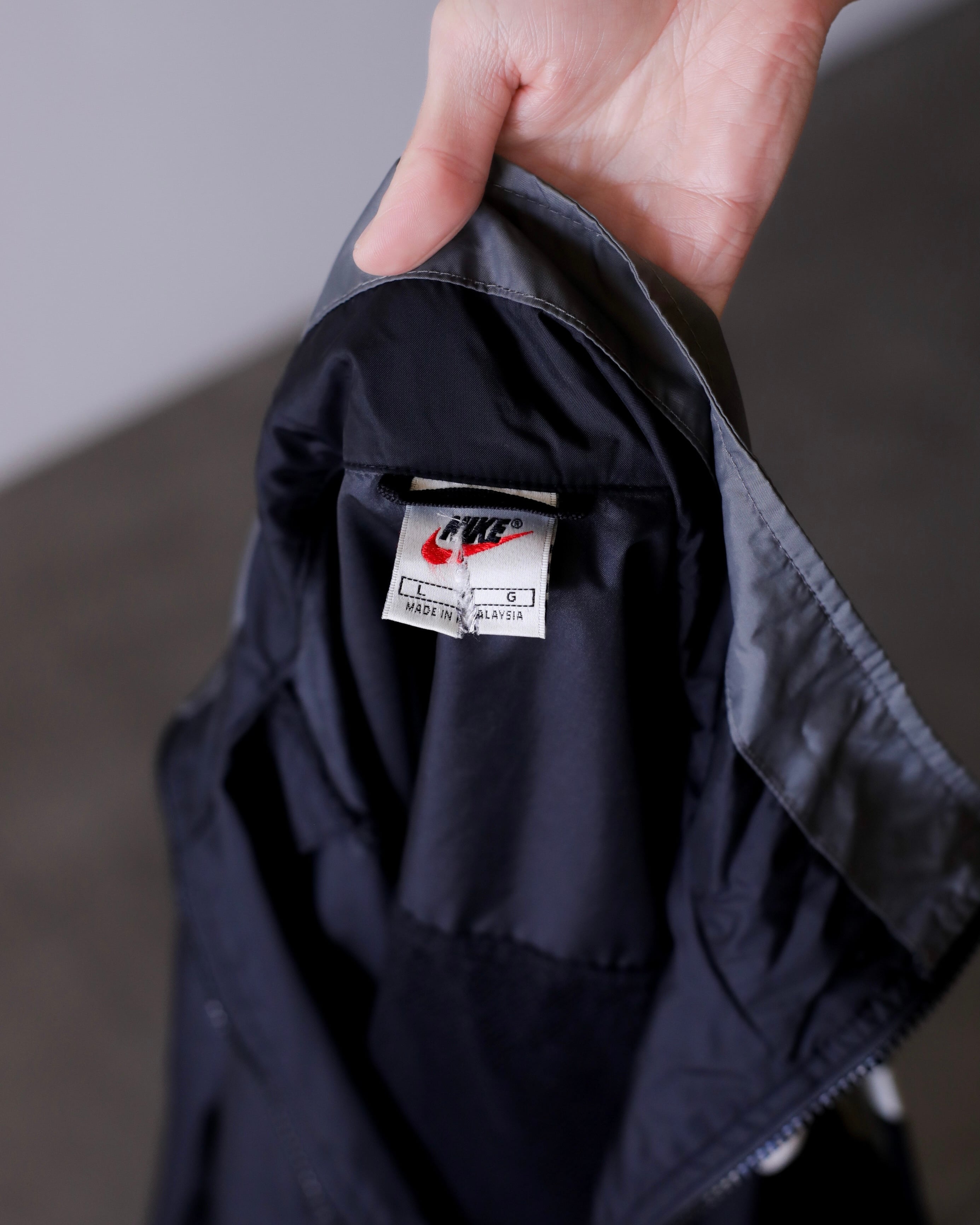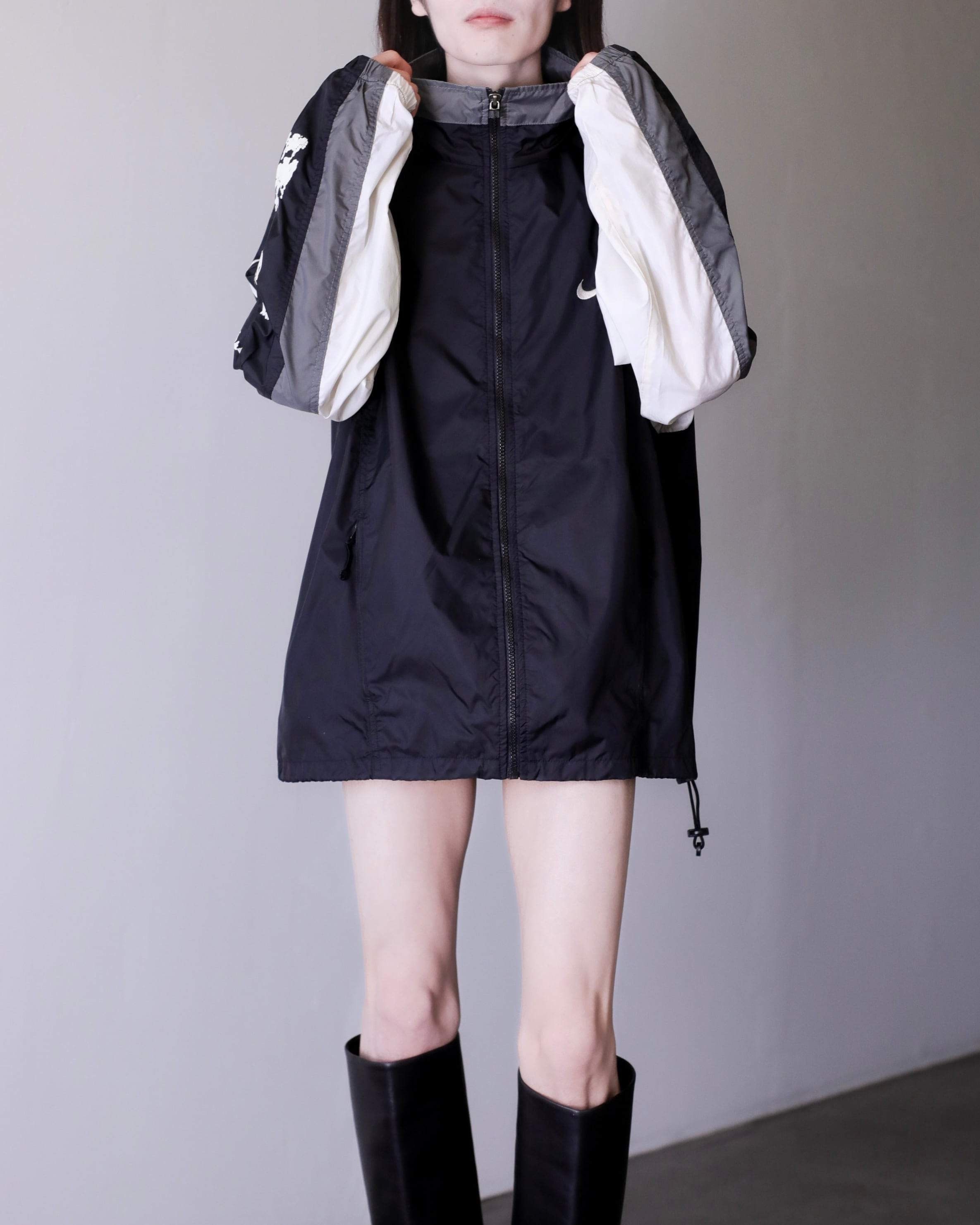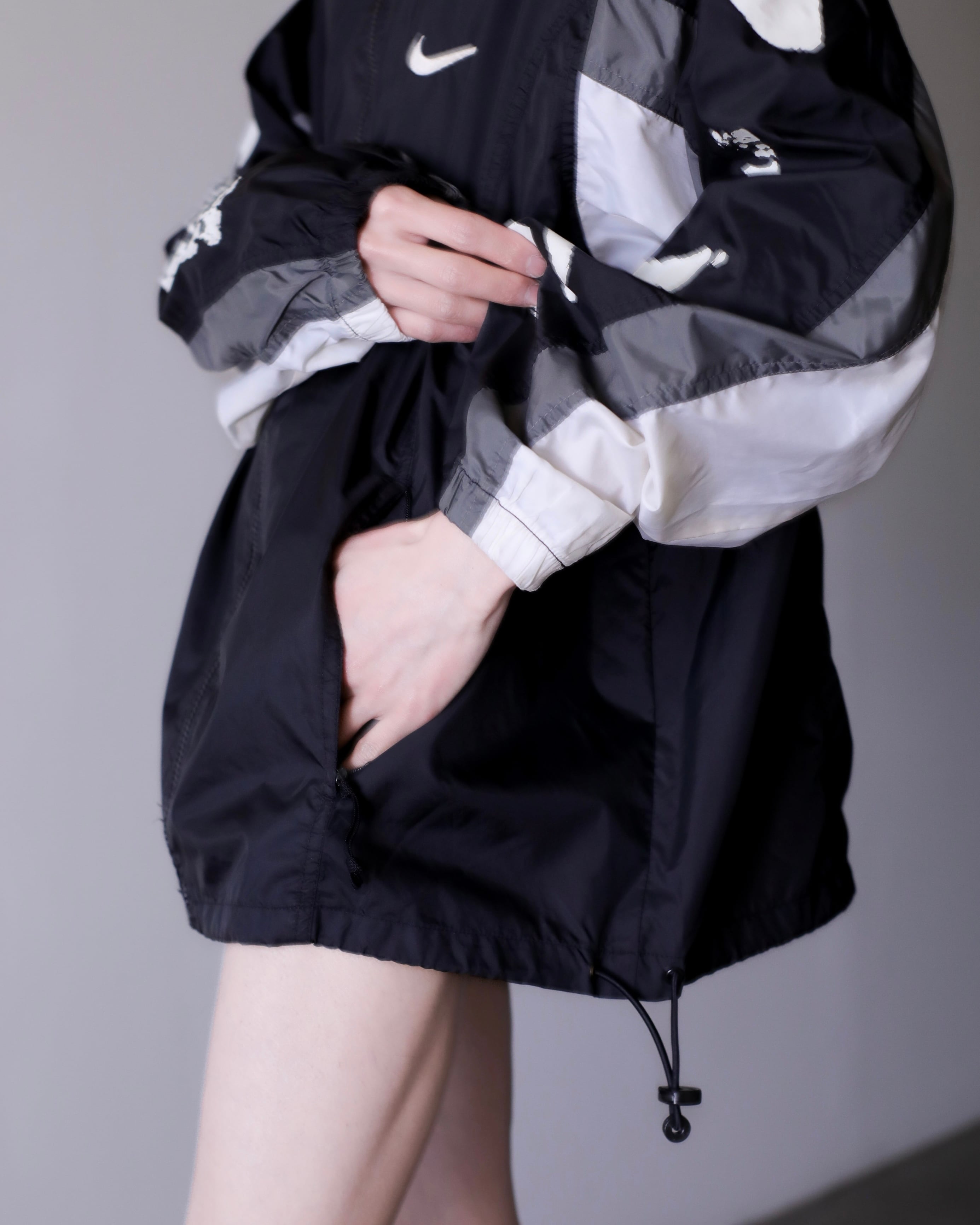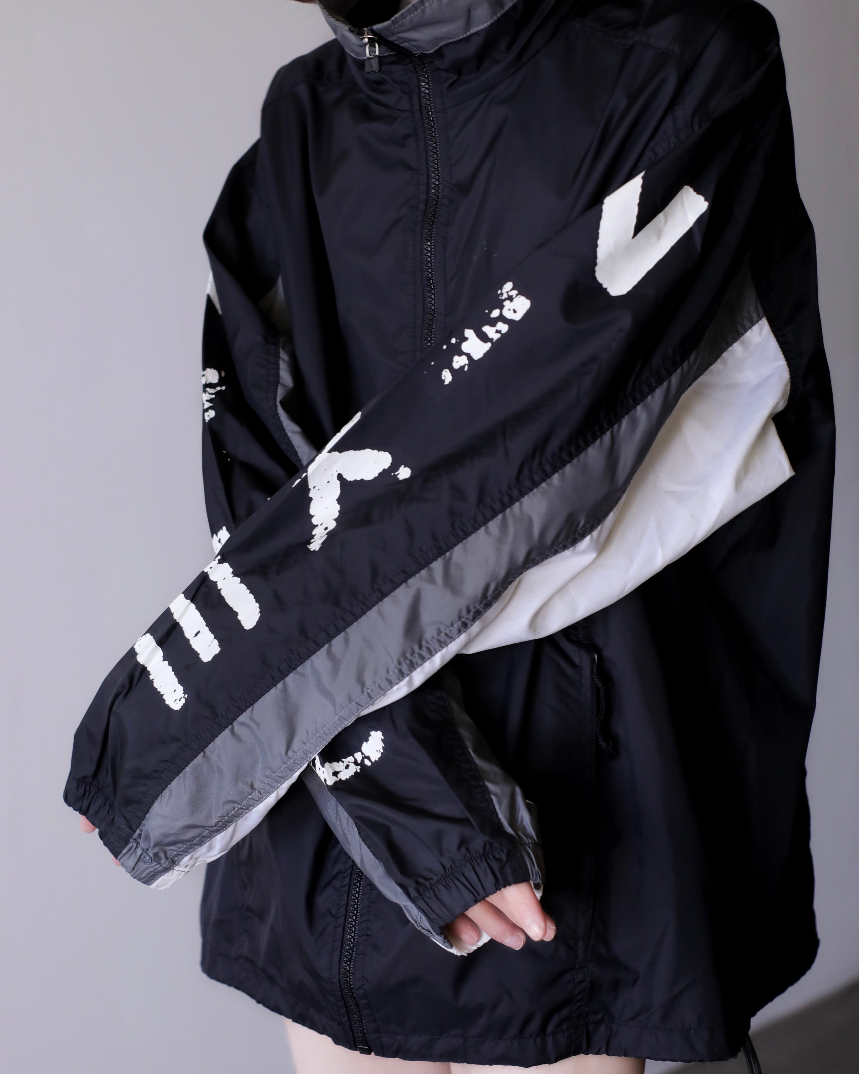1990s NIKE "kasu kasu N I K E" hi-neck nylon jacket over silhouette