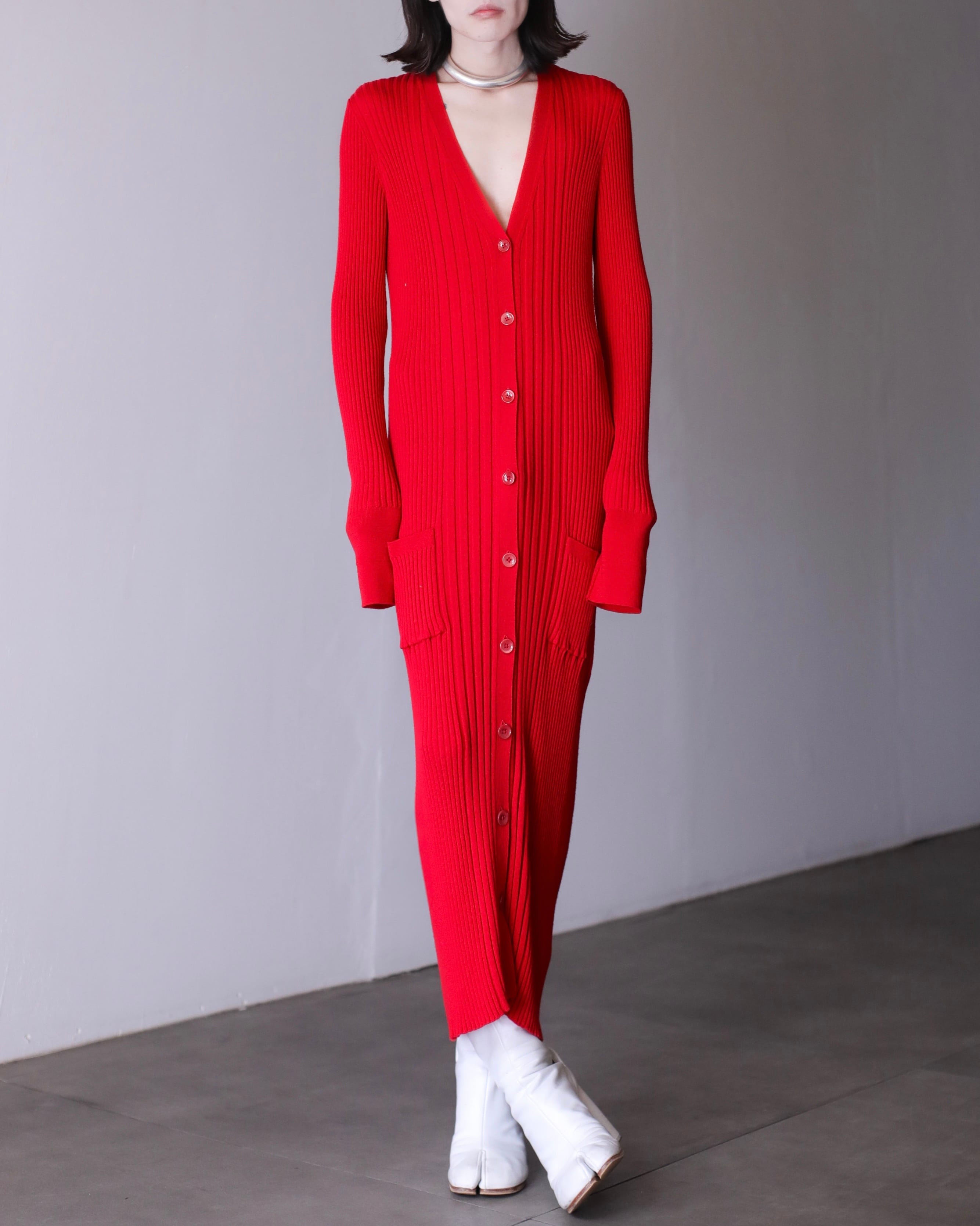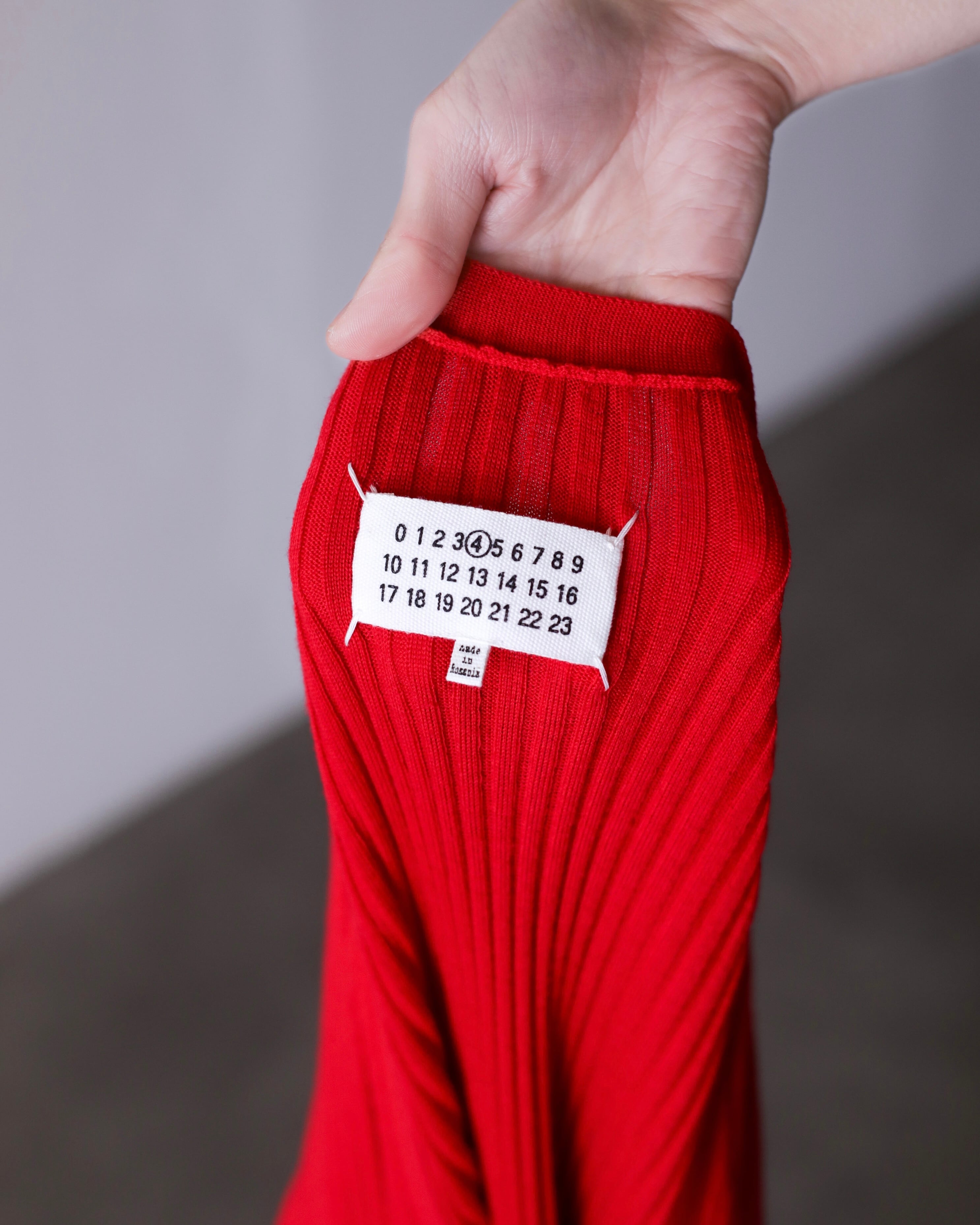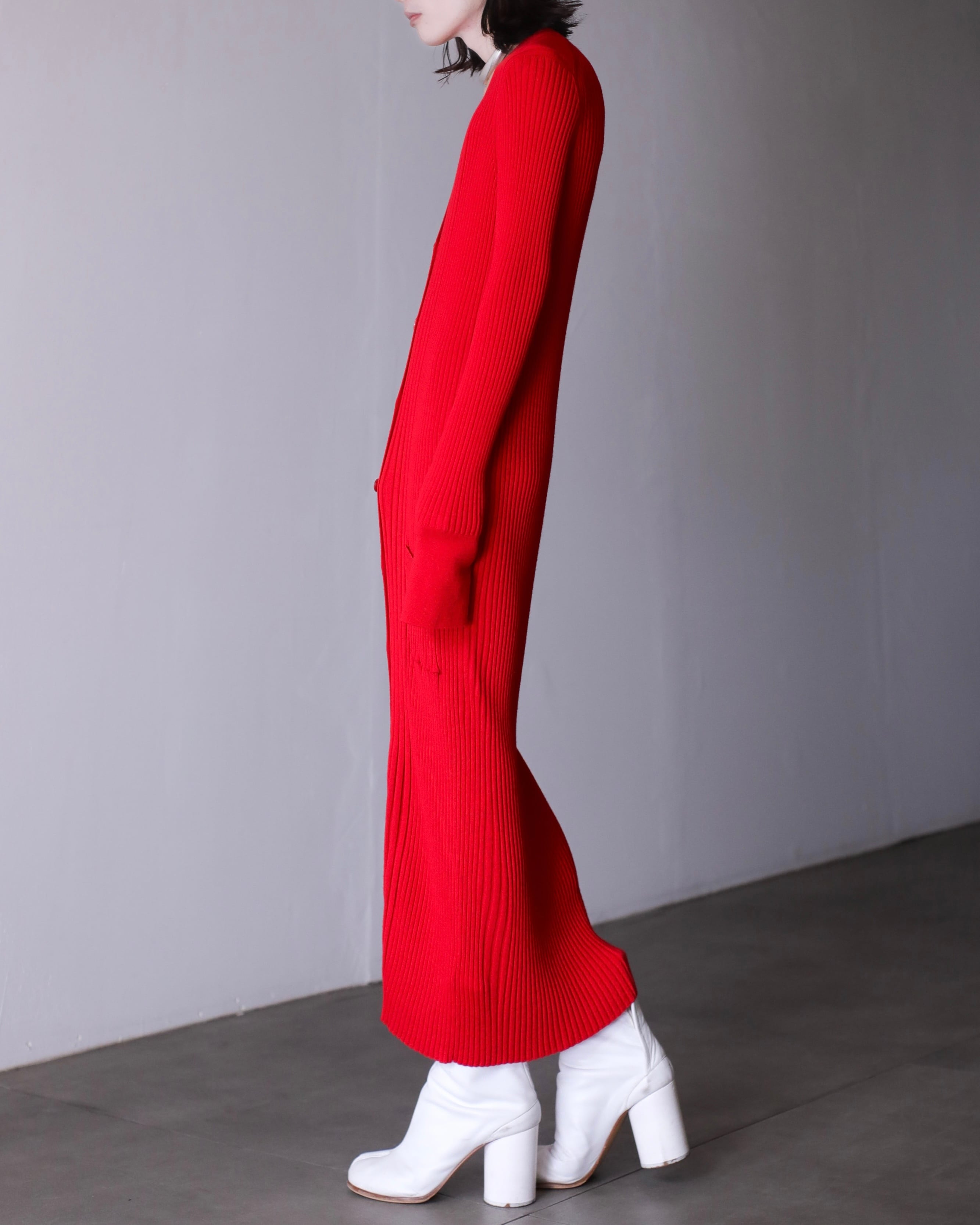 Maison Margiela ④ gradation rib design maxi length wool fabric dress