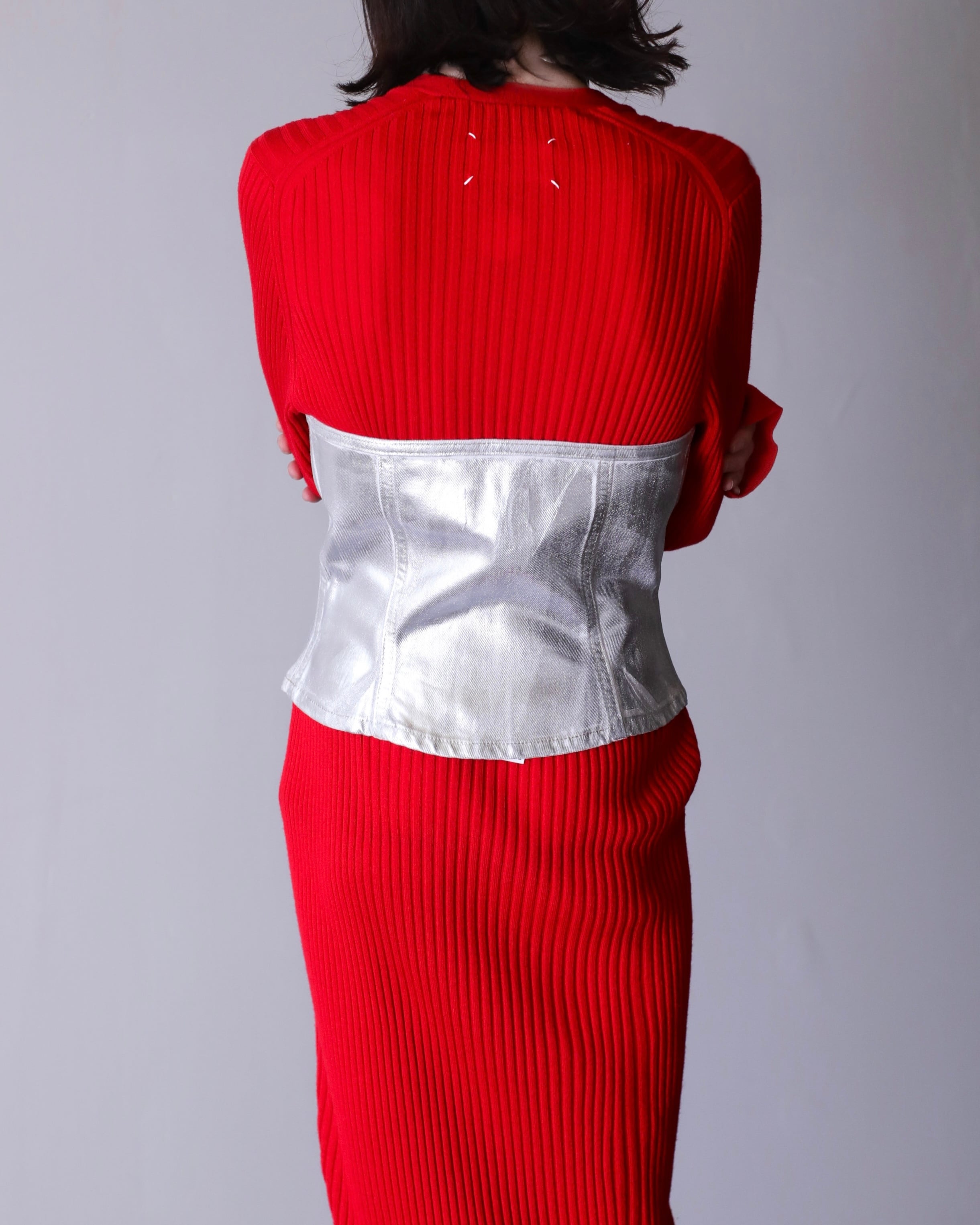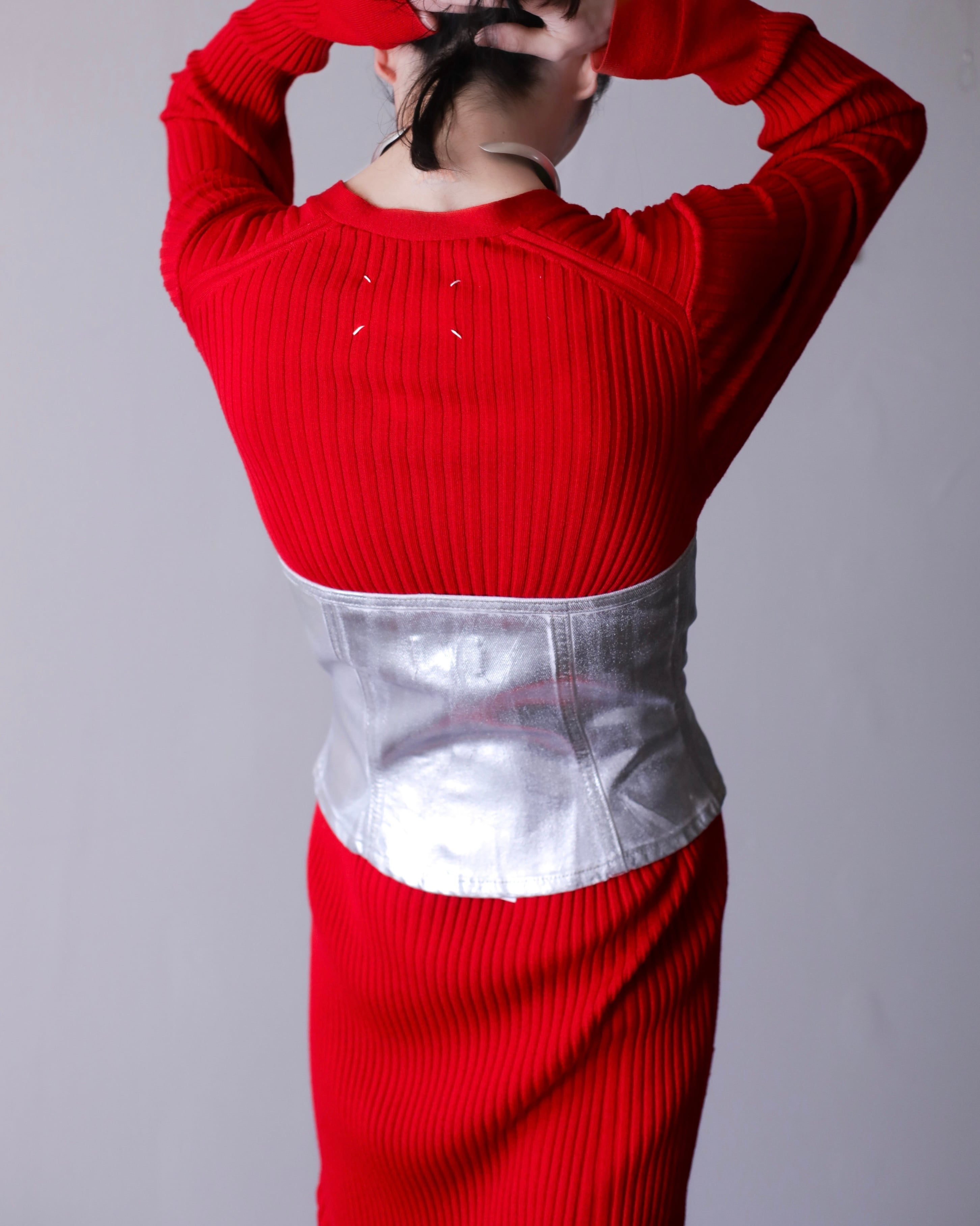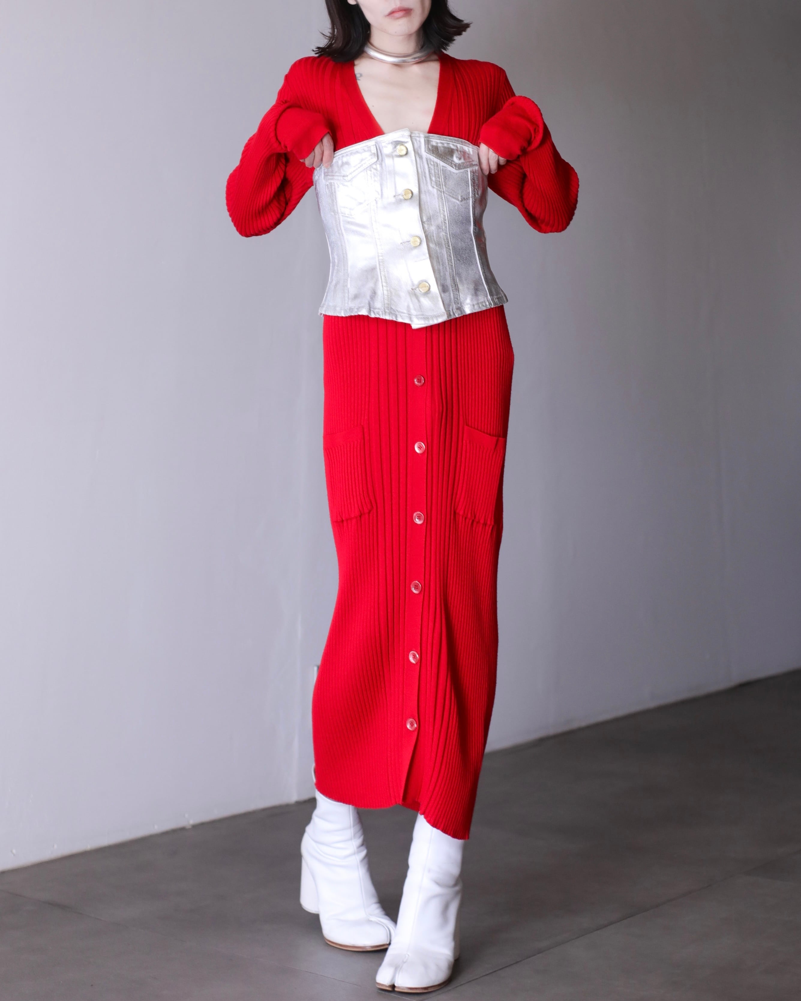 Maison Margiela ④ gradation rib design maxi length wool fabric dress