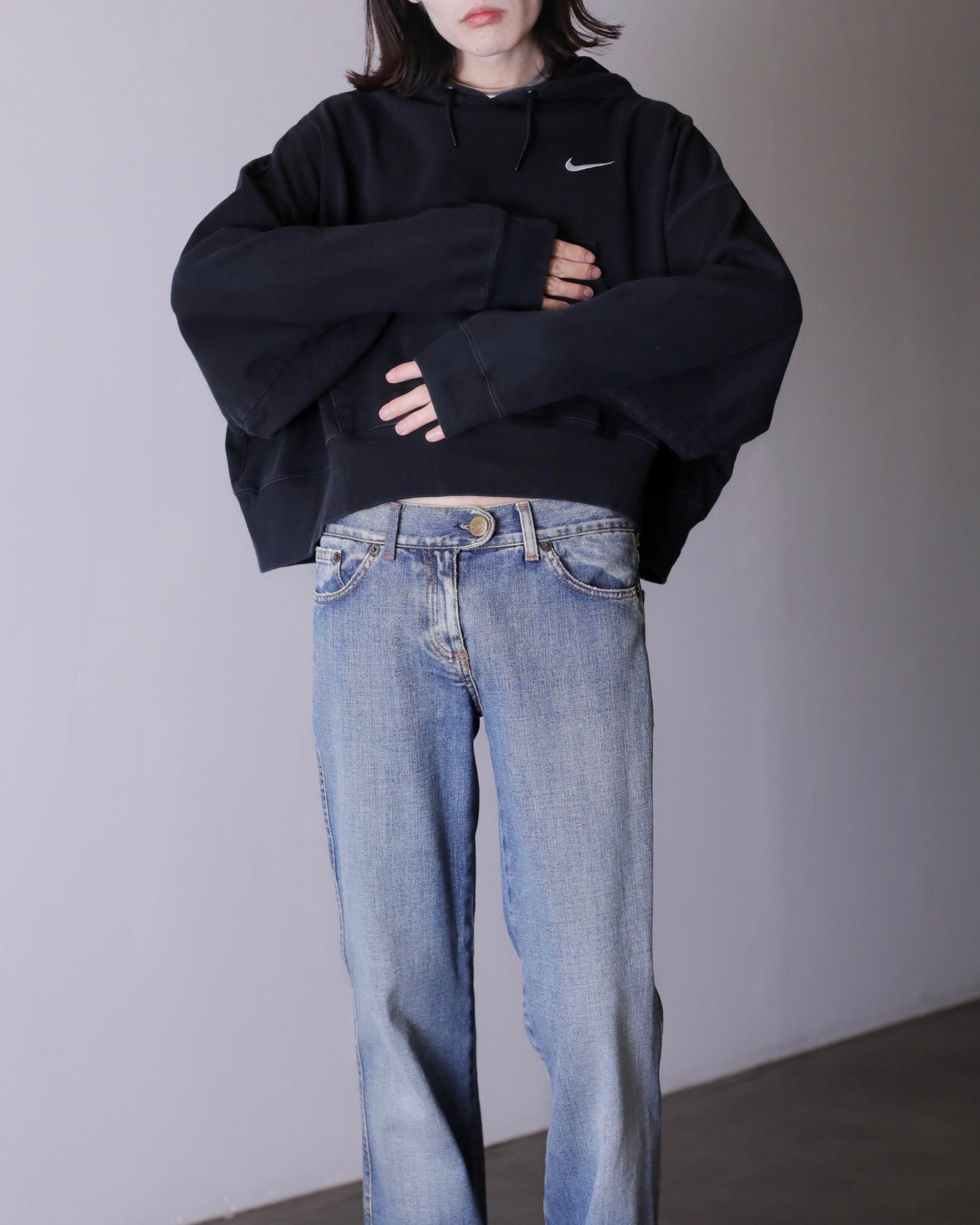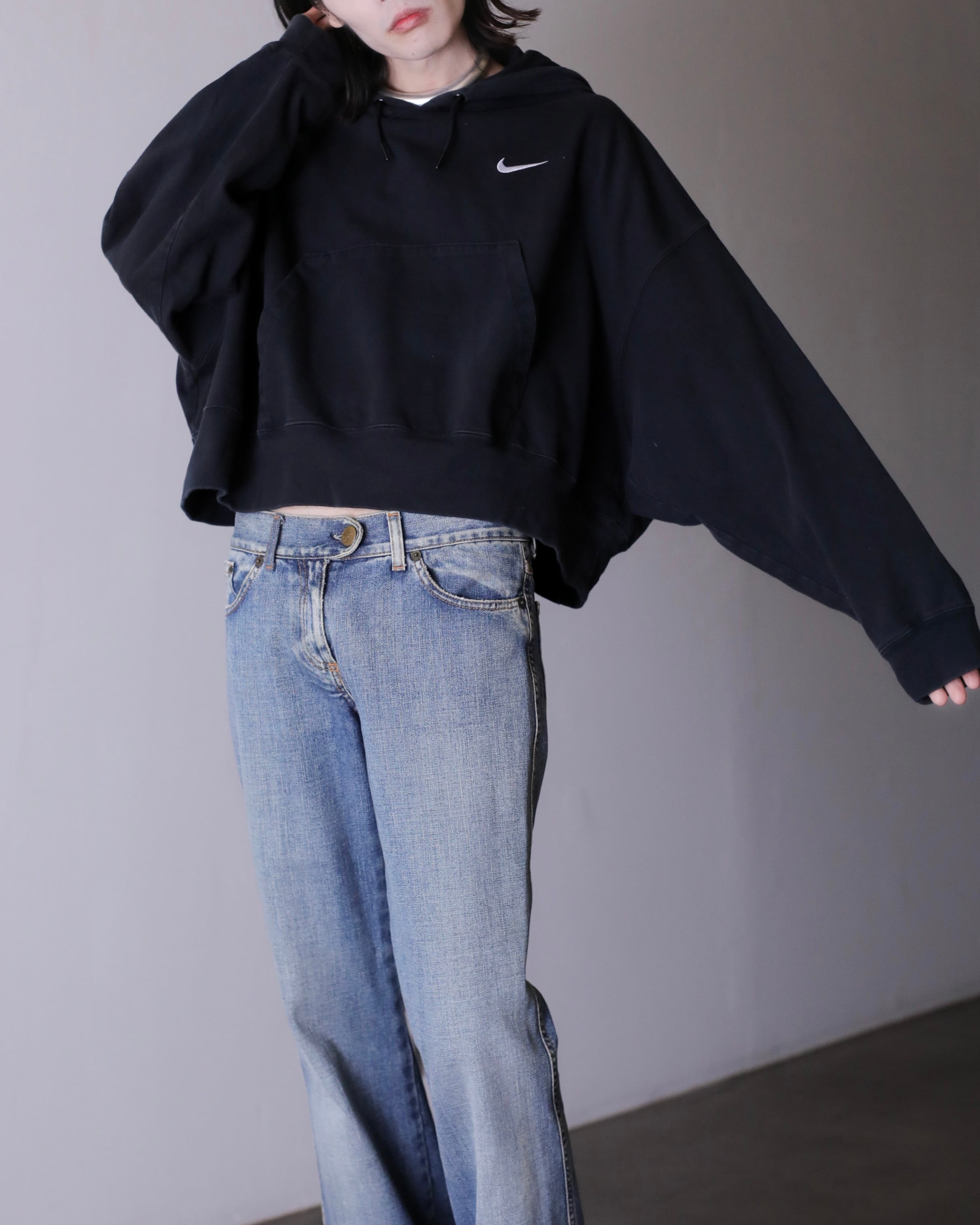 NIKE "gokubuto sleeve" wide & short silhouette swoosh embroidery sweat foodie