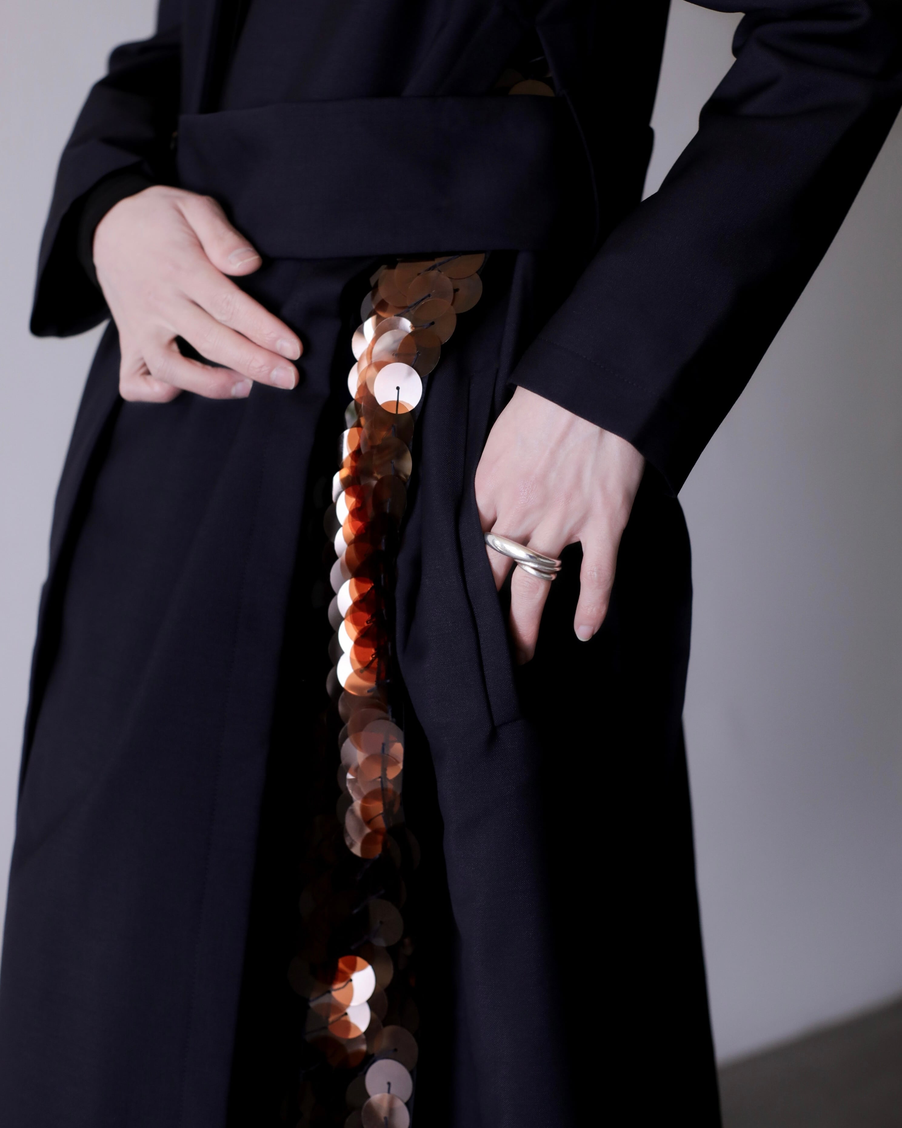 切り替え線を作るようなニュアンスのベルトデザインで