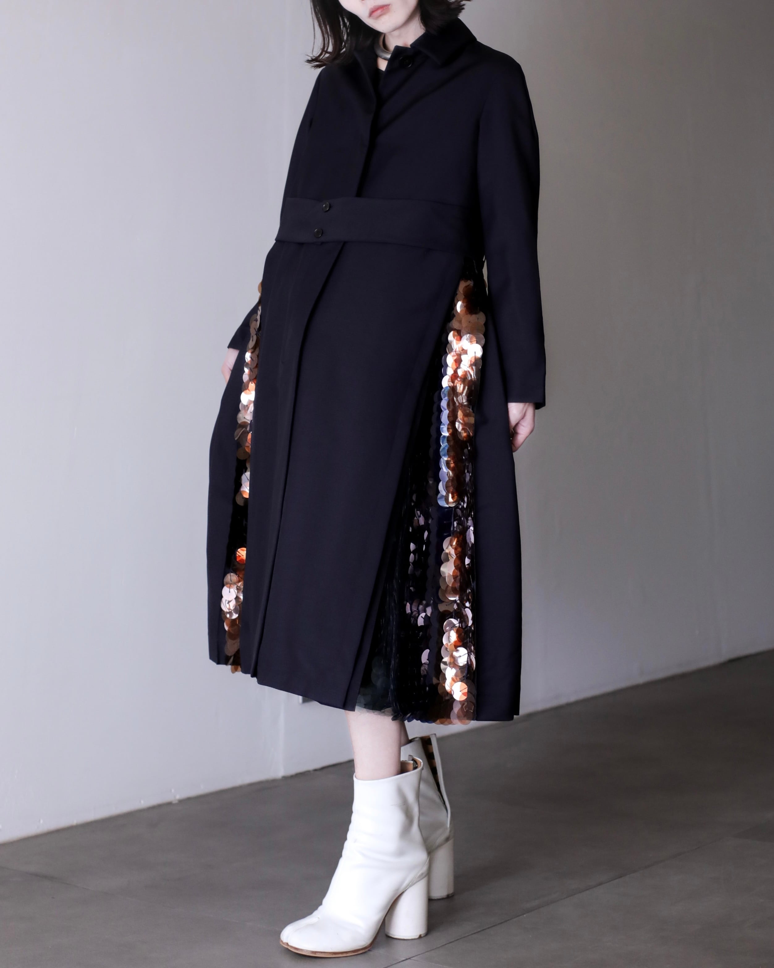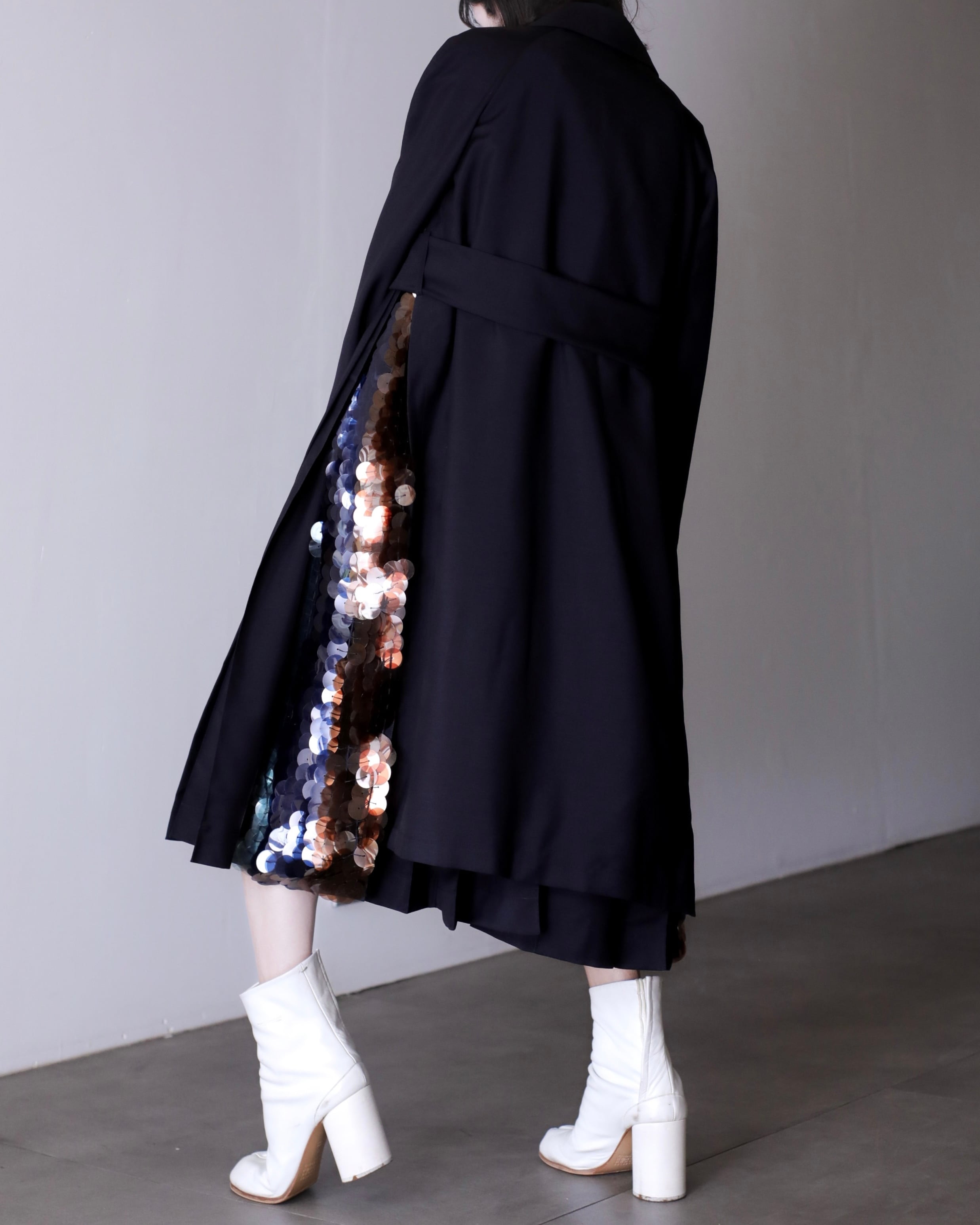 JIL SANDER super pleats spangle design drape fabric spring coat