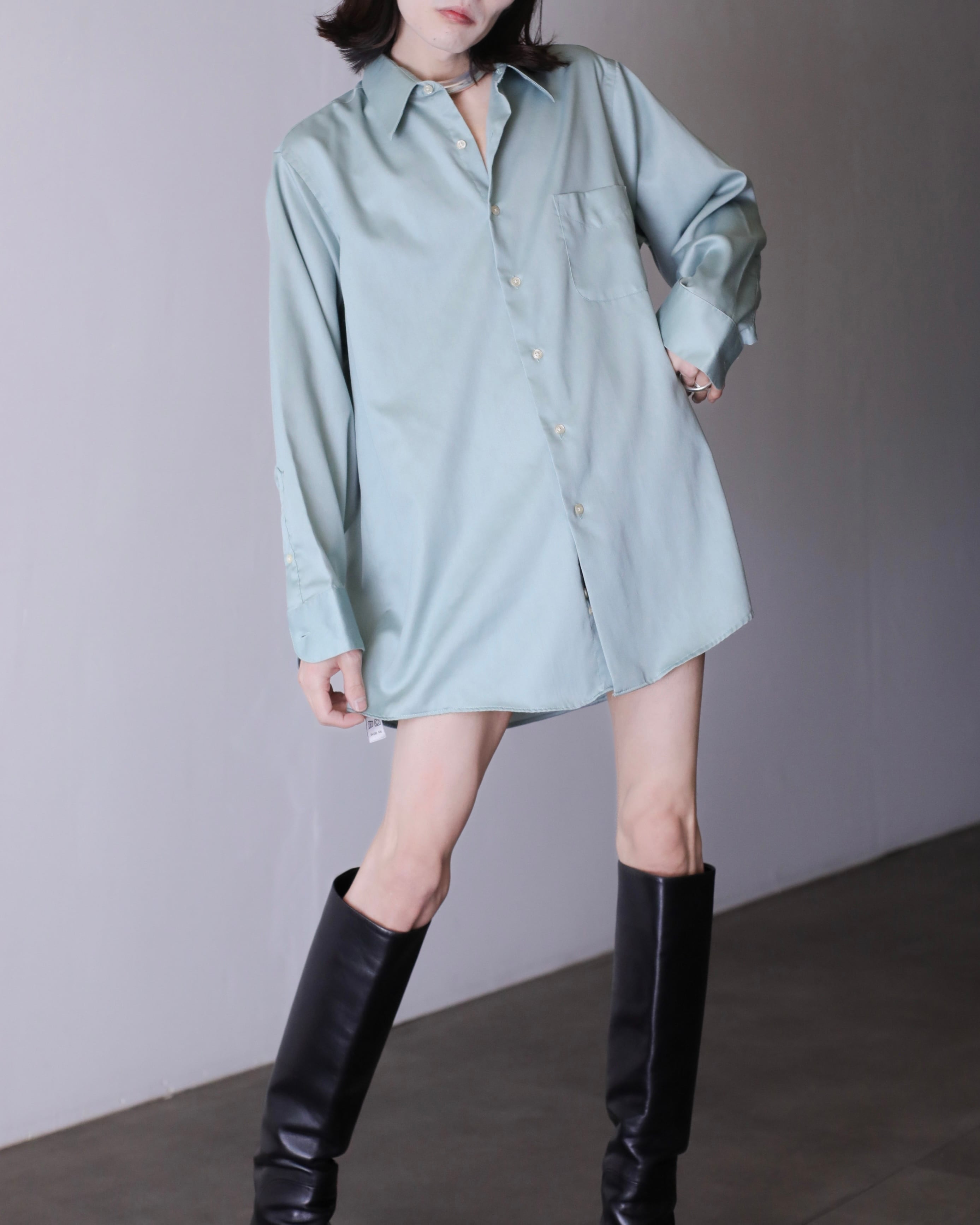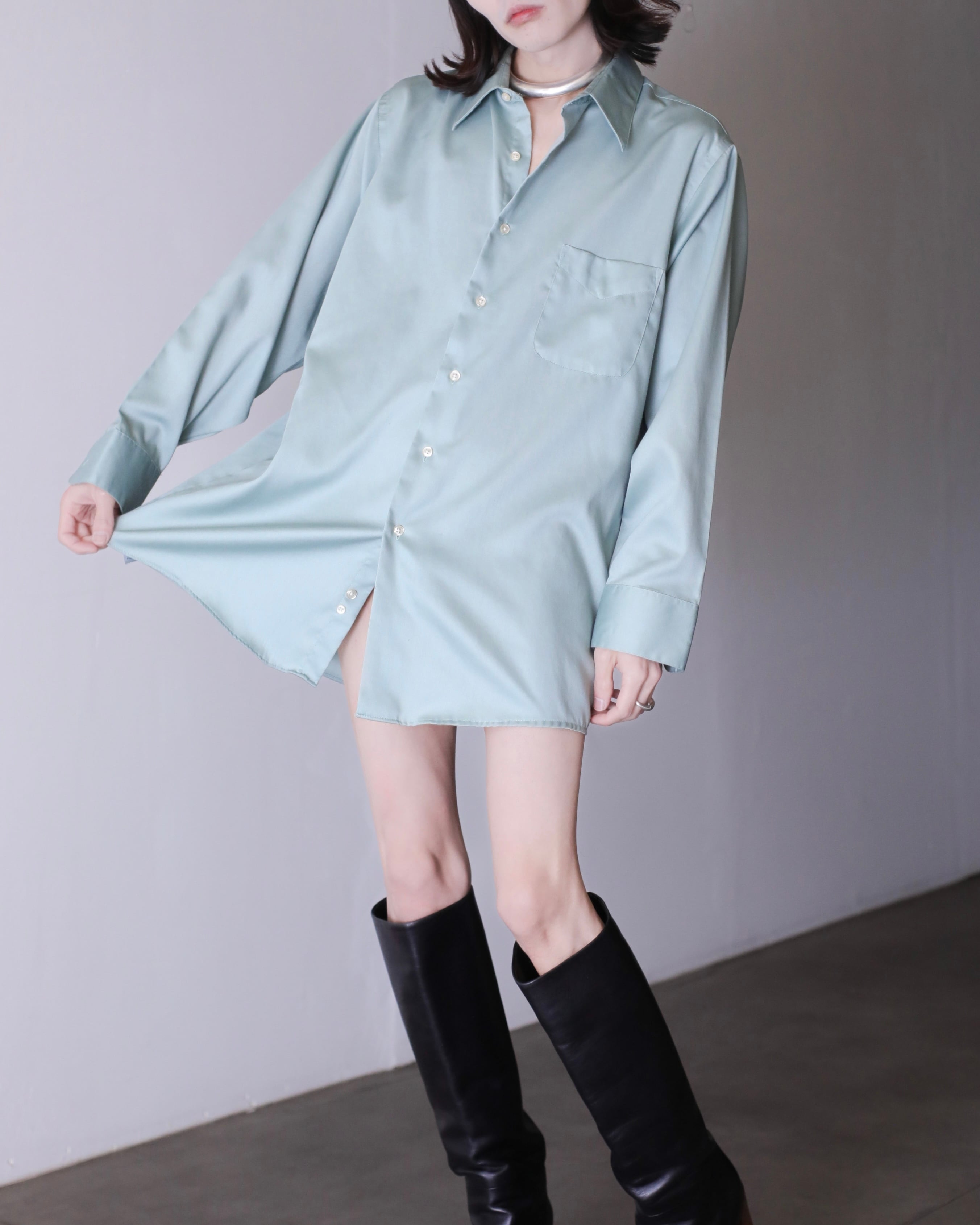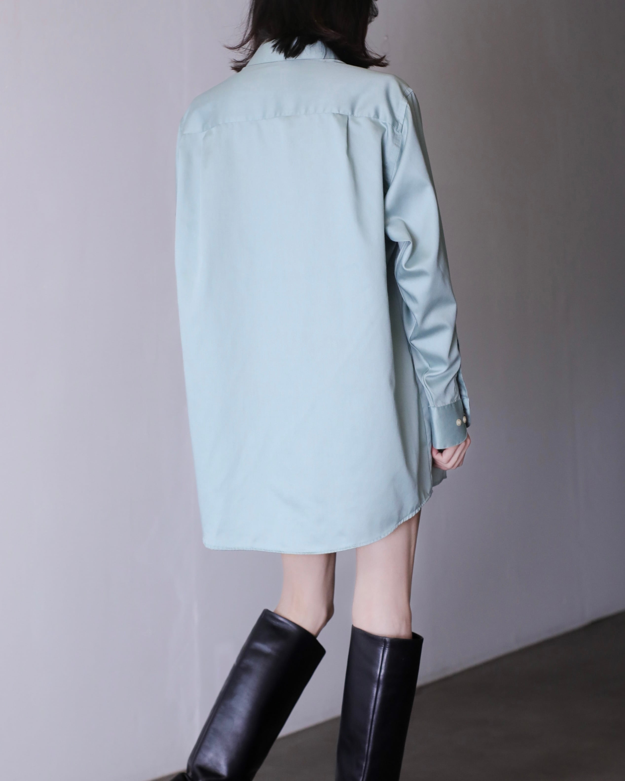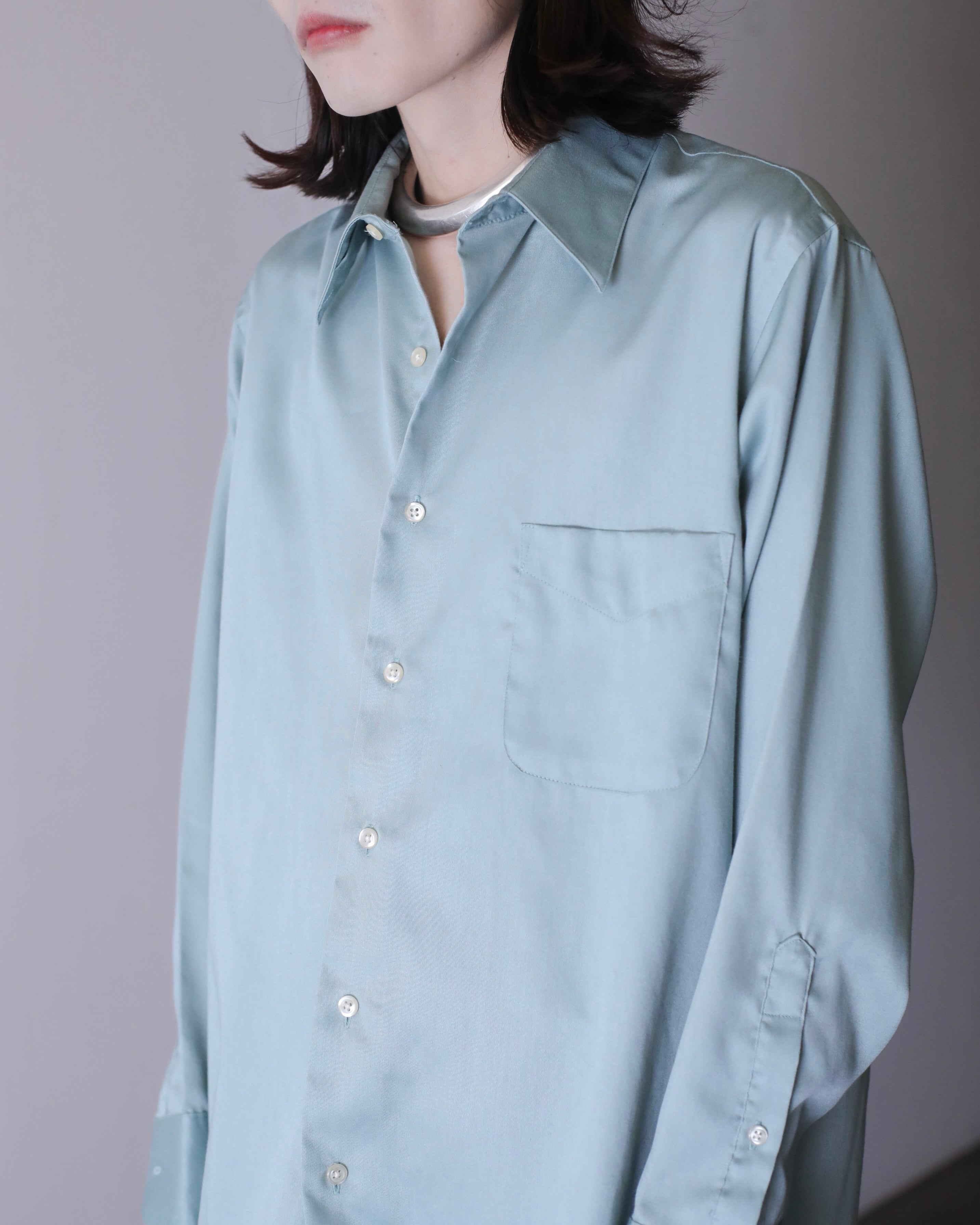 1990s~ cotton satin pale smoke mint color dress shirt over sized