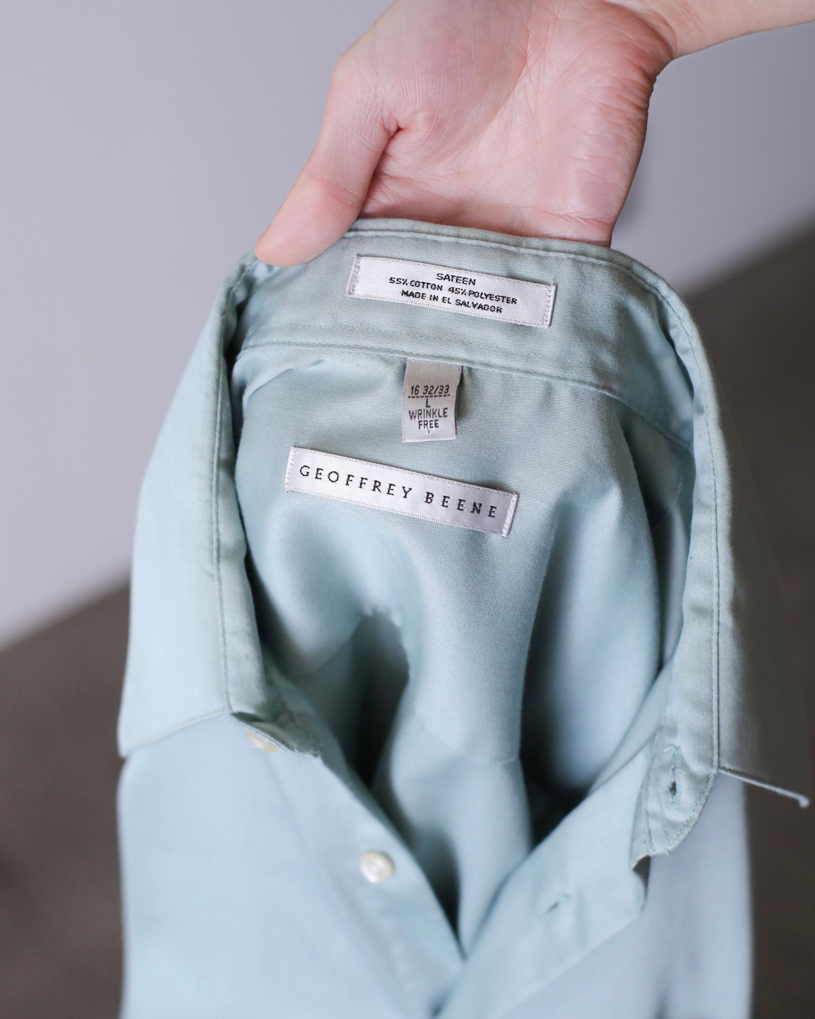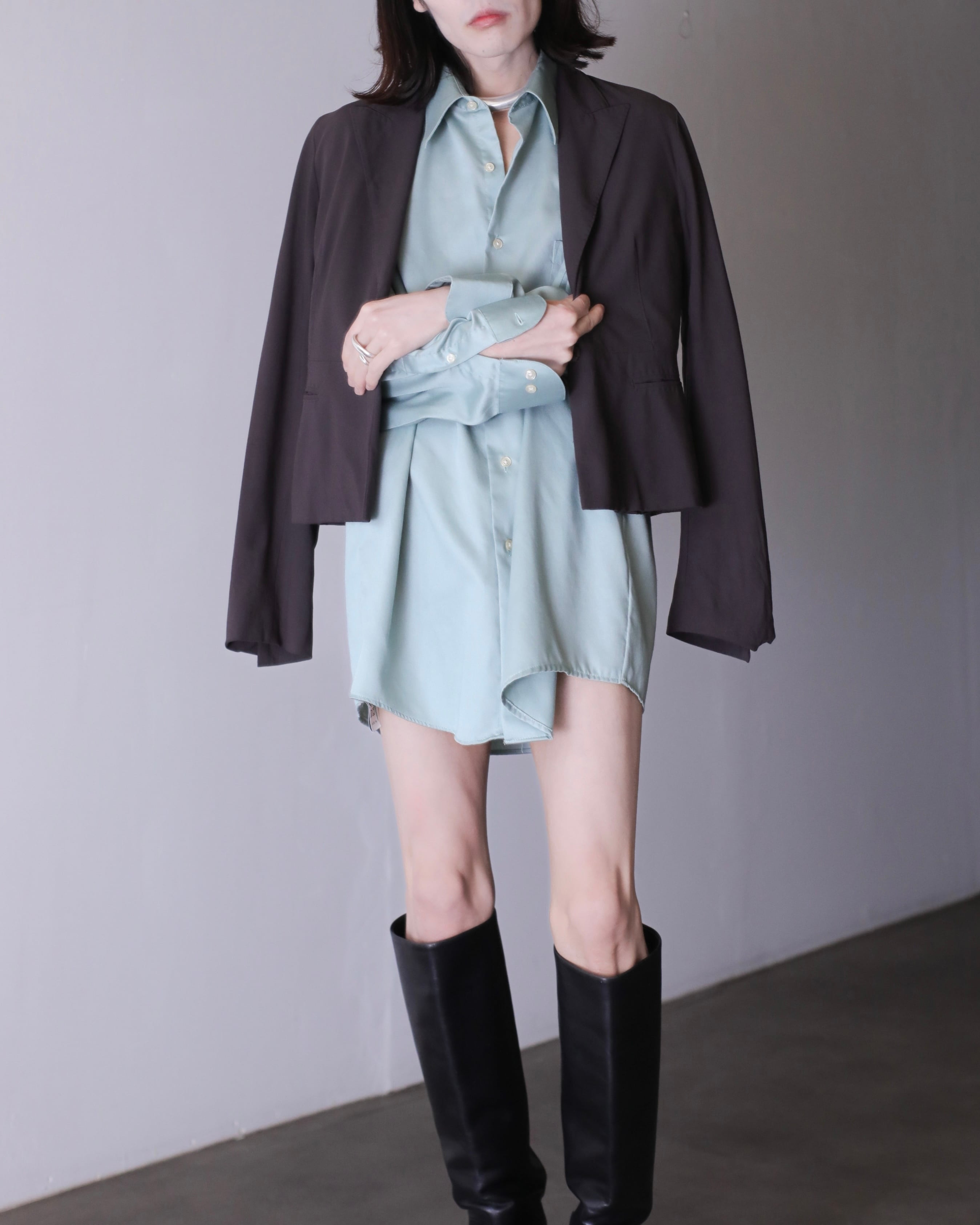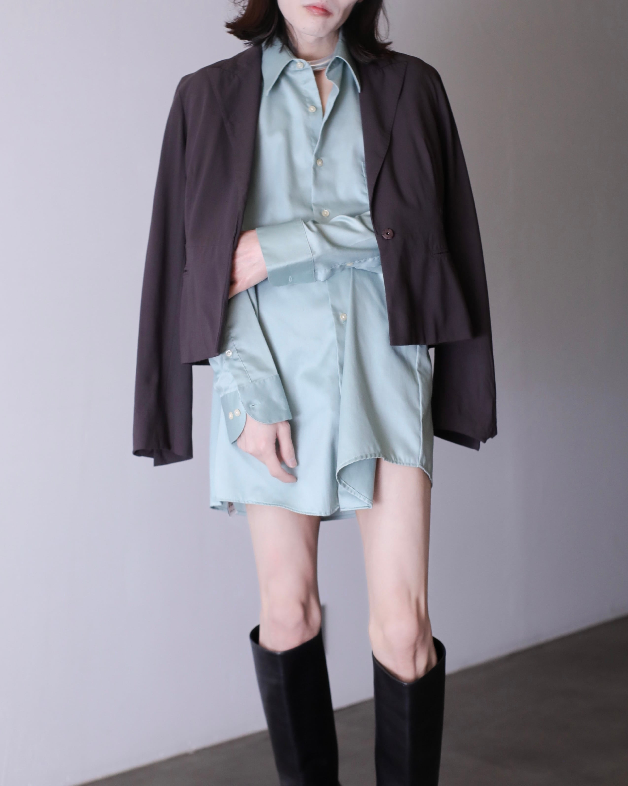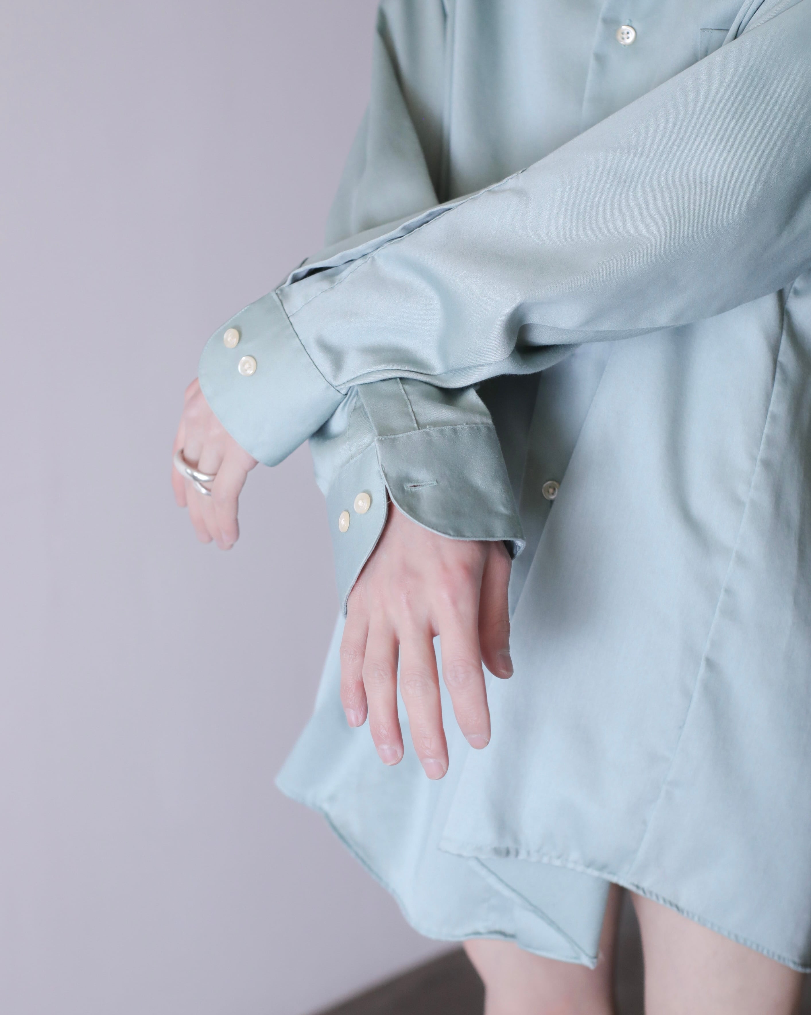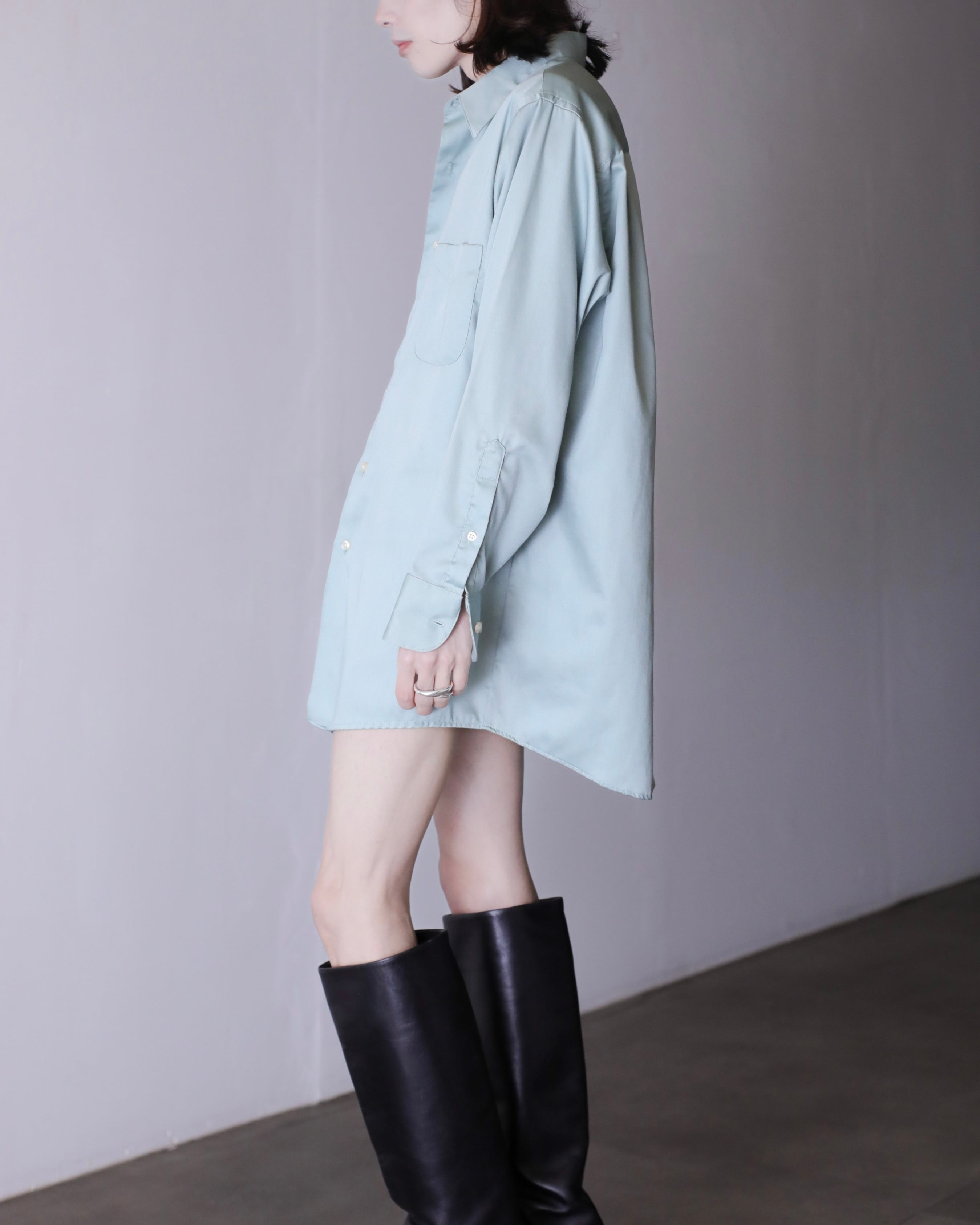 1990s~ cotton satin pale smoke mint color dress shirt over sized