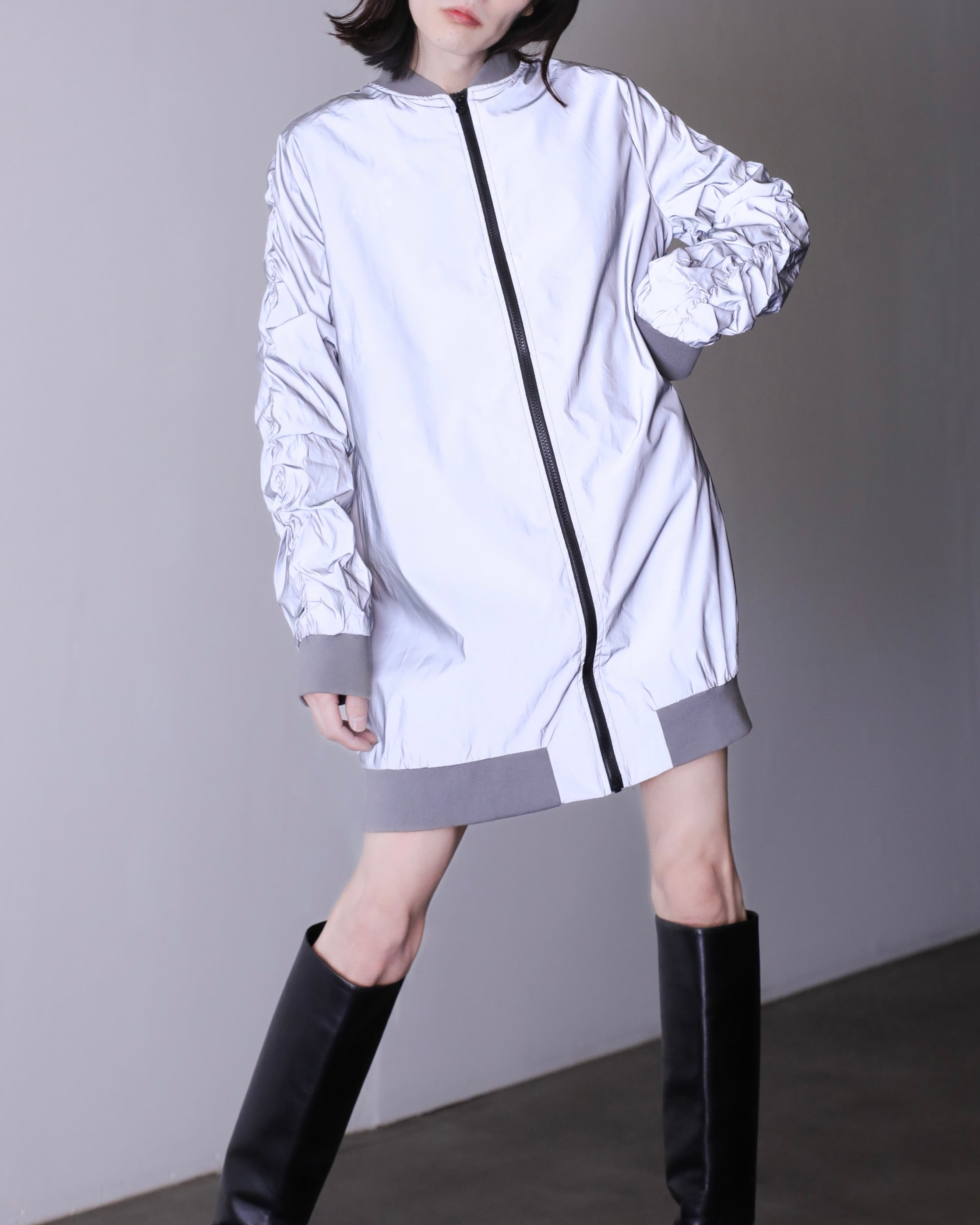 reflector "kusyu kusyu ude" shirring design long blouson
