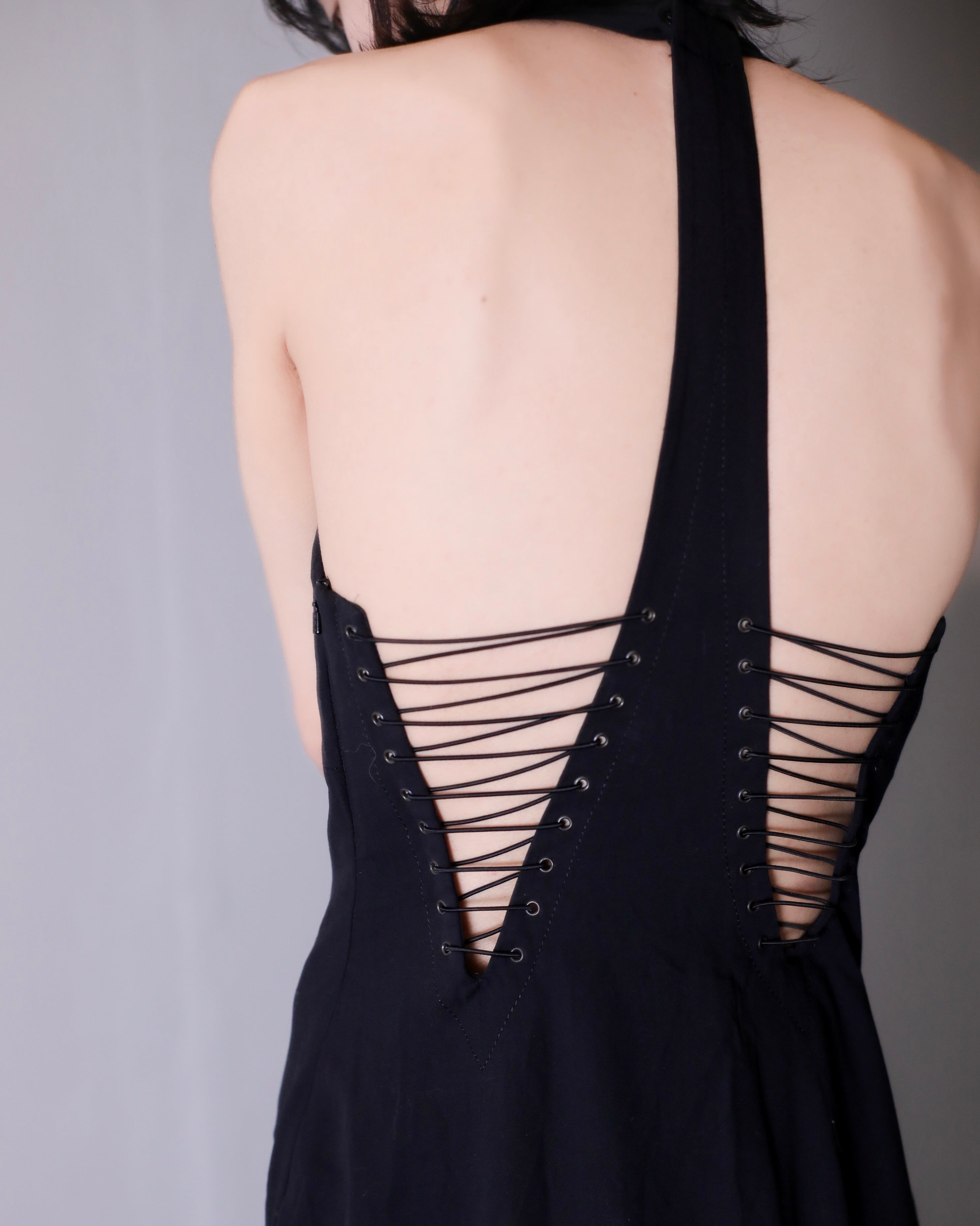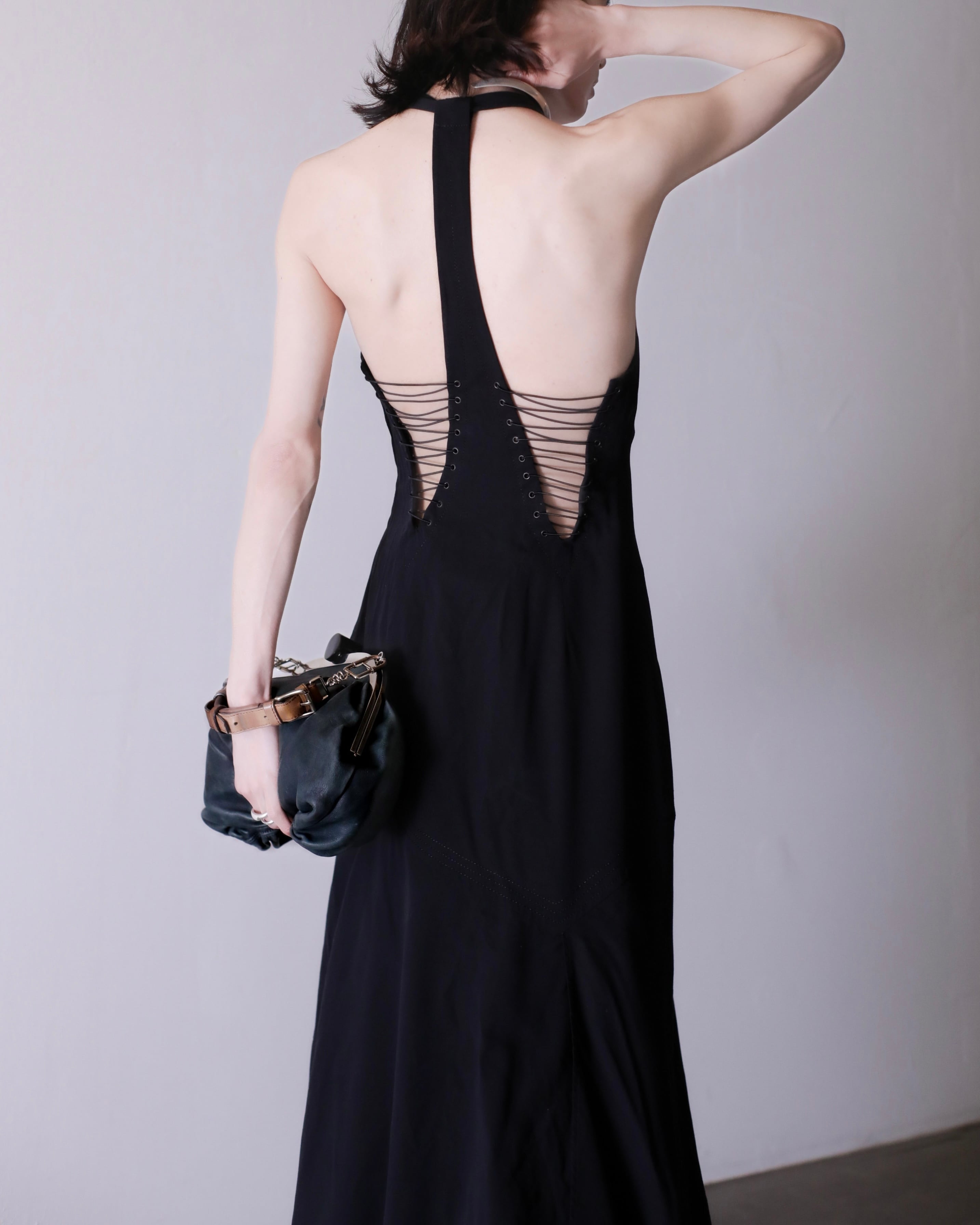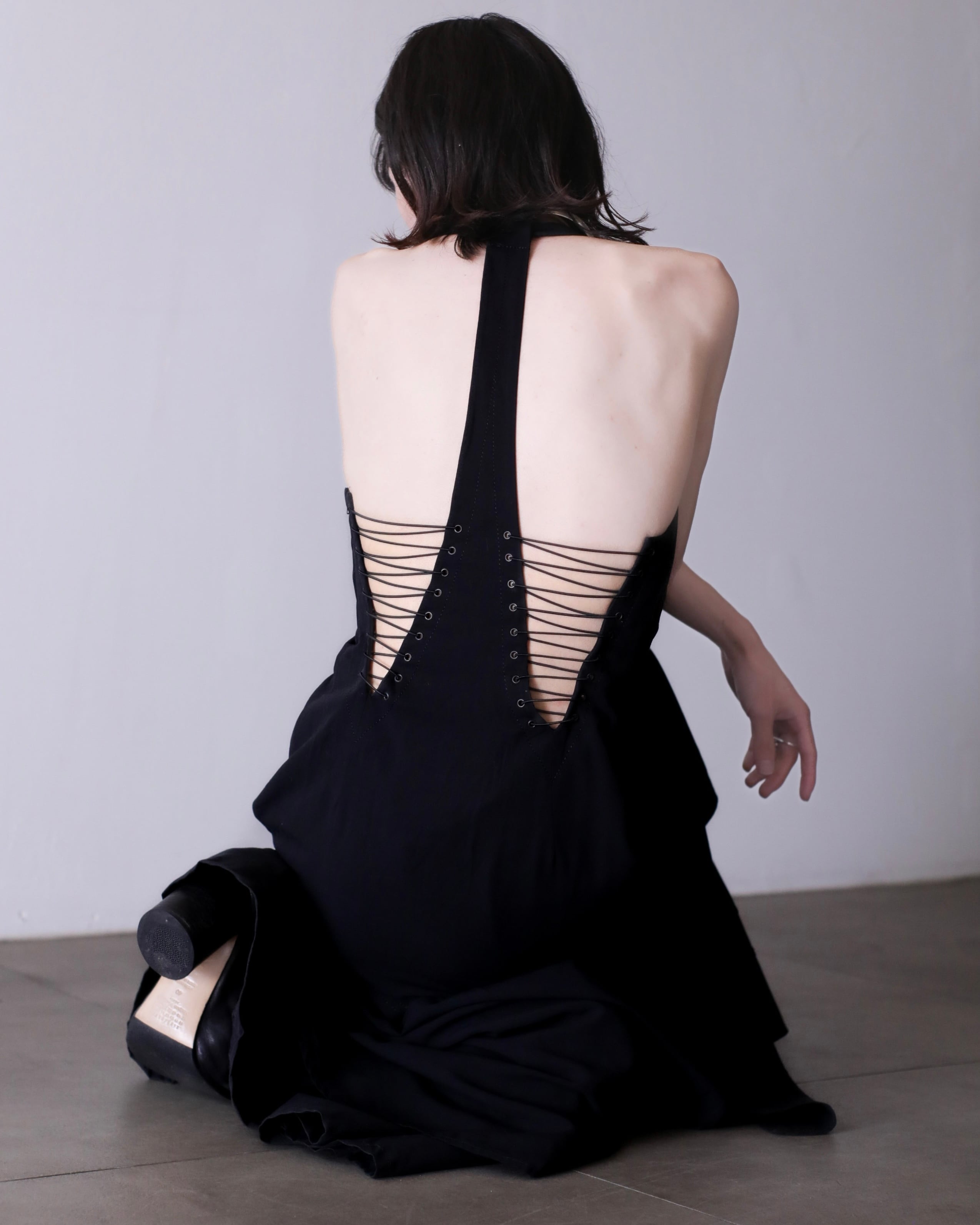 背中あみあみドレス。