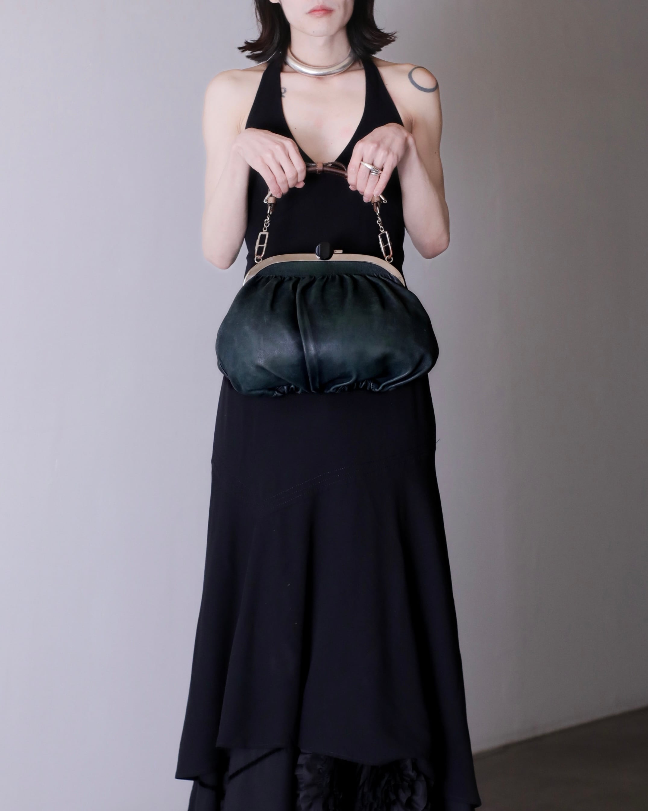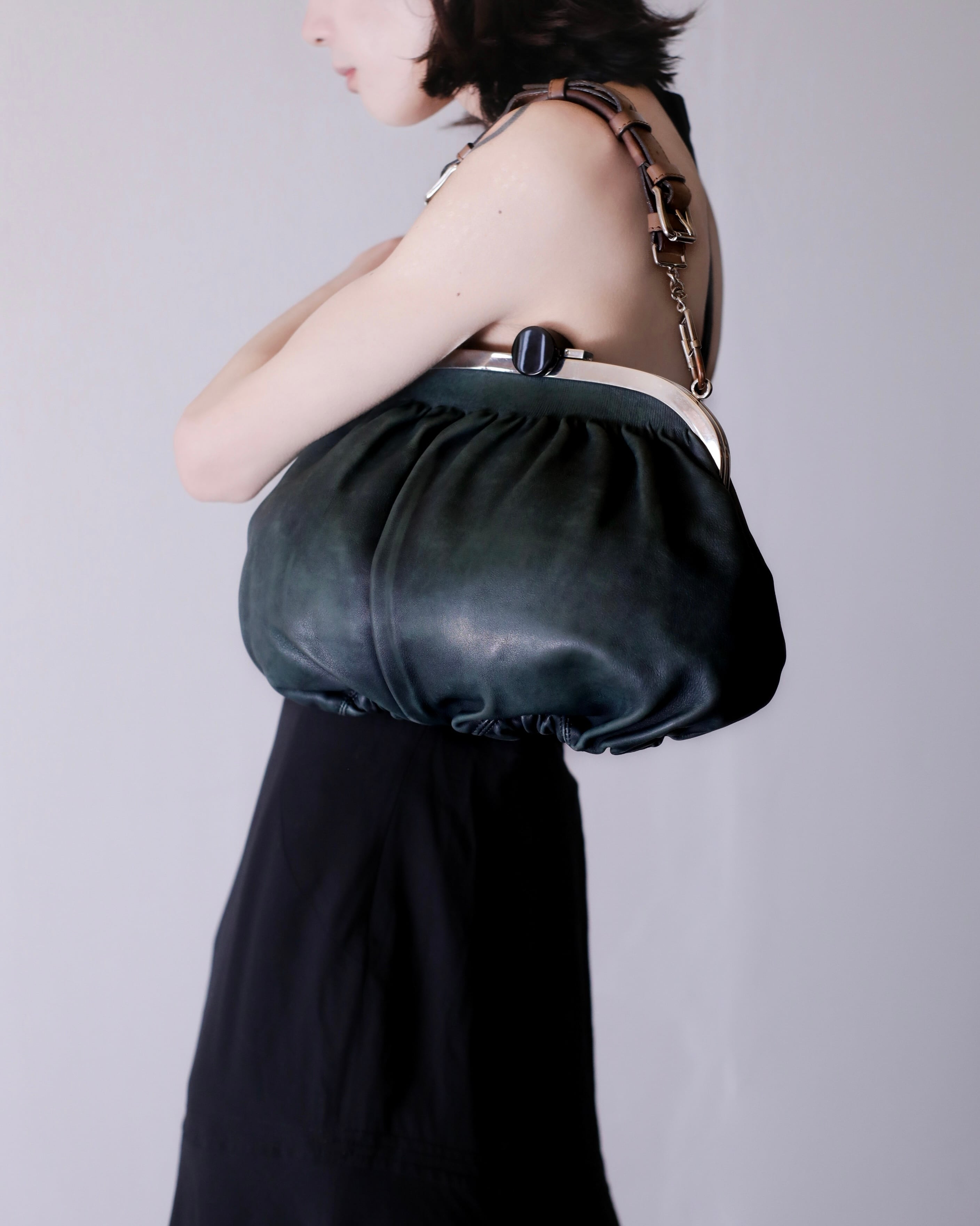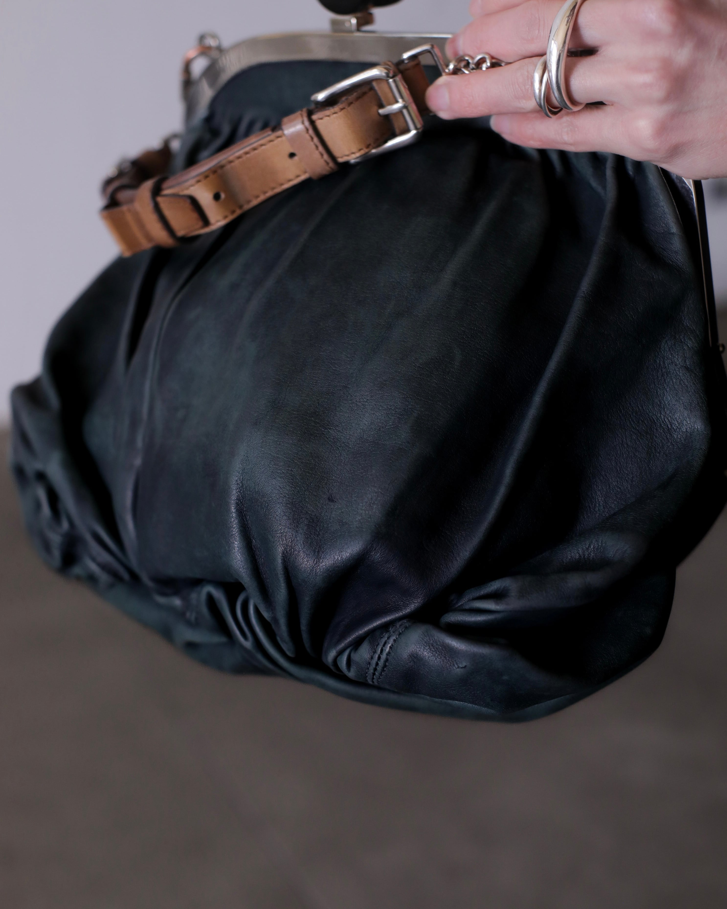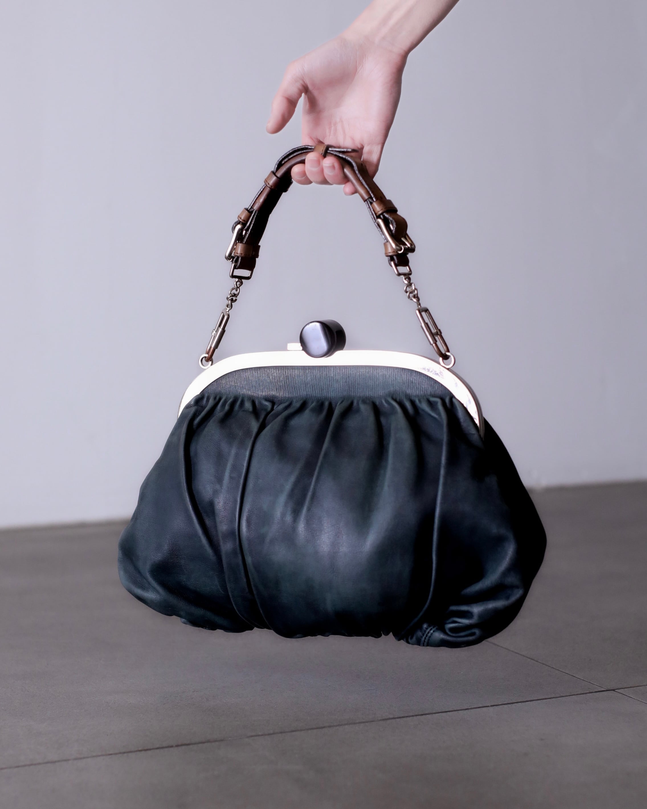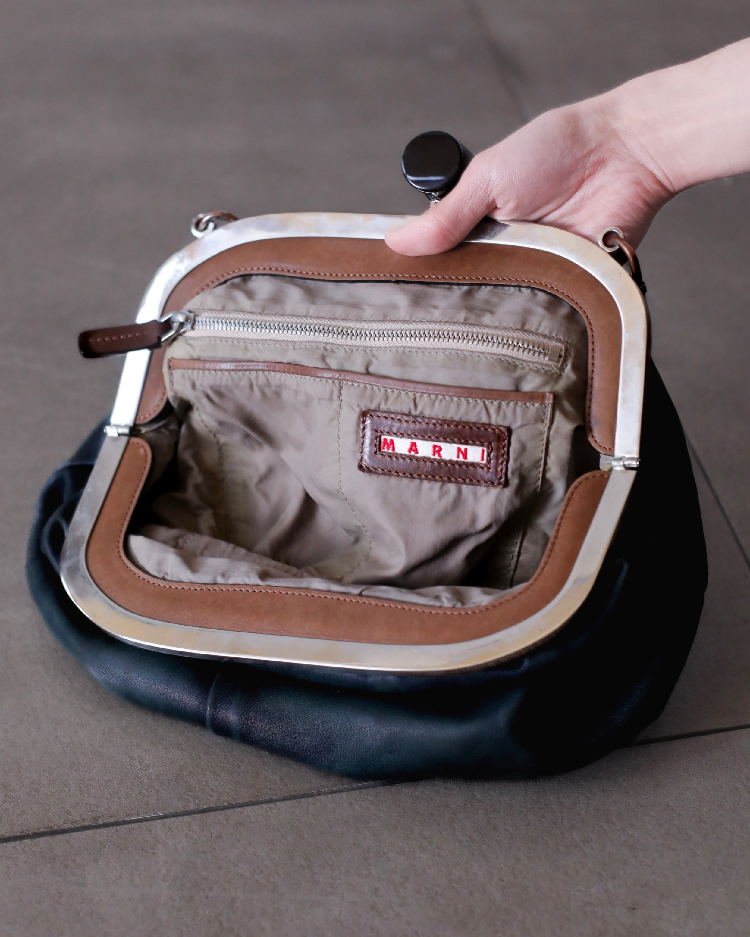 マルニのがま口レザーバッグ。